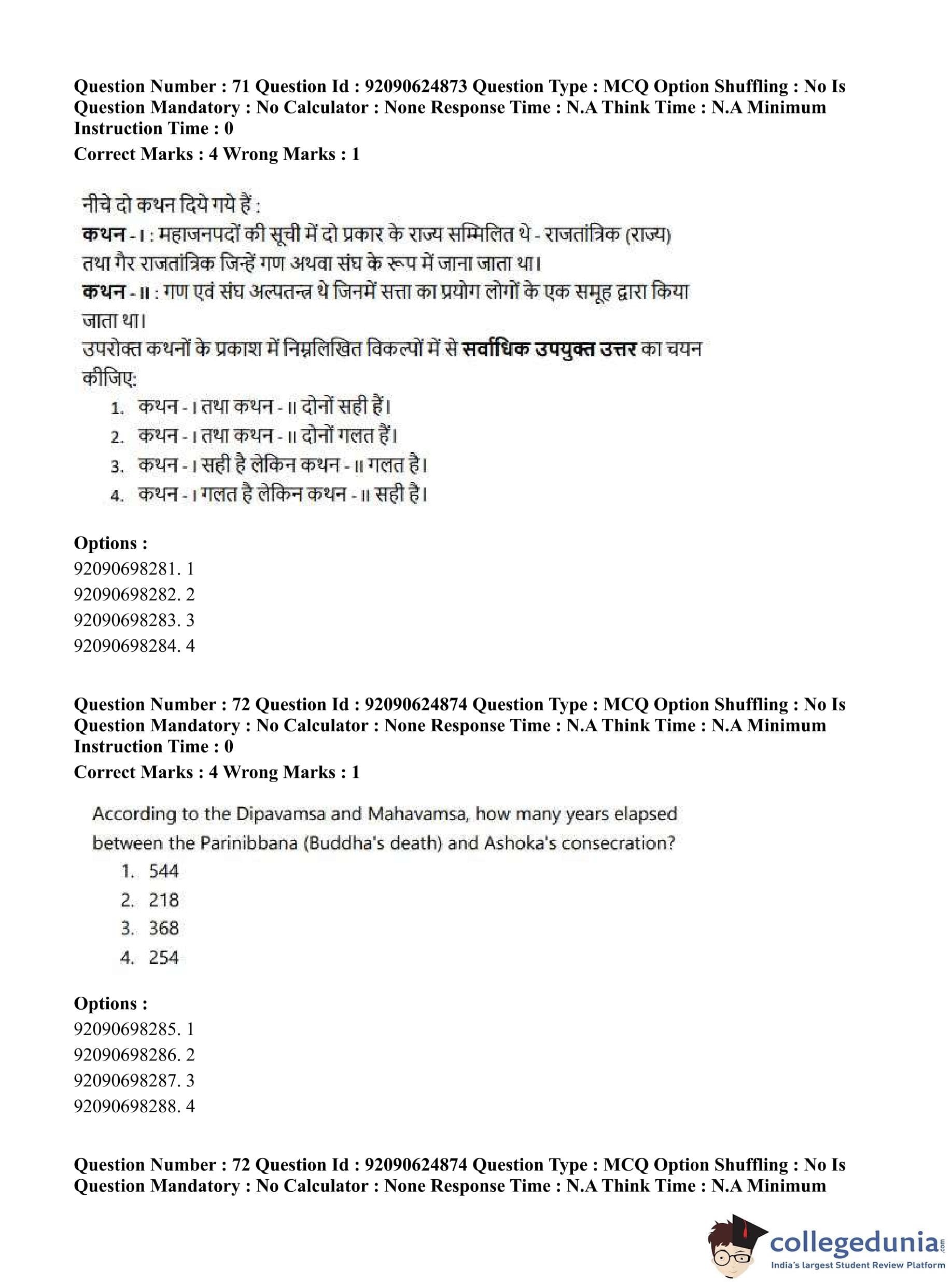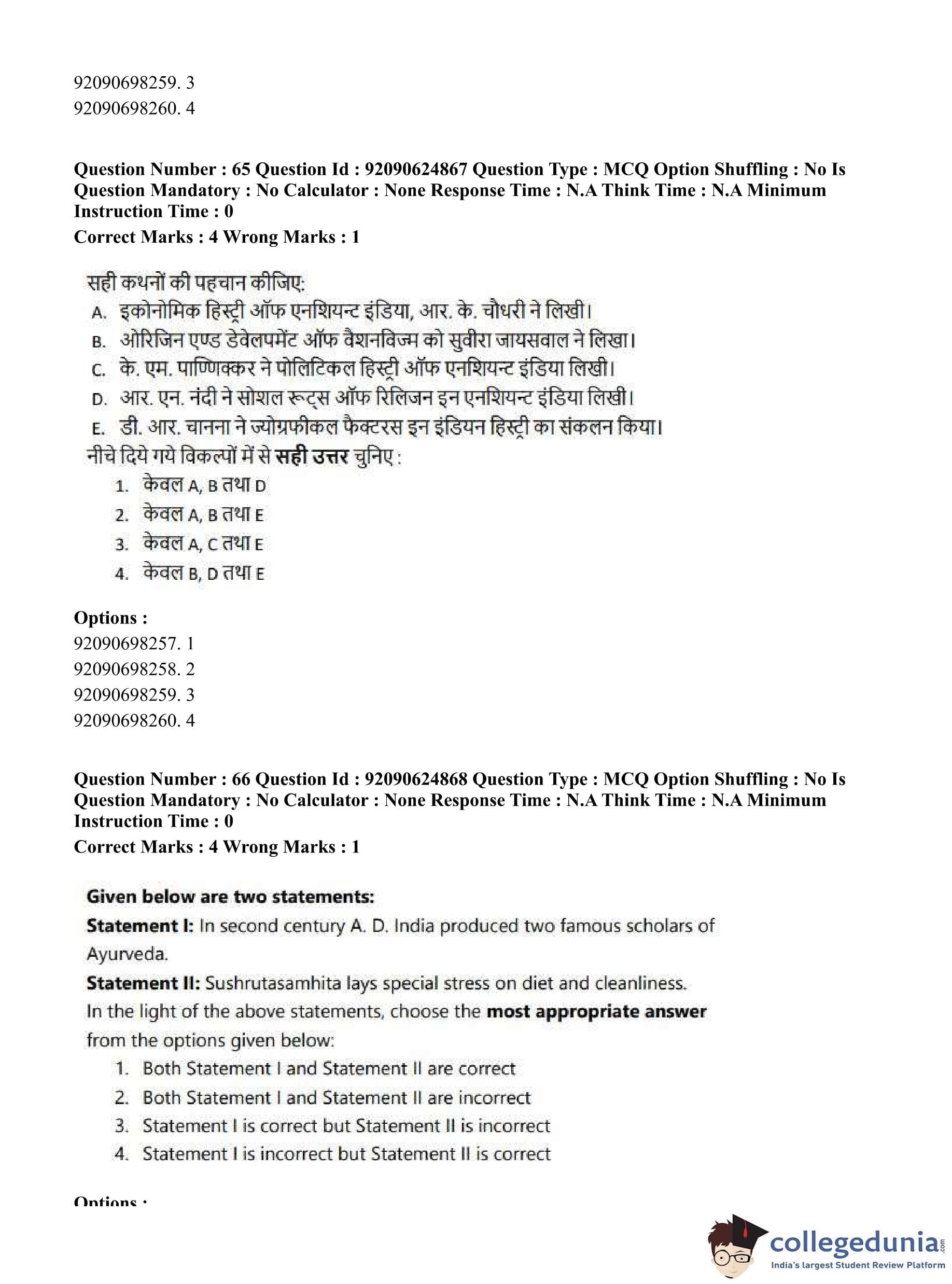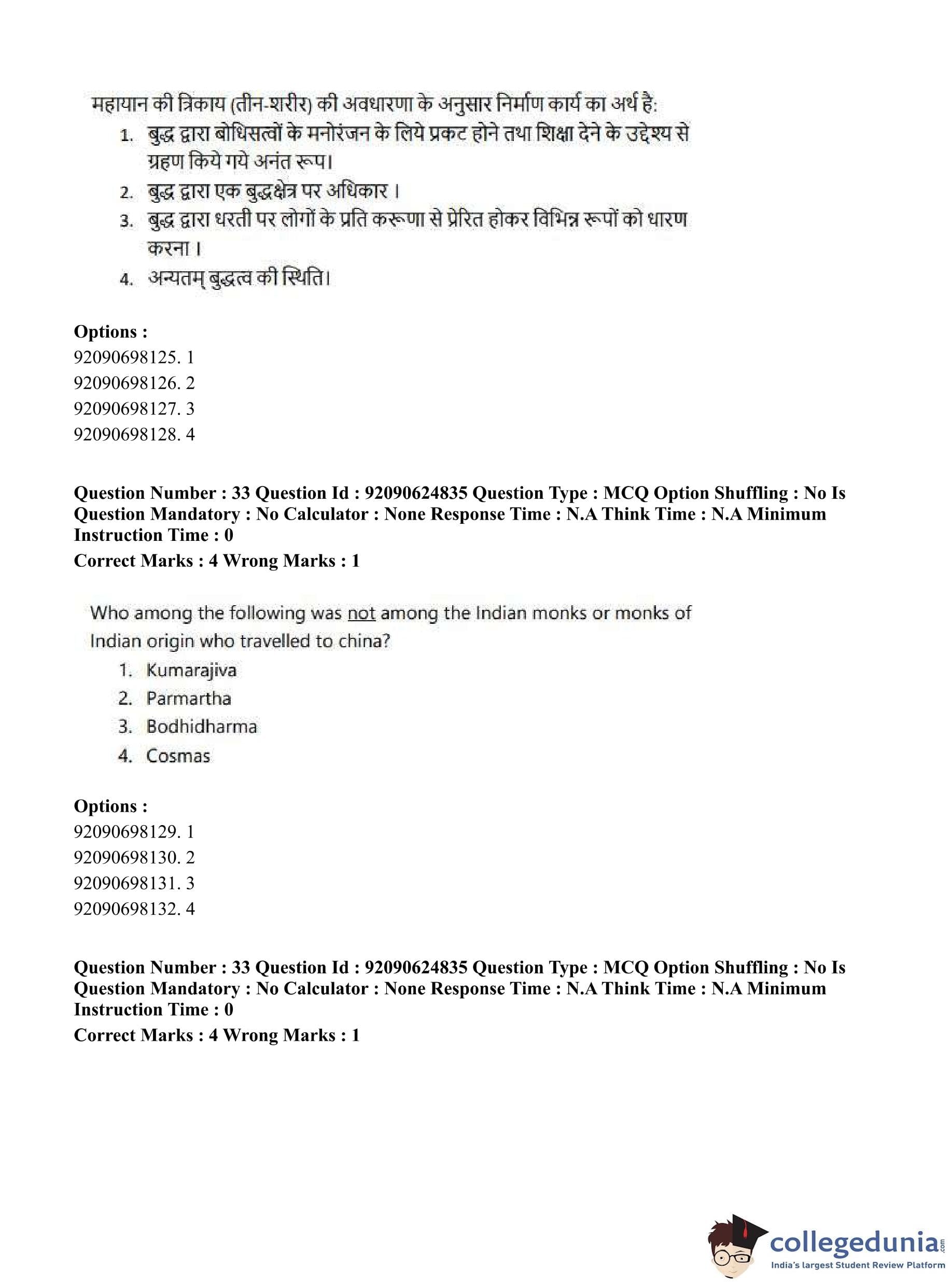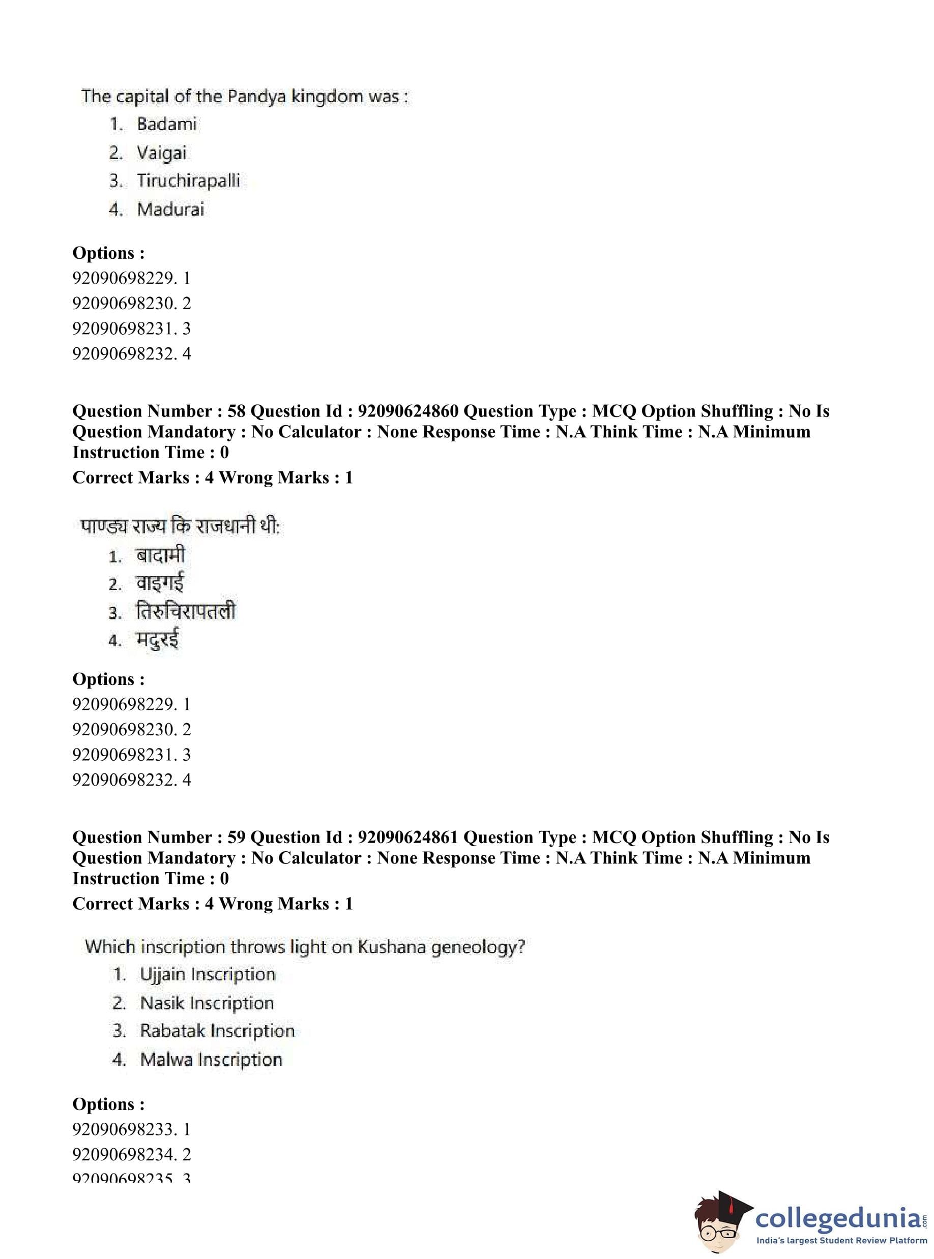 CUET PG 2023 Ancient Indian History Question Paper in English (June 24 - Shift 3)
