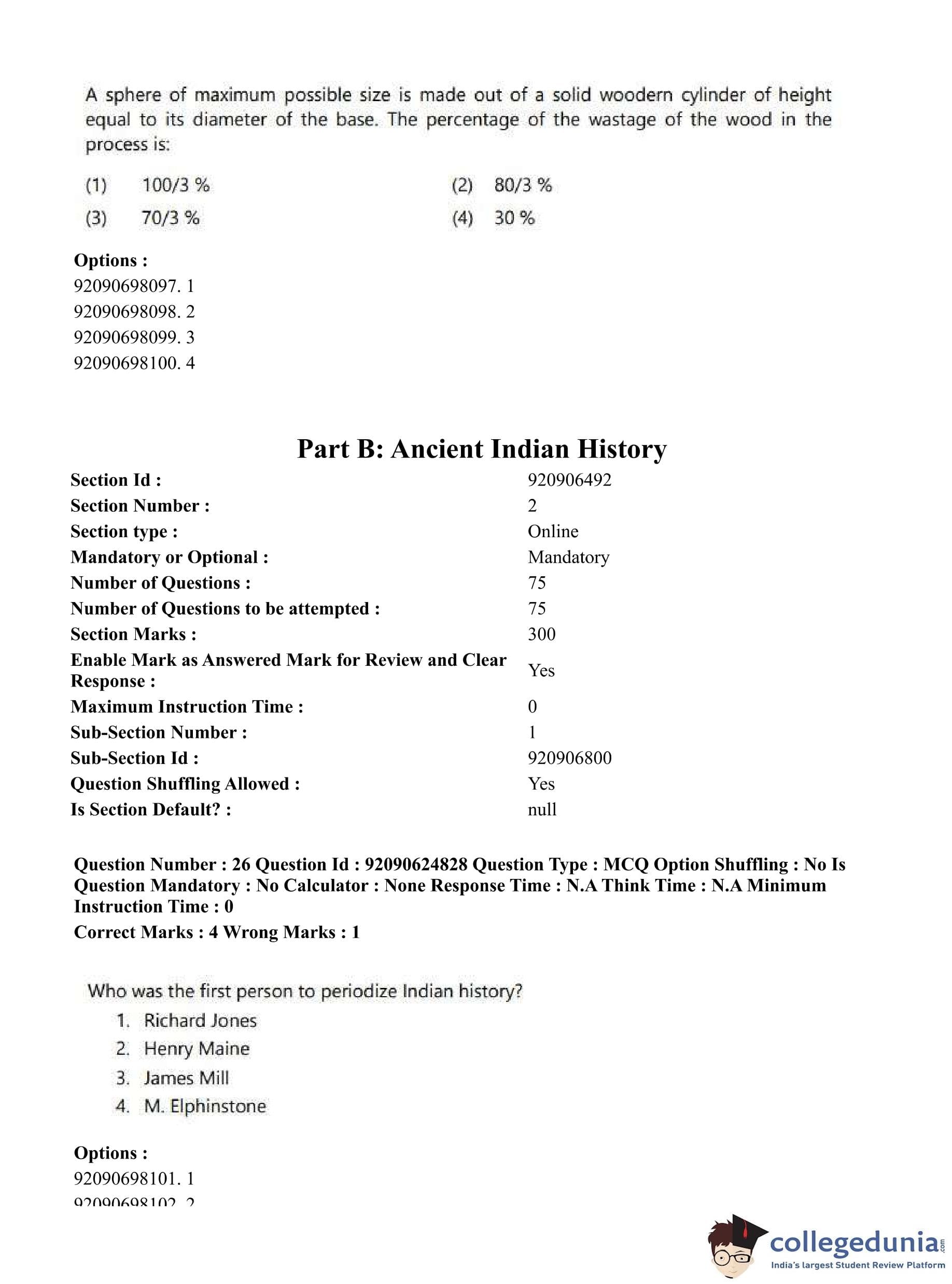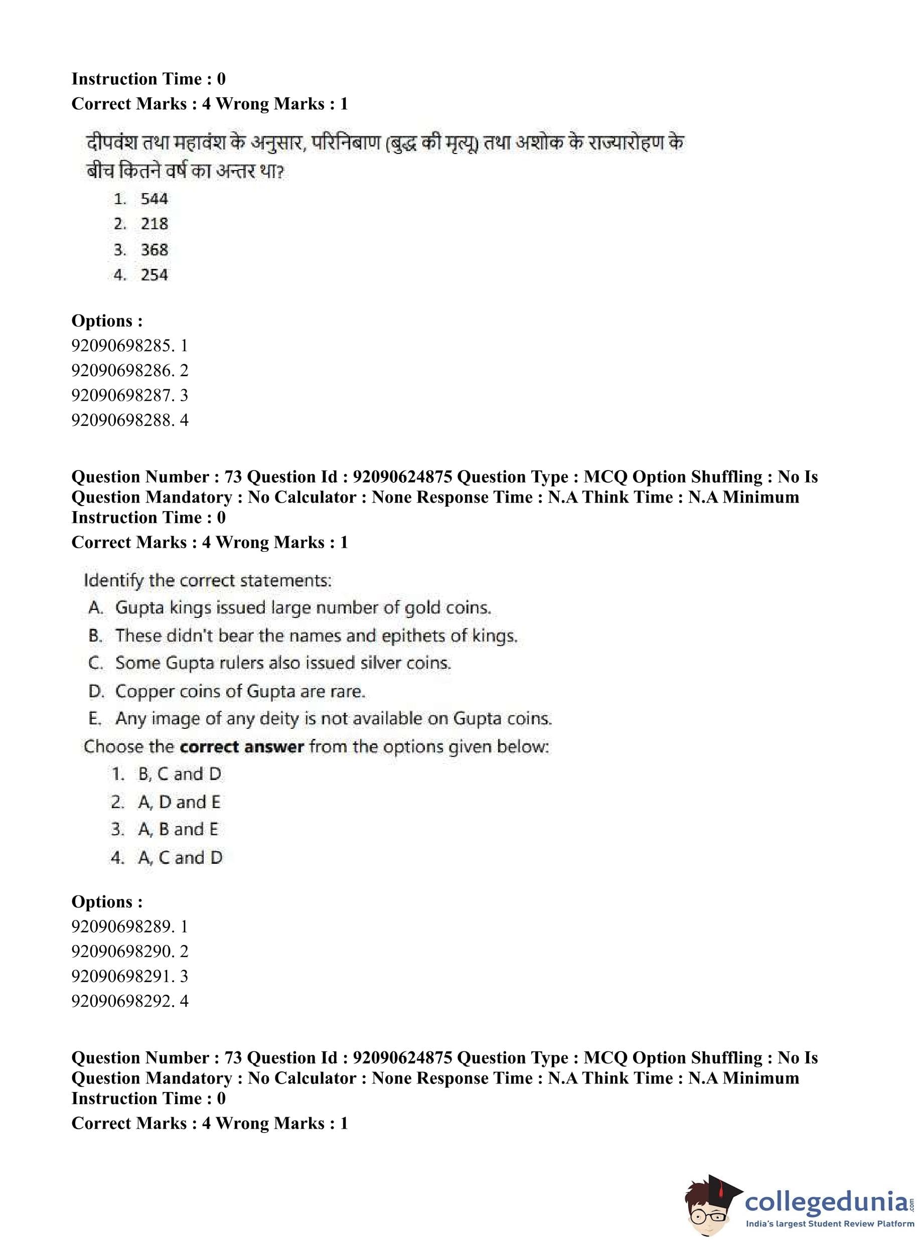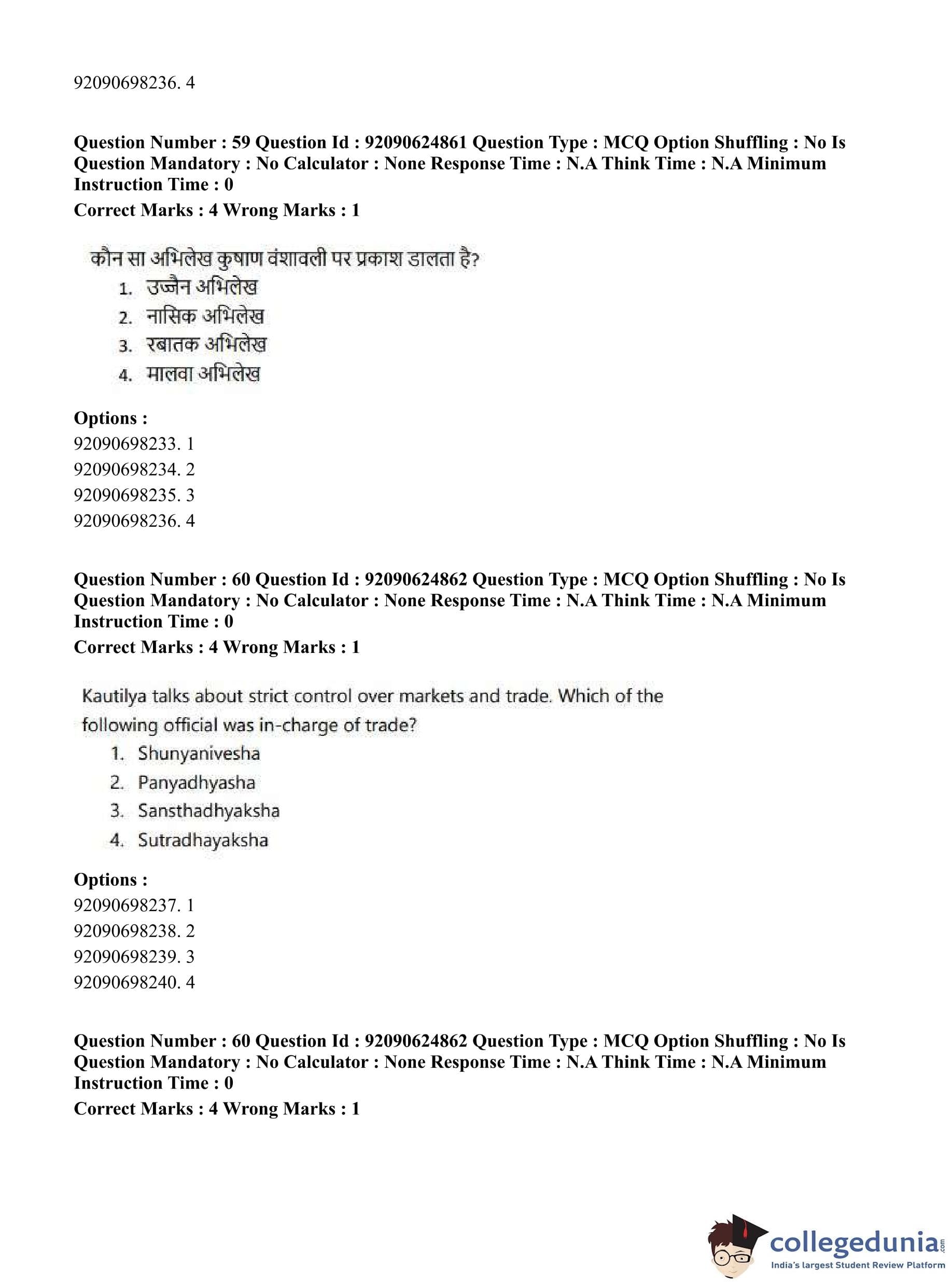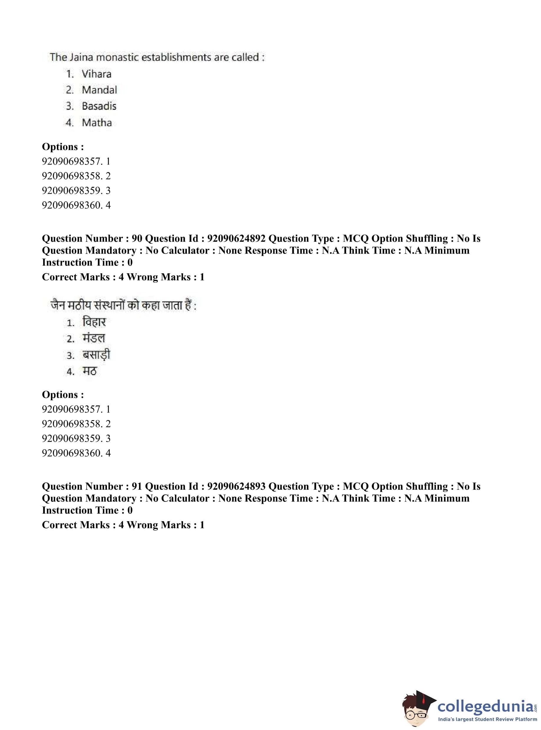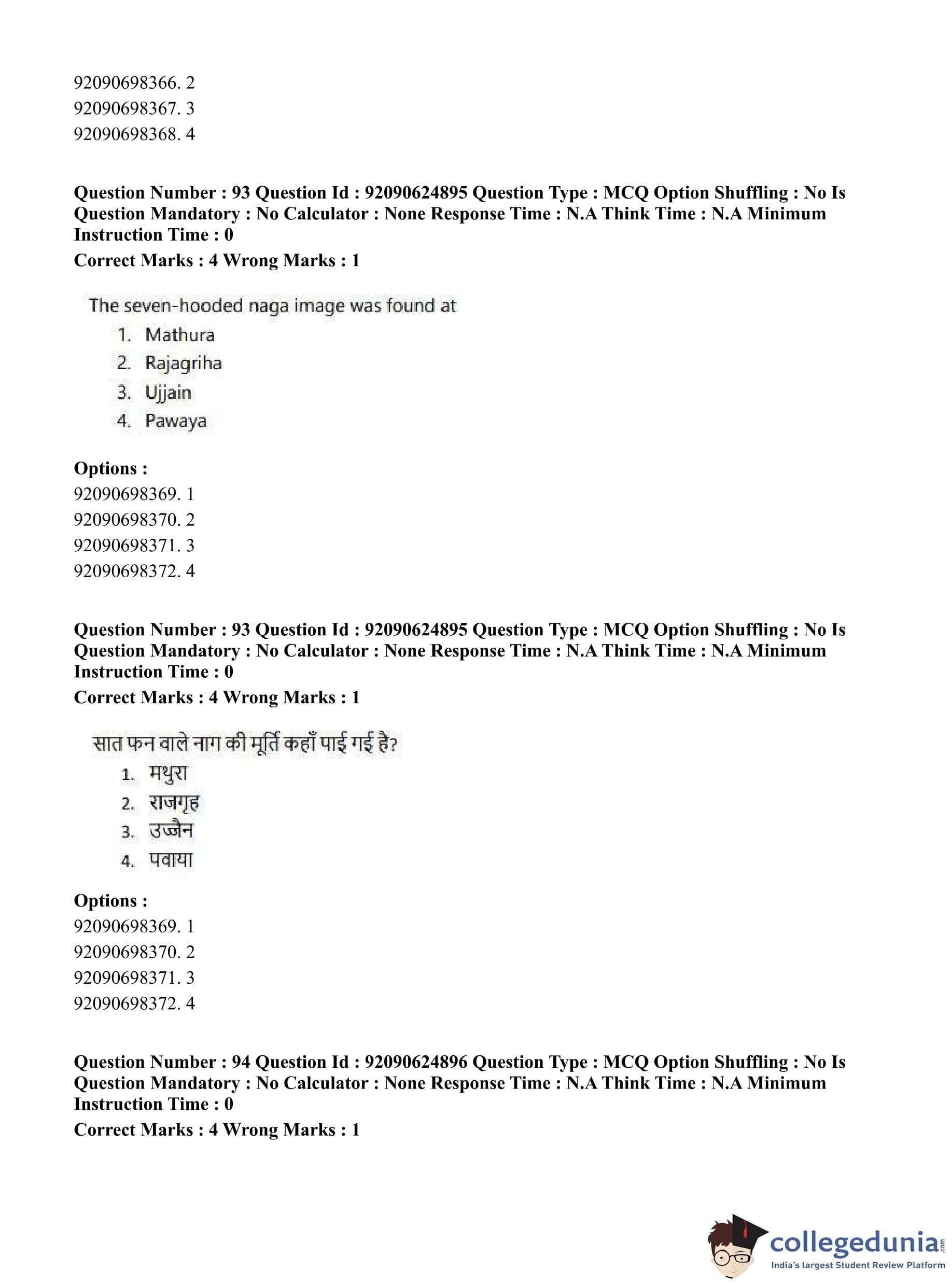 CUET PG 2023 Ancient Indian History Question Paper in English (June 24 - Shift 3)