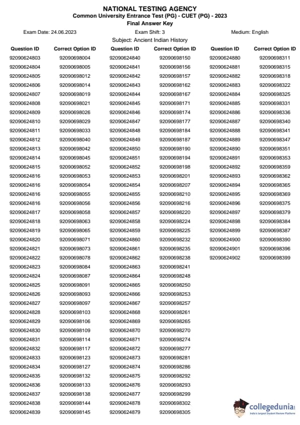 | CUET PG Ancient Indian History Question Paper 2023 PDF | CUET PG Ancient Indian History Answer Key 2023 PDF |