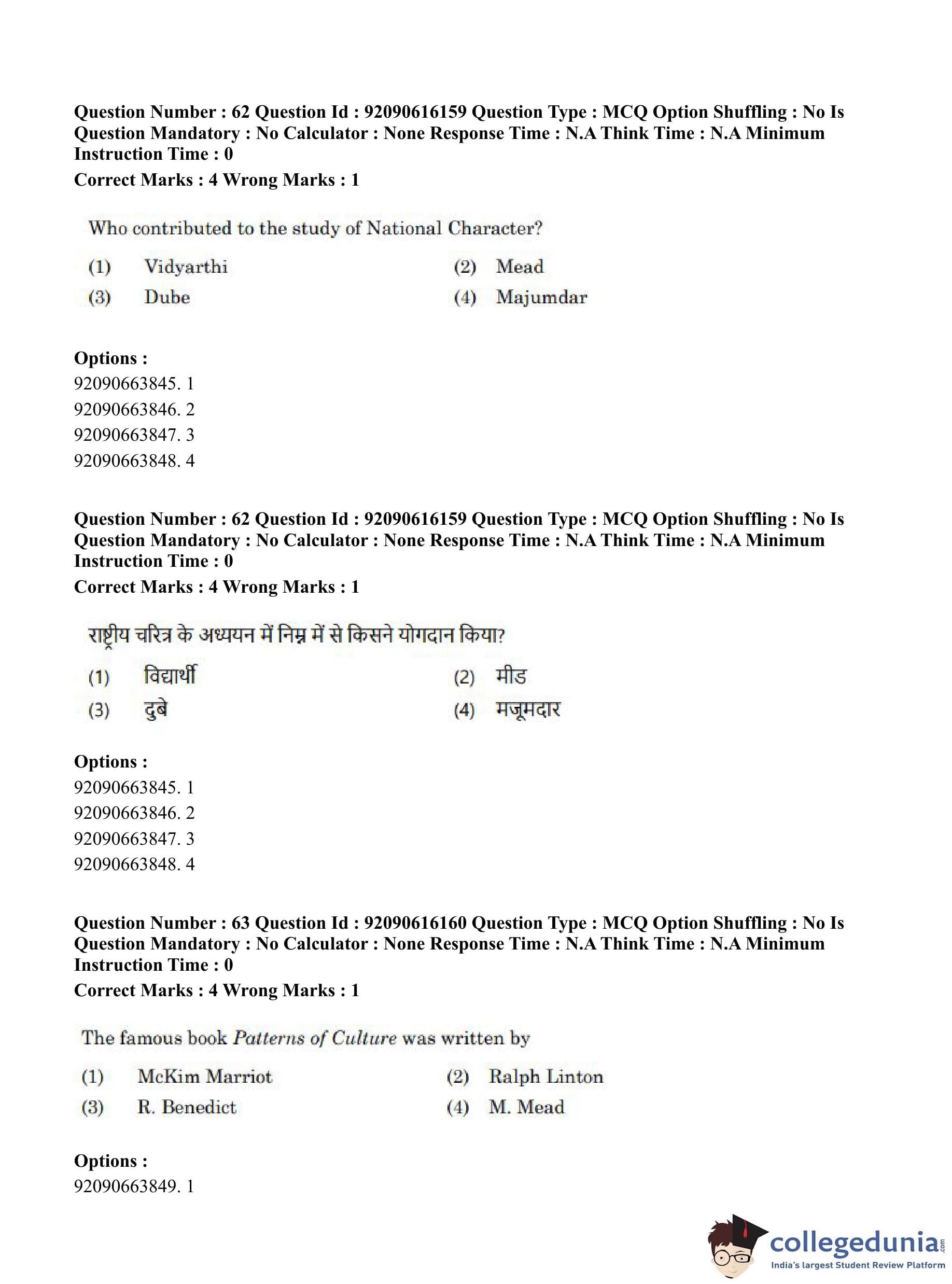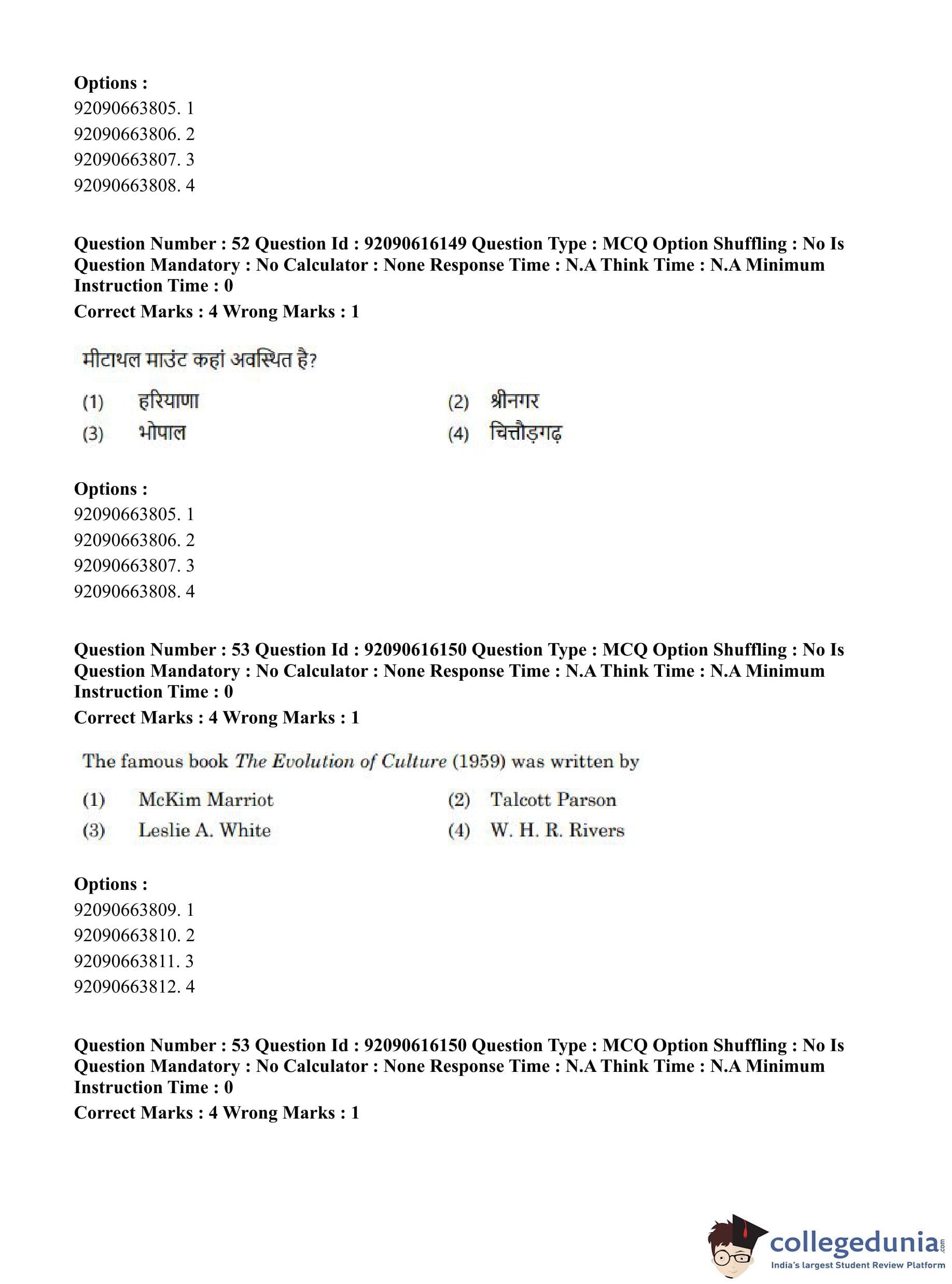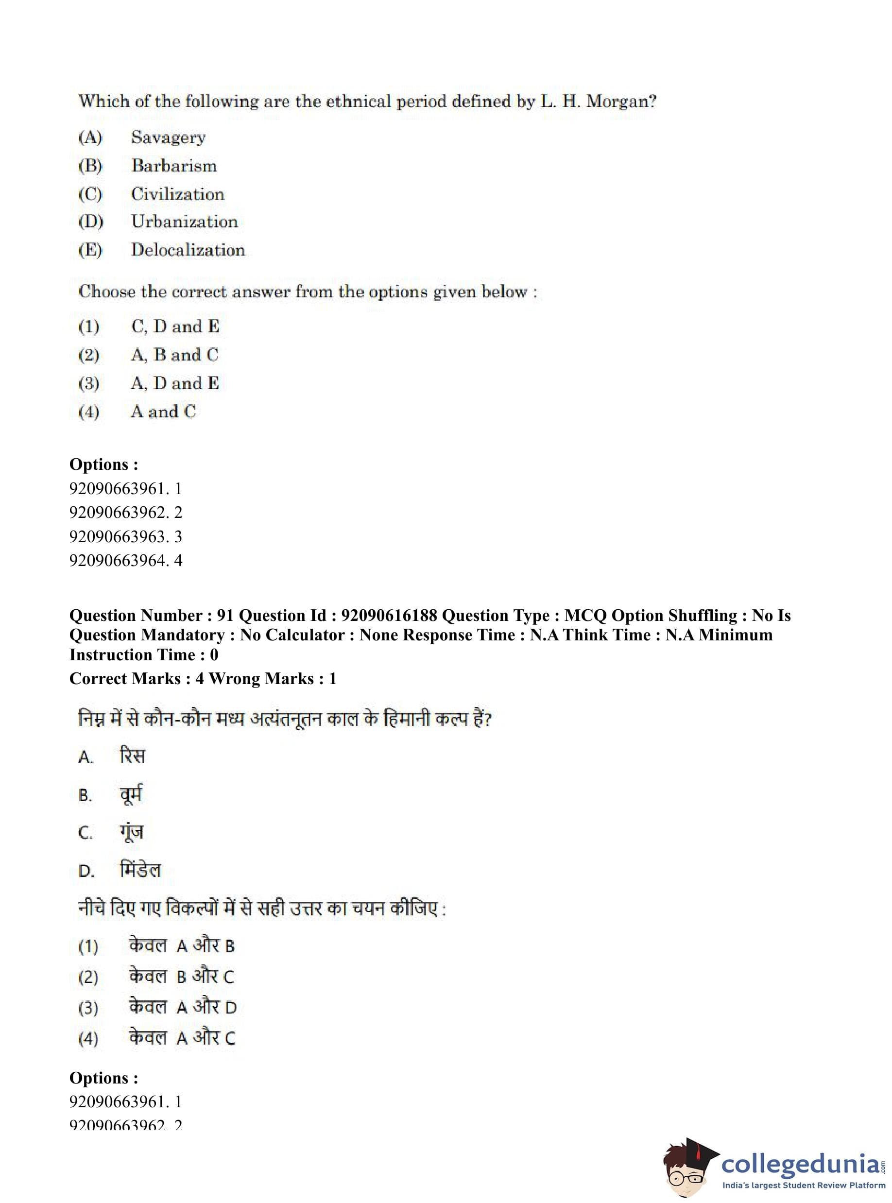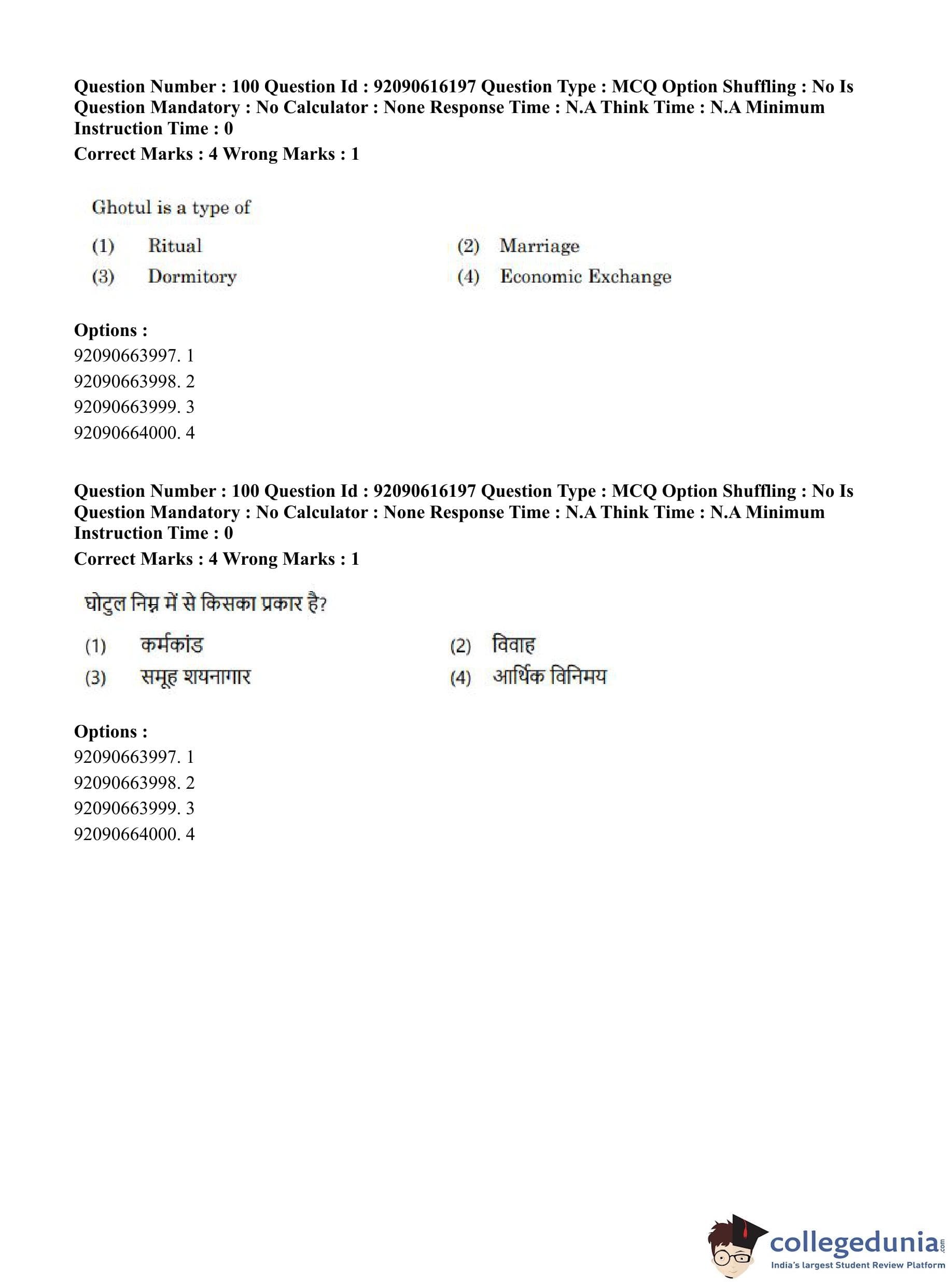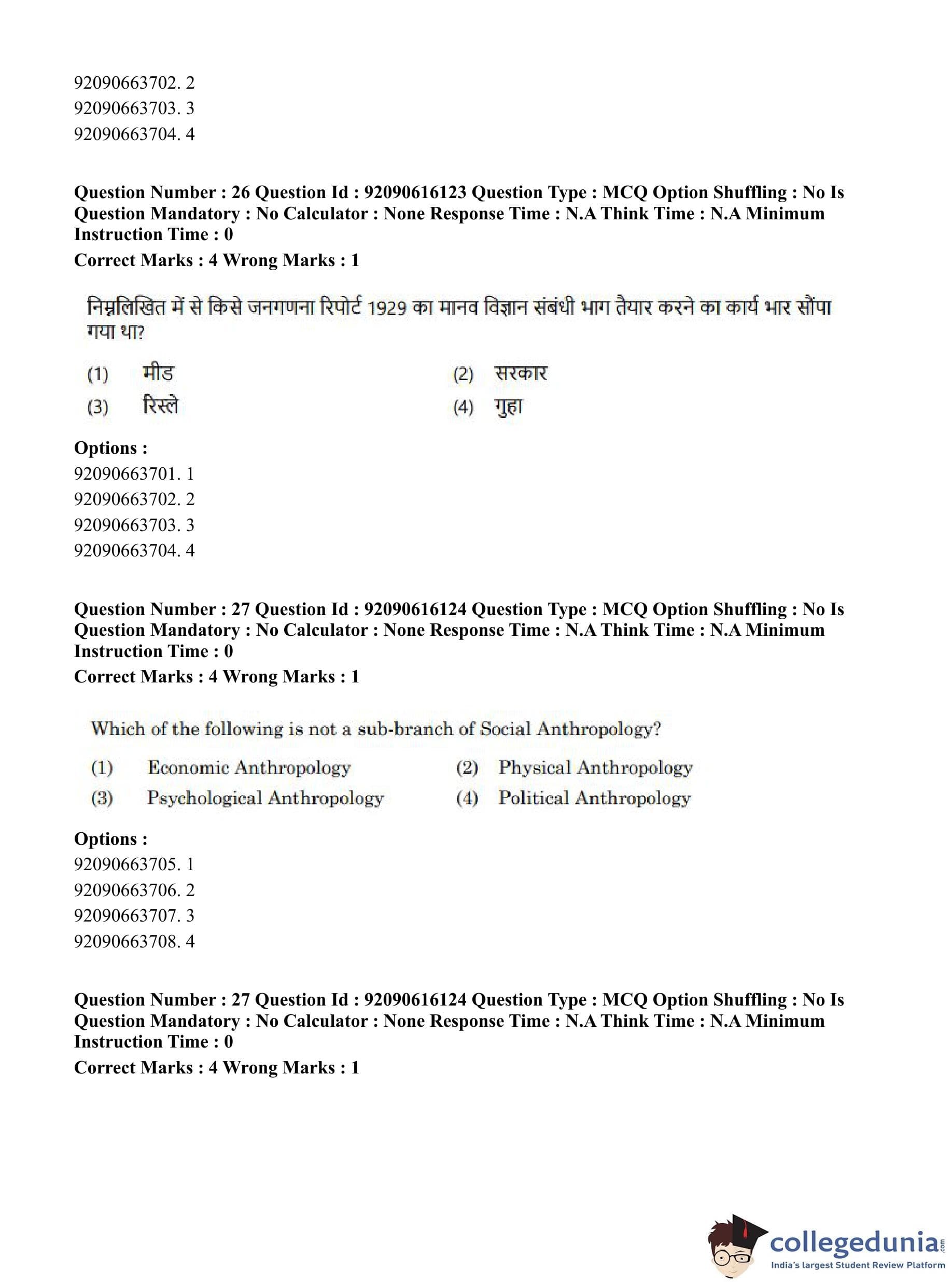 CUET PG 2023 Anthropology Question Paper in Hindi (June 14 - Shift 1)
