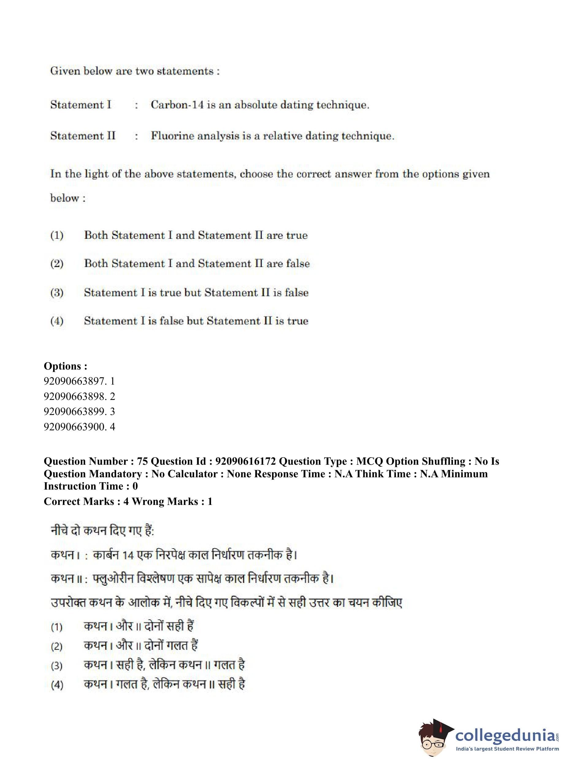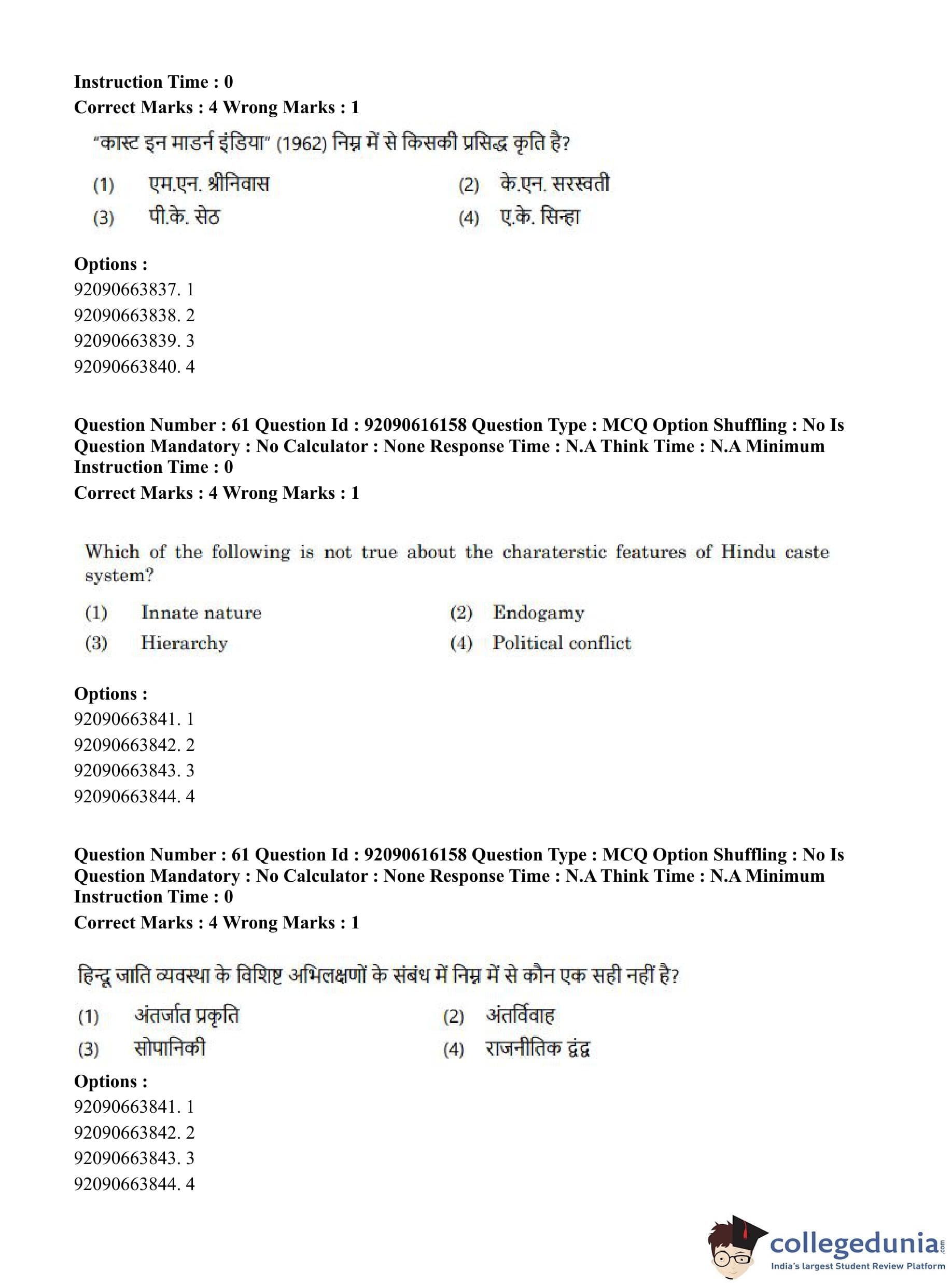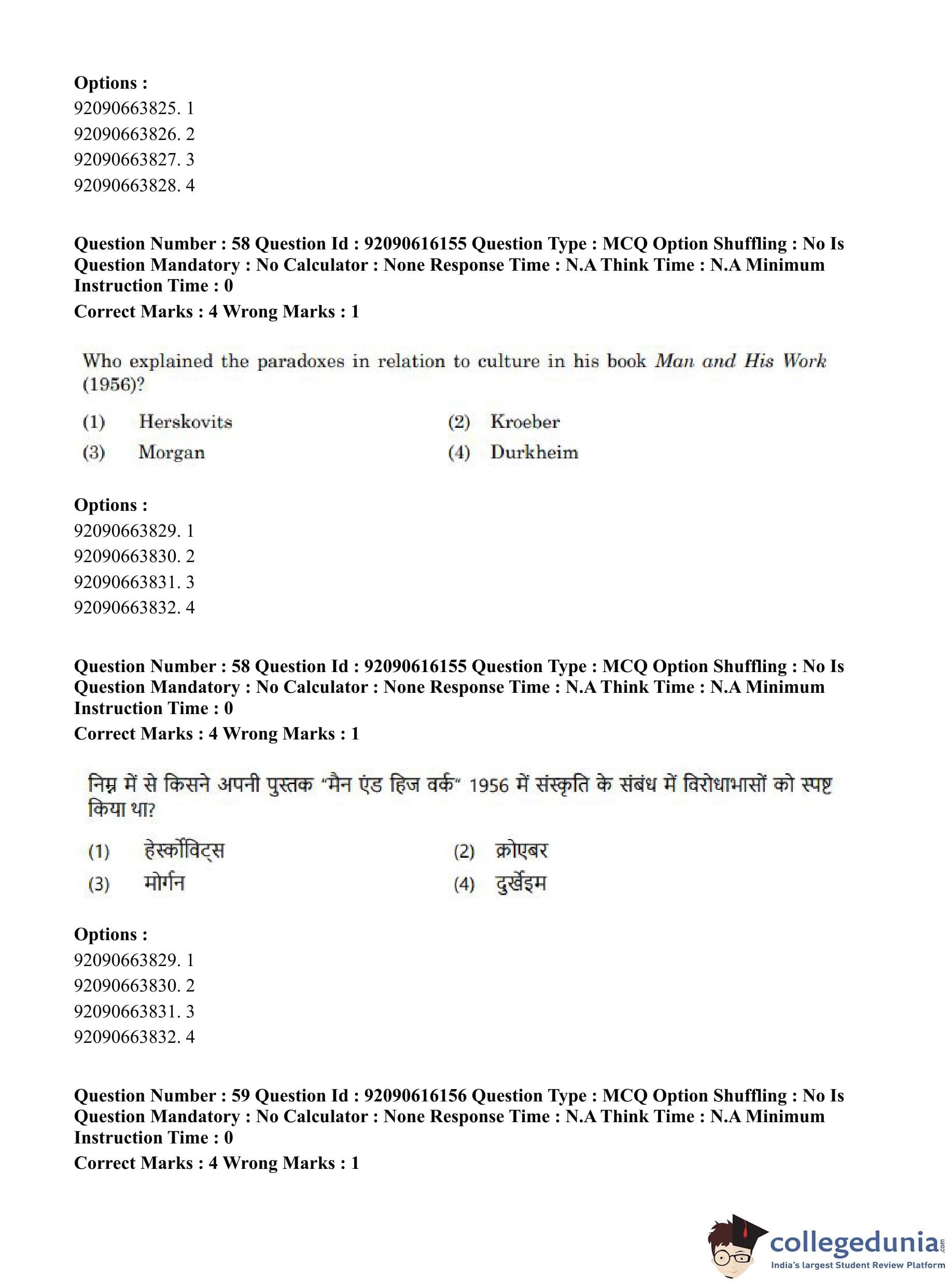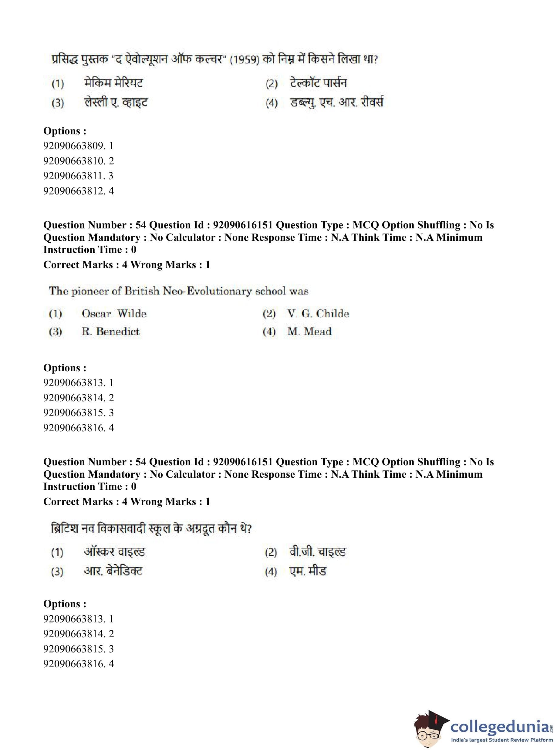 CUET PG 2023 Anthropology Question Paper in Hindi (June 14 - Shift 1)