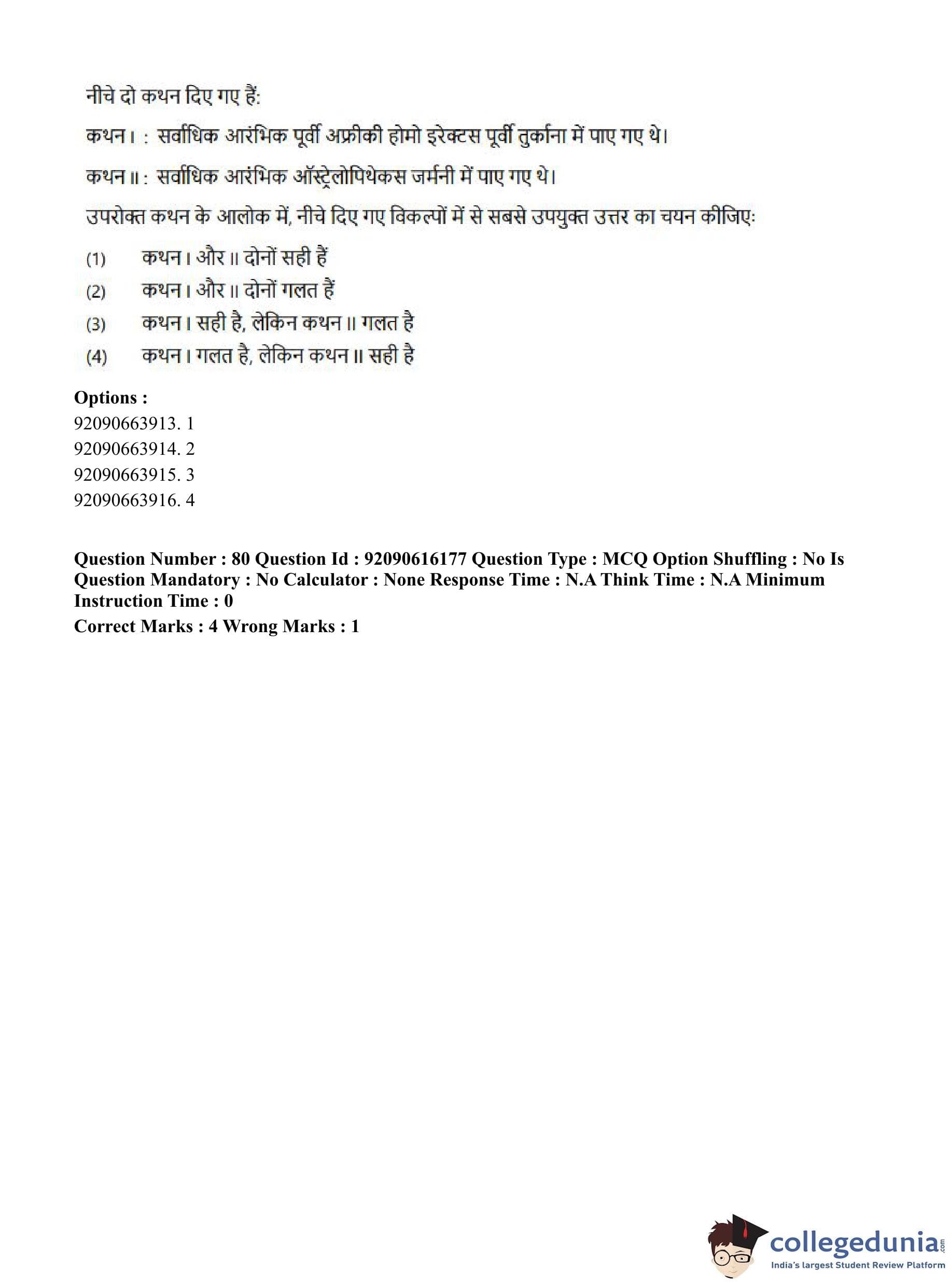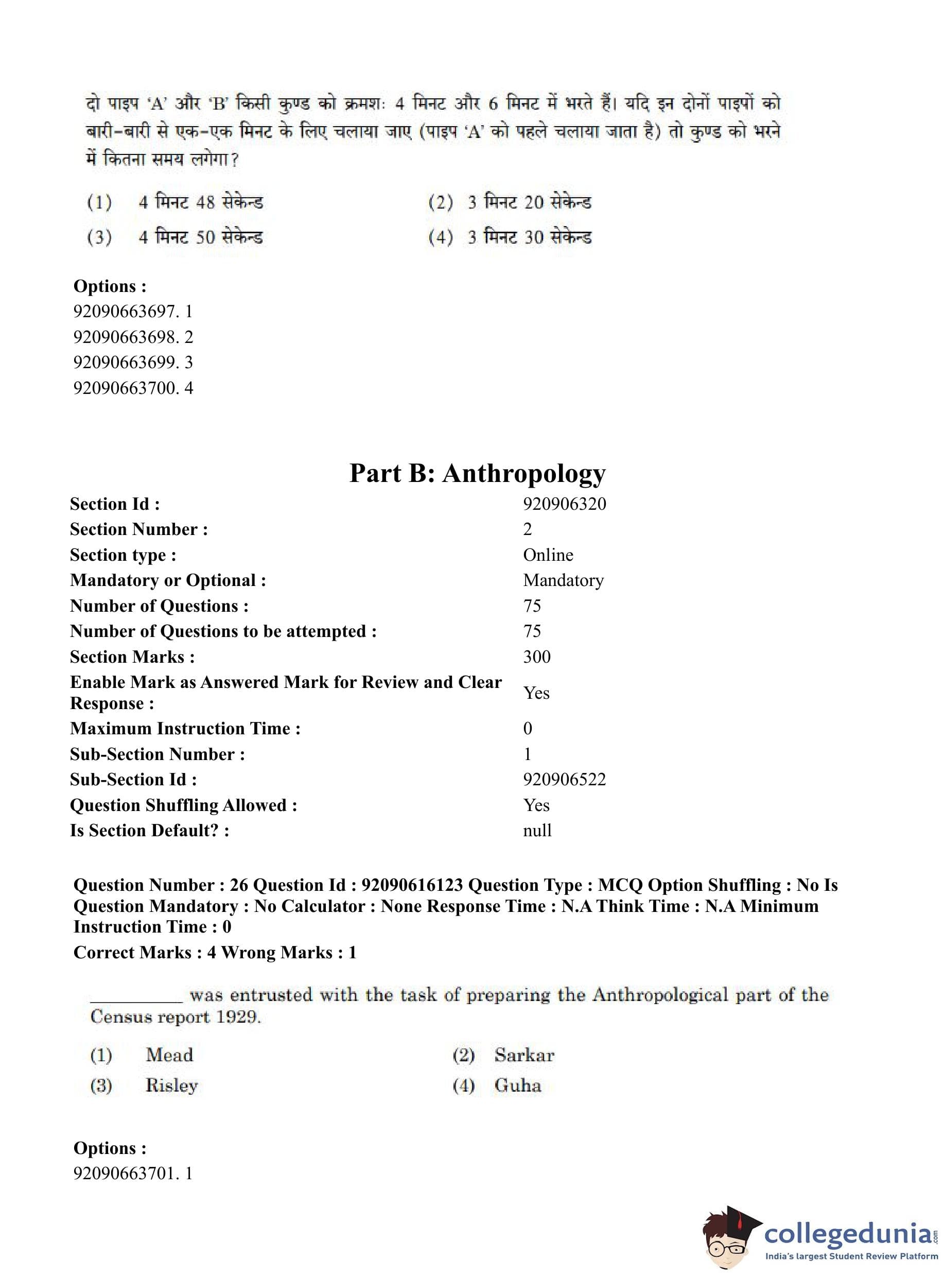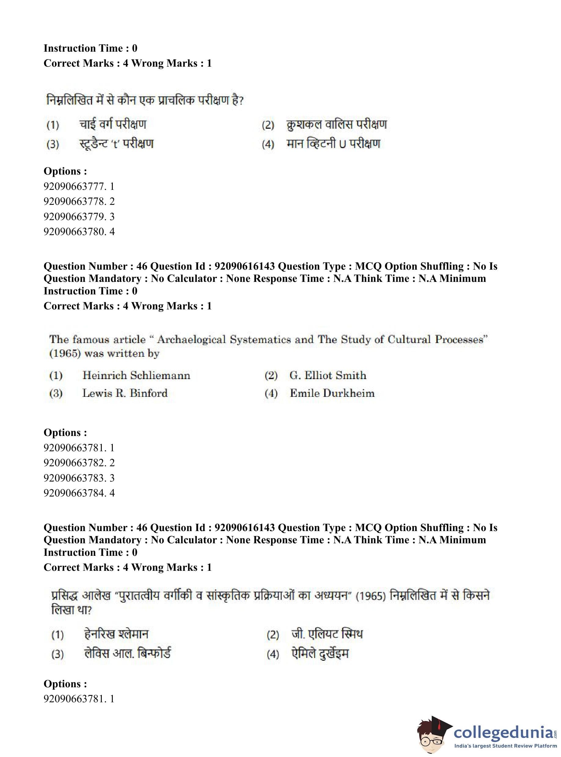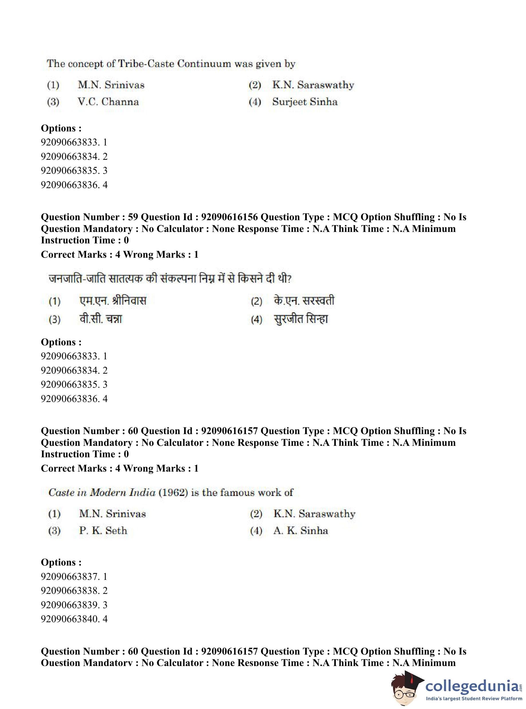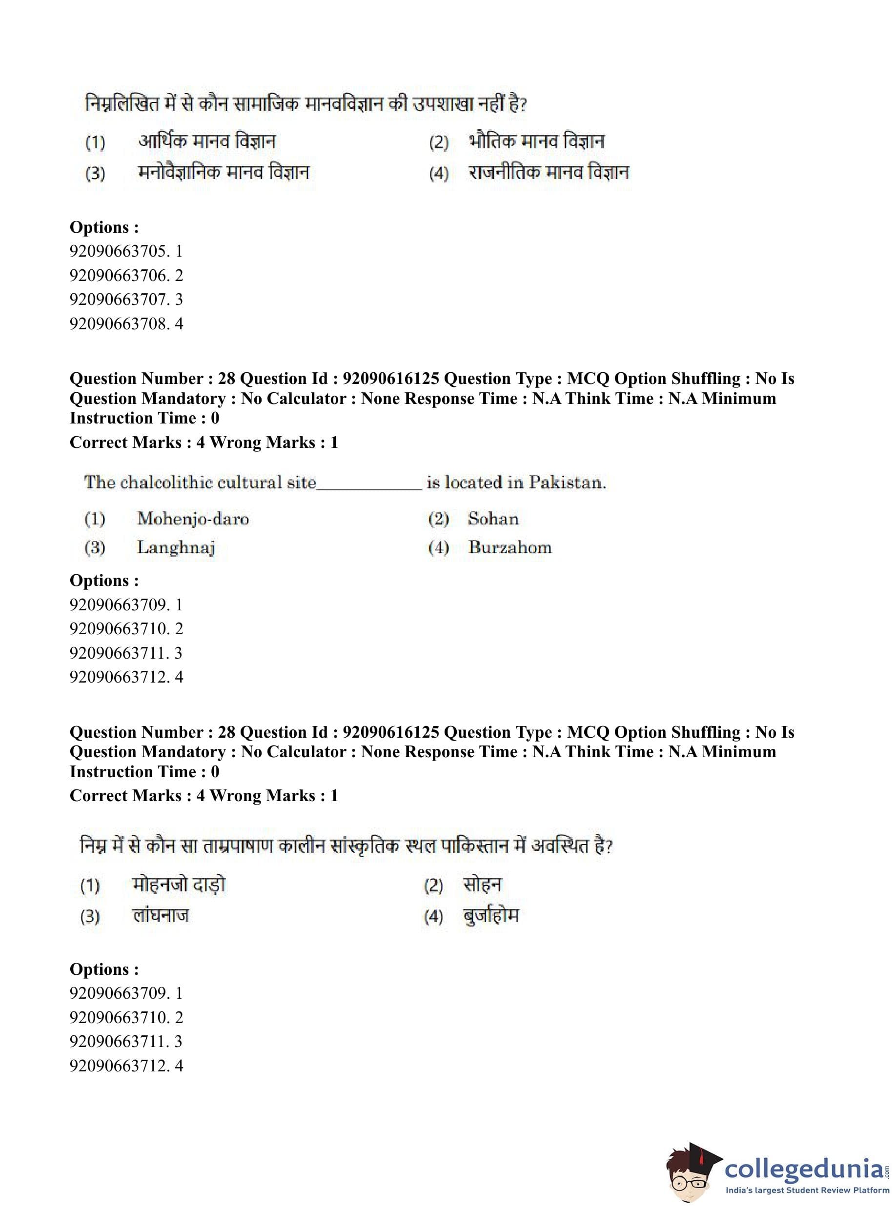 CUET PG 2023 Anthropology Question Paper in Hindi (June 14 - Shift 1)