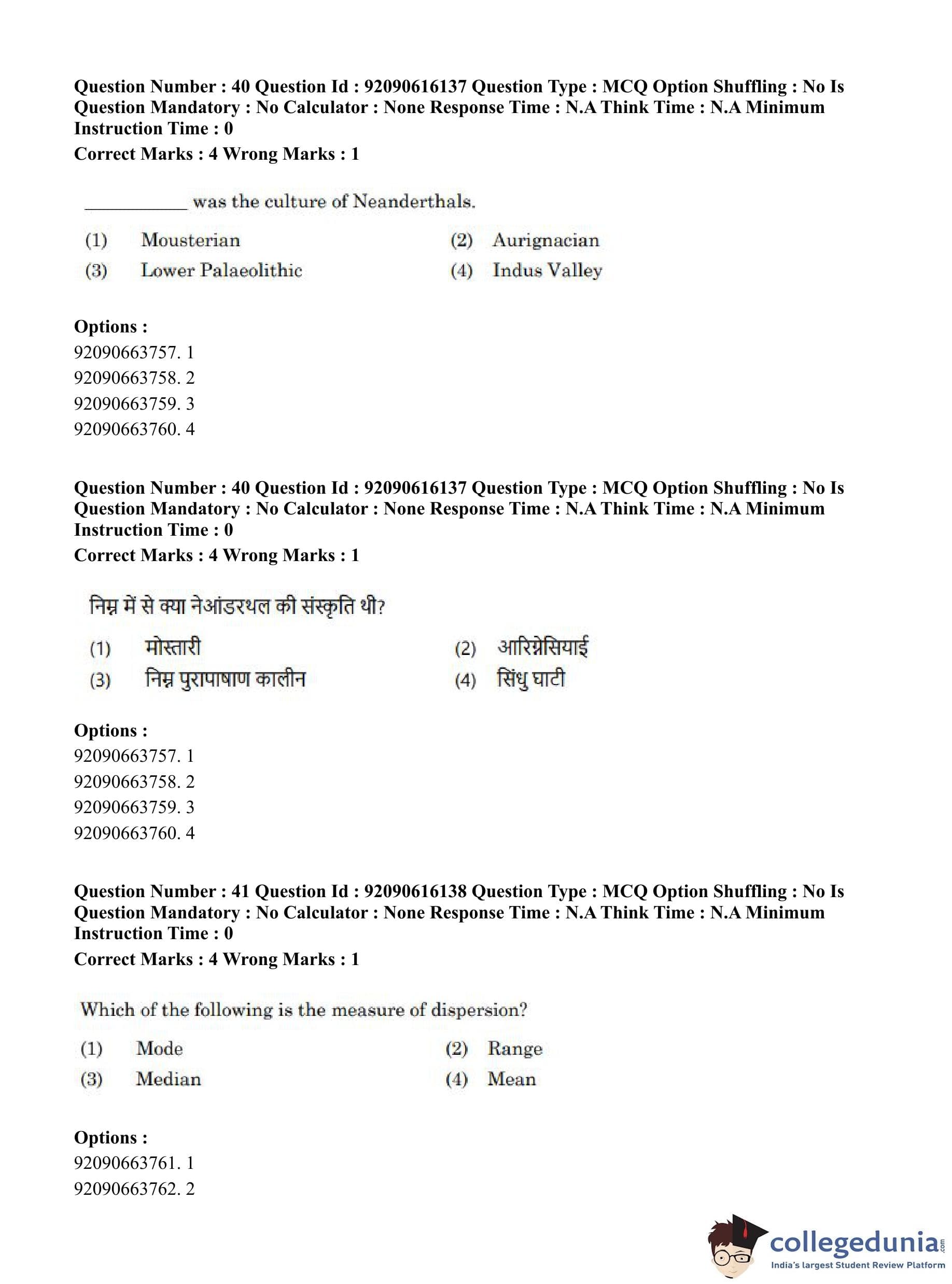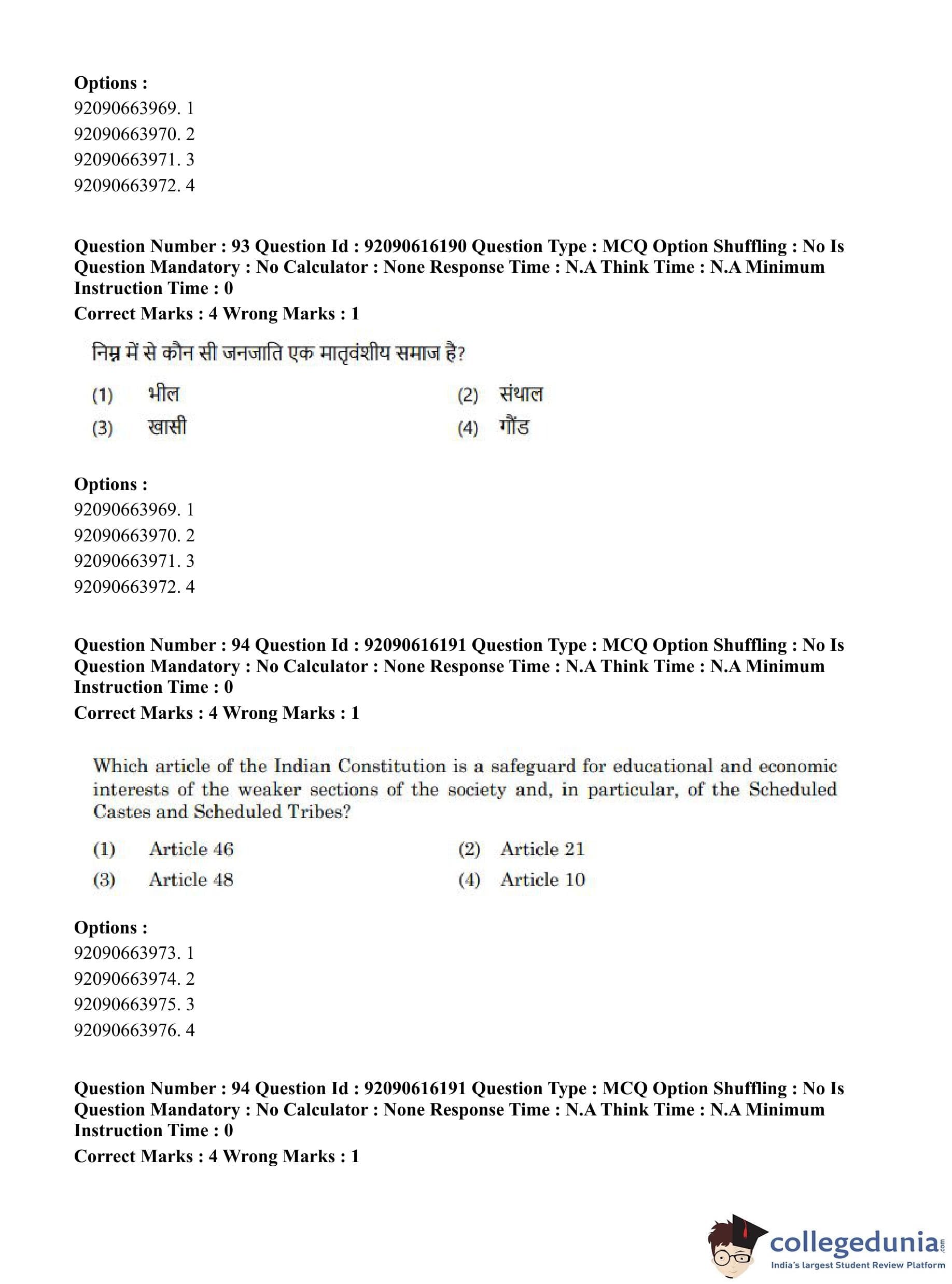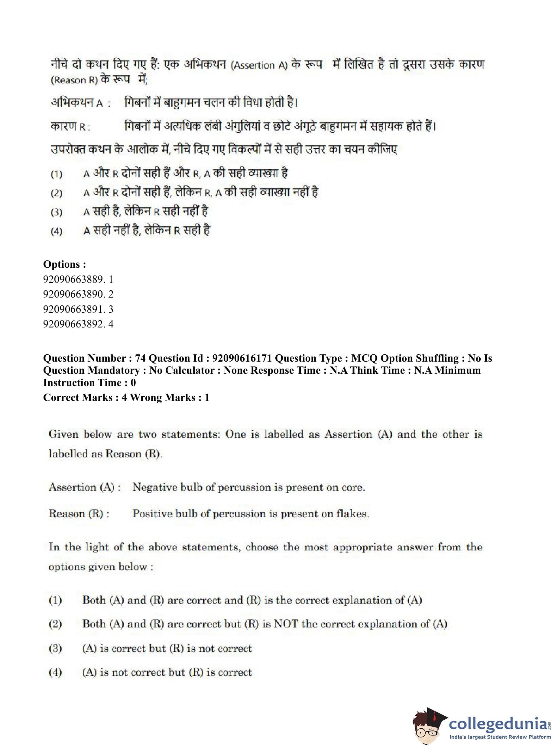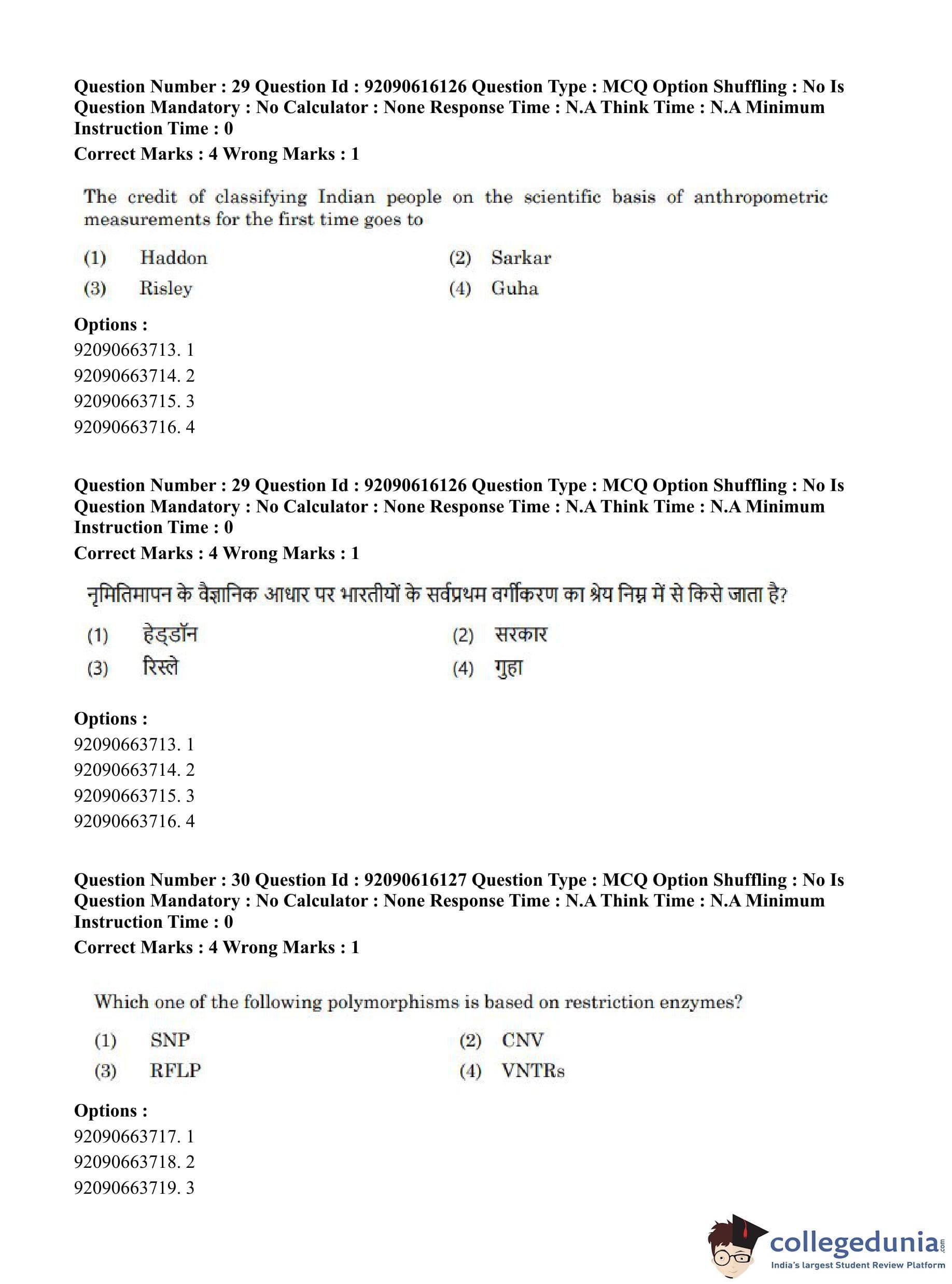 CUET PG 2023 Anthropology Question Paper in Hindi (June 14 - Shift 1)