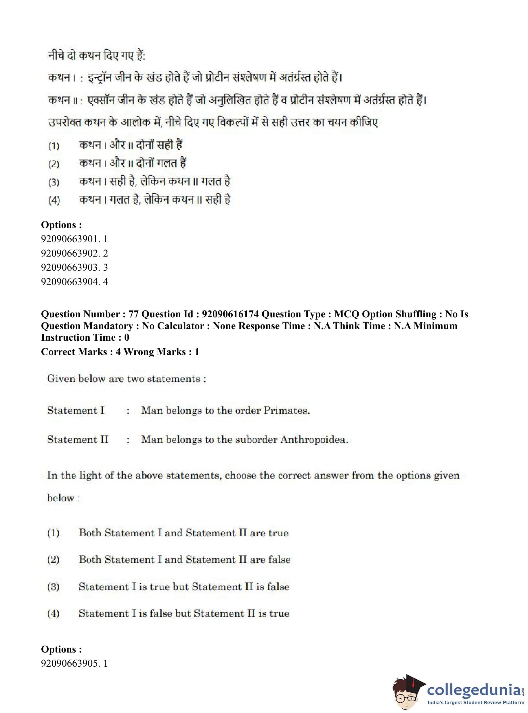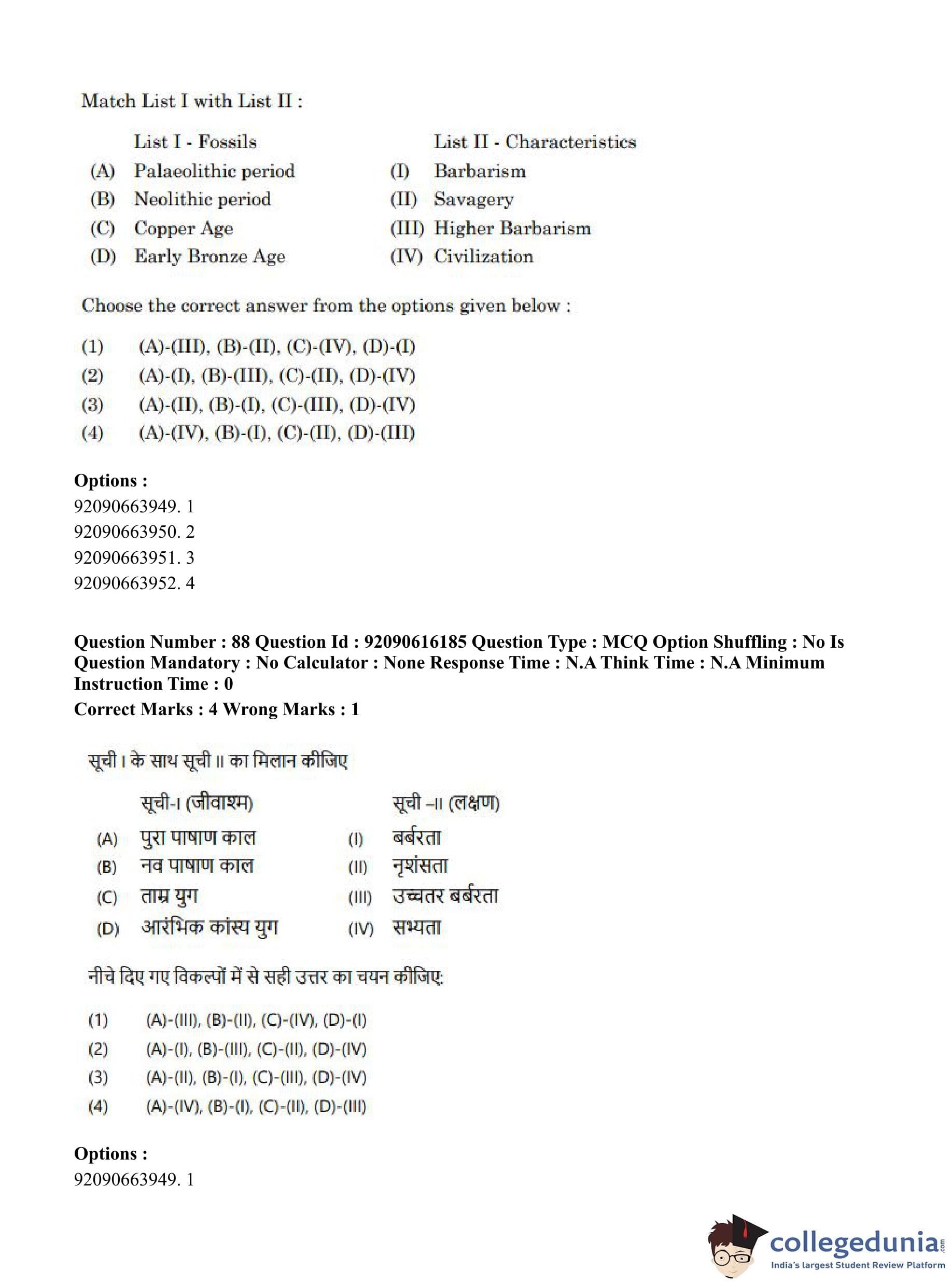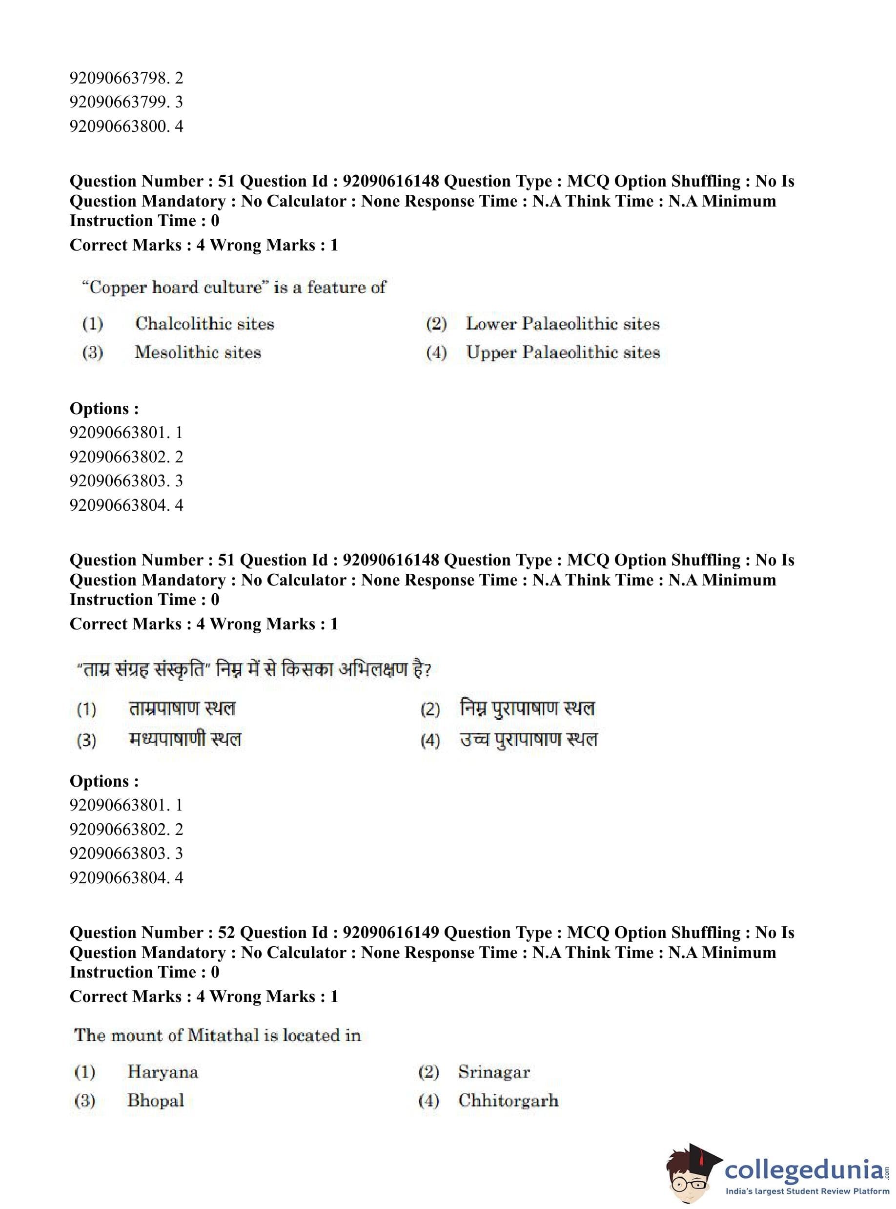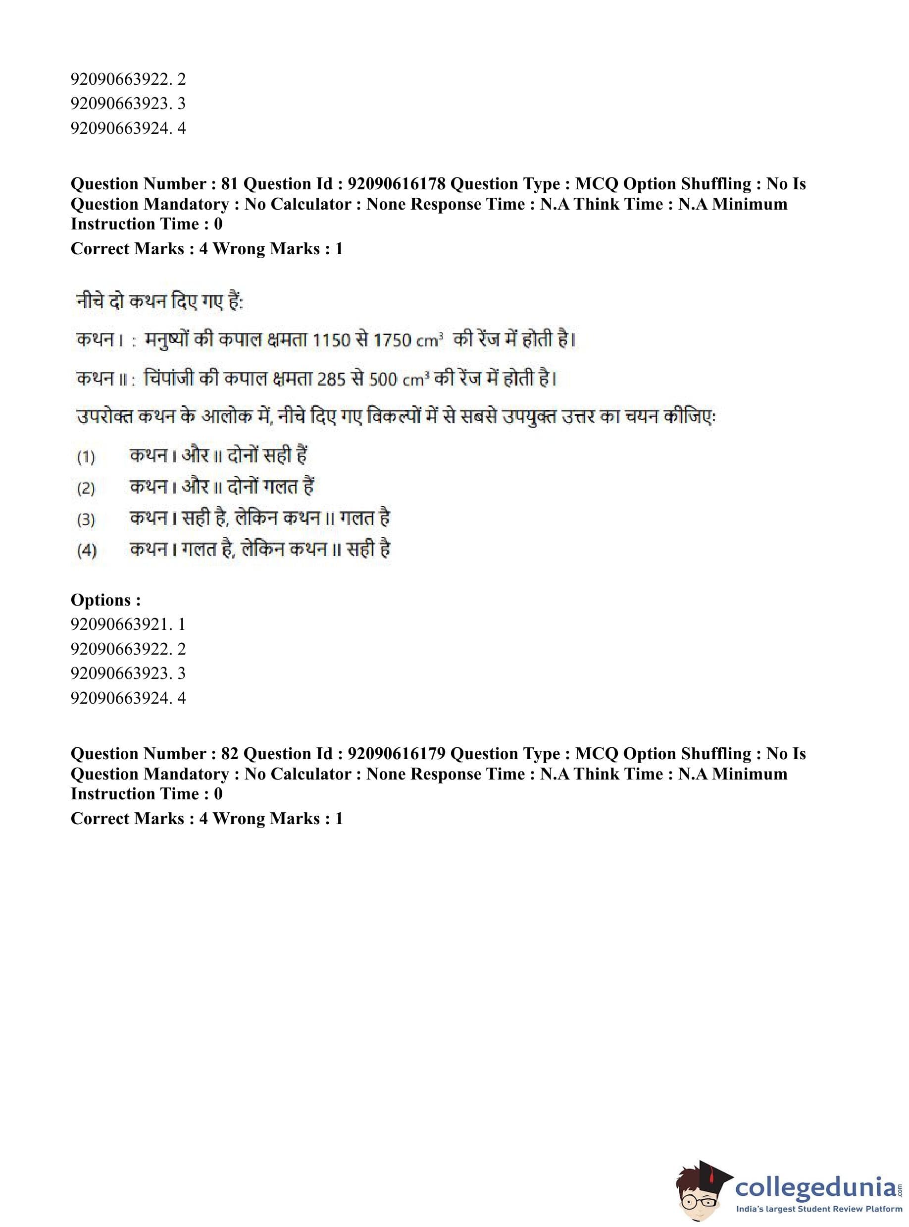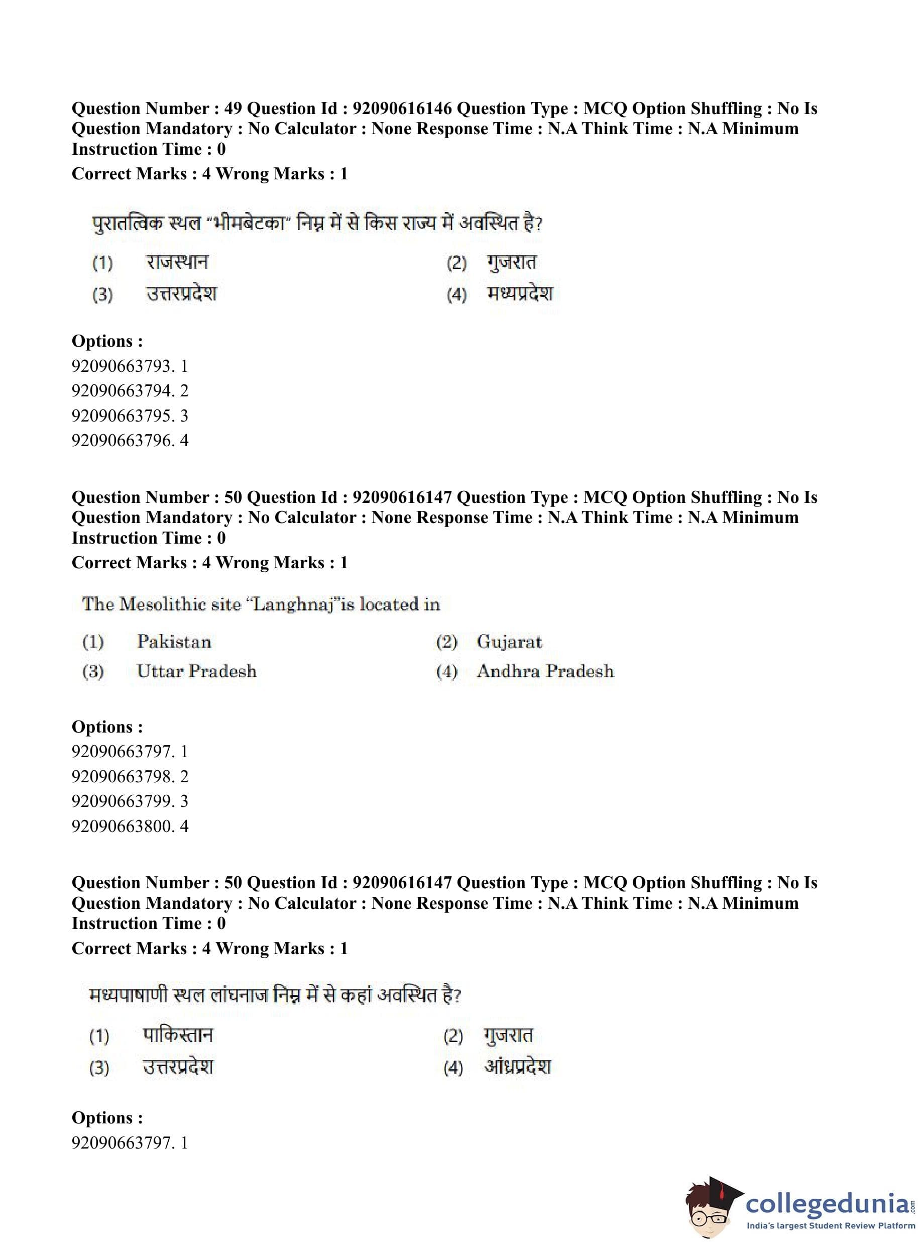 CUET PG 2023 Anthropology Question Paper in Hindi (June 14 - Shift 1)