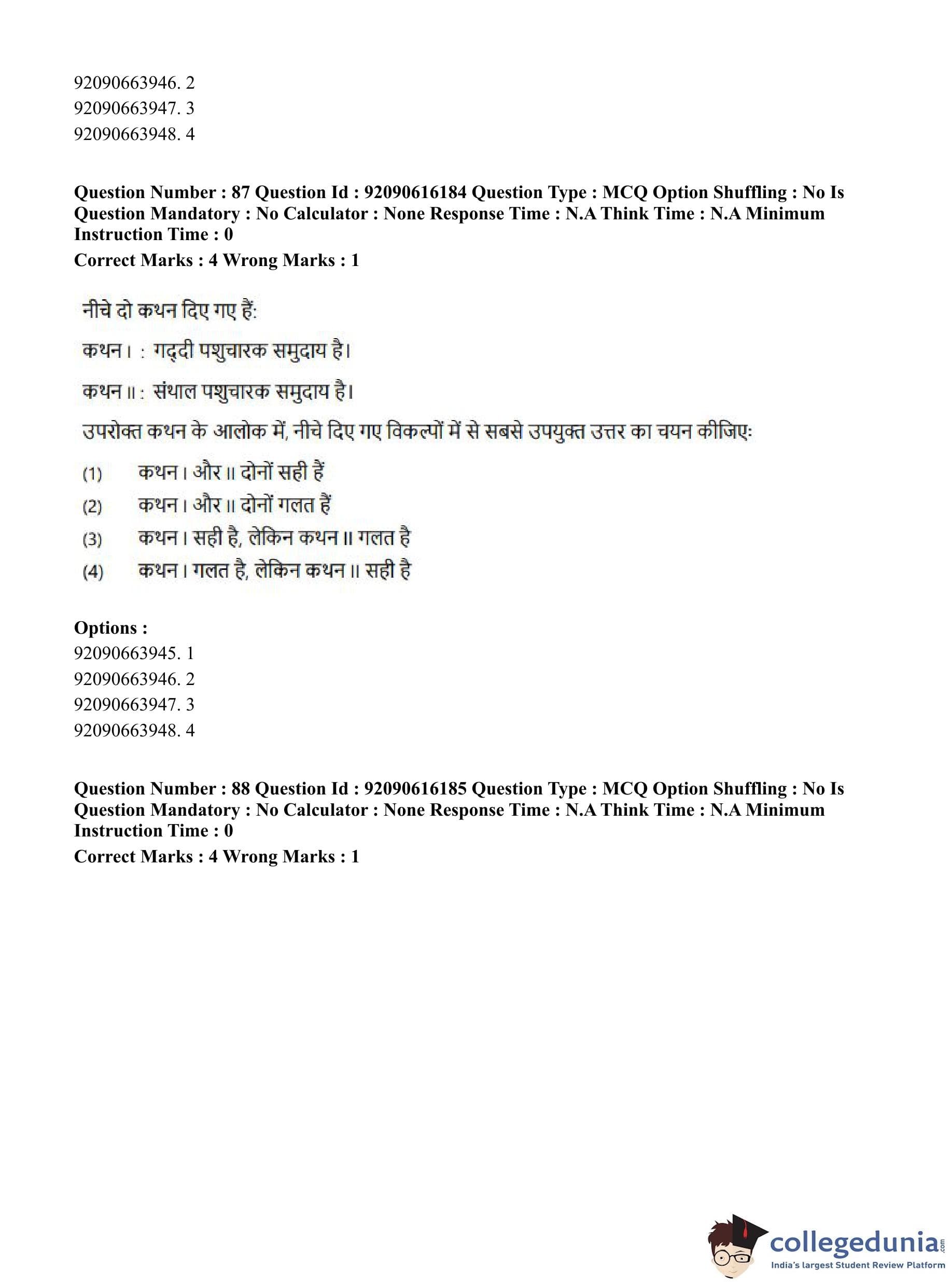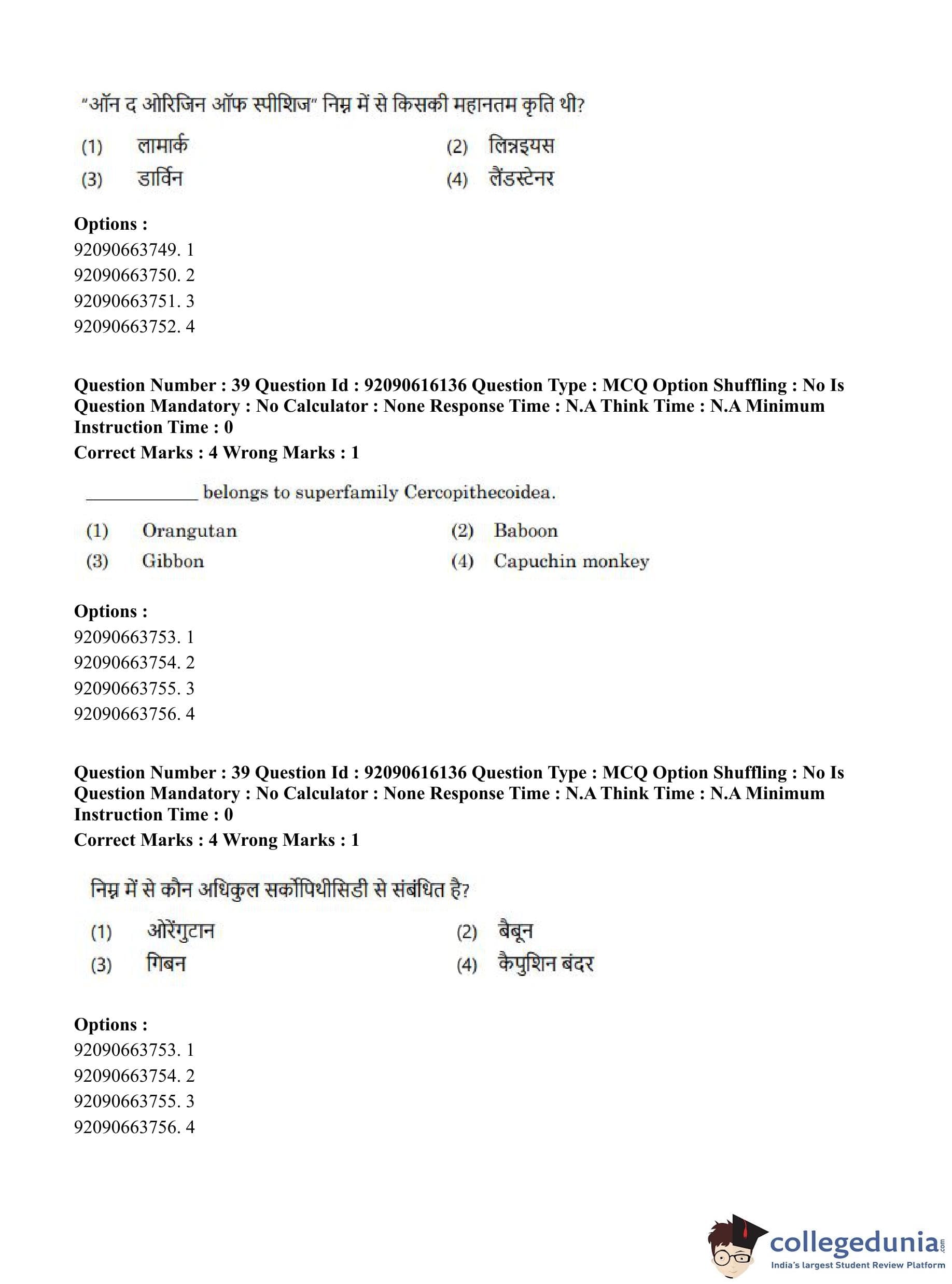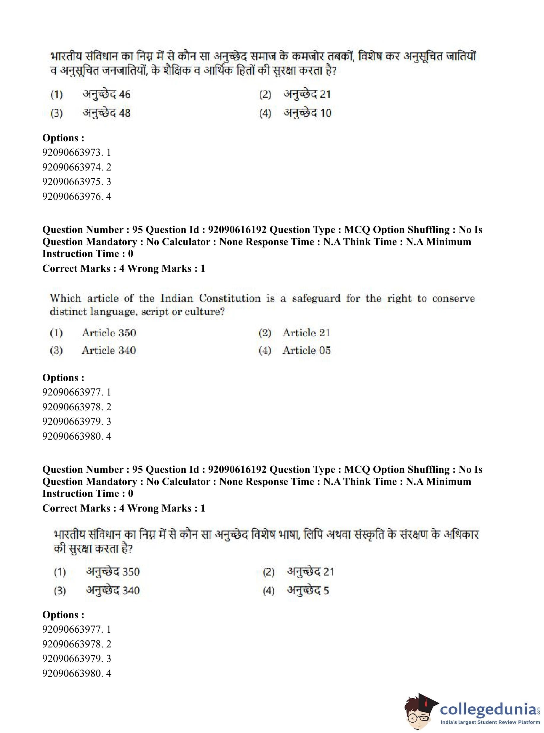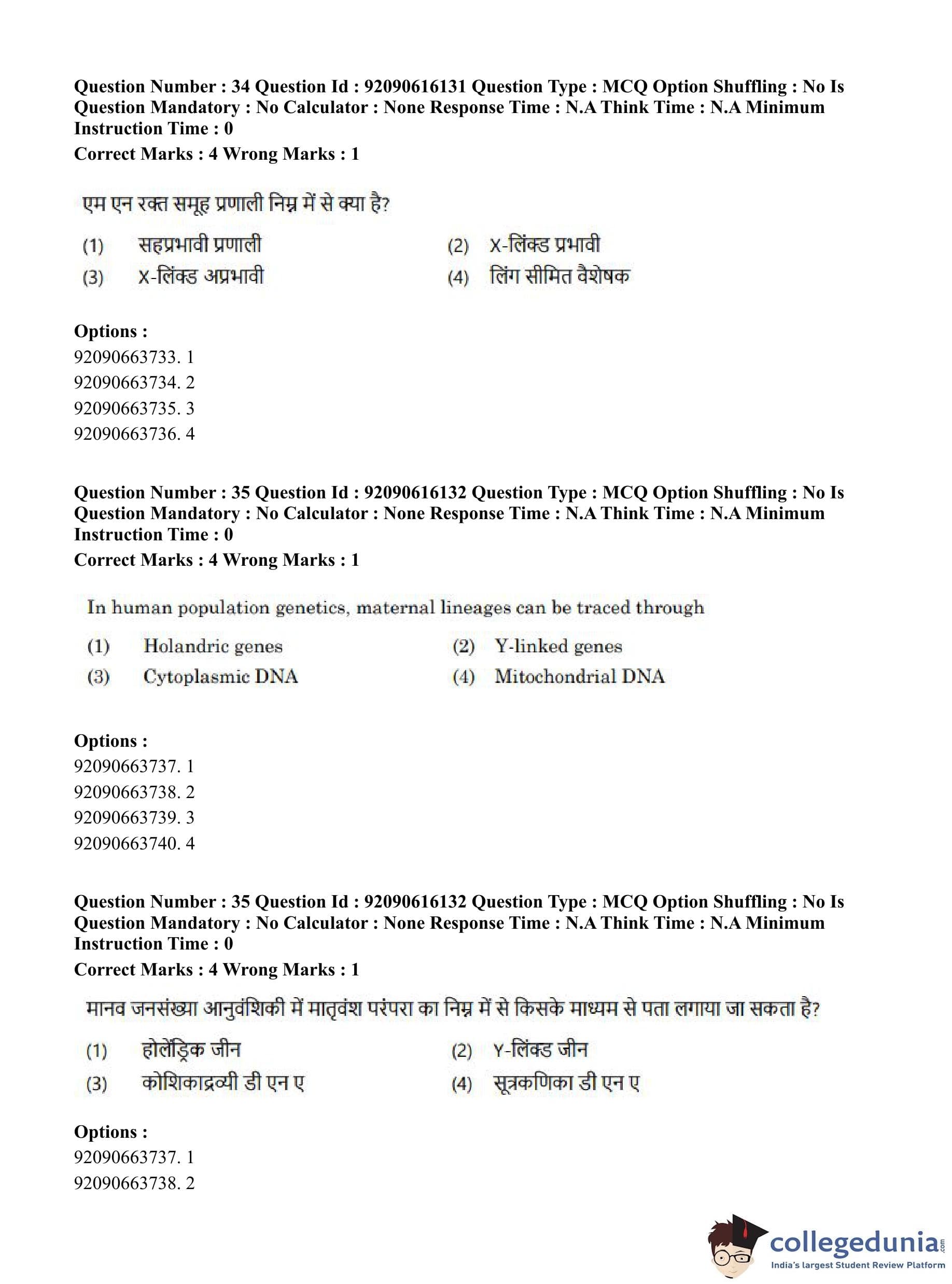 CUET PG 2023 Anthropology Question Paper in Hindi (June 14 - Shift 1)