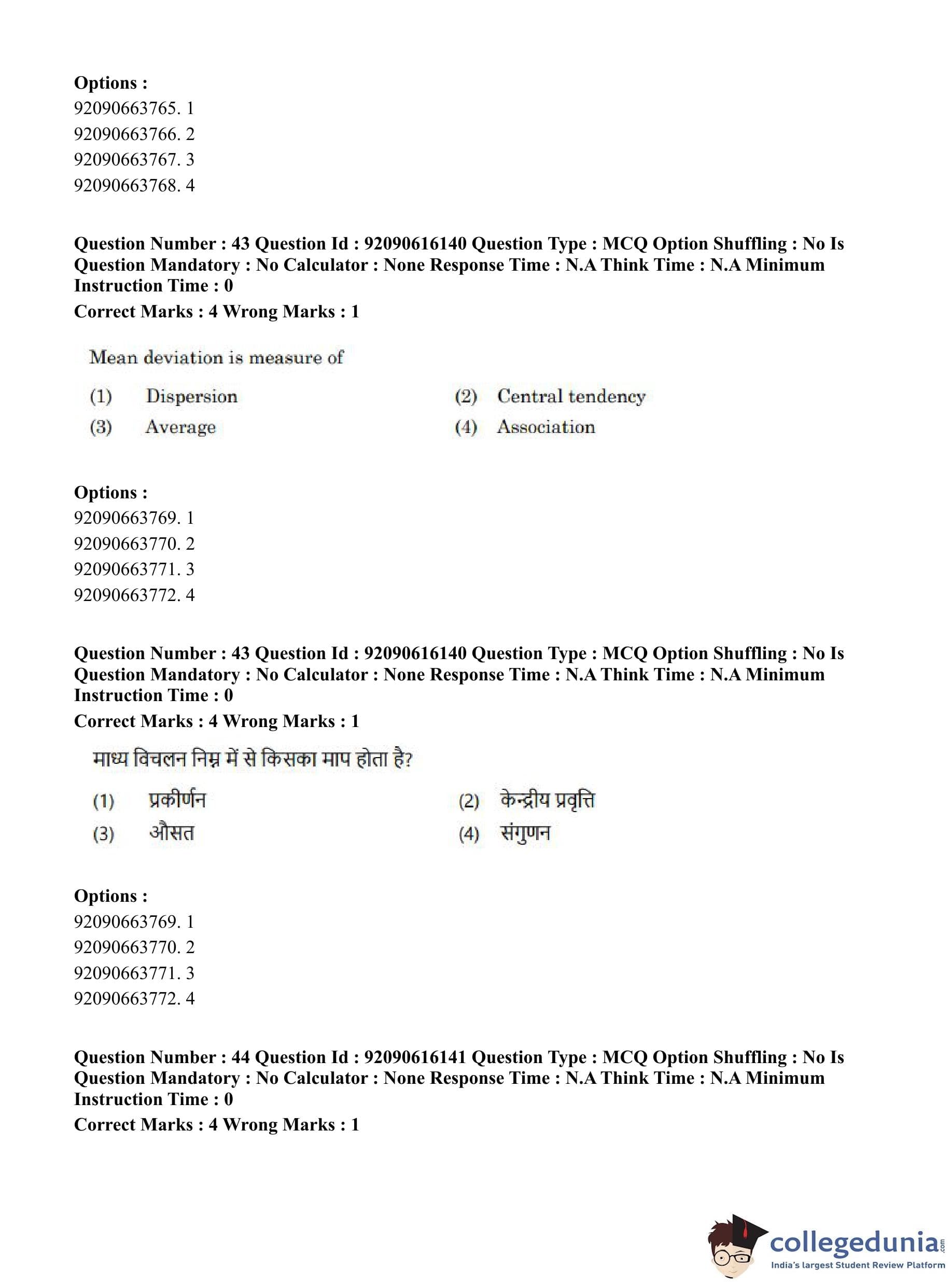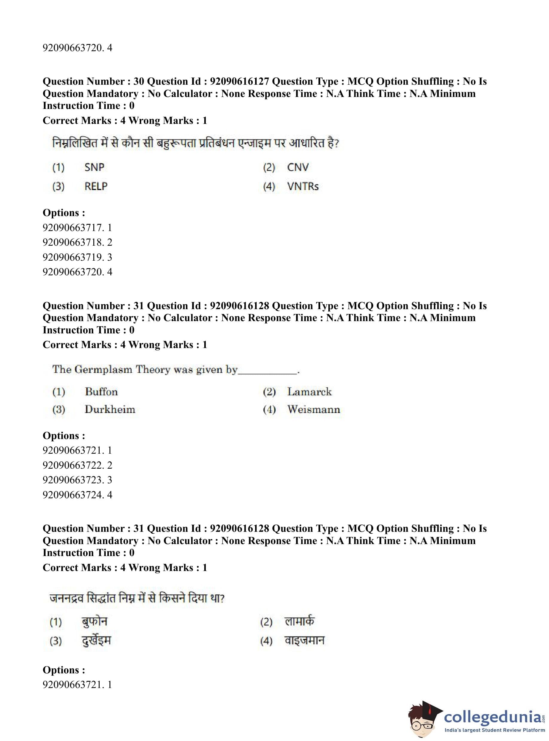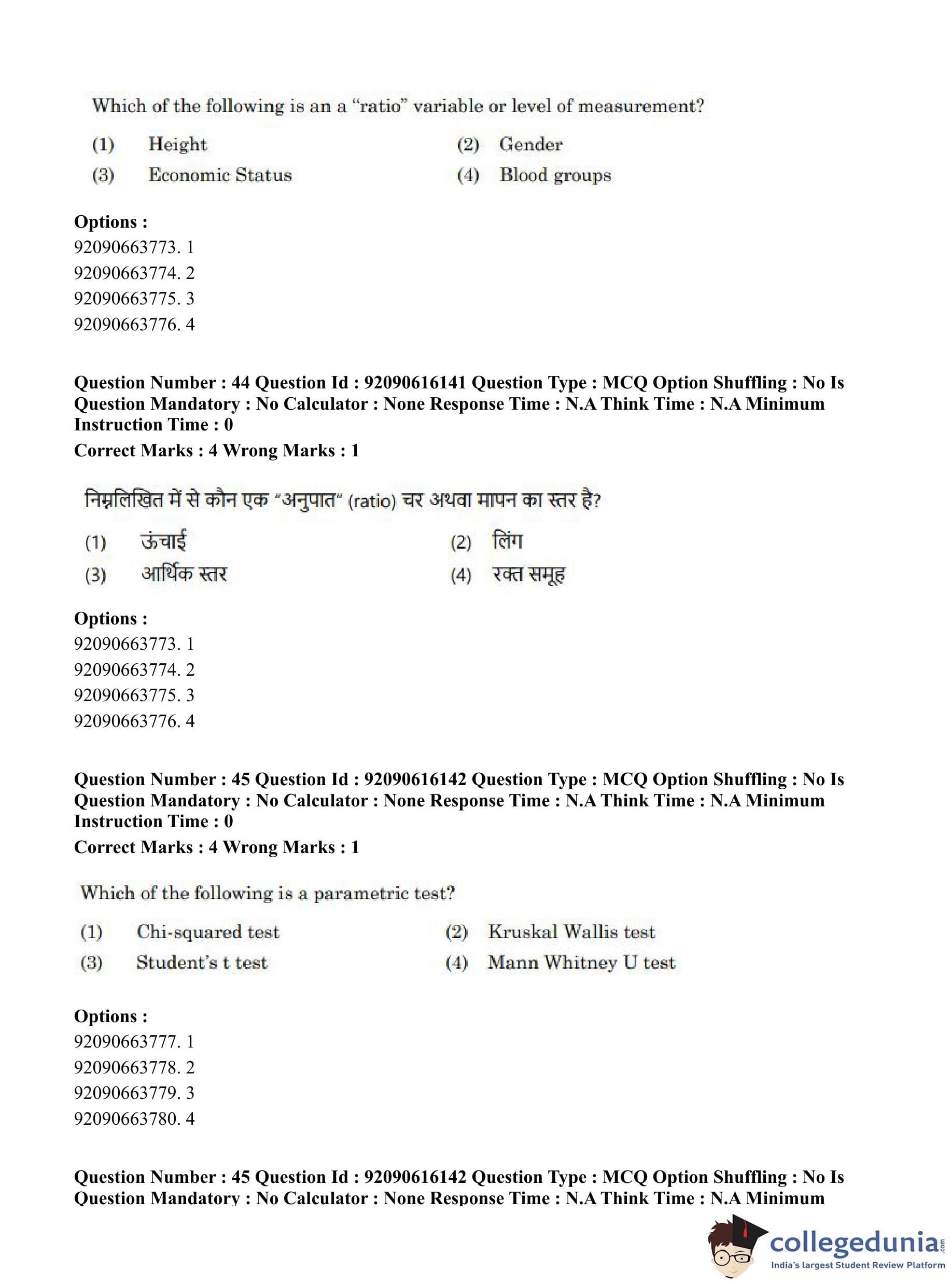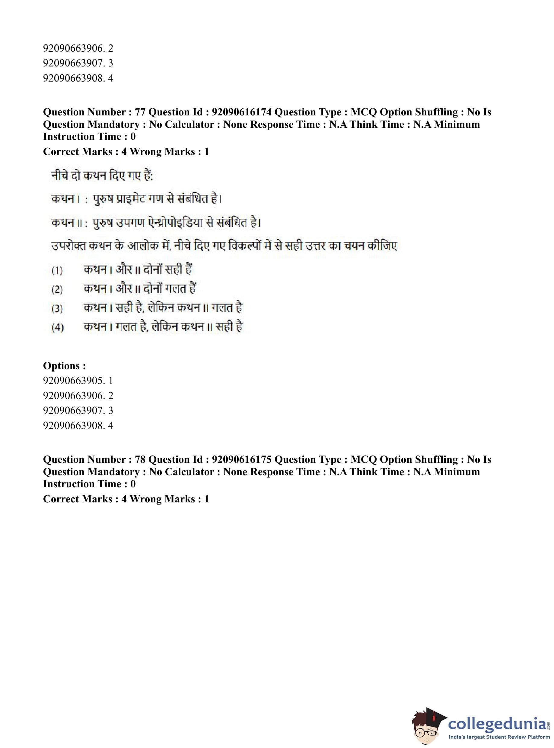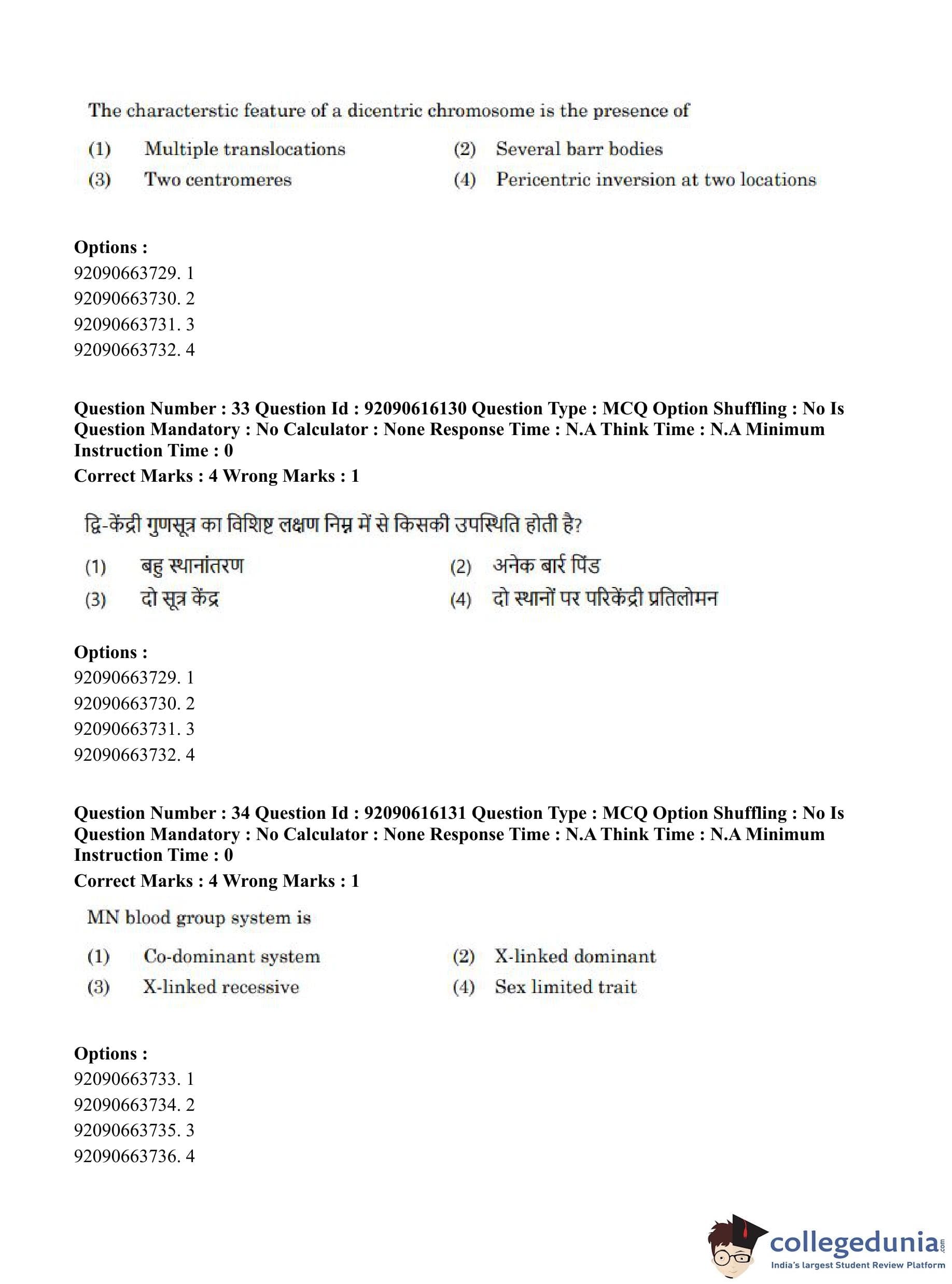CUET PG 2023 Anthropology Question Paper in Hindi (June 14 - Shift 1)