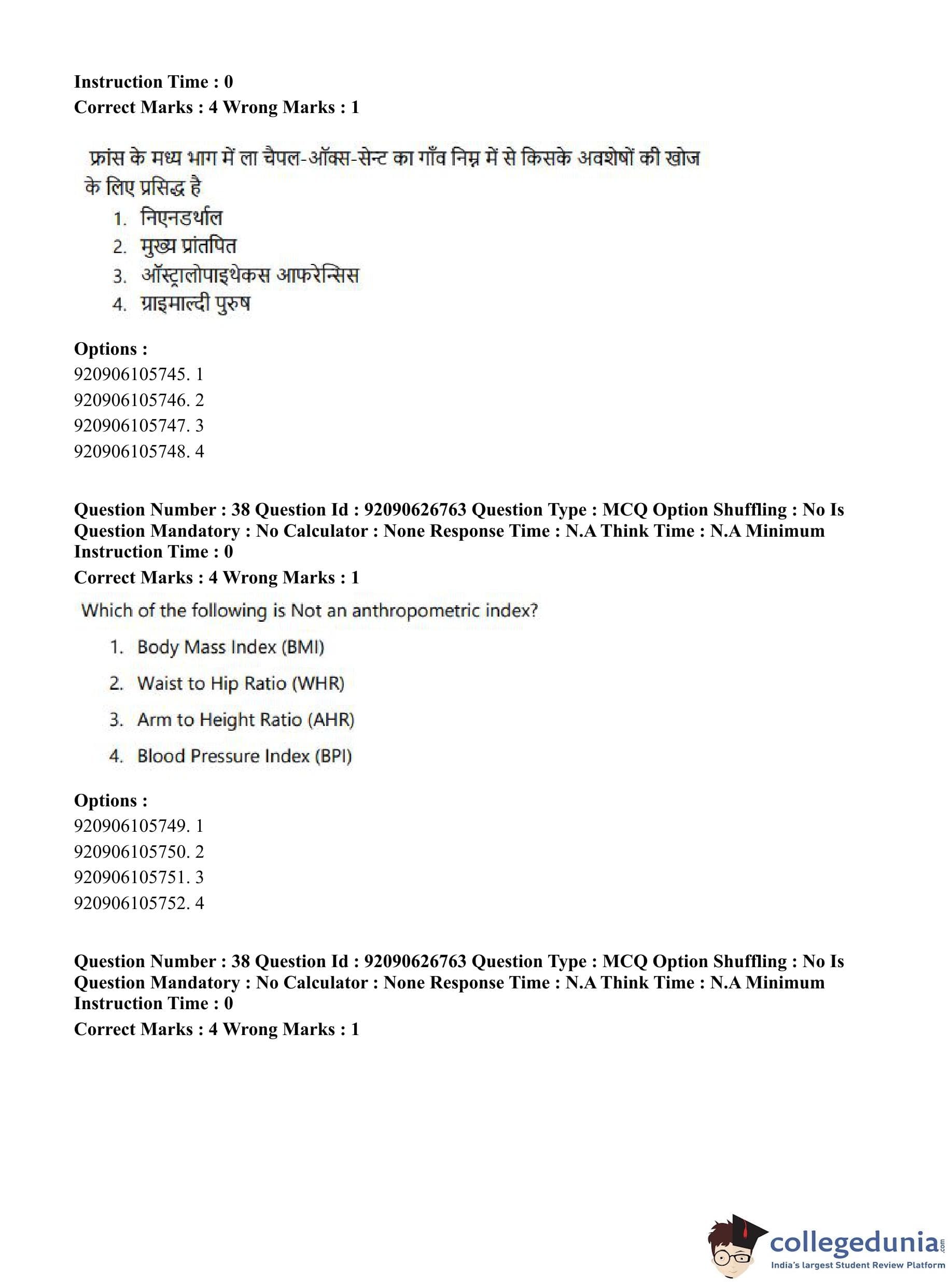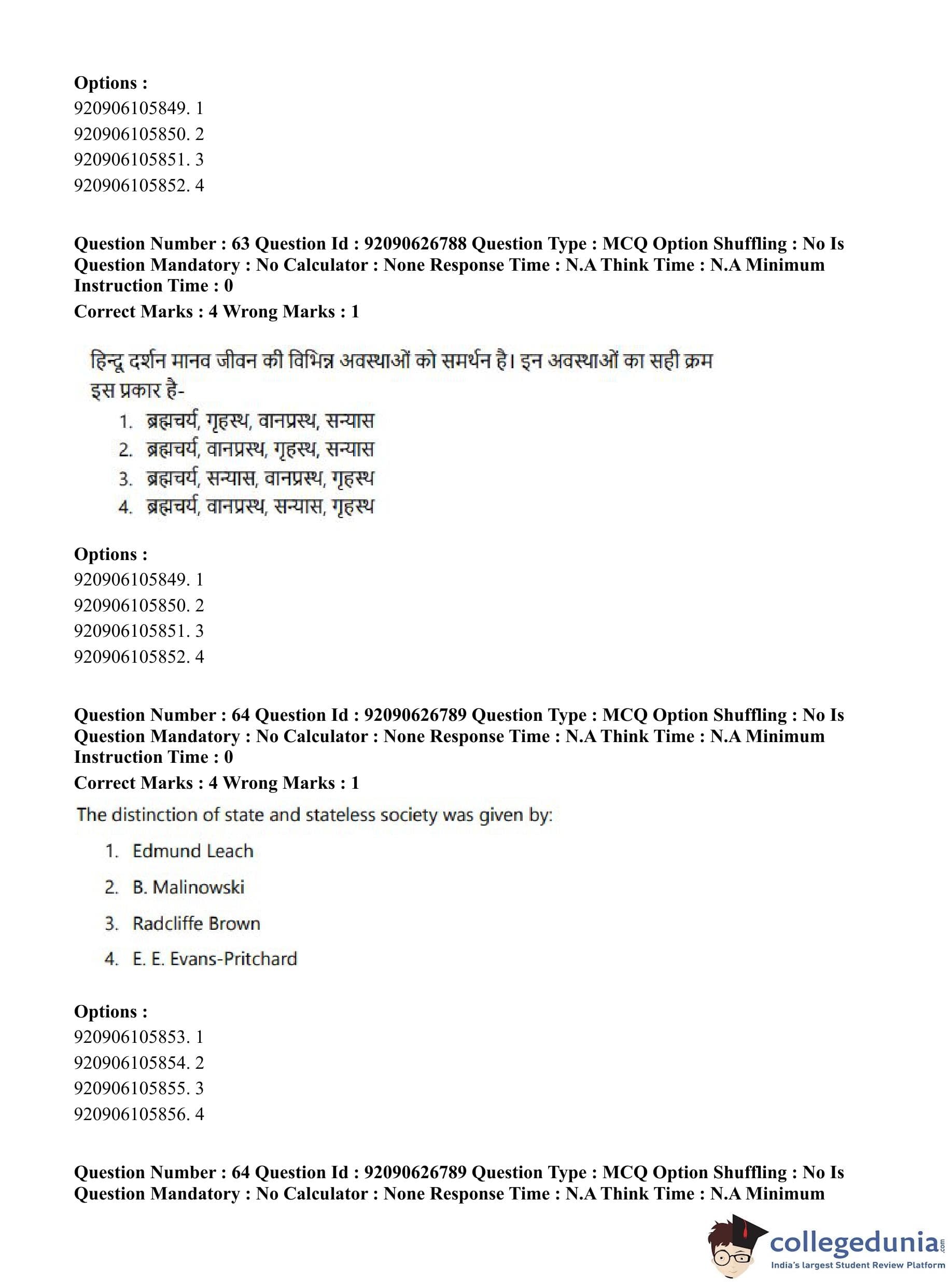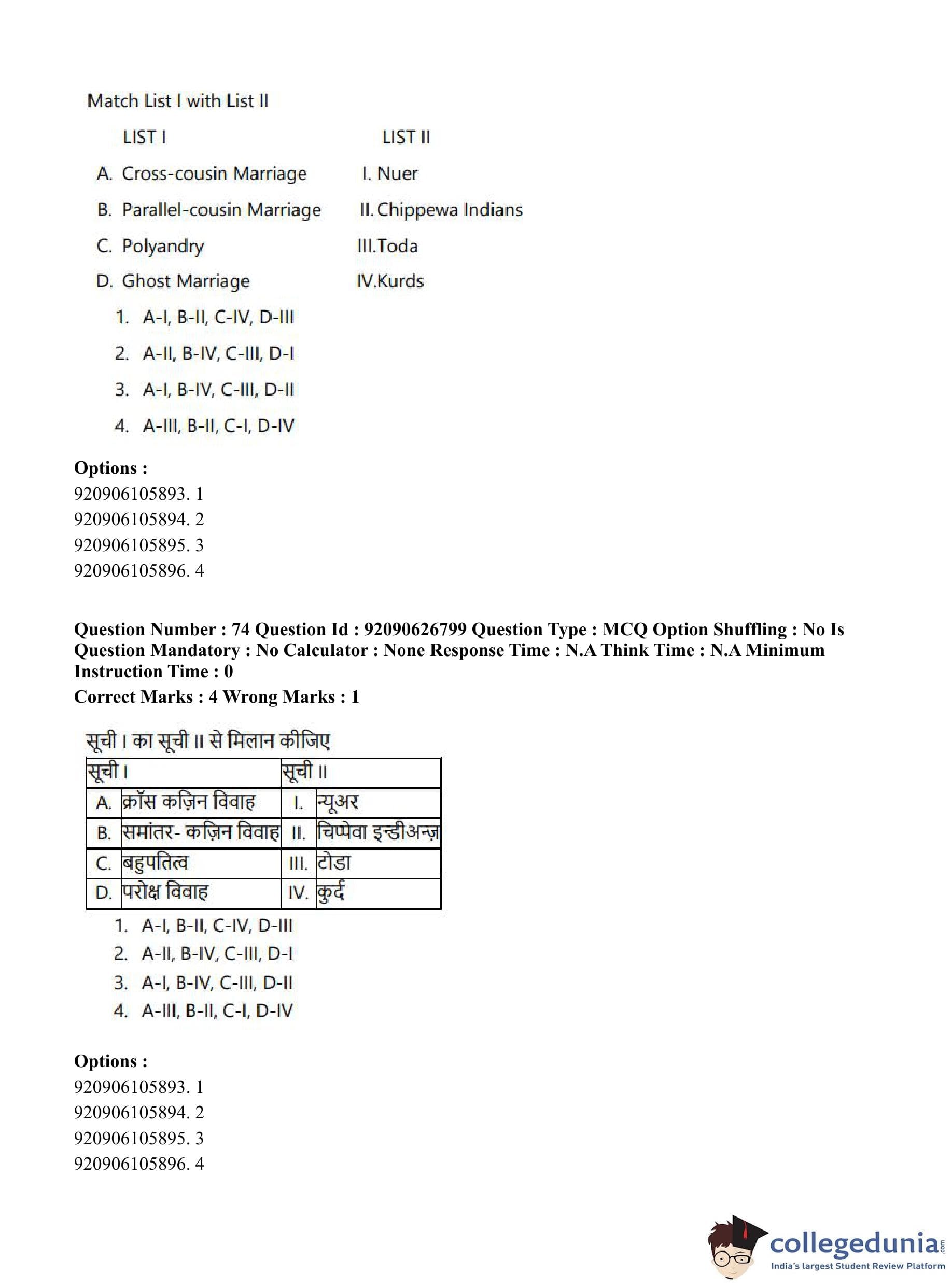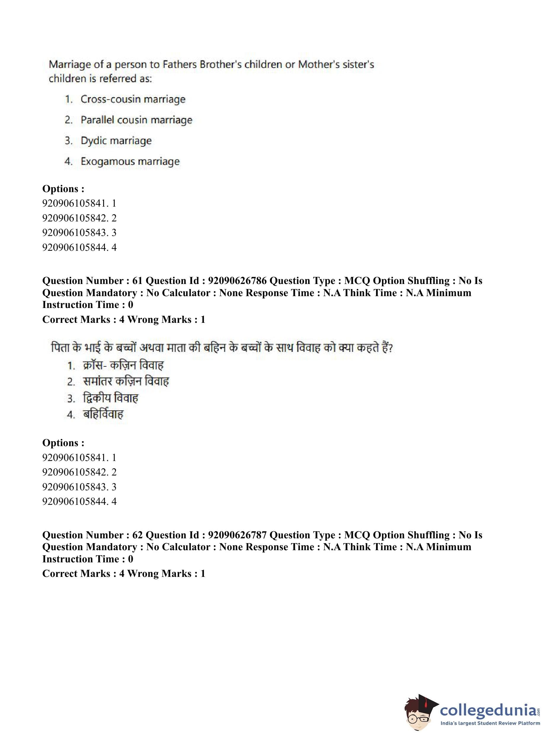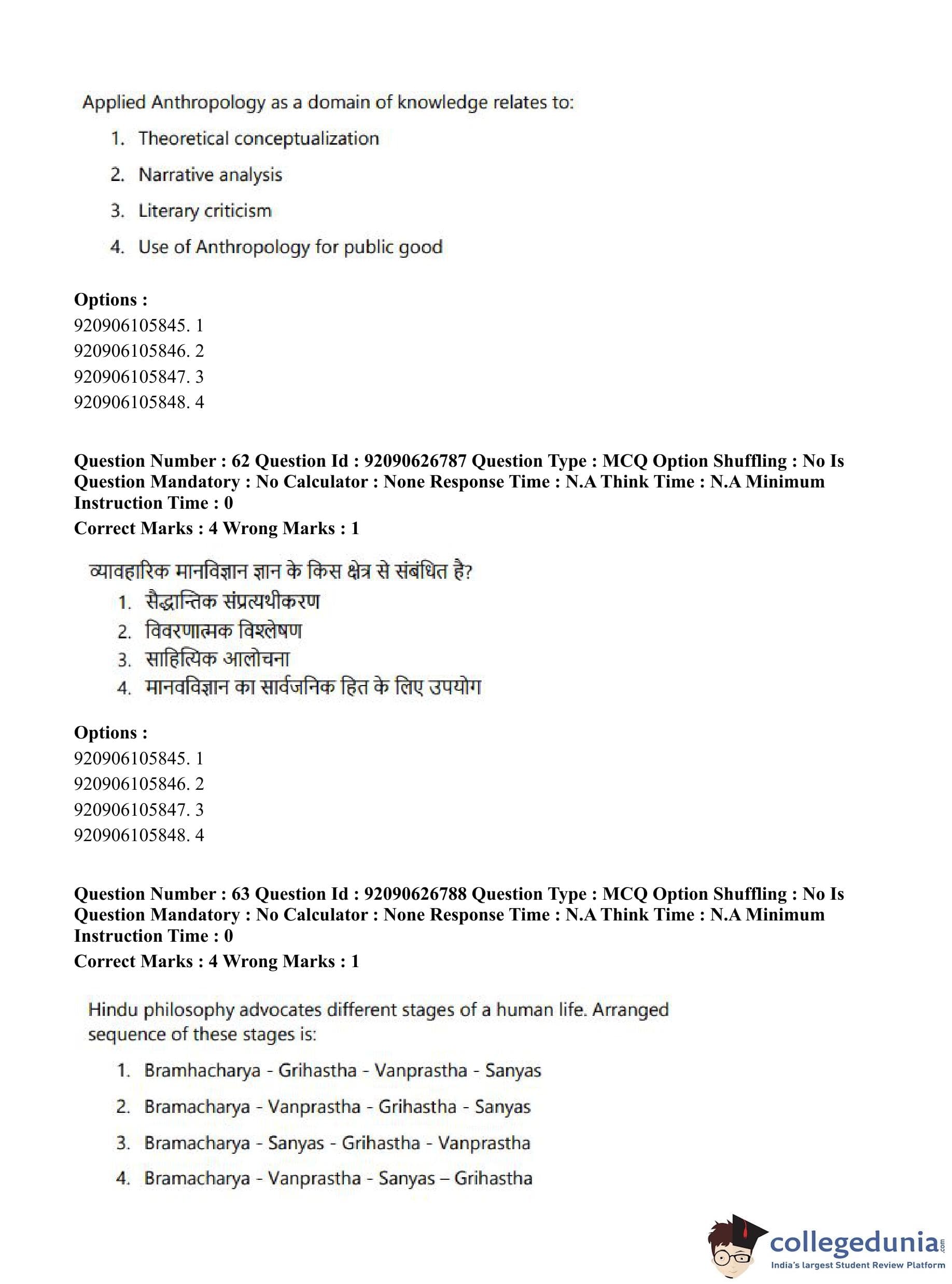 CUET PG 2023 Anthropology Question Paper in Hindi (June 26 - Shift 2)