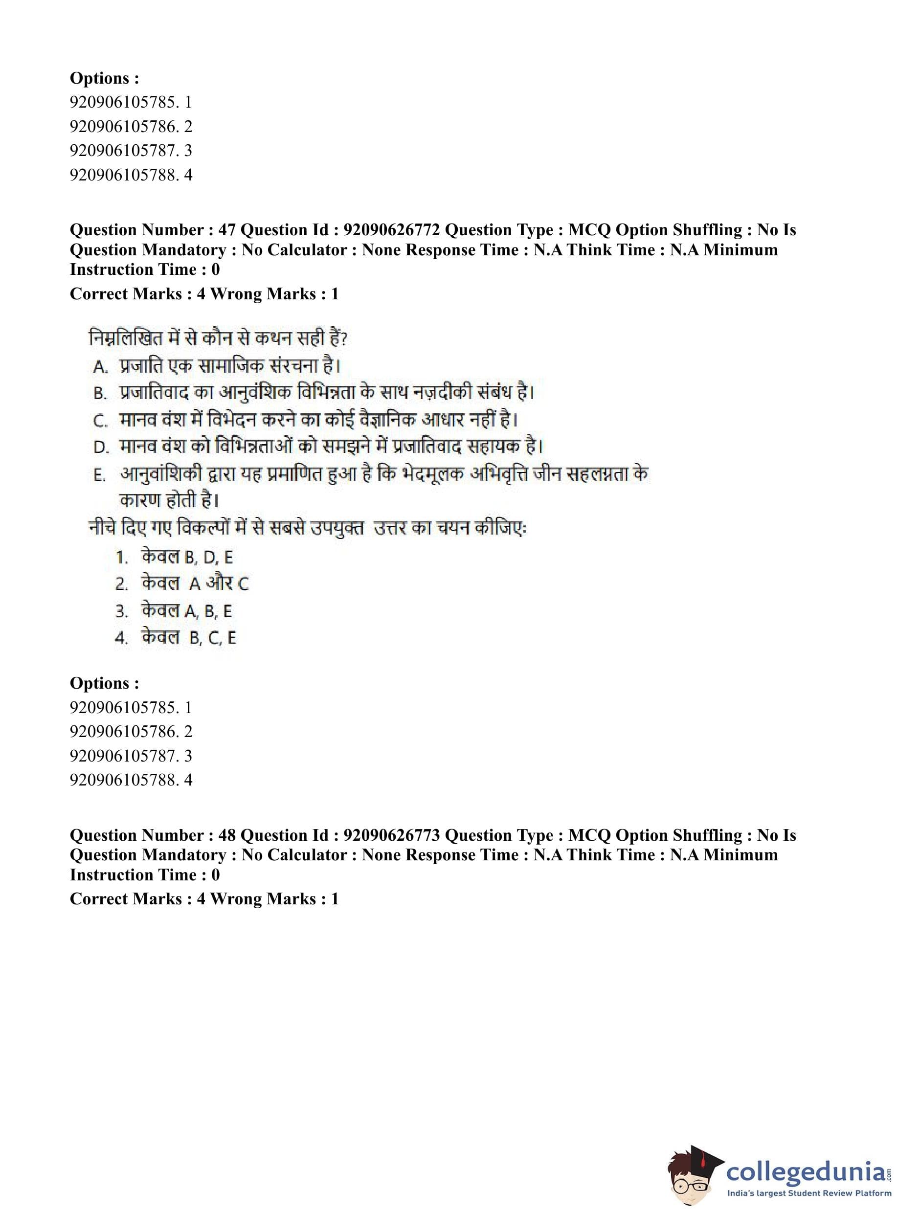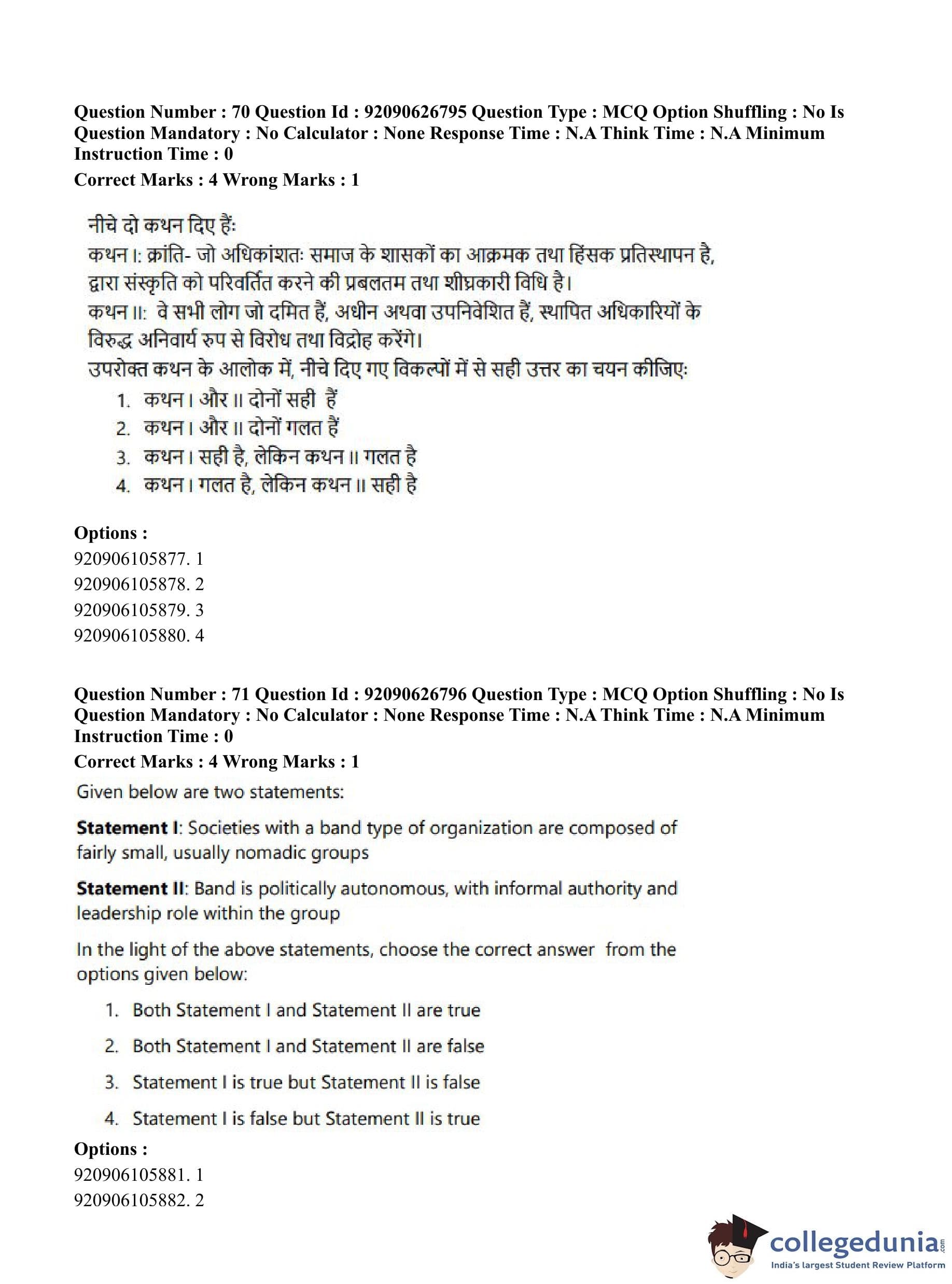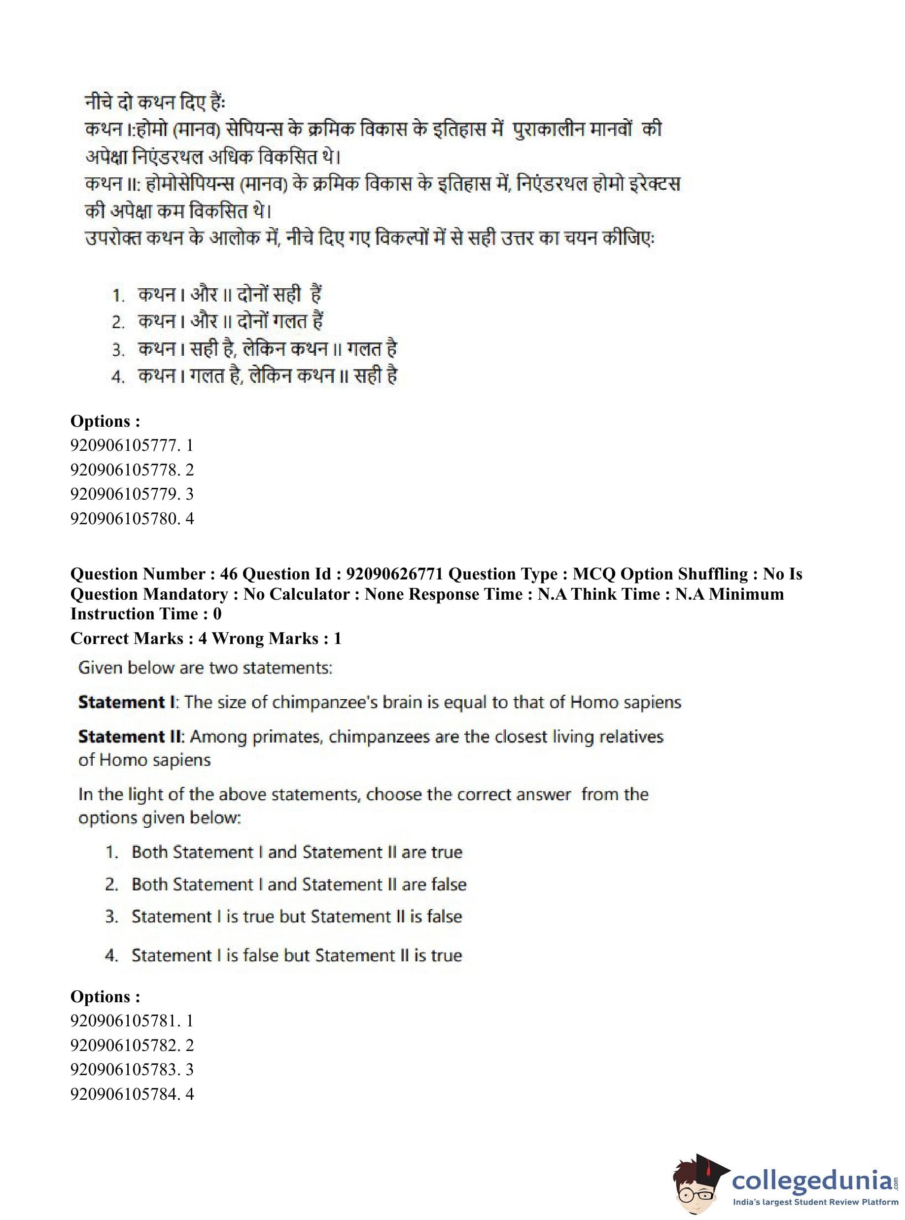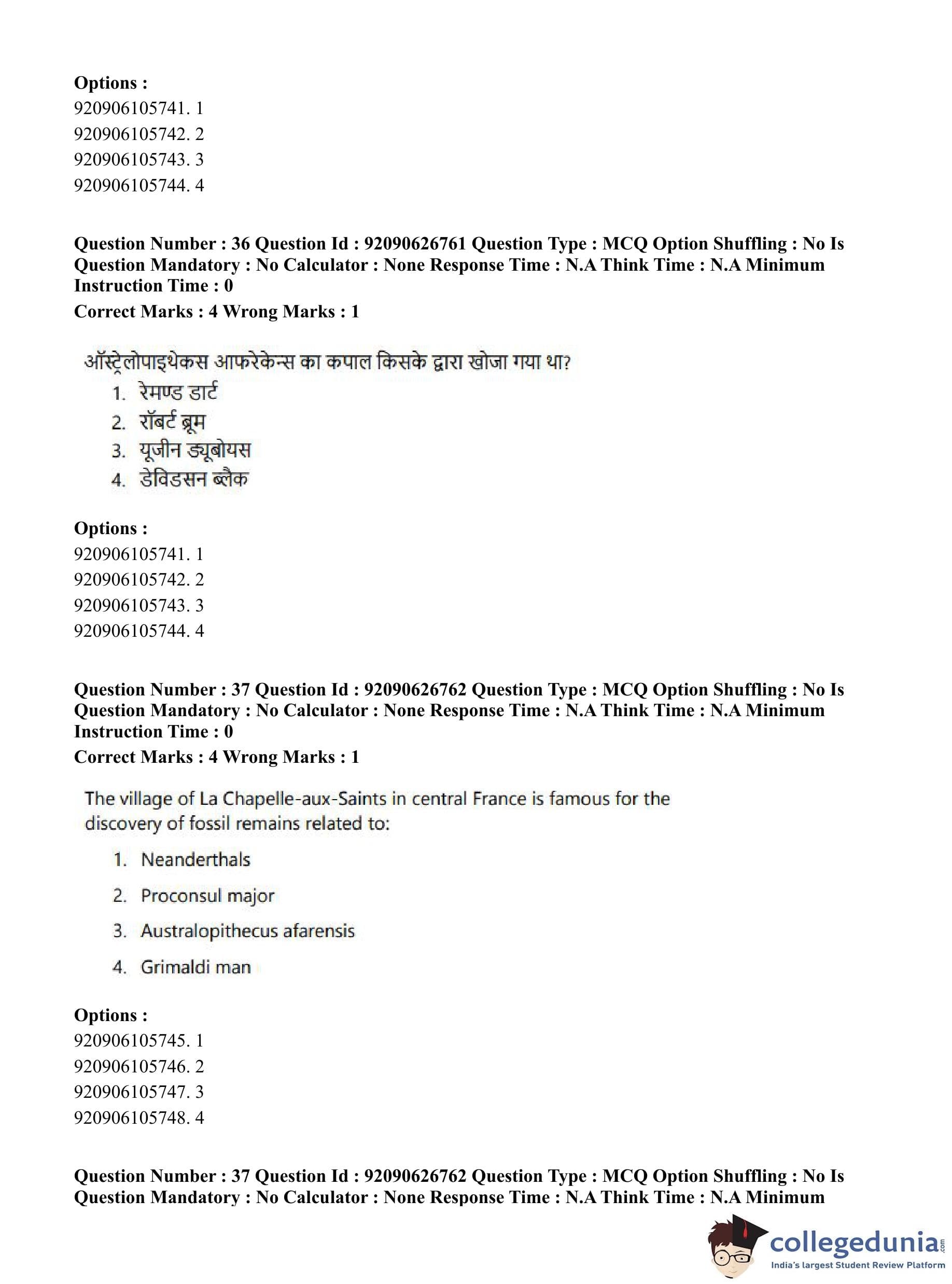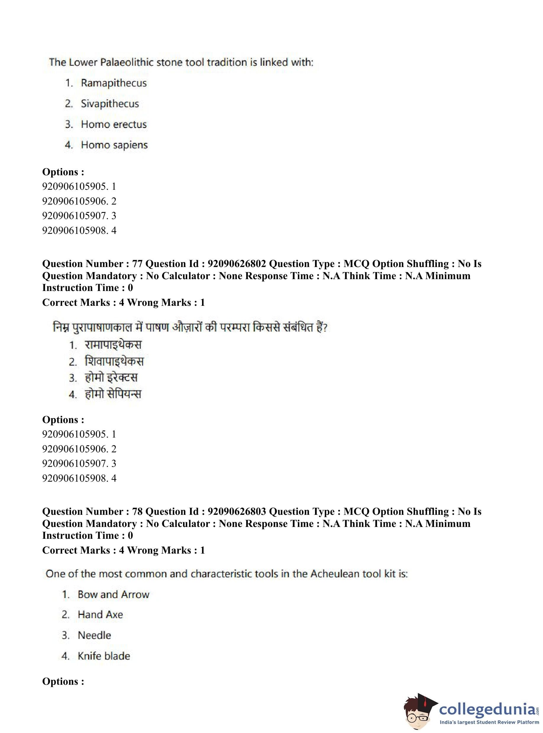 CUET PG 2023 Anthropology Question Paper in Hindi (June 26 - Shift 2)