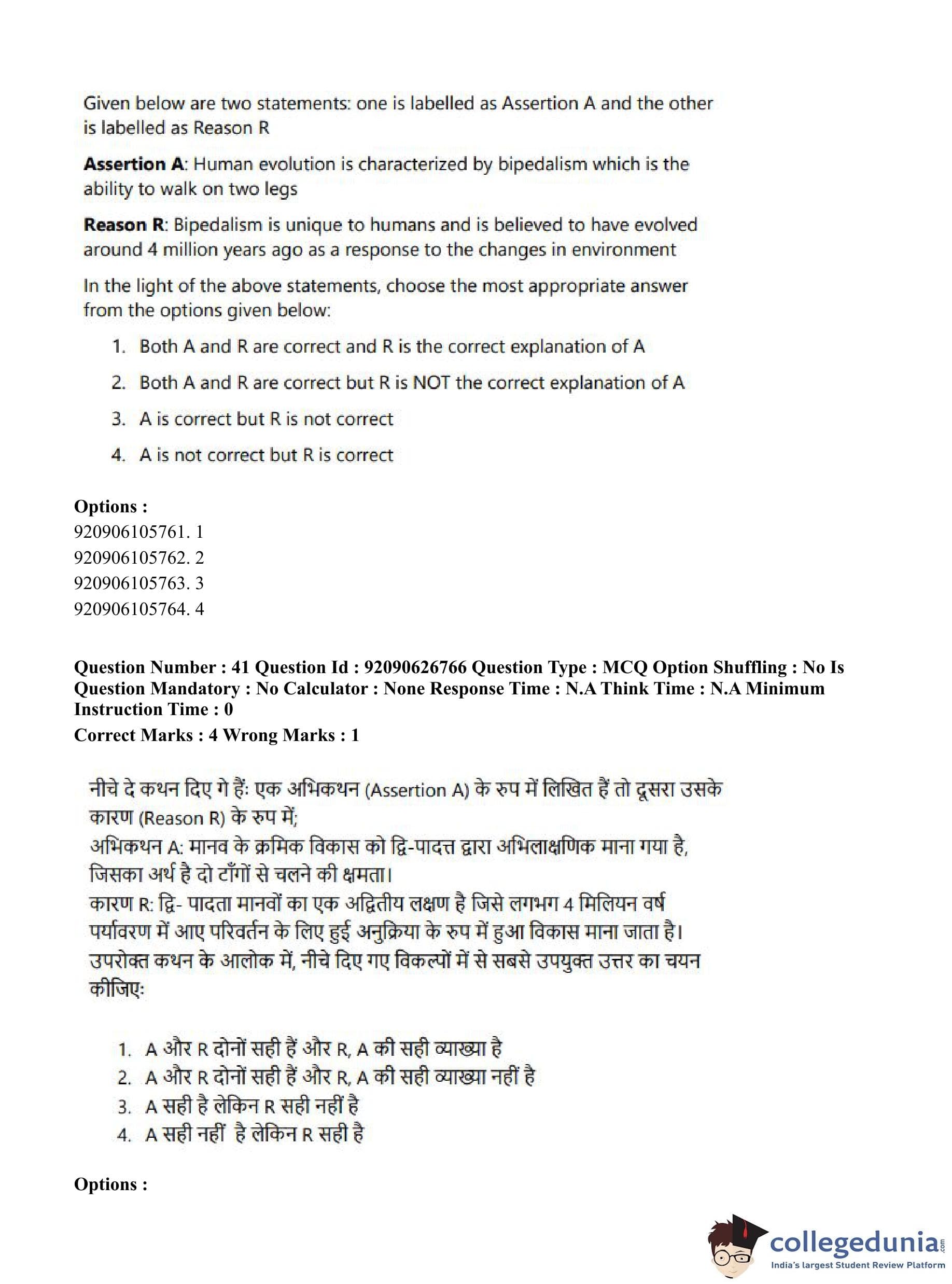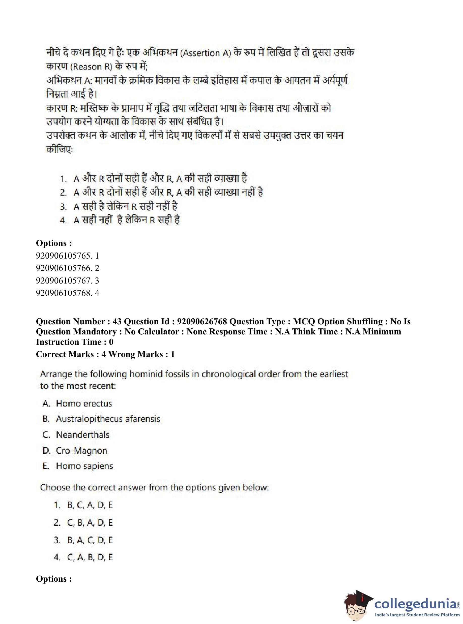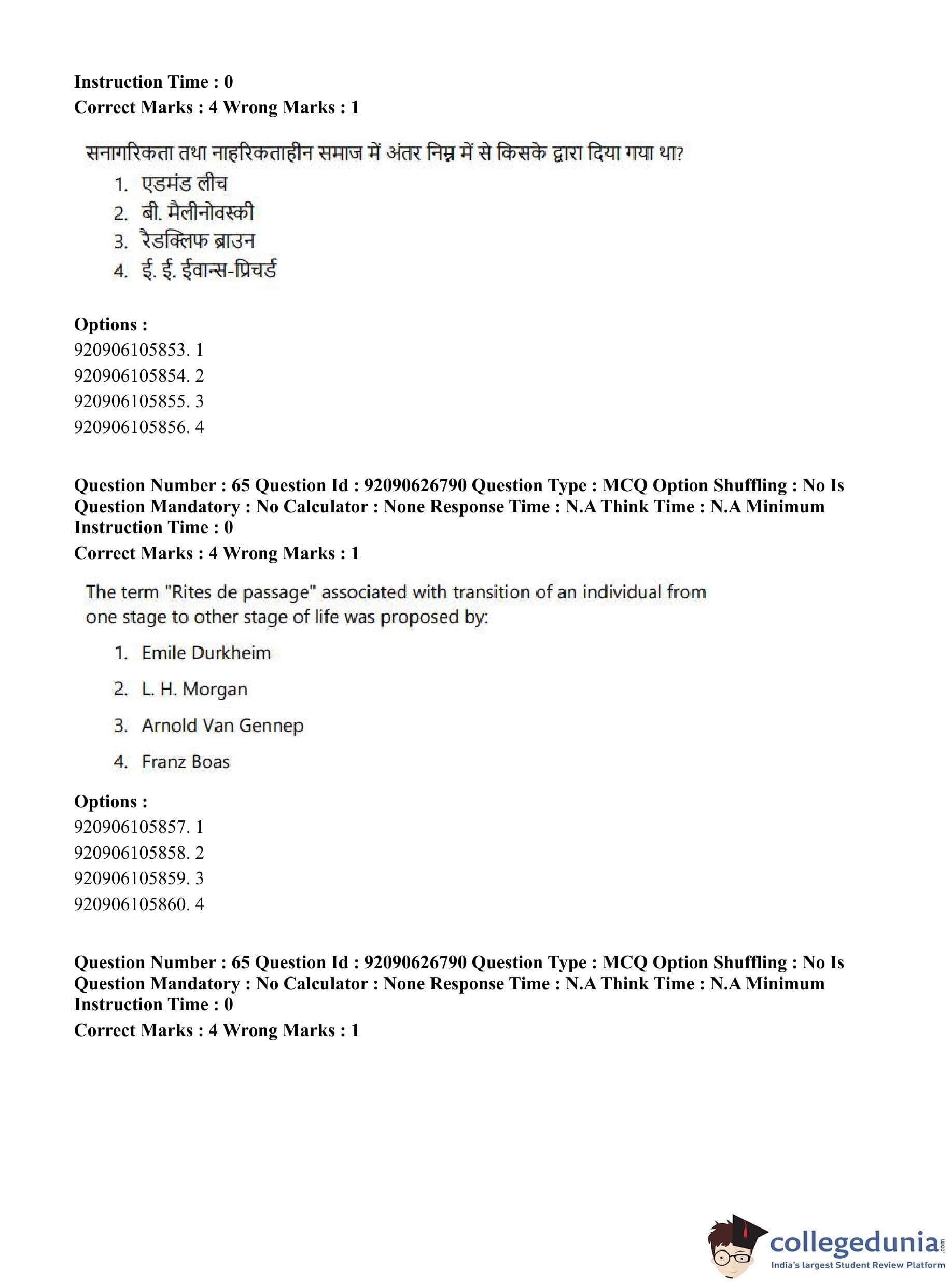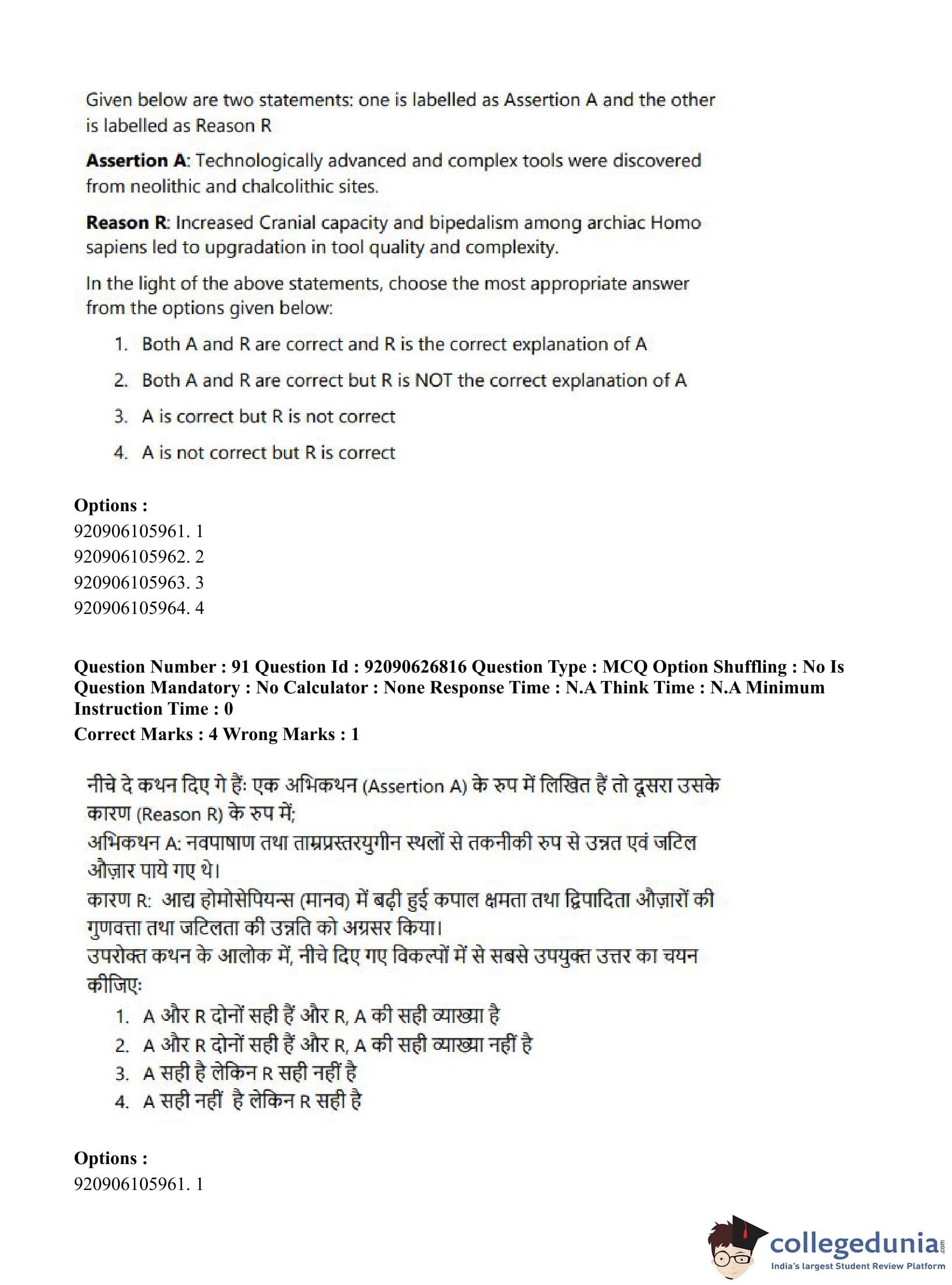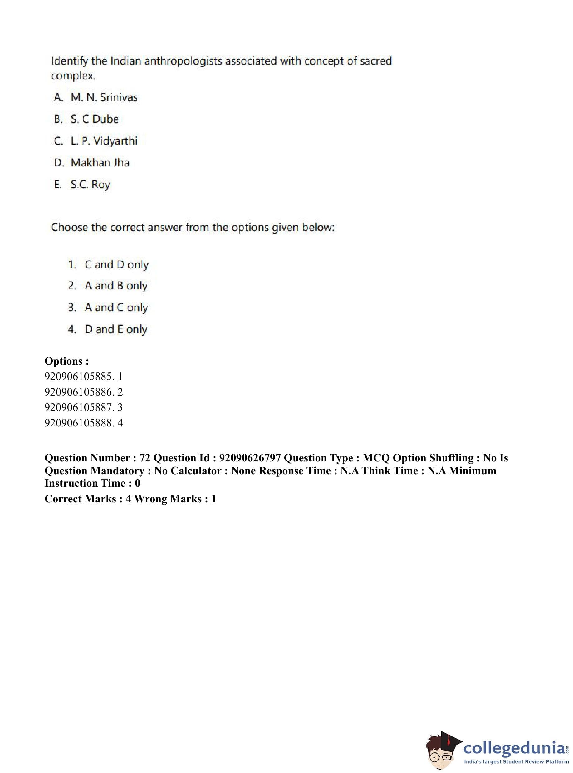 CUET PG 2023 Anthropology Question Paper in Hindi (June 26 - Shift 2)
