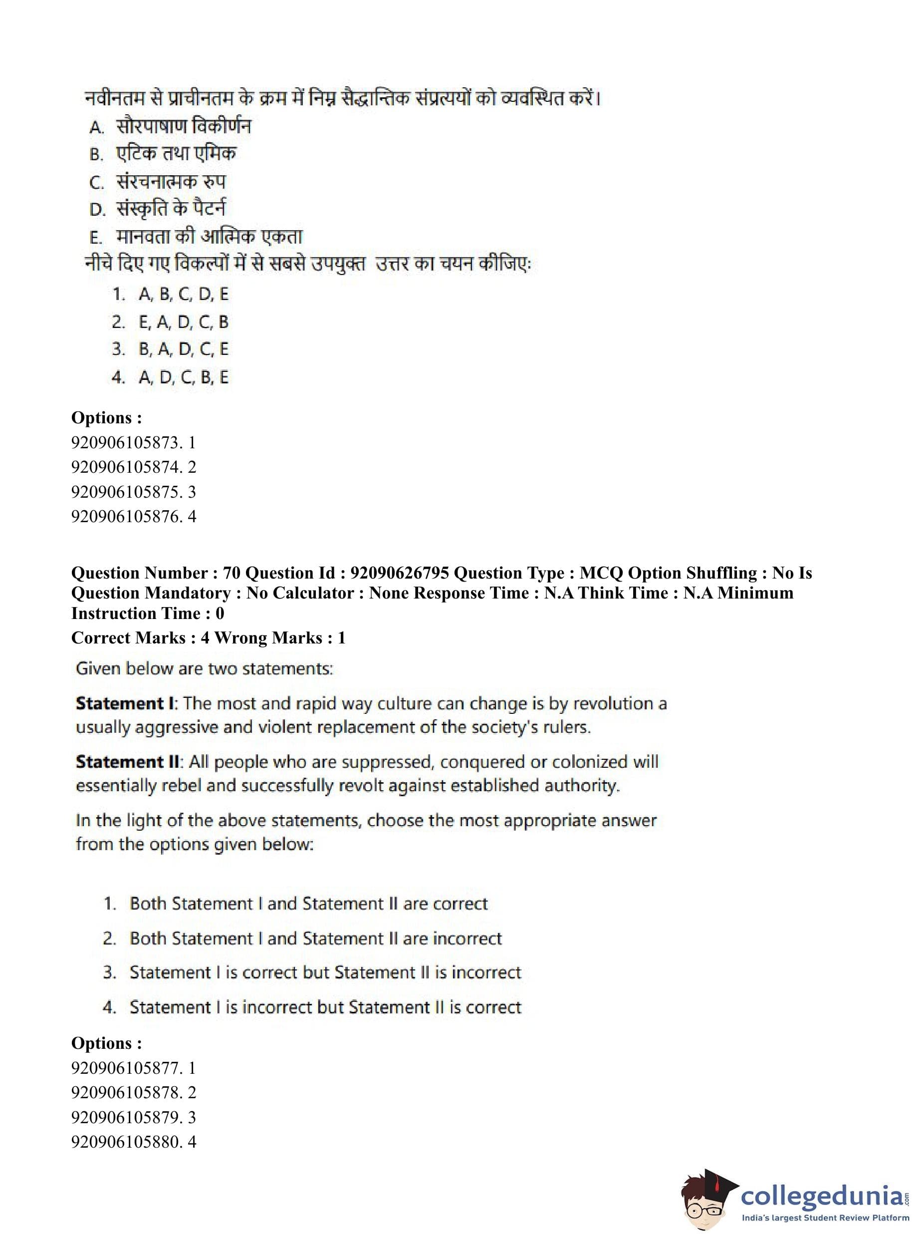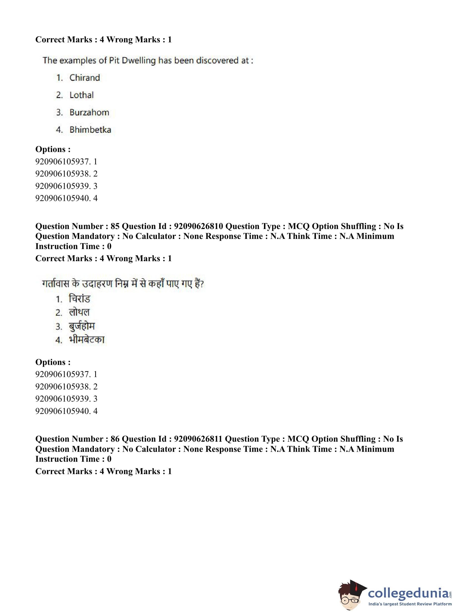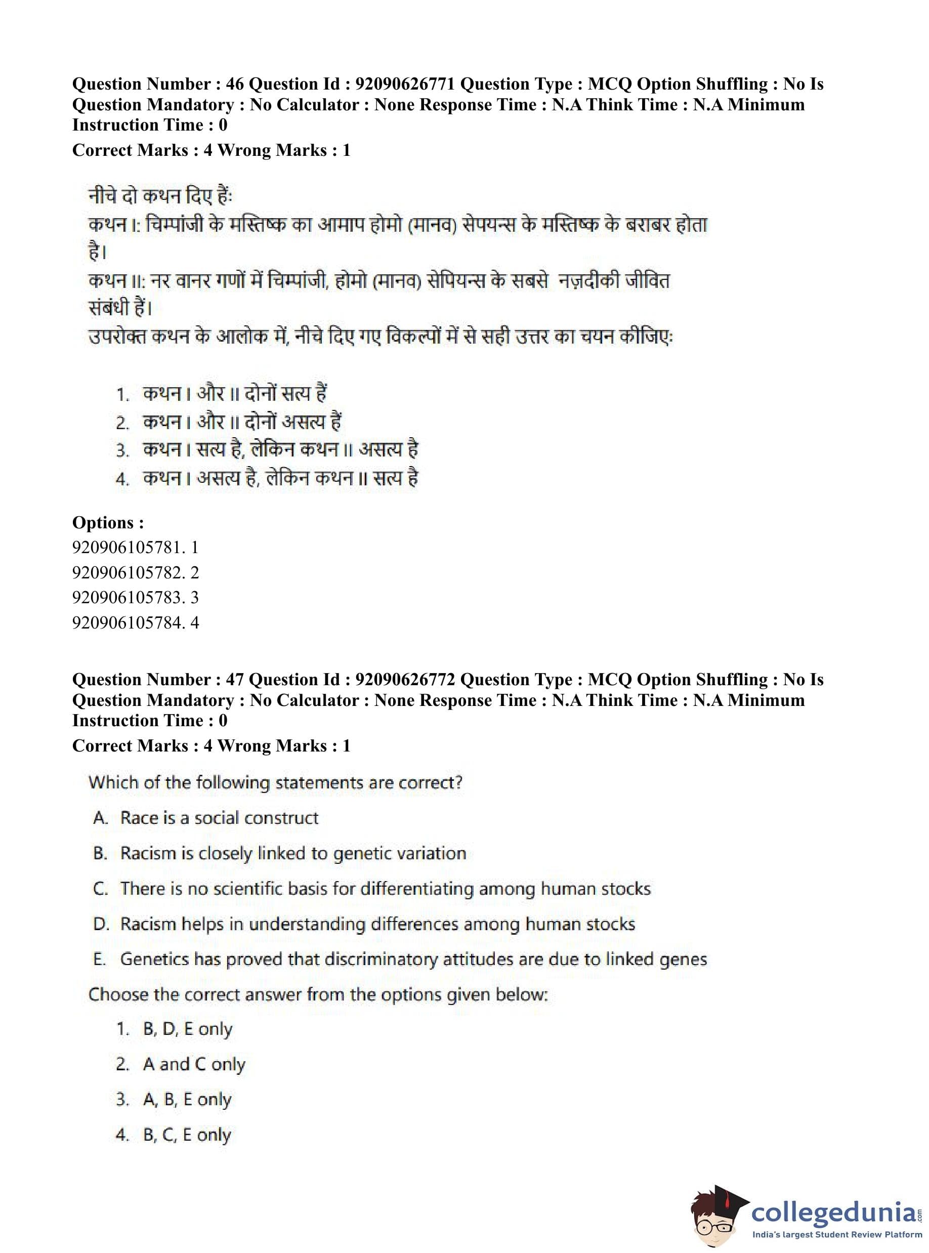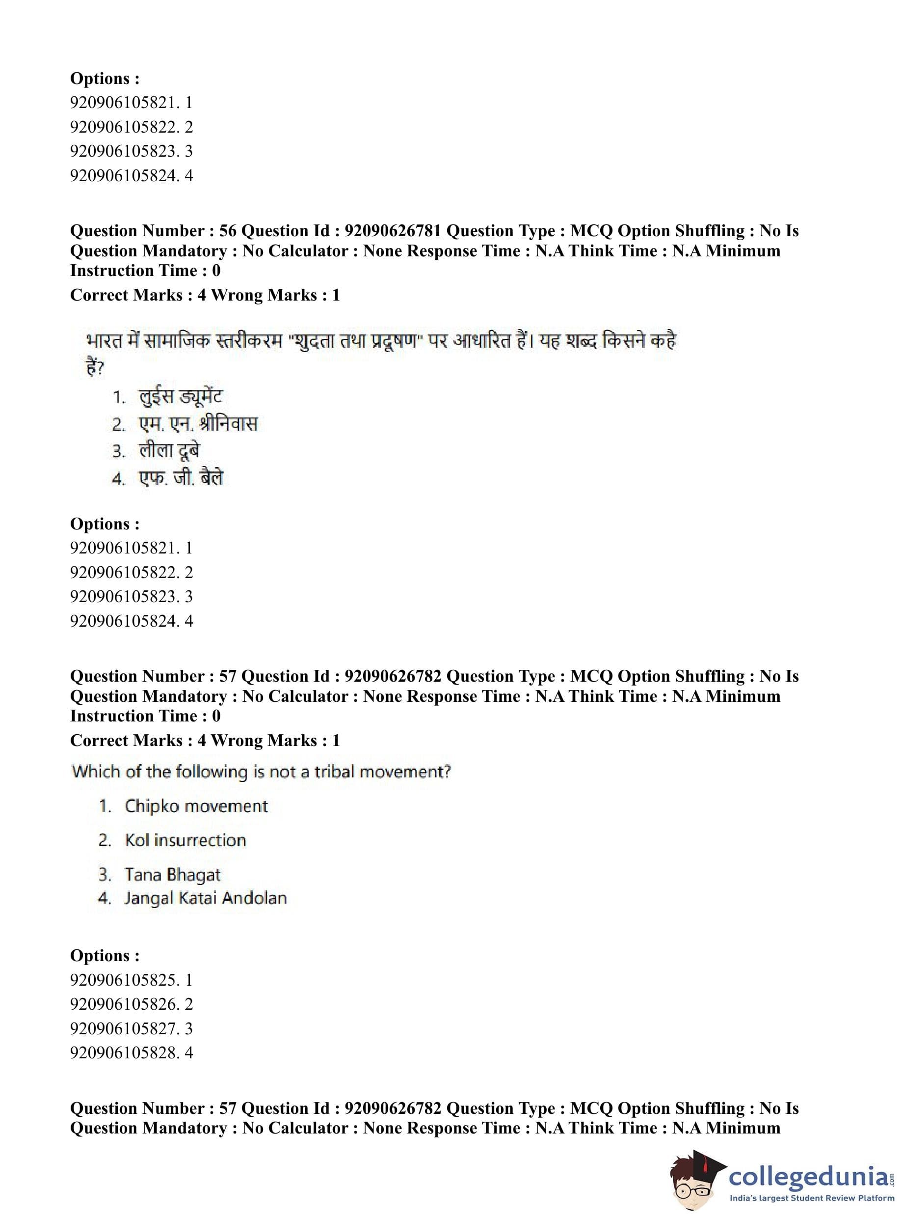 CUET PG 2023 Anthropology Question Paper in Hindi (June 26 - Shift 2)