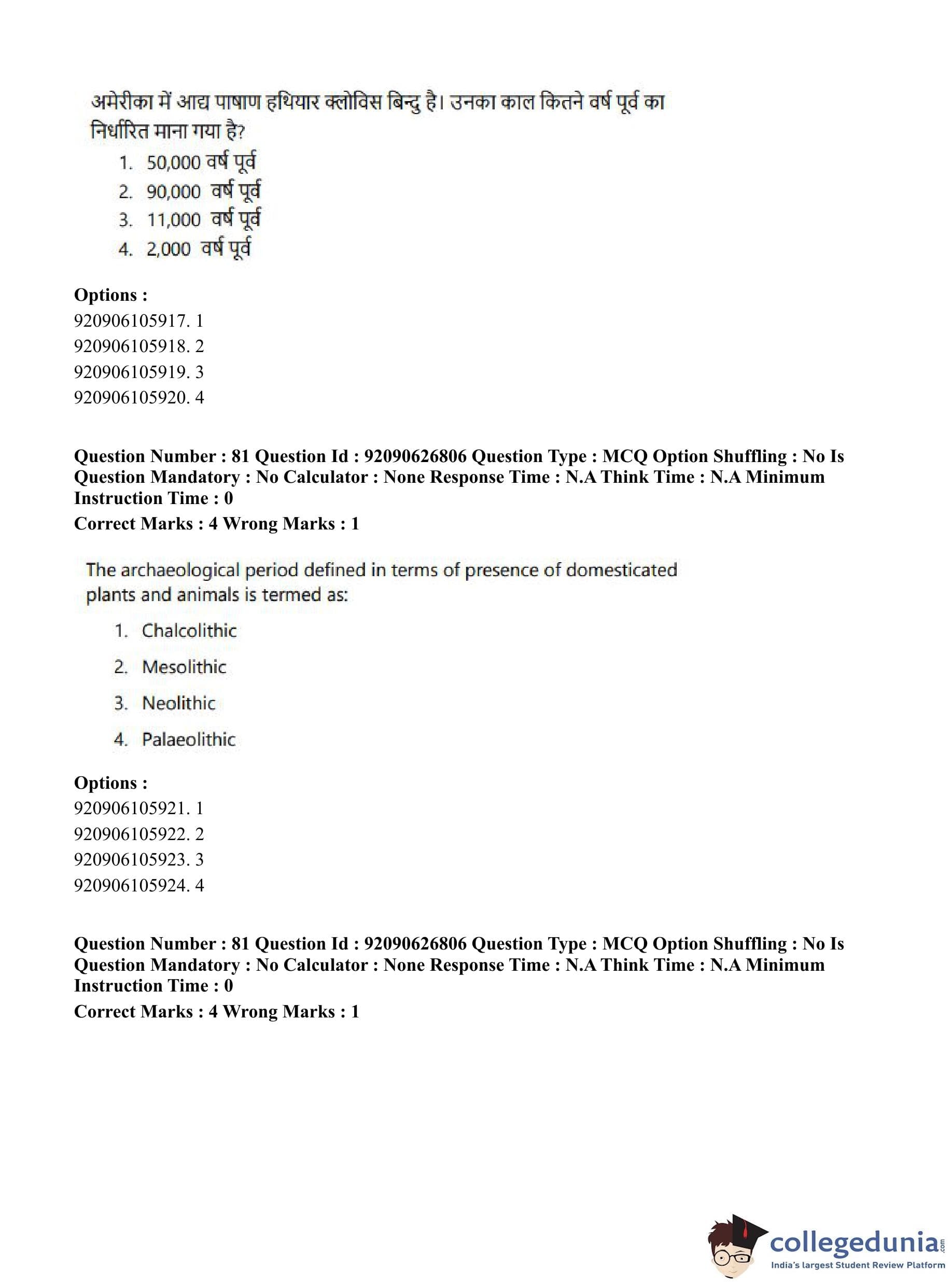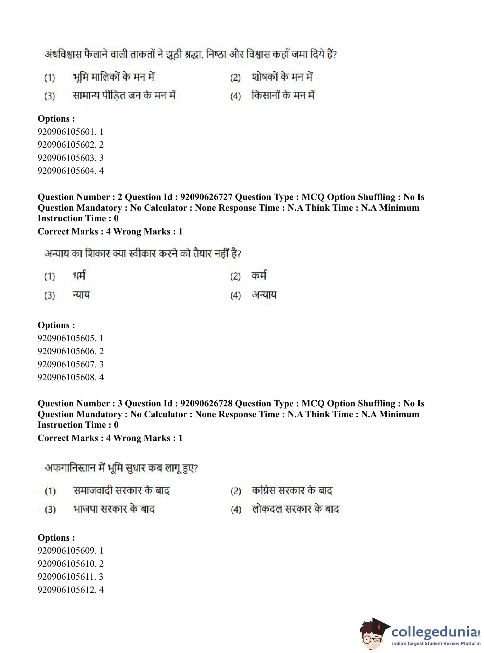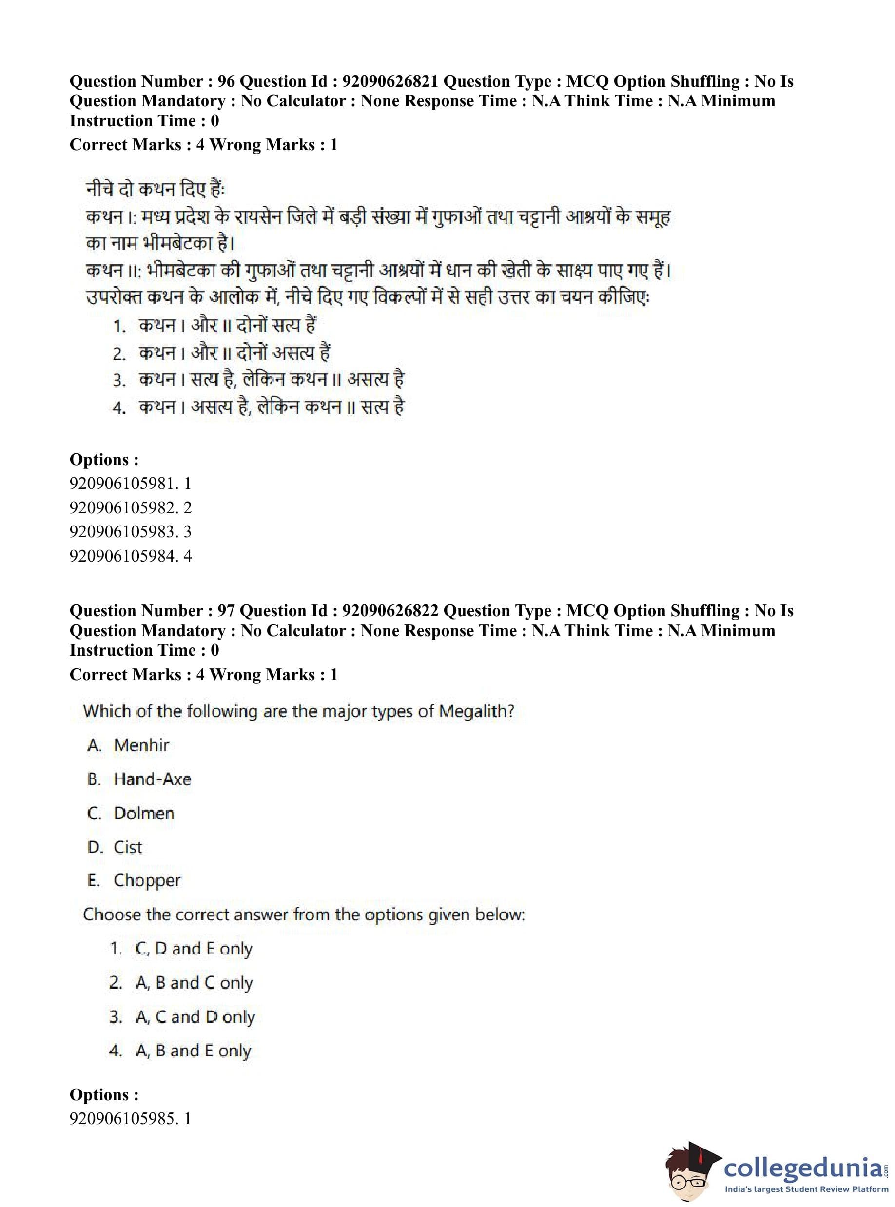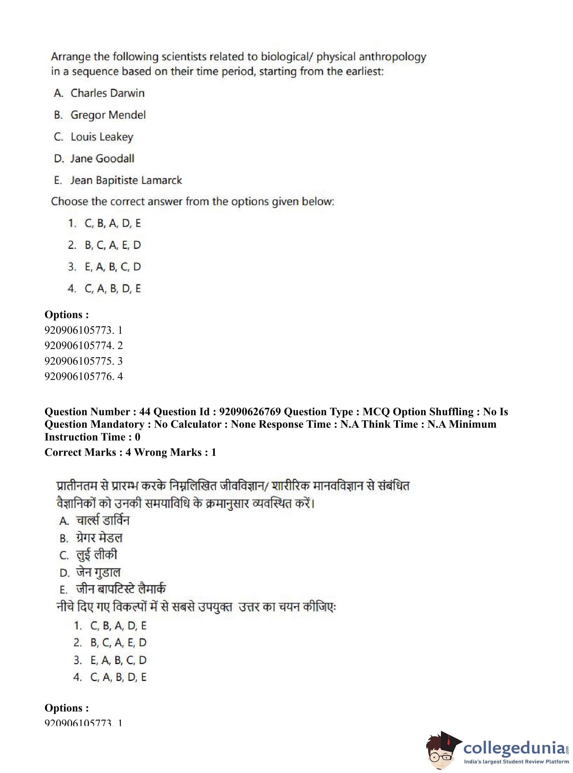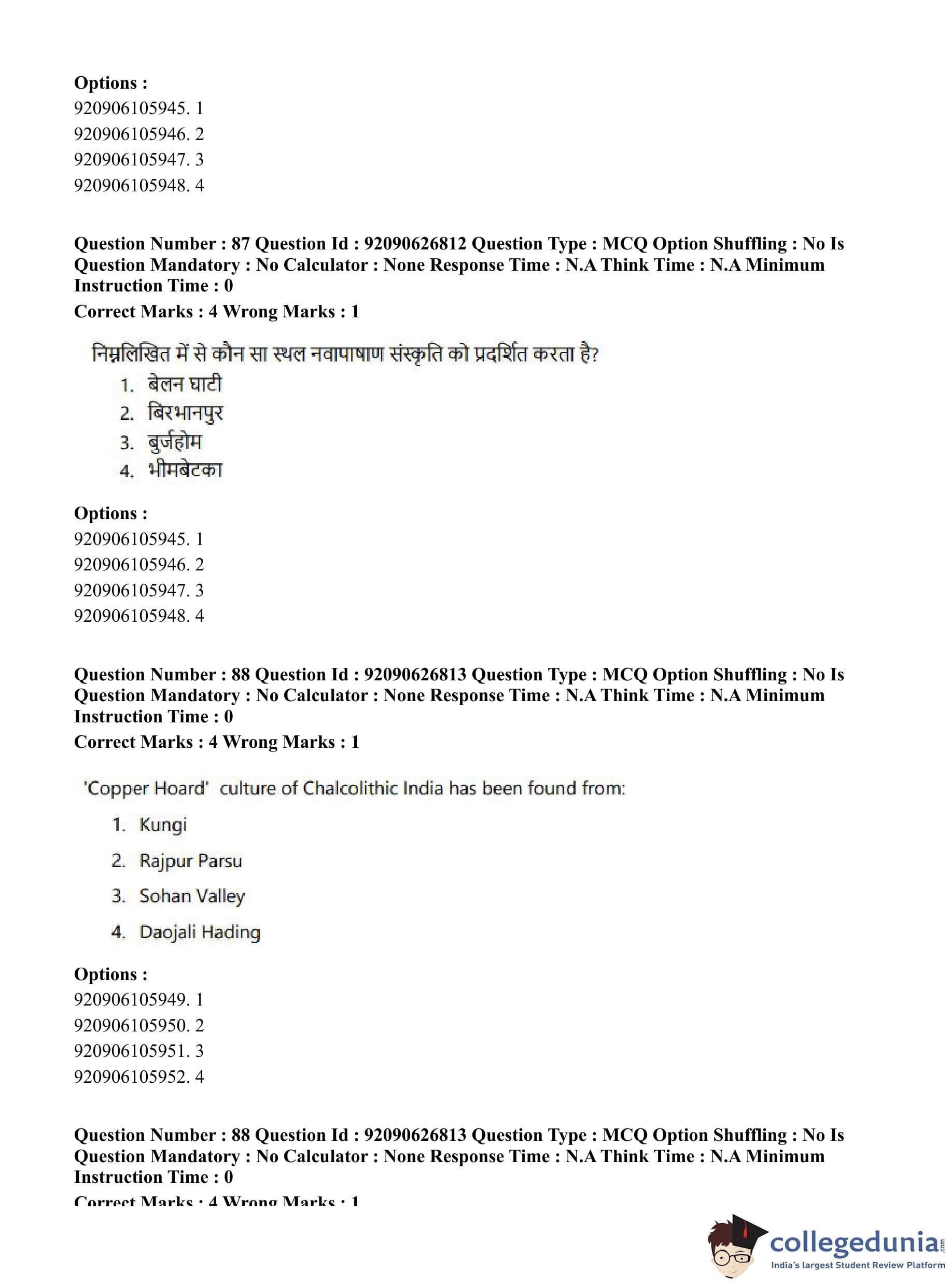 CUET PG 2023 Anthropology Question Paper in Hindi (June 26 - Shift 2)