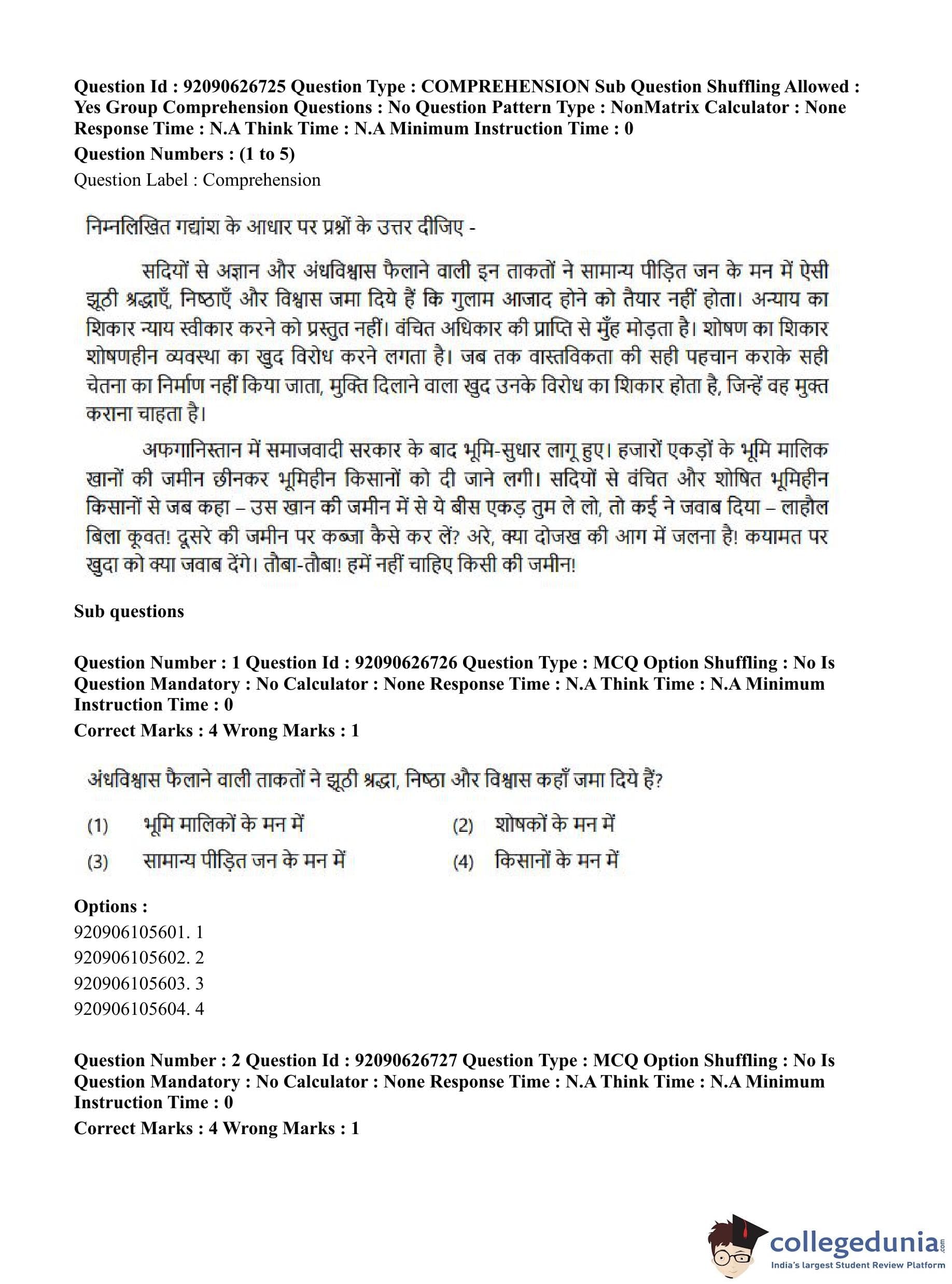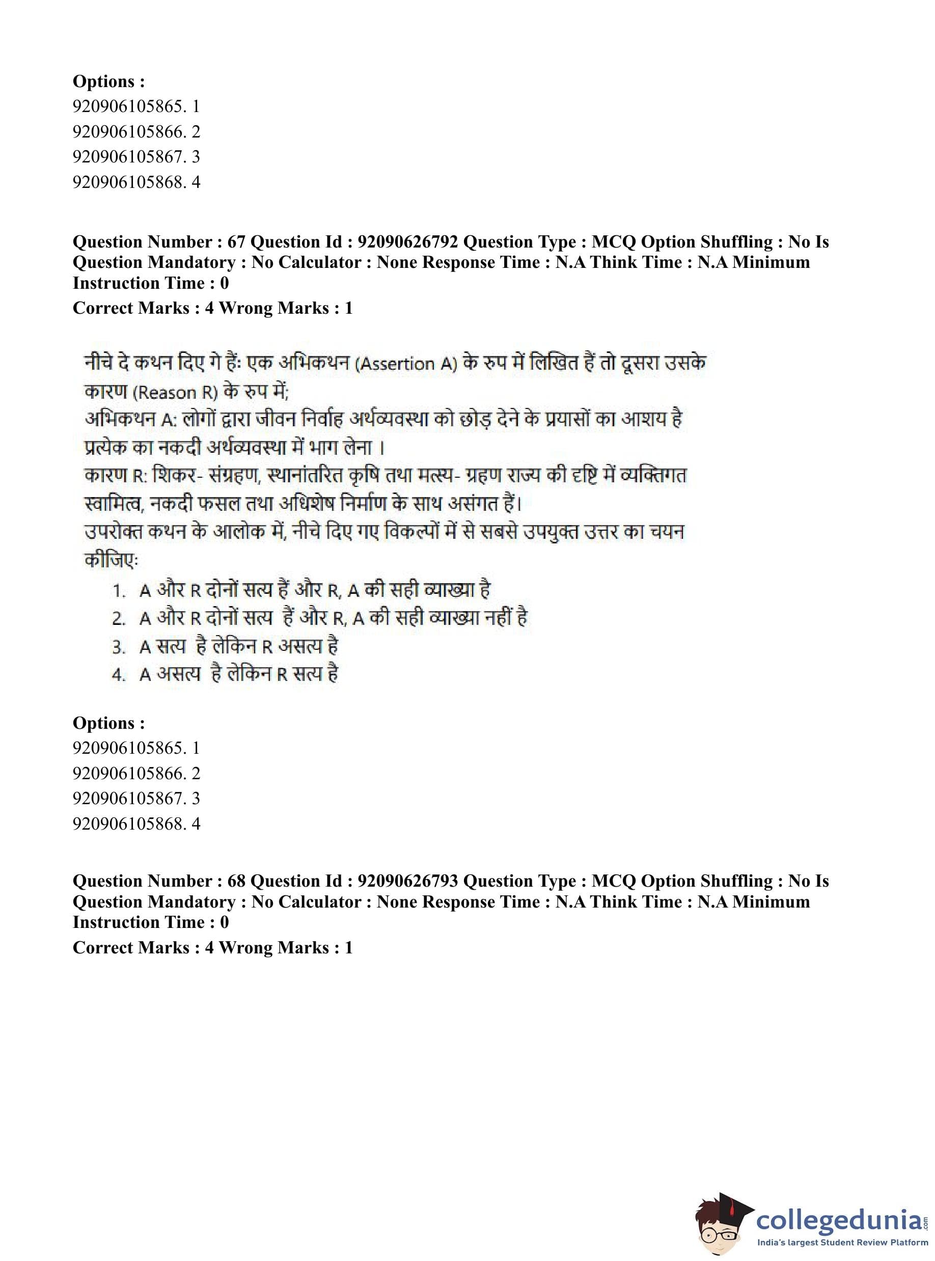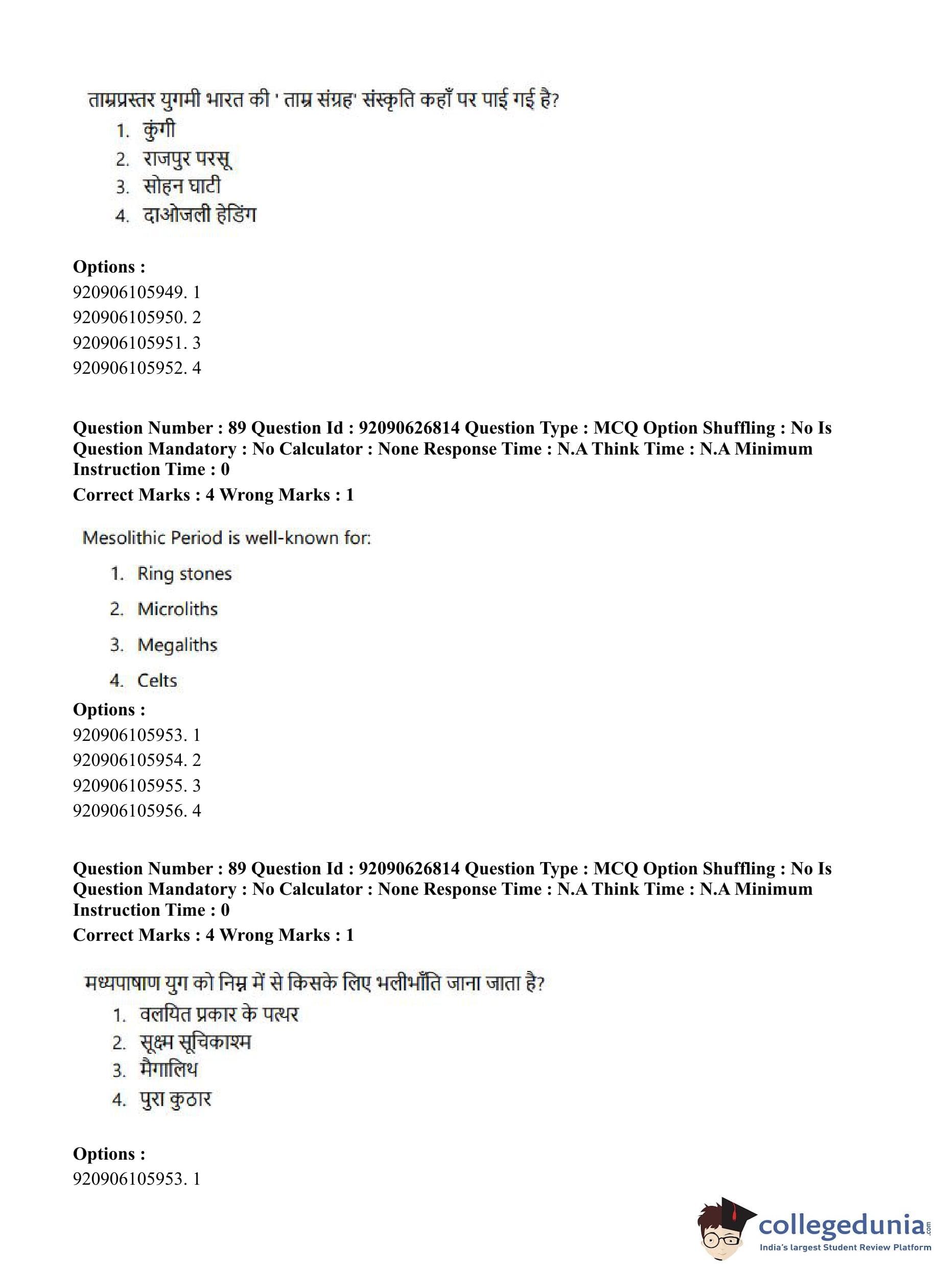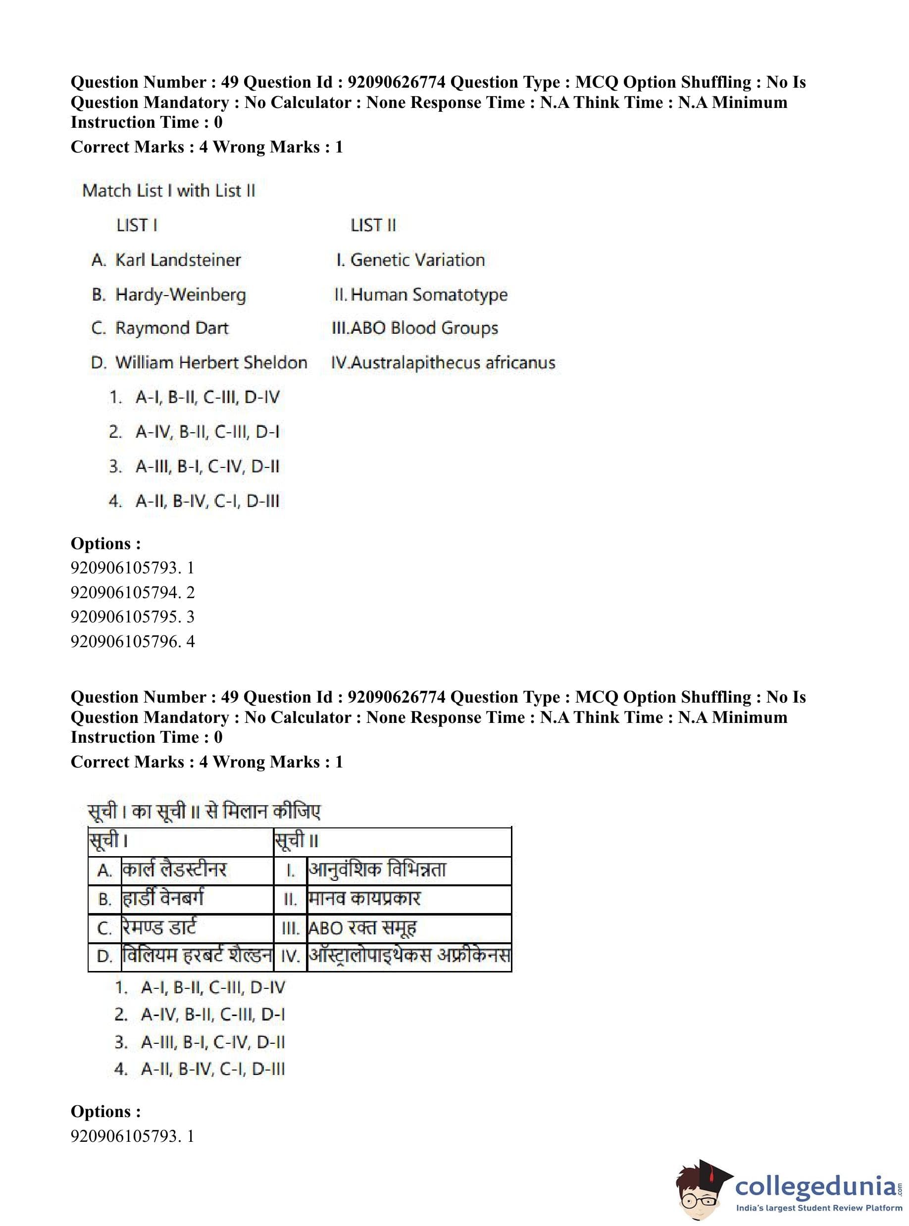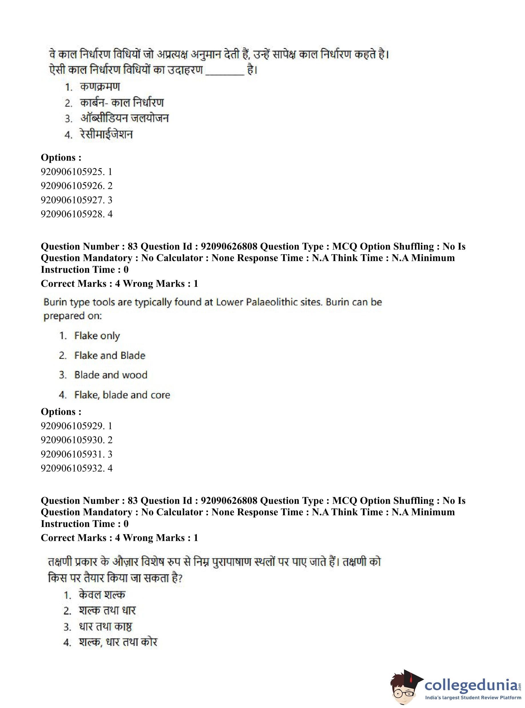 CUET PG 2023 Anthropology Question Paper in Hindi (June 26 - Shift 2)