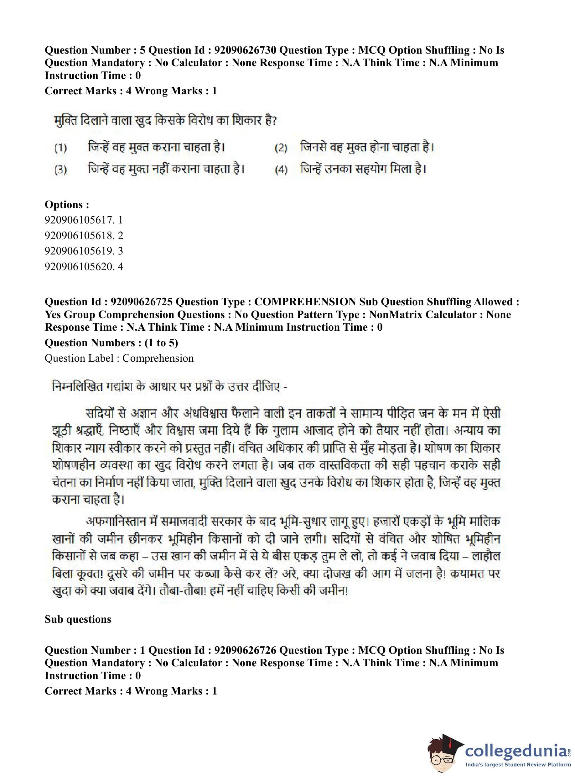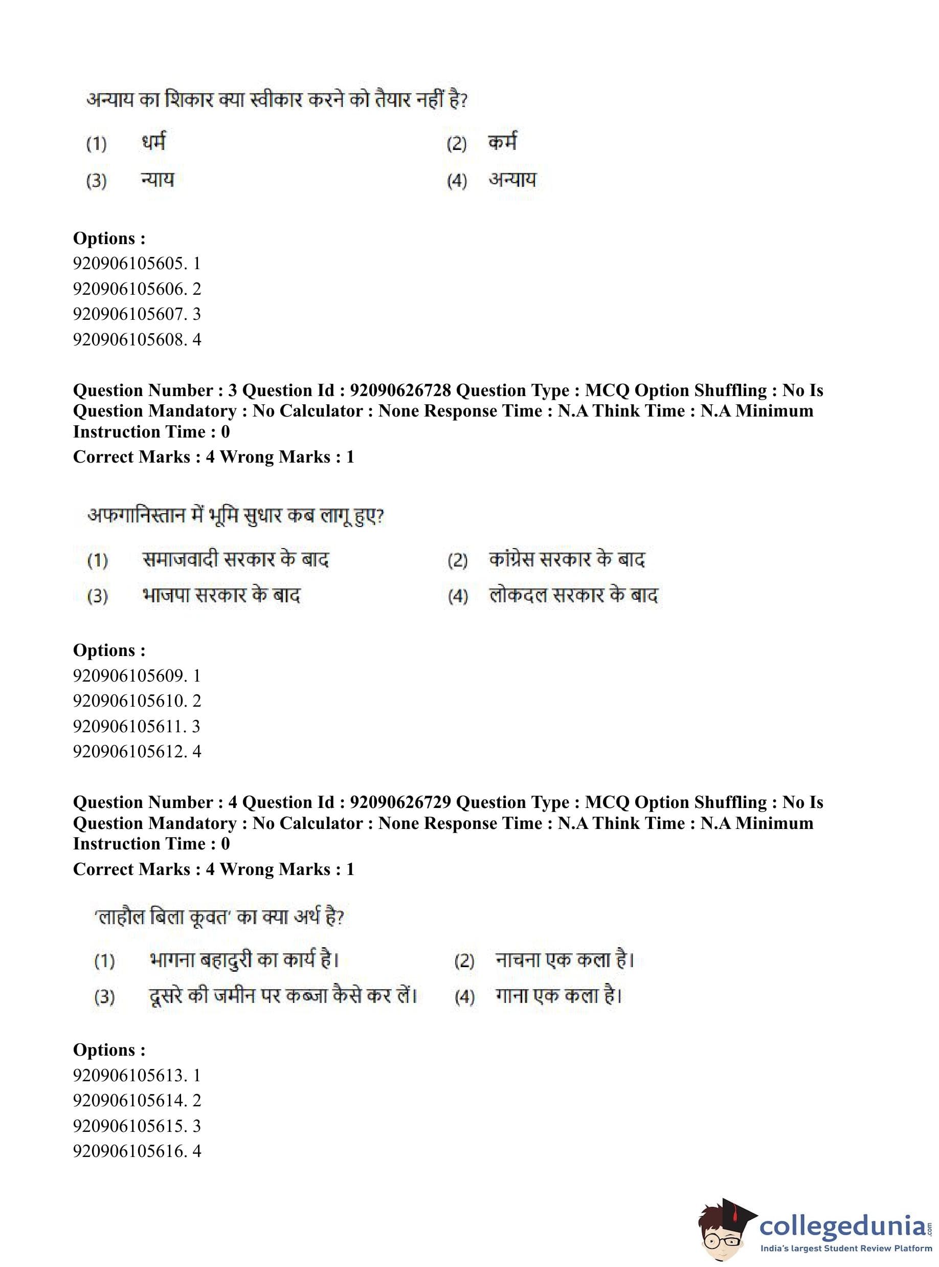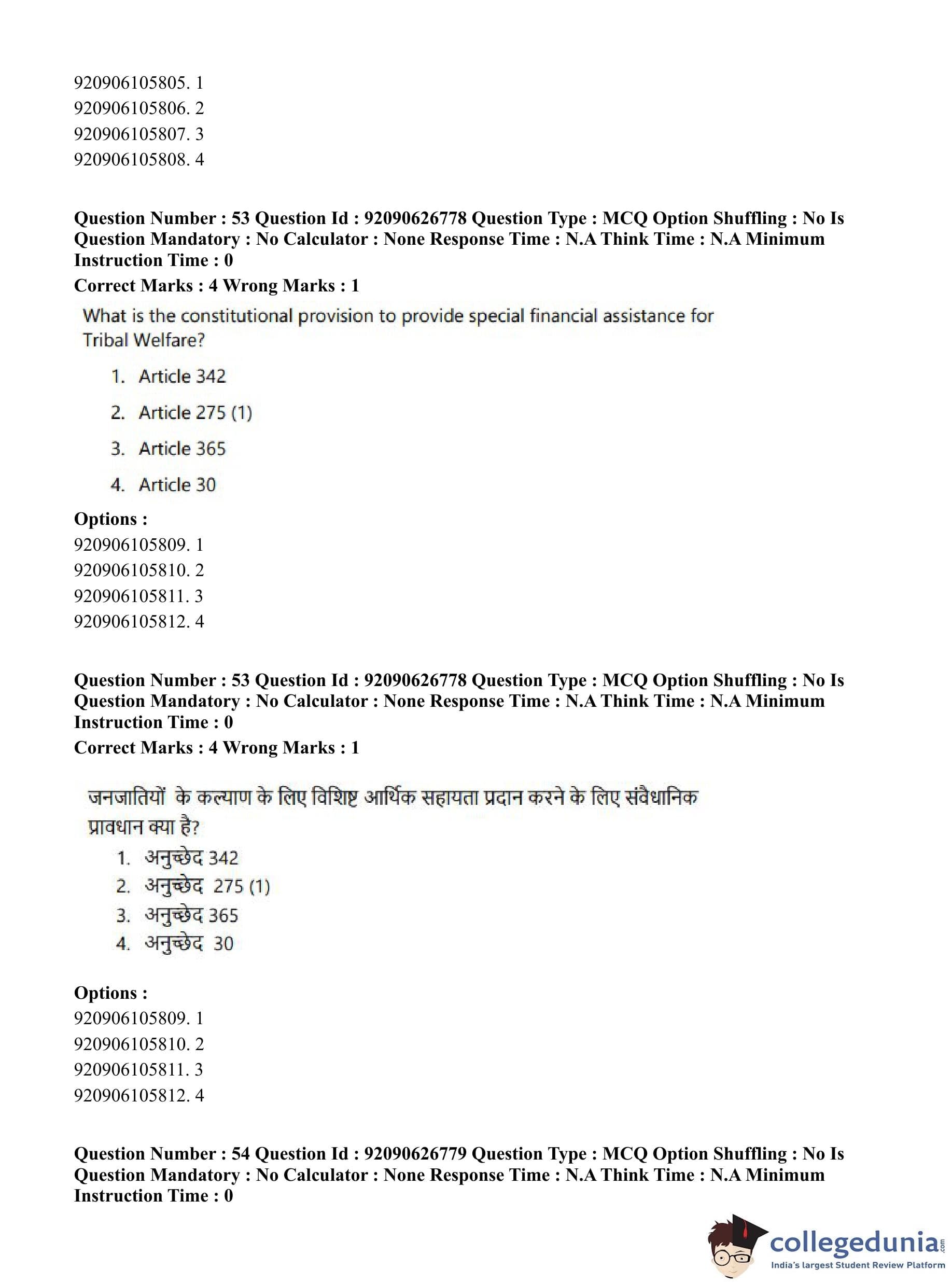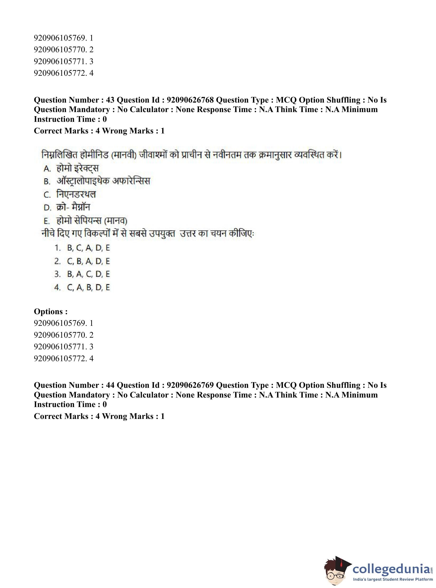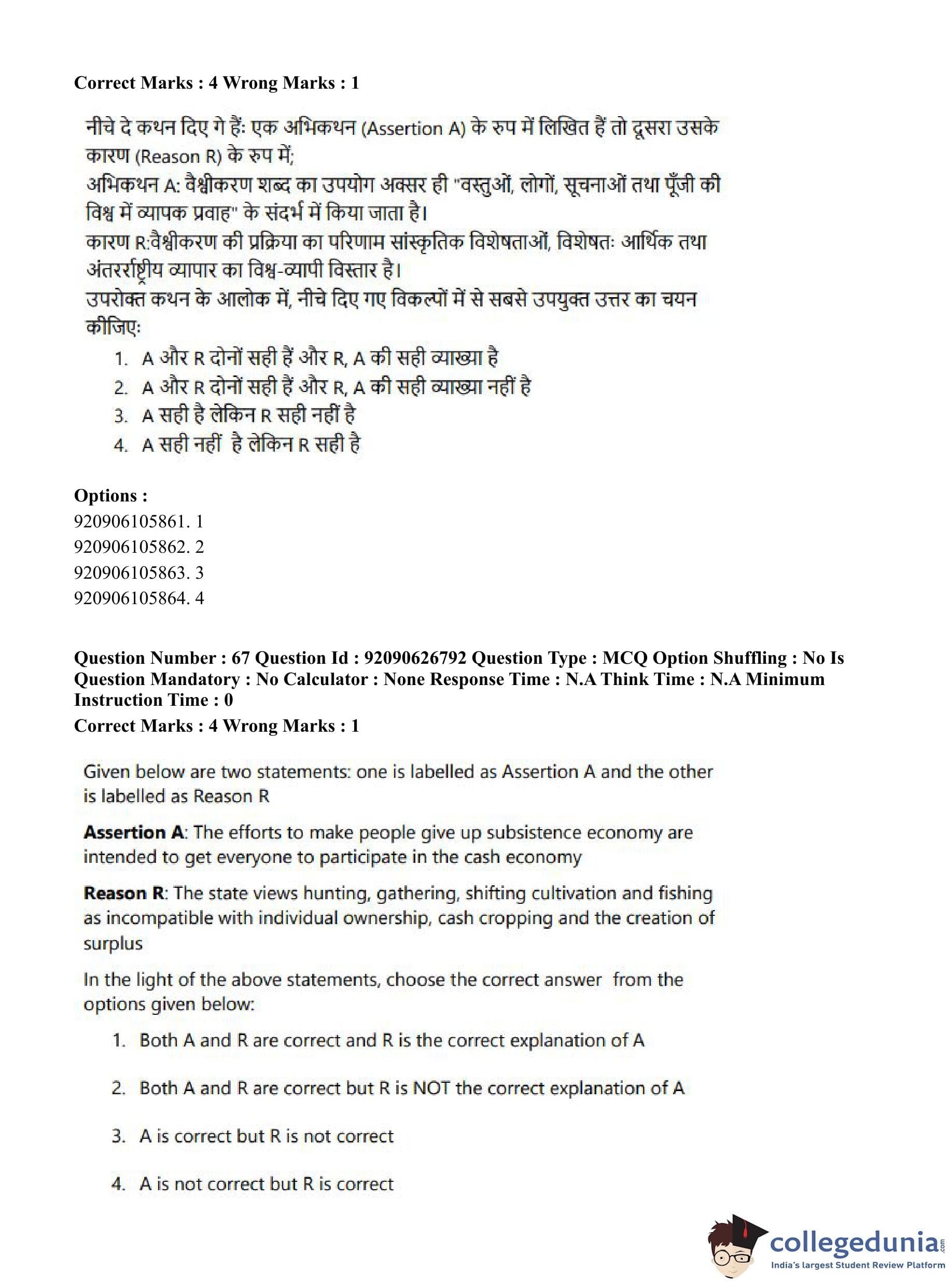 CUET PG 2023 Anthropology Question Paper in Hindi (June 26 - Shift 2)