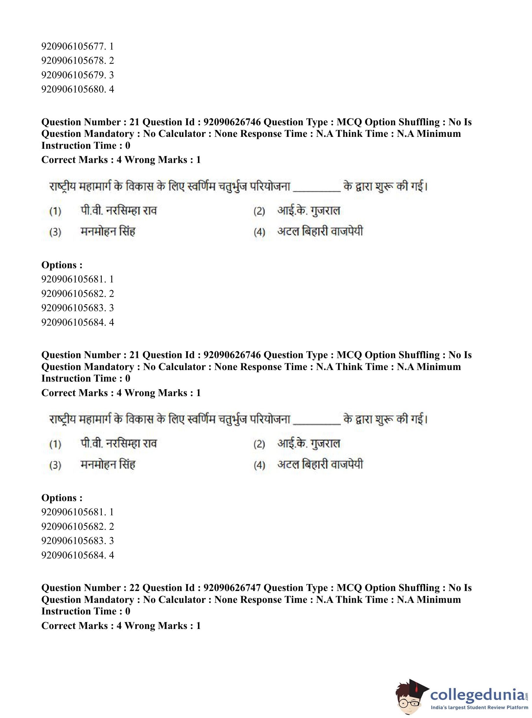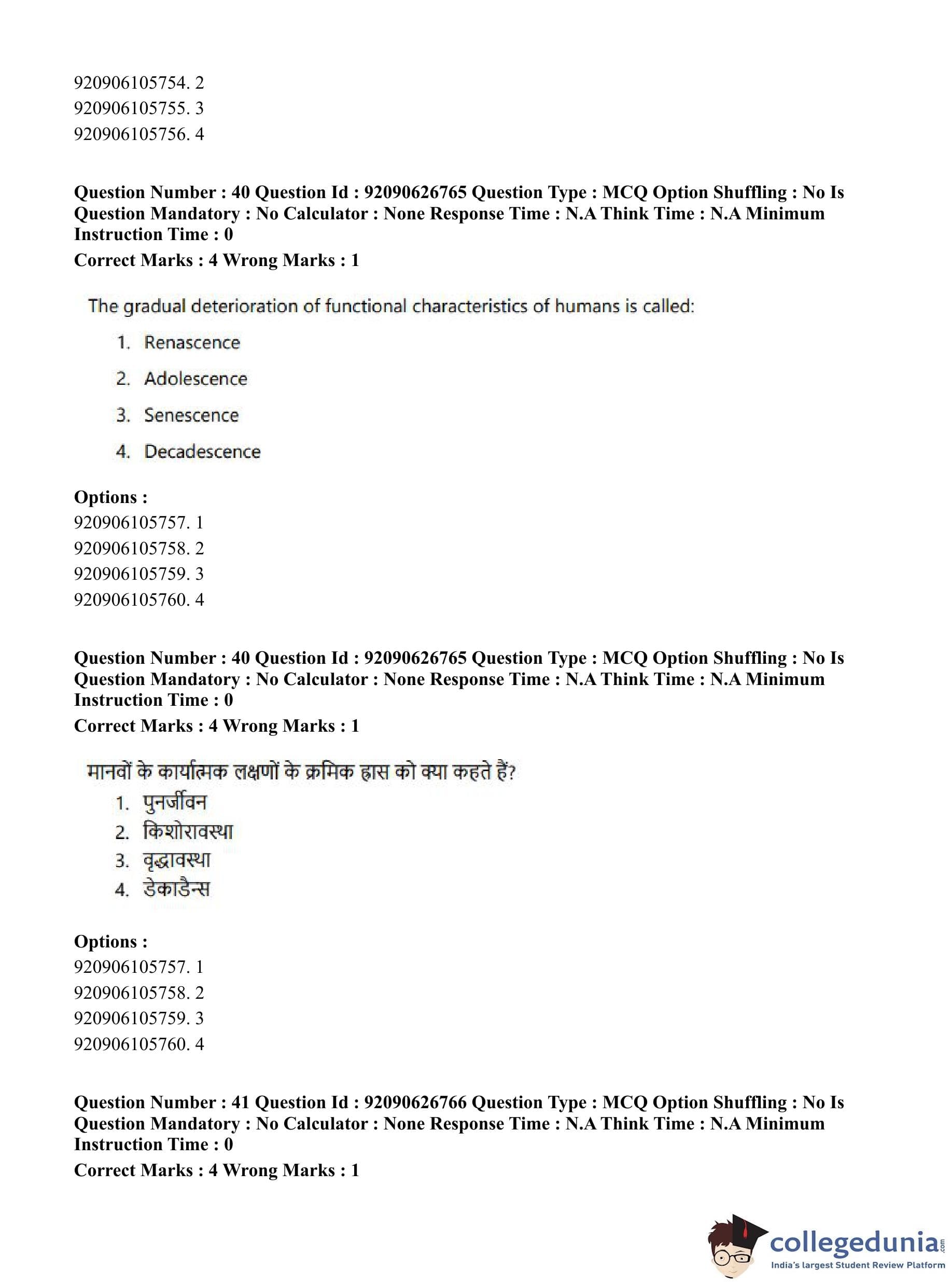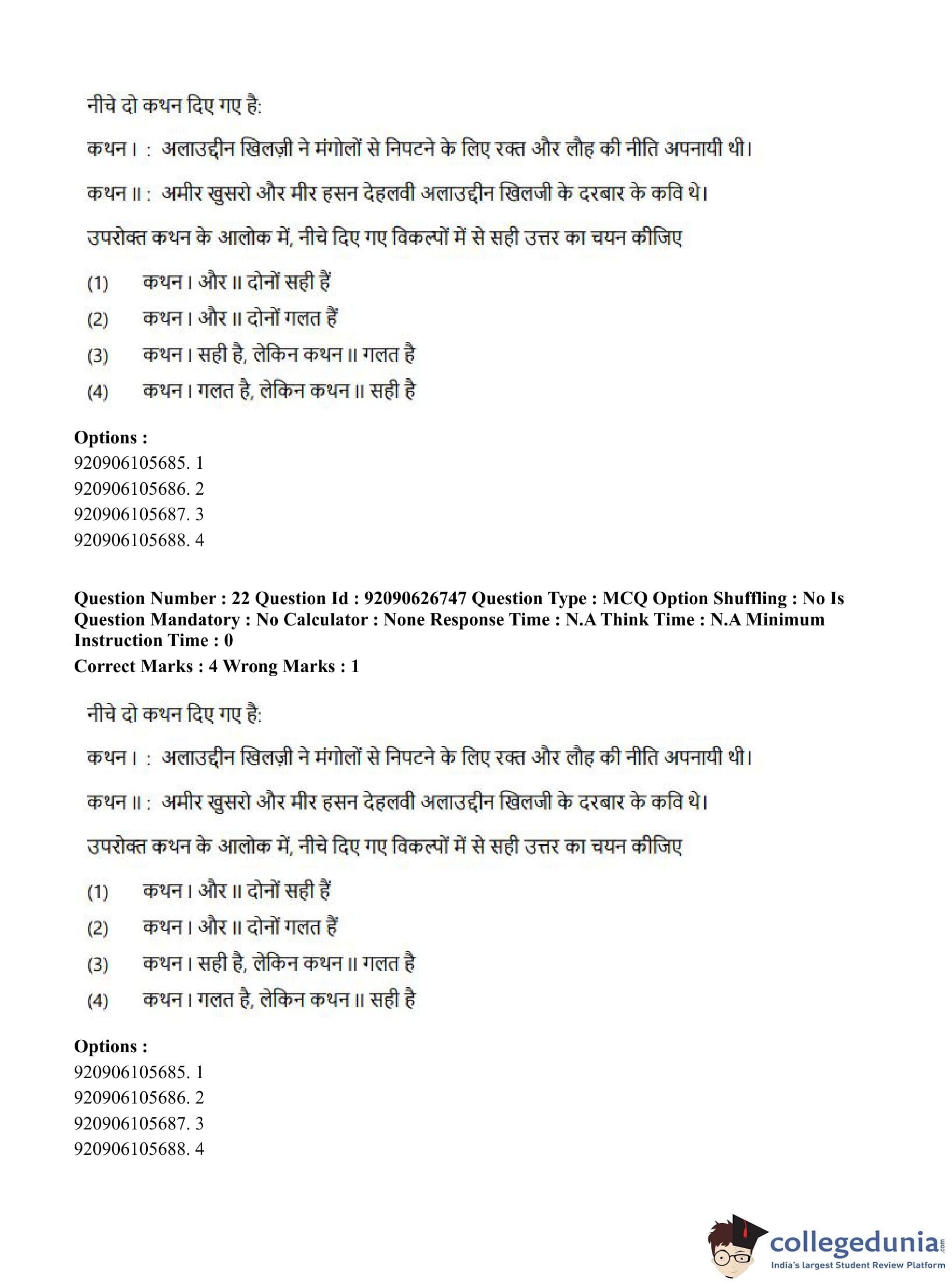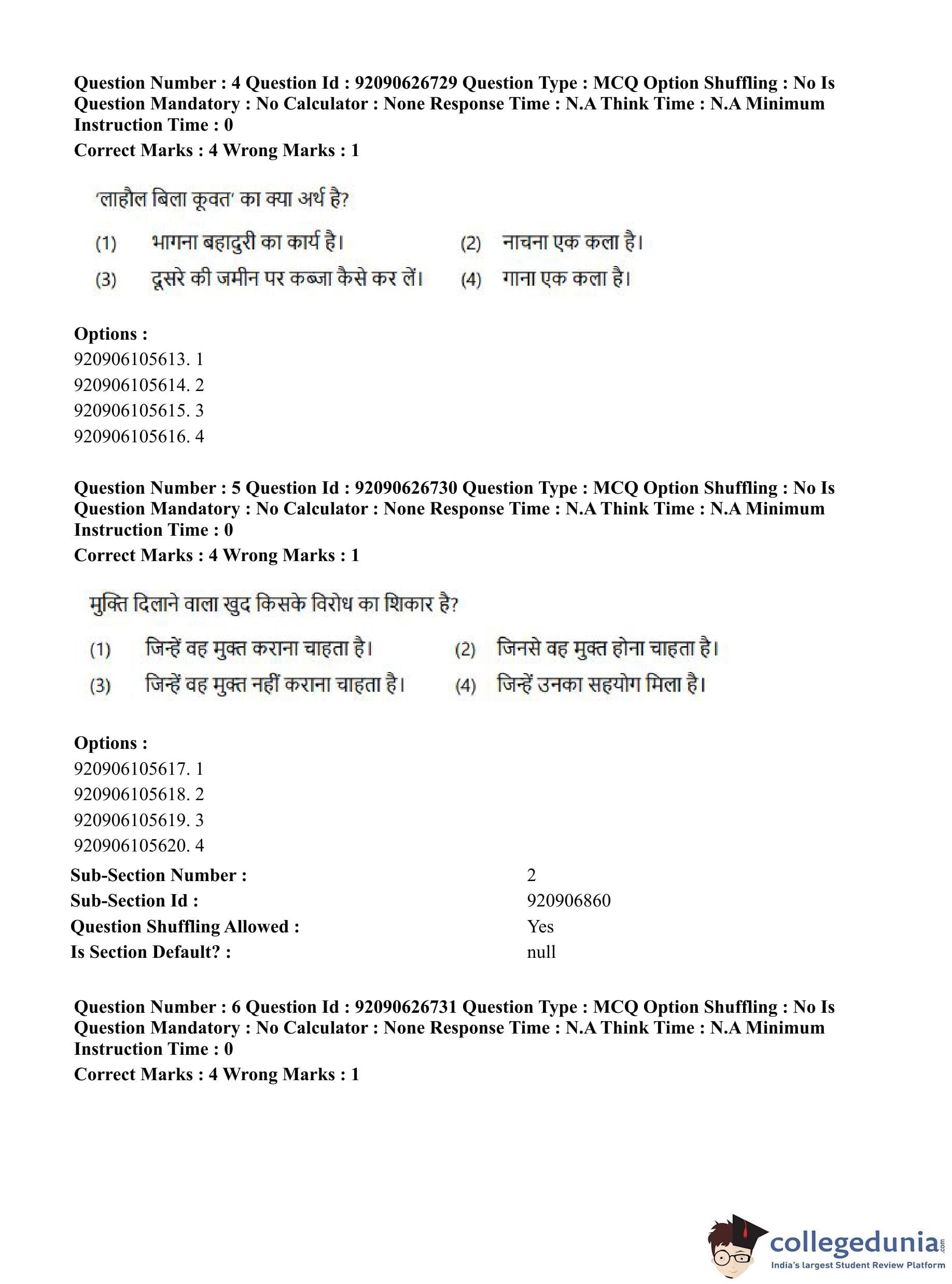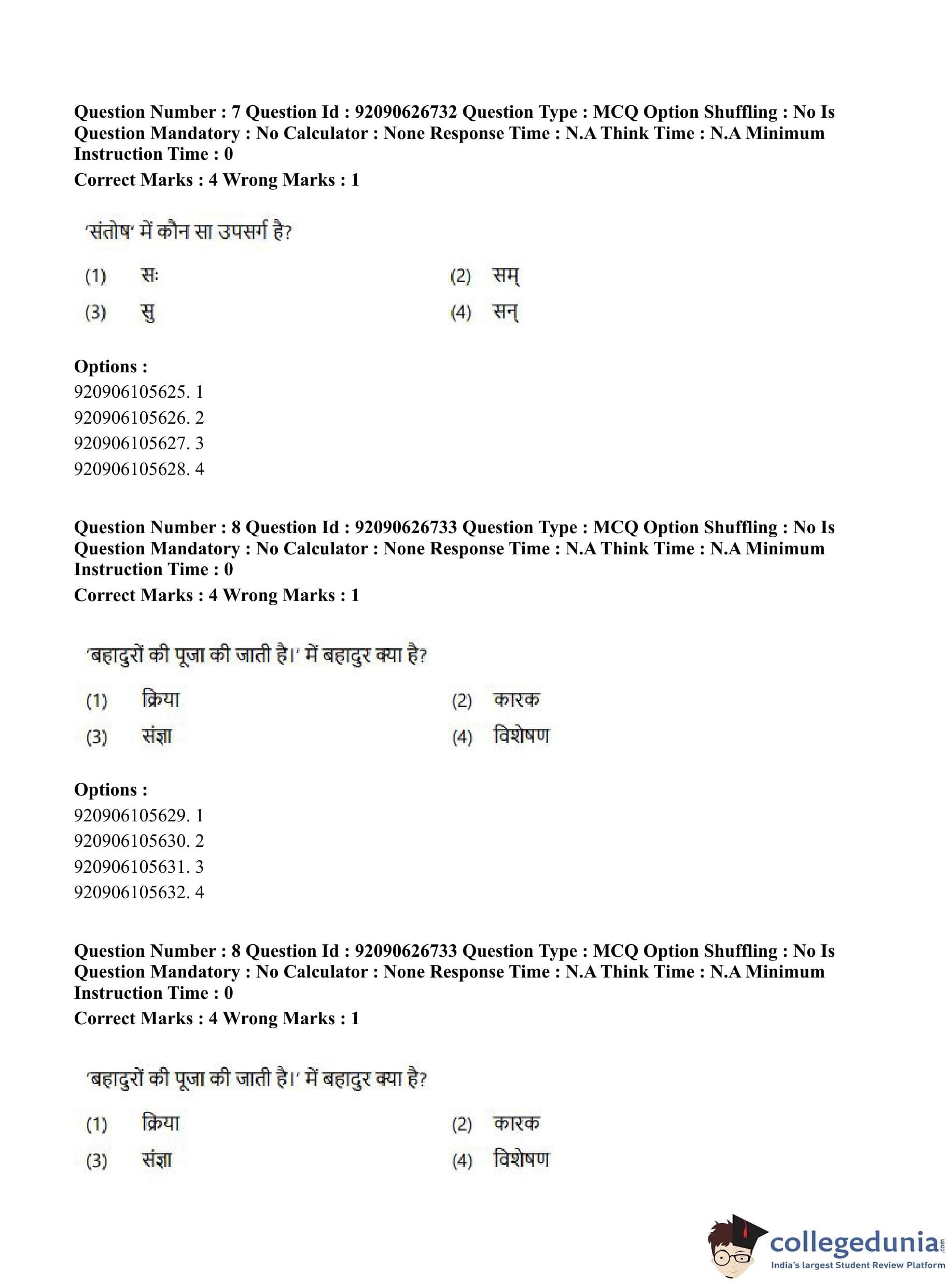 CUET PG 2023 Anthropology Question Paper in Hindi (June 26 - Shift 2)