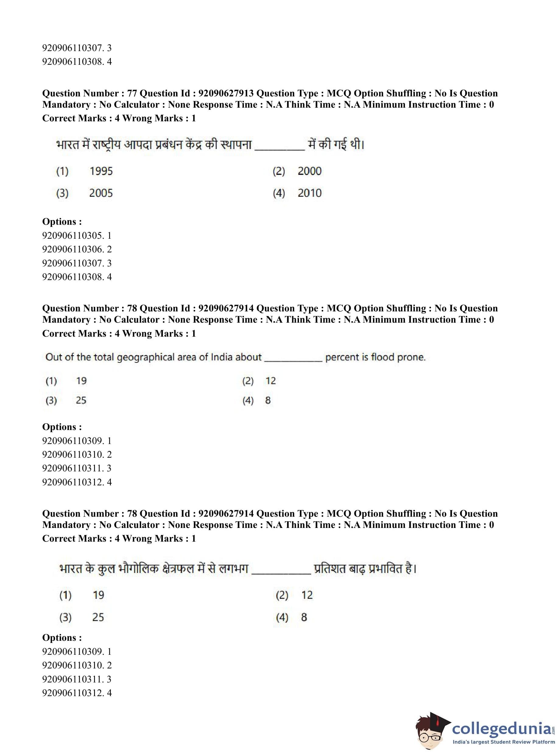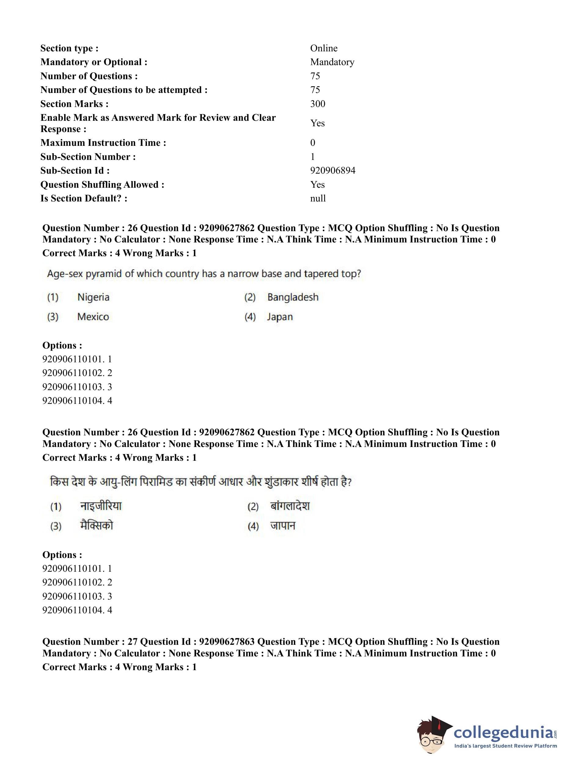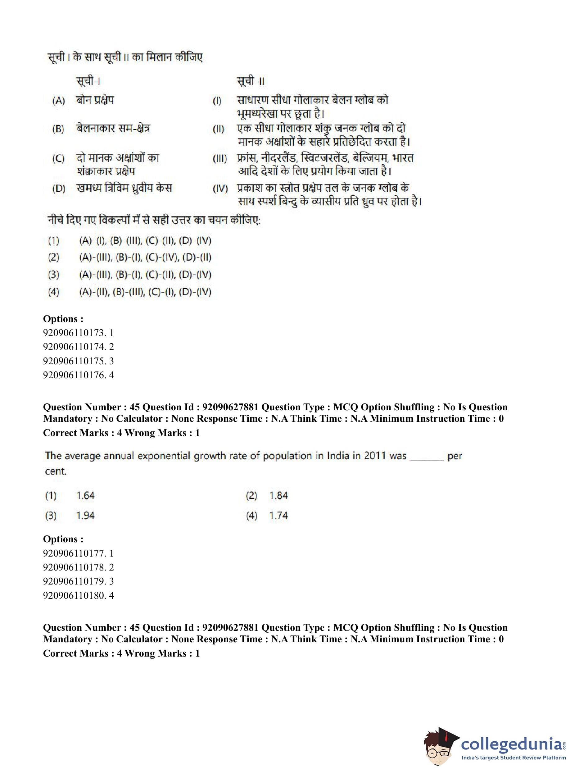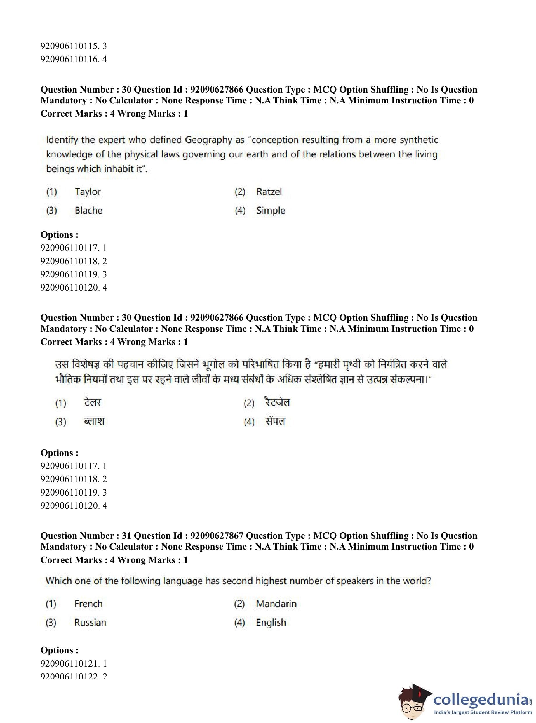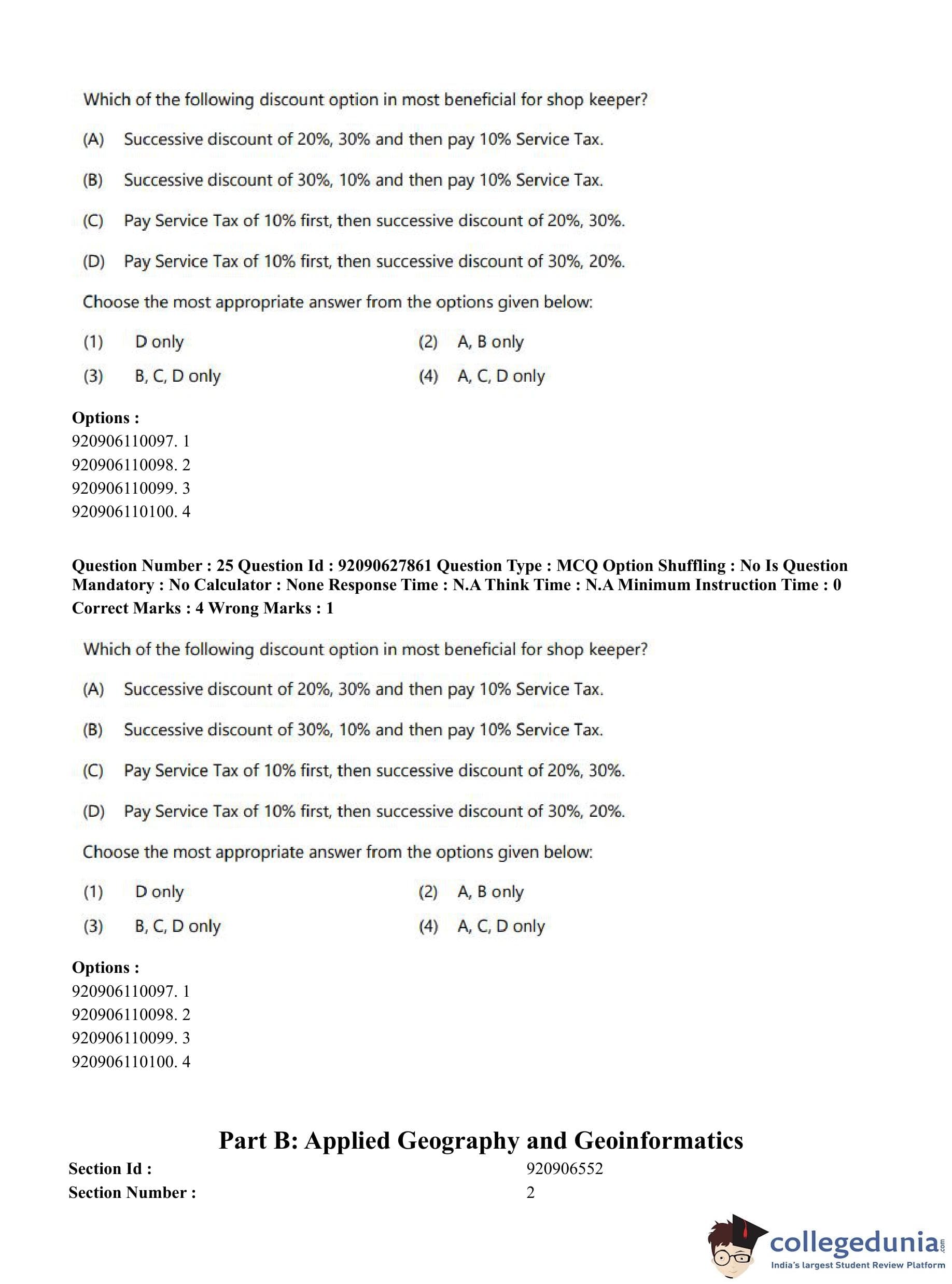 CUET PG 2023 Applied Geography and Geoinformatics Question Paper in English (June 26 - Shift 1)
