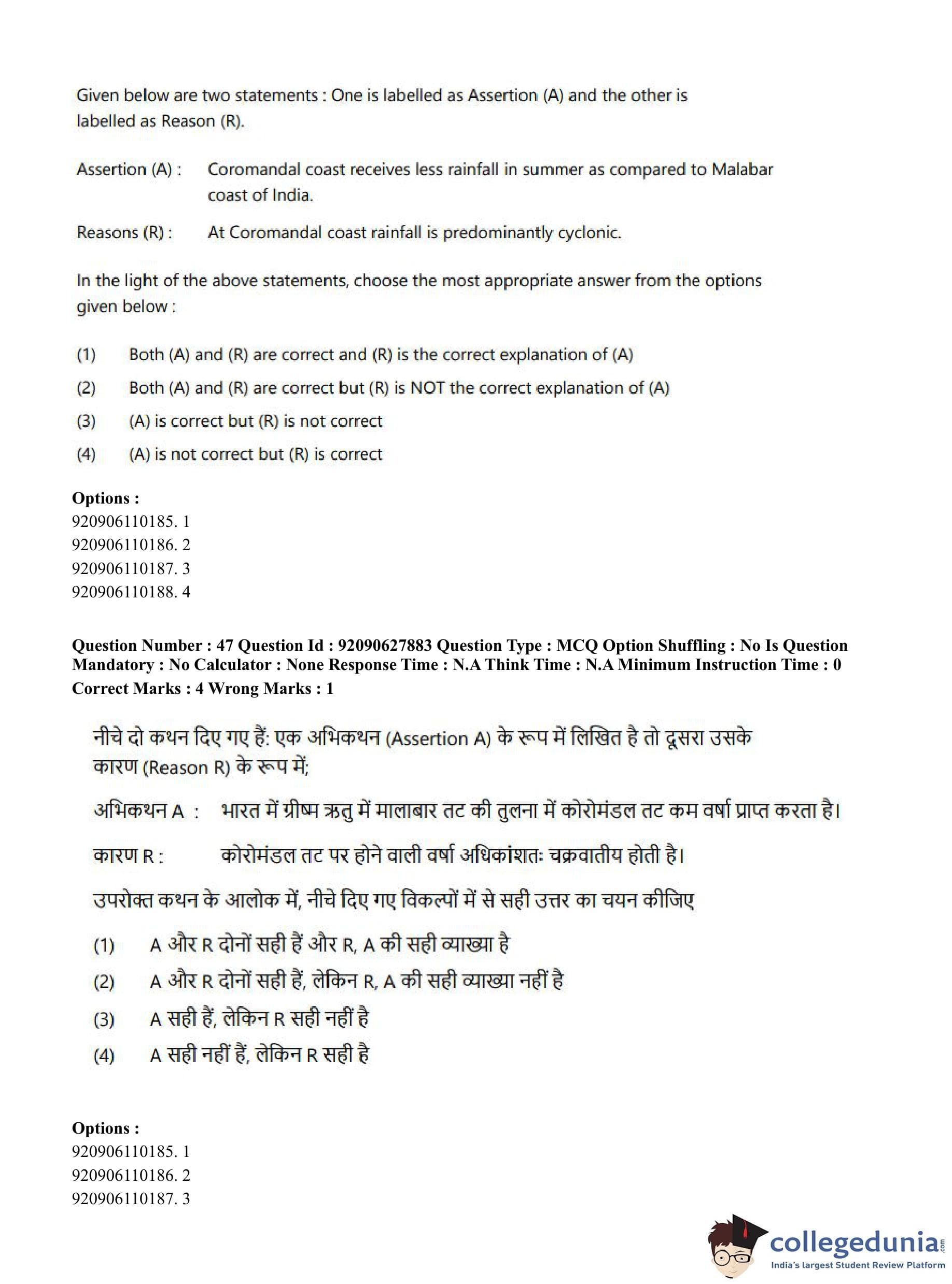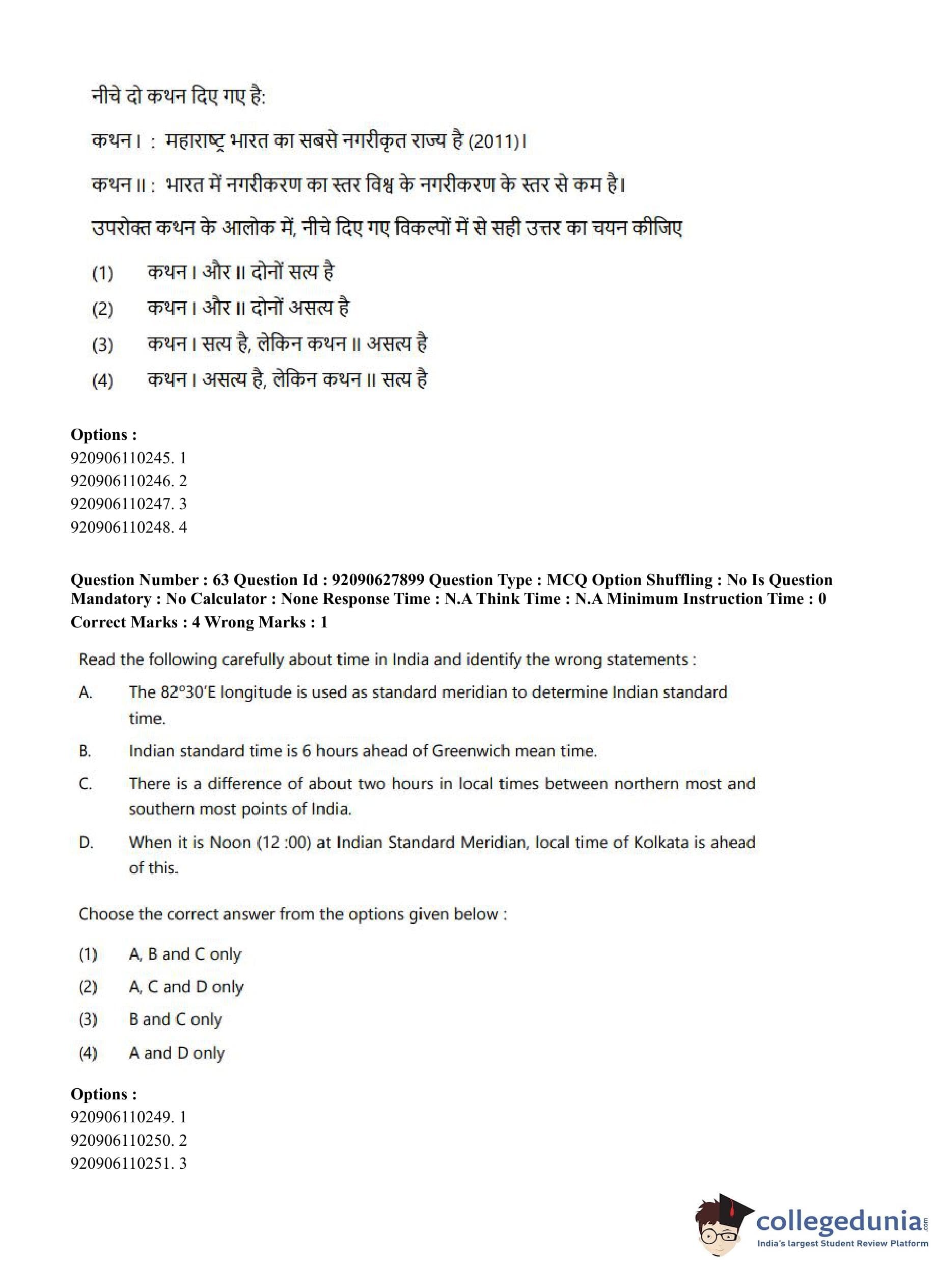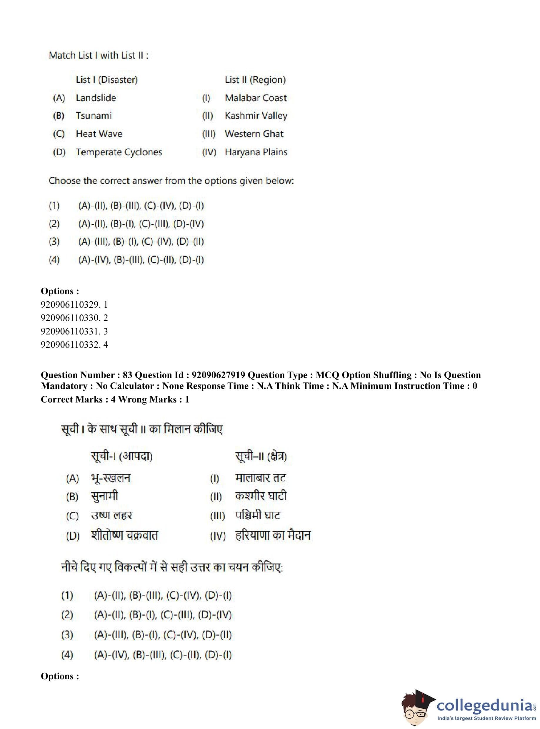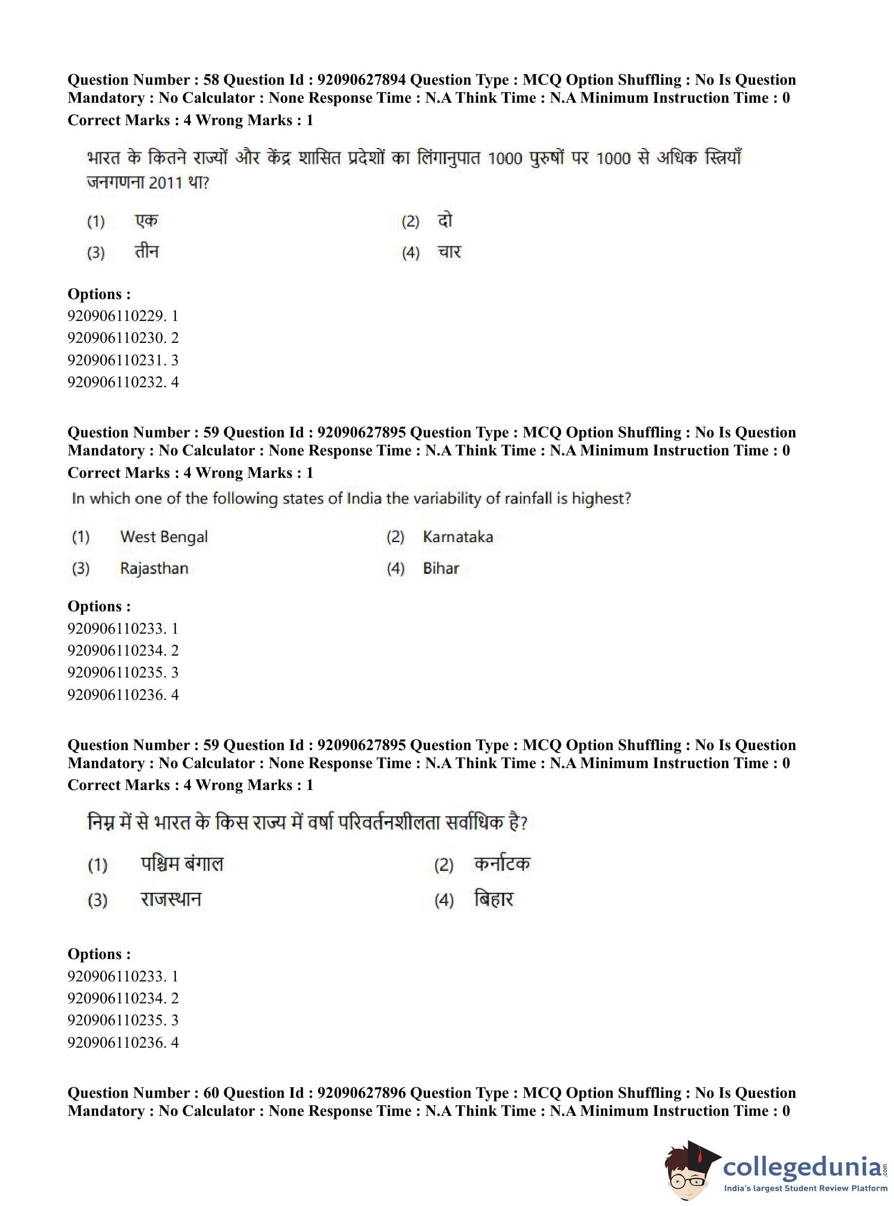 CUET PG 2023 Applied Geography and Geoinformatics Question Paper in English (June 26 - Shift 1)