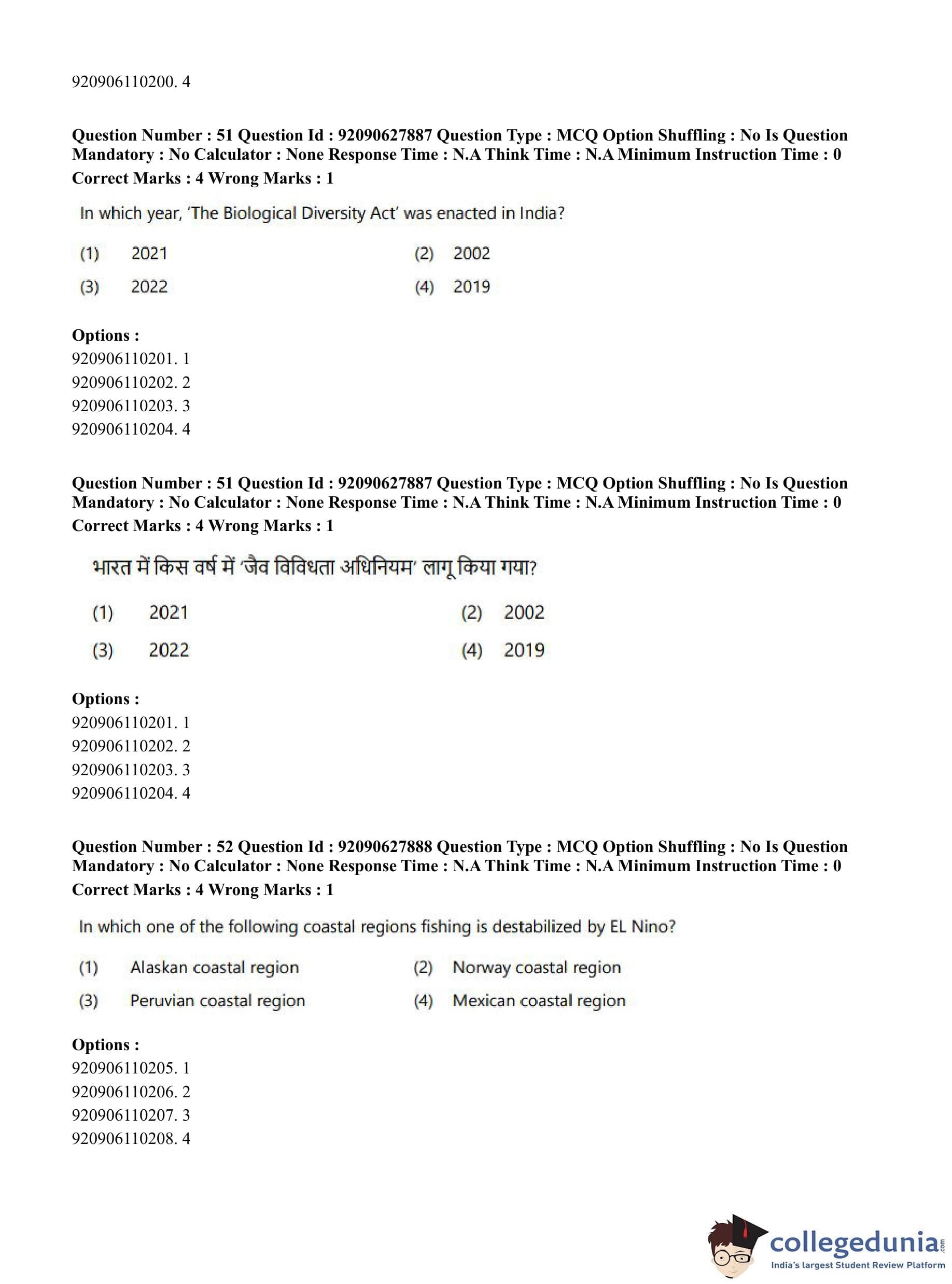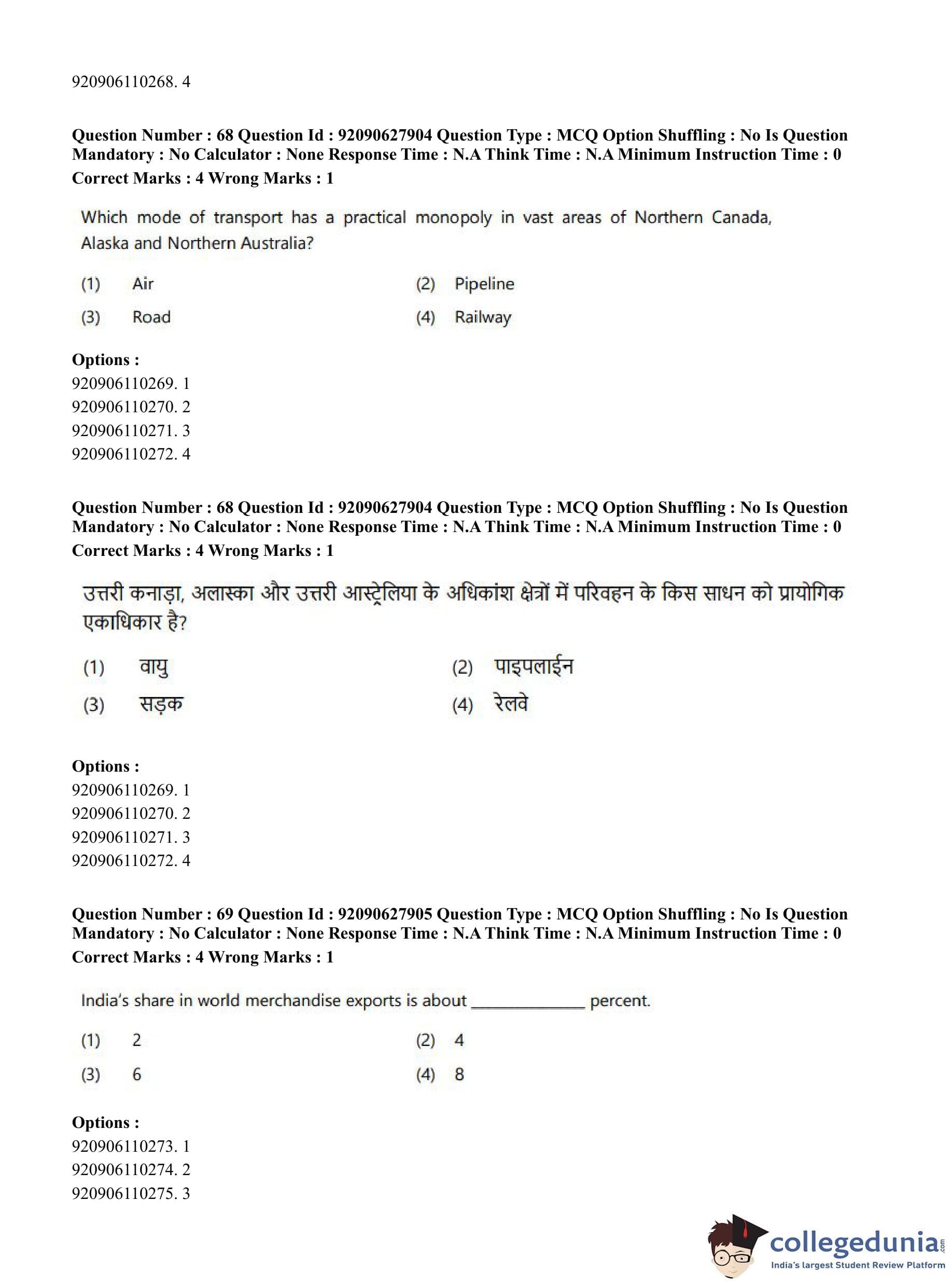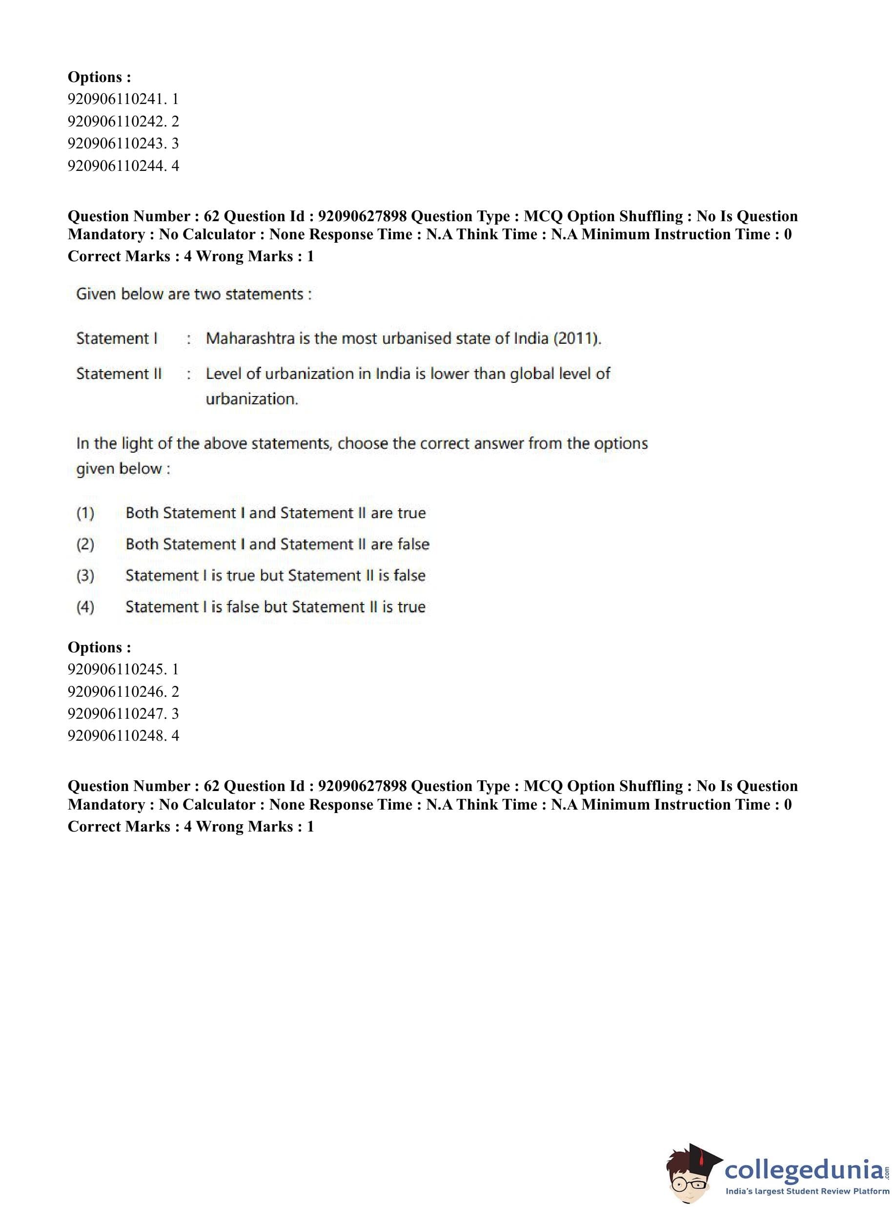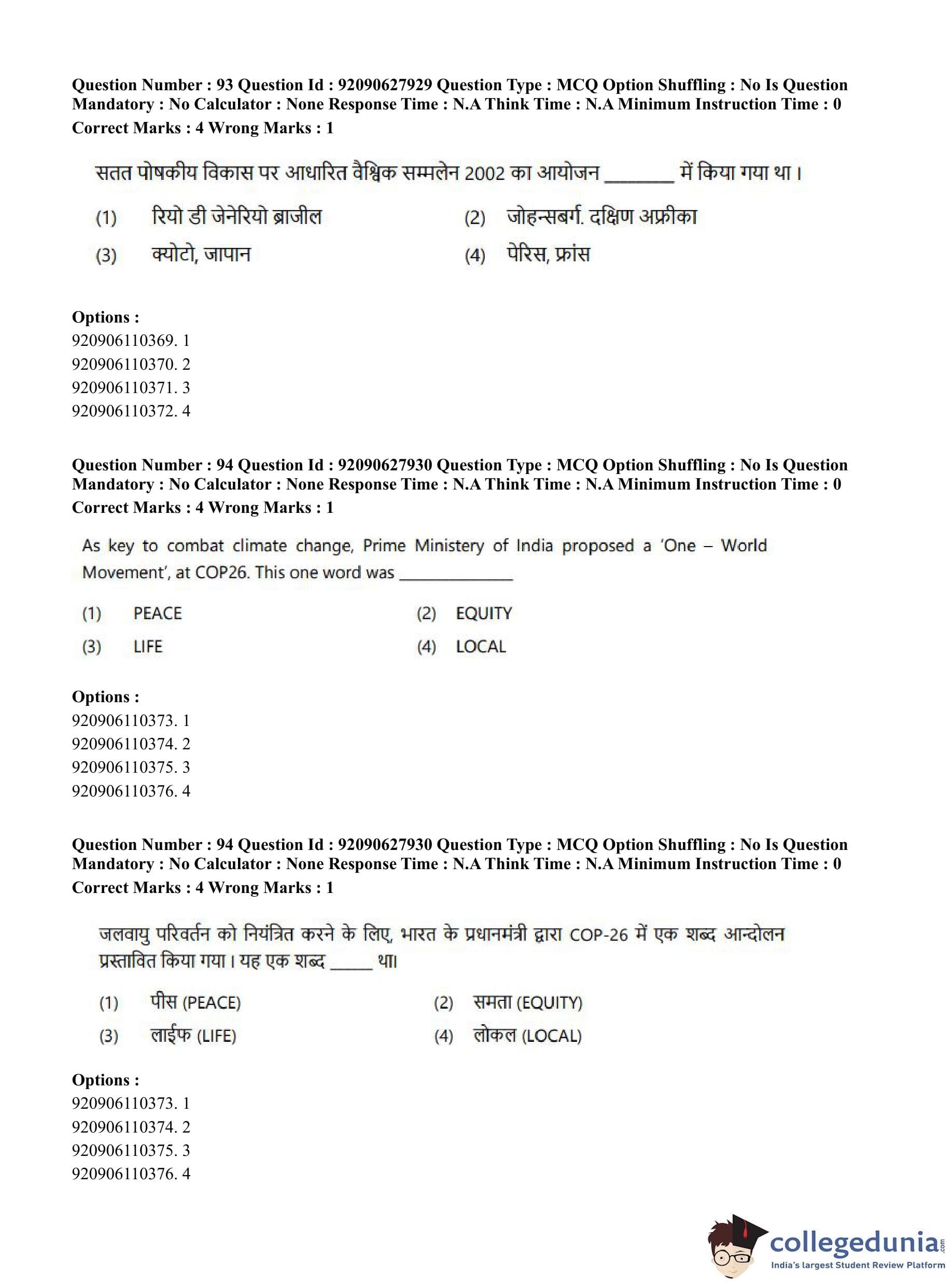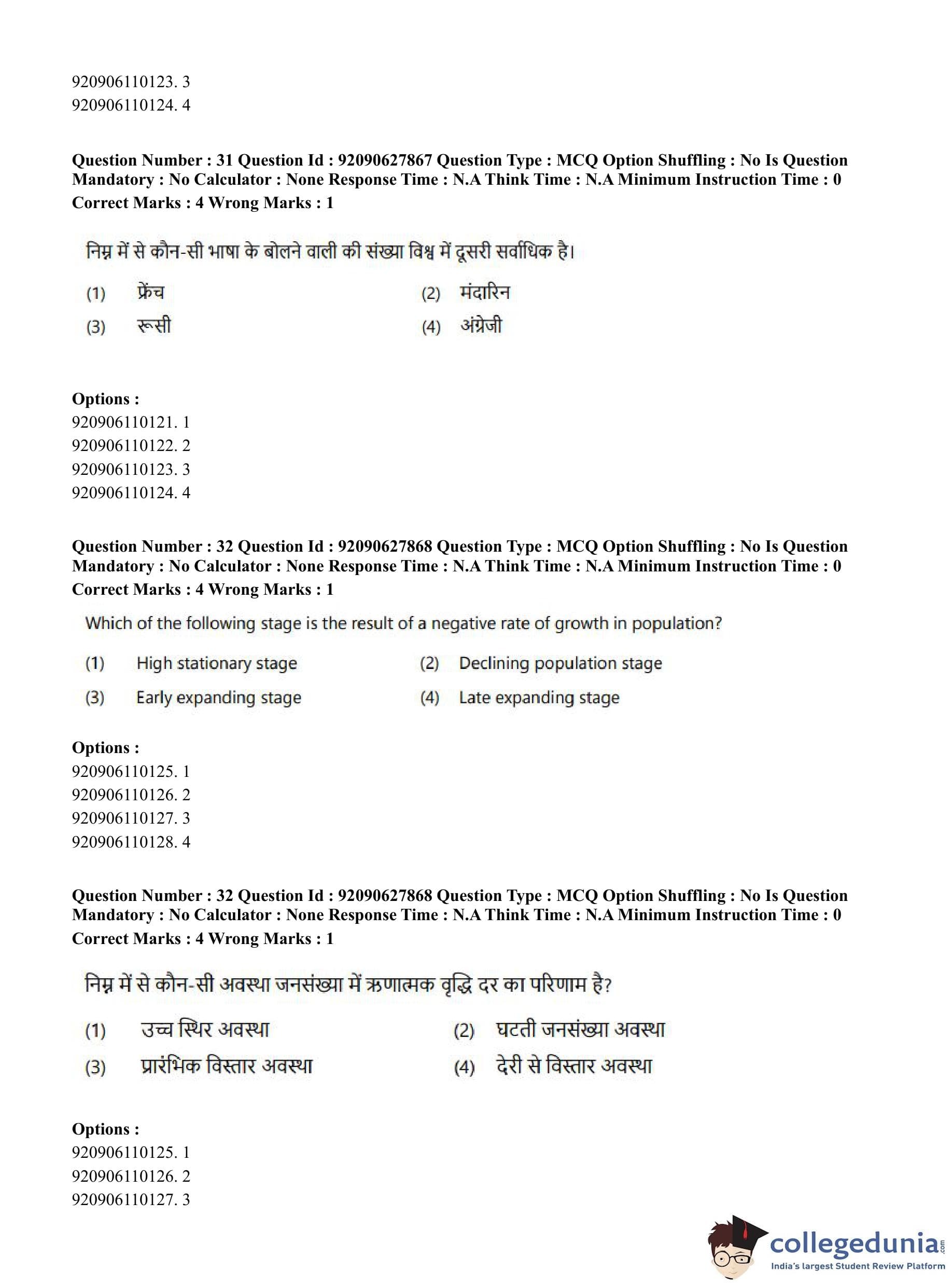 CUET PG 2023 Applied Geography and Geoinformatics Question Paper in English (June 26 - Shift 1)