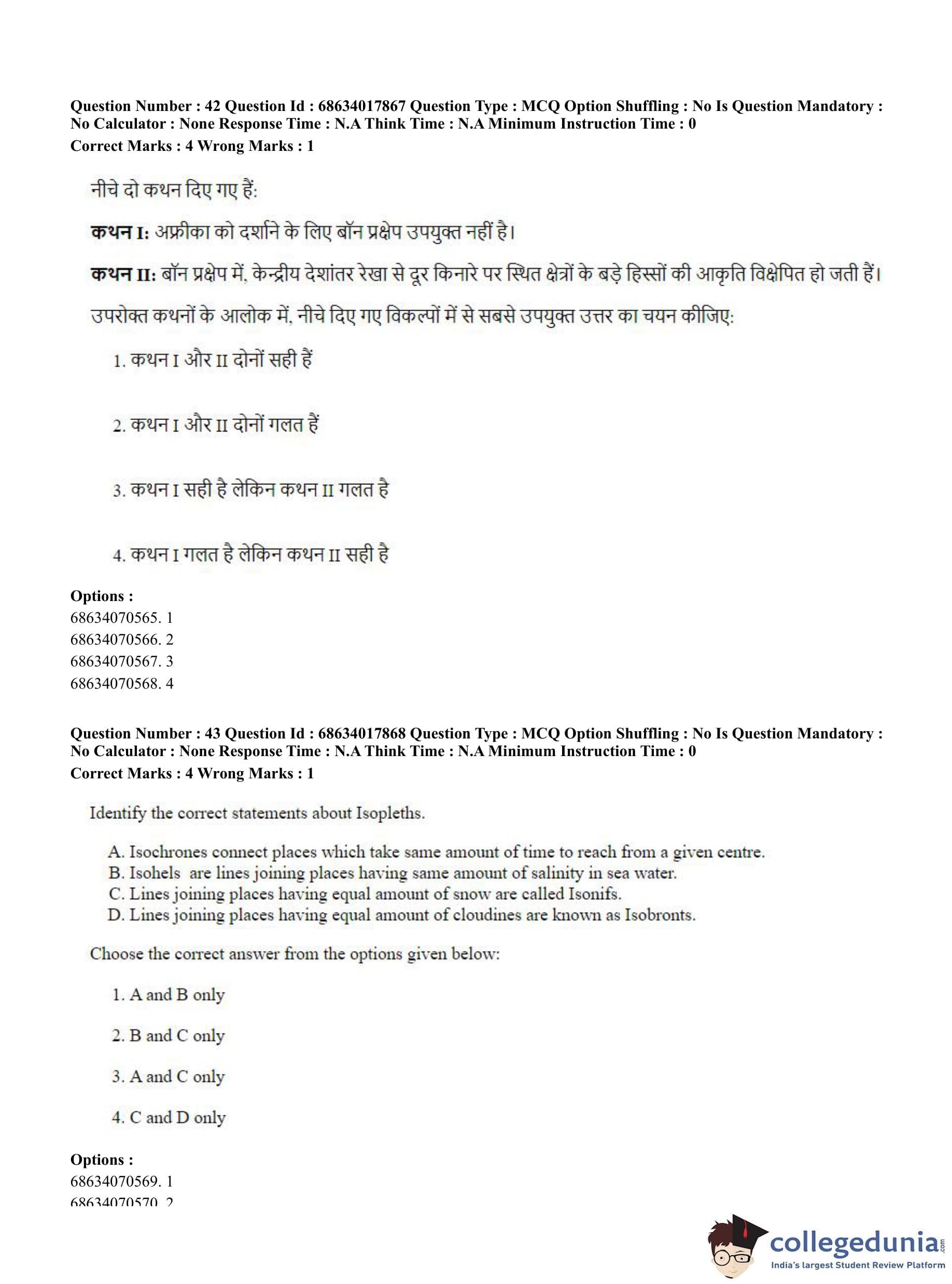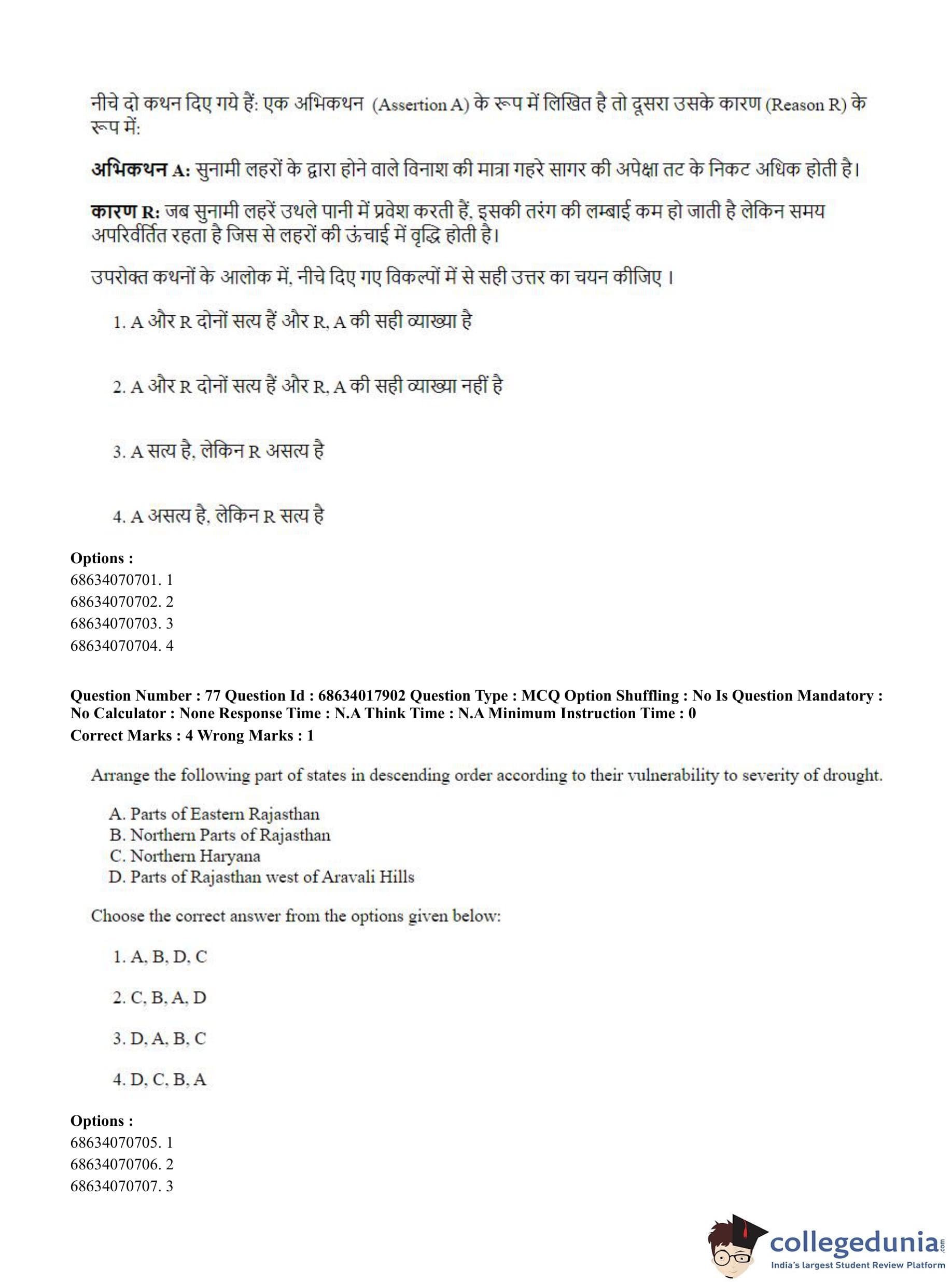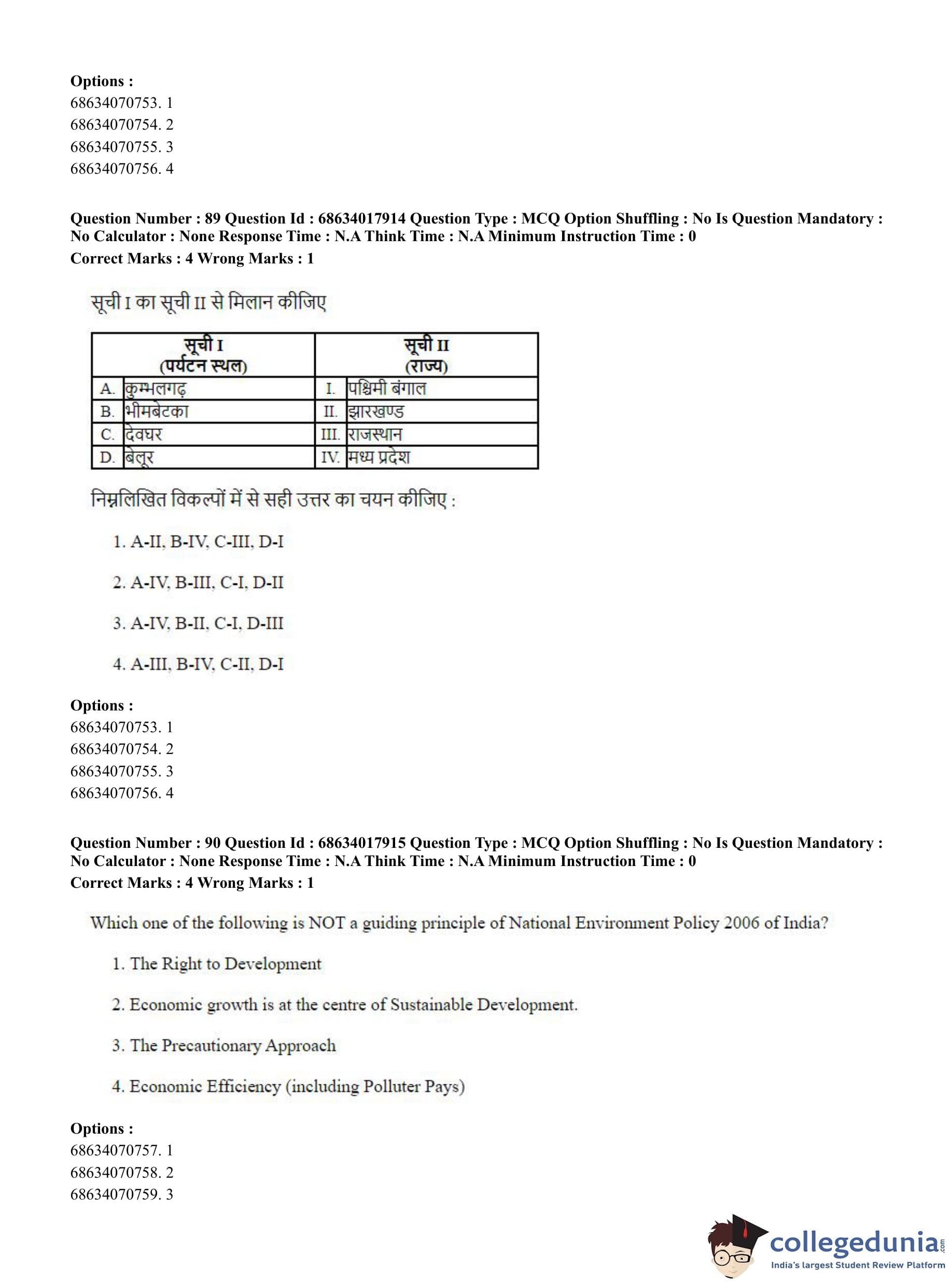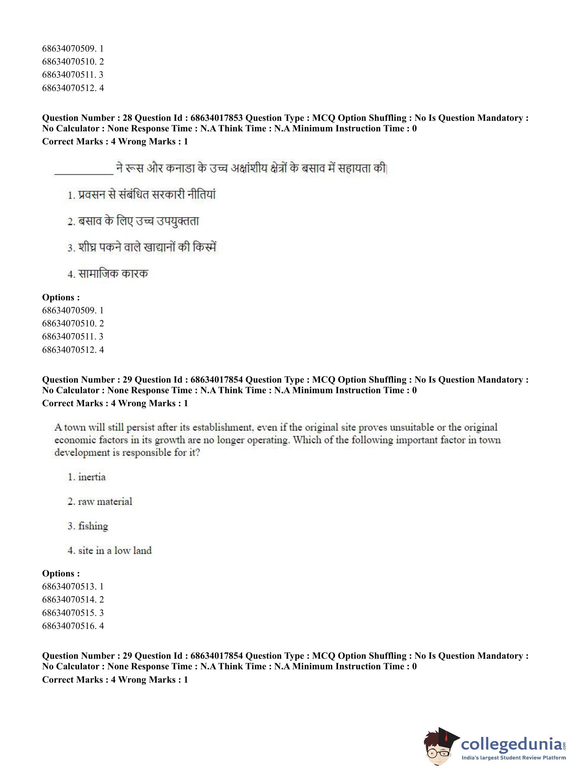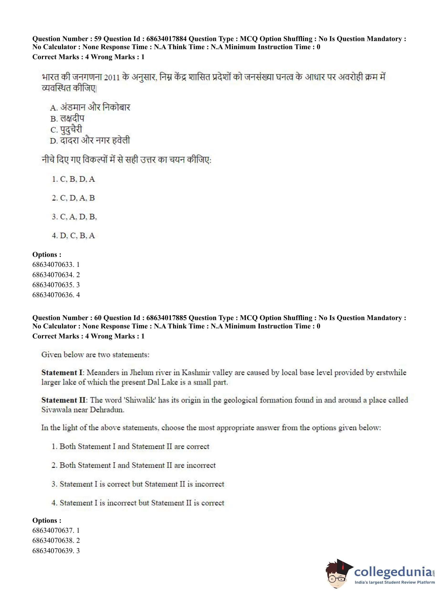 CUET PG 2023 Applied Geography and Geoinformatics Question Paper in Hindi (June 13 - Shift 3)