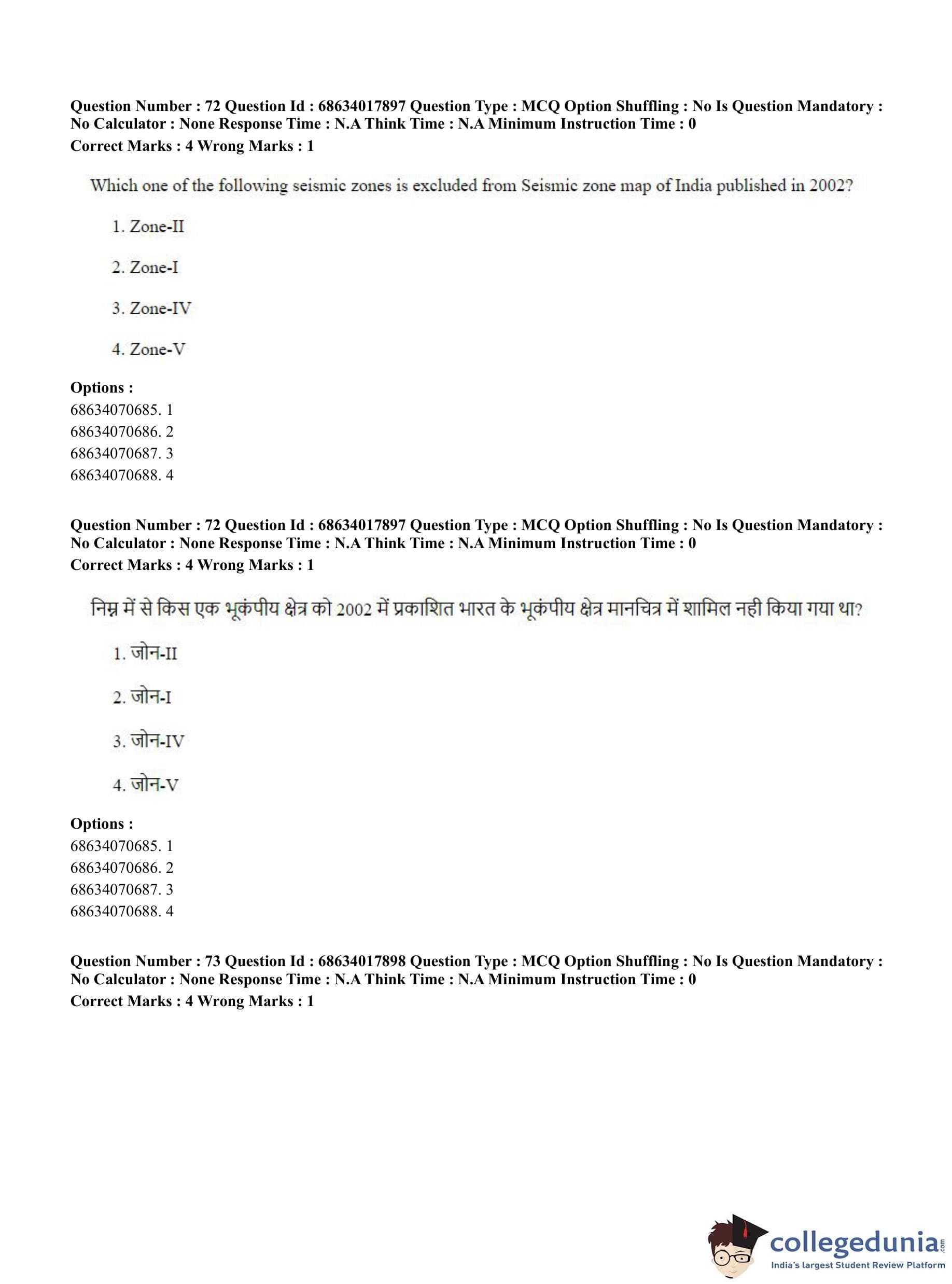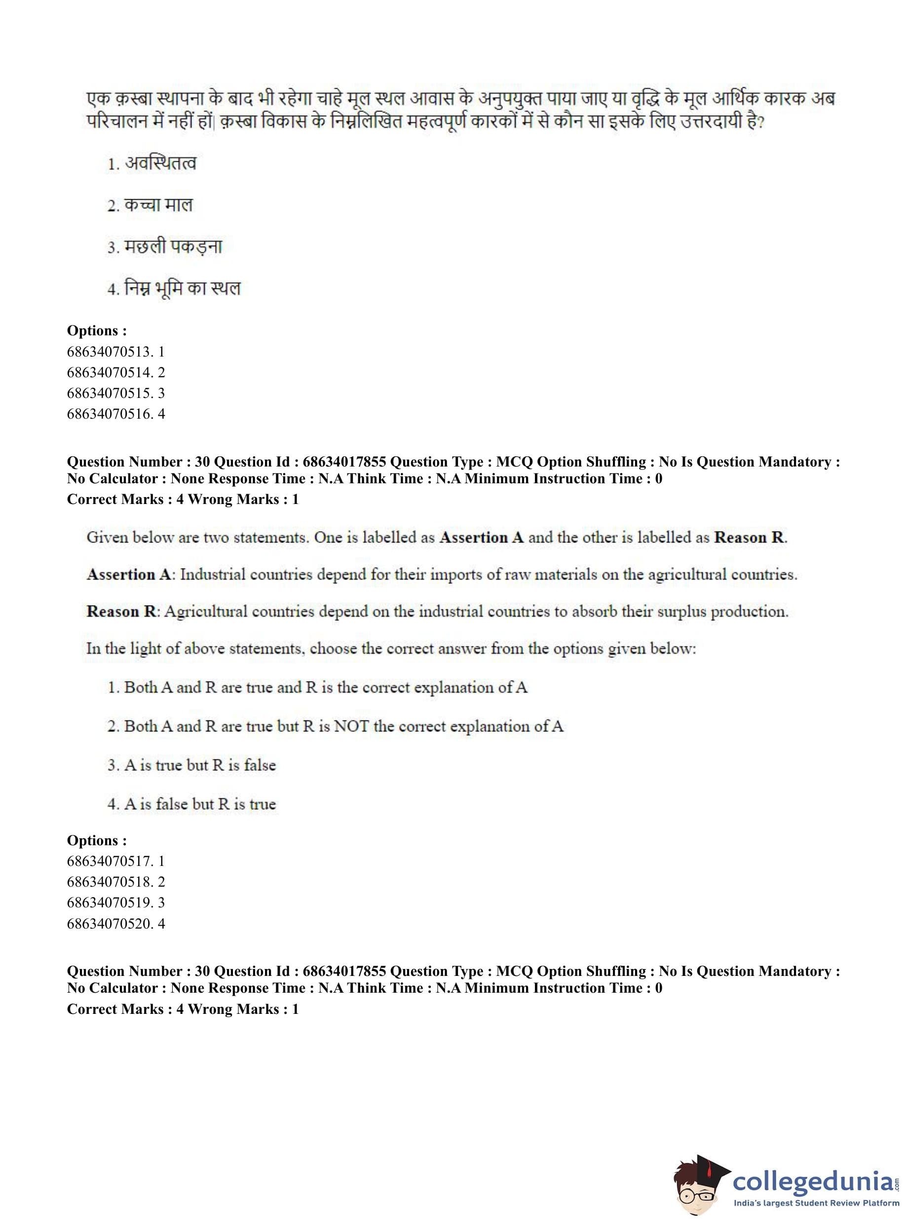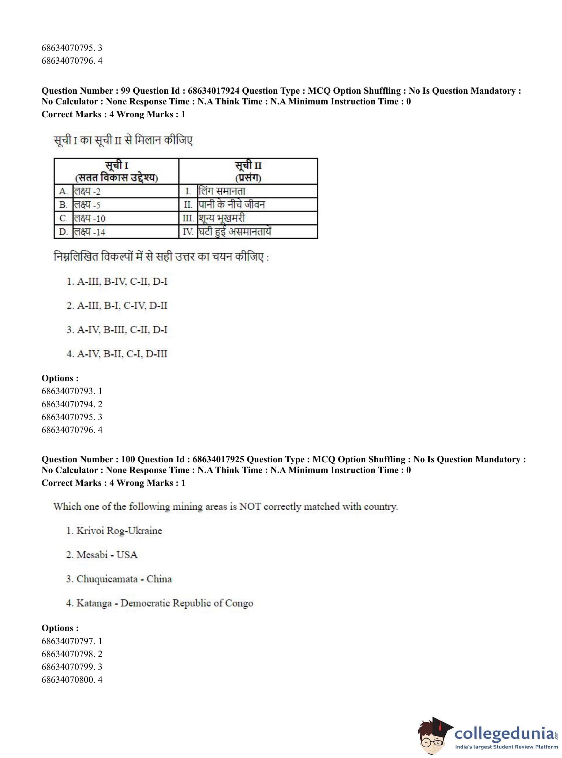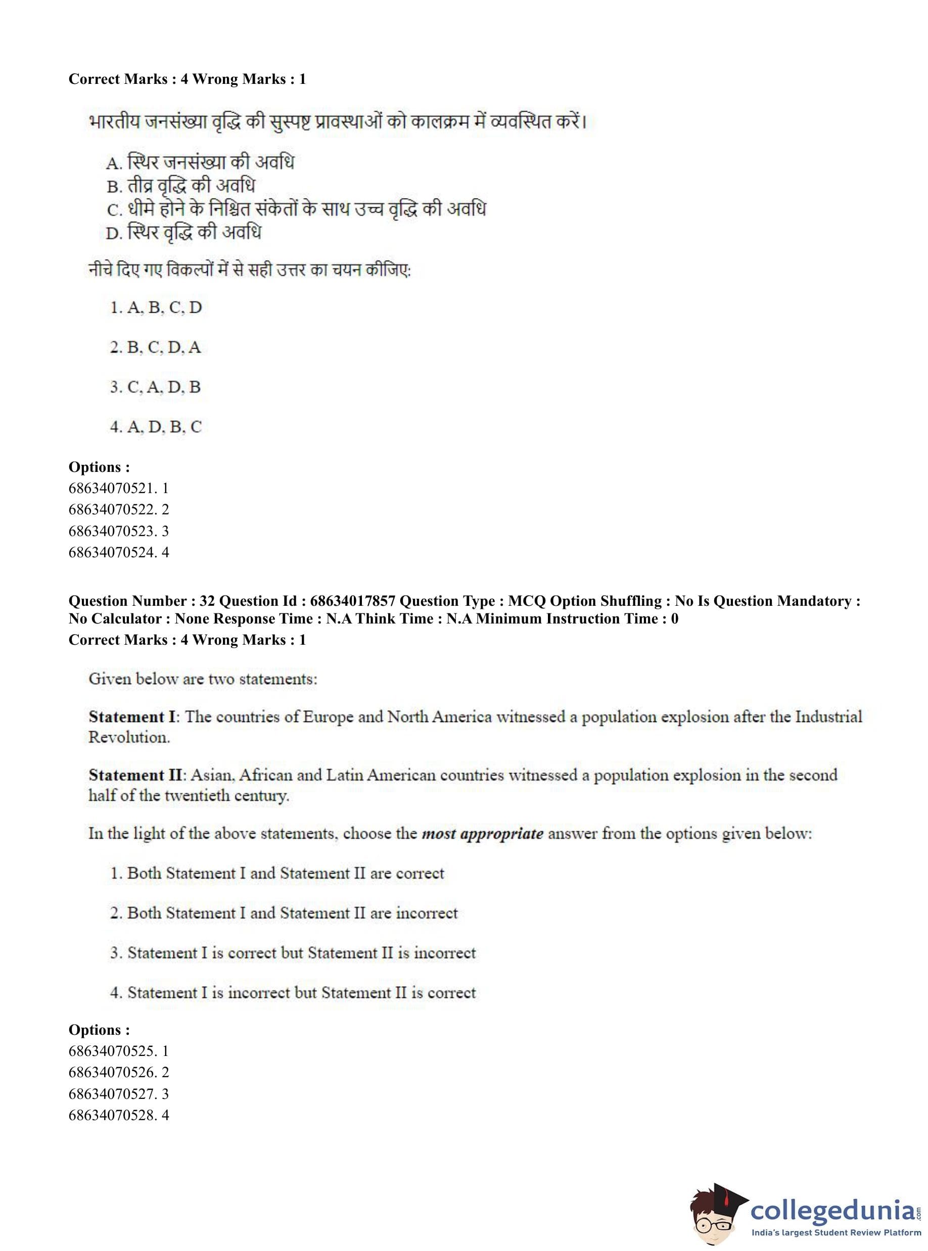 CUET PG 2023 Applied Geography and Geoinformatics Question Paper in Hindi (June 13 - Shift 3)