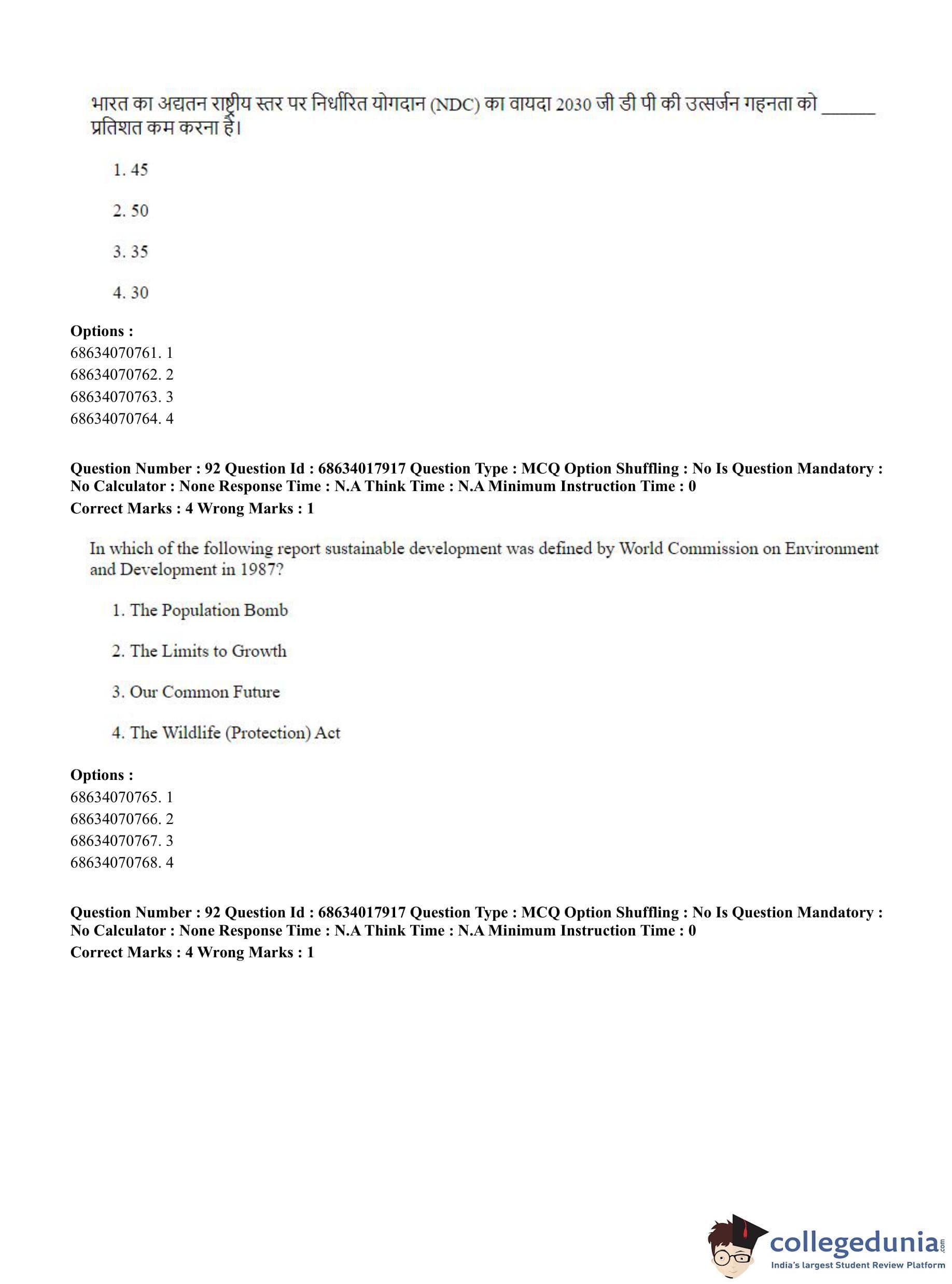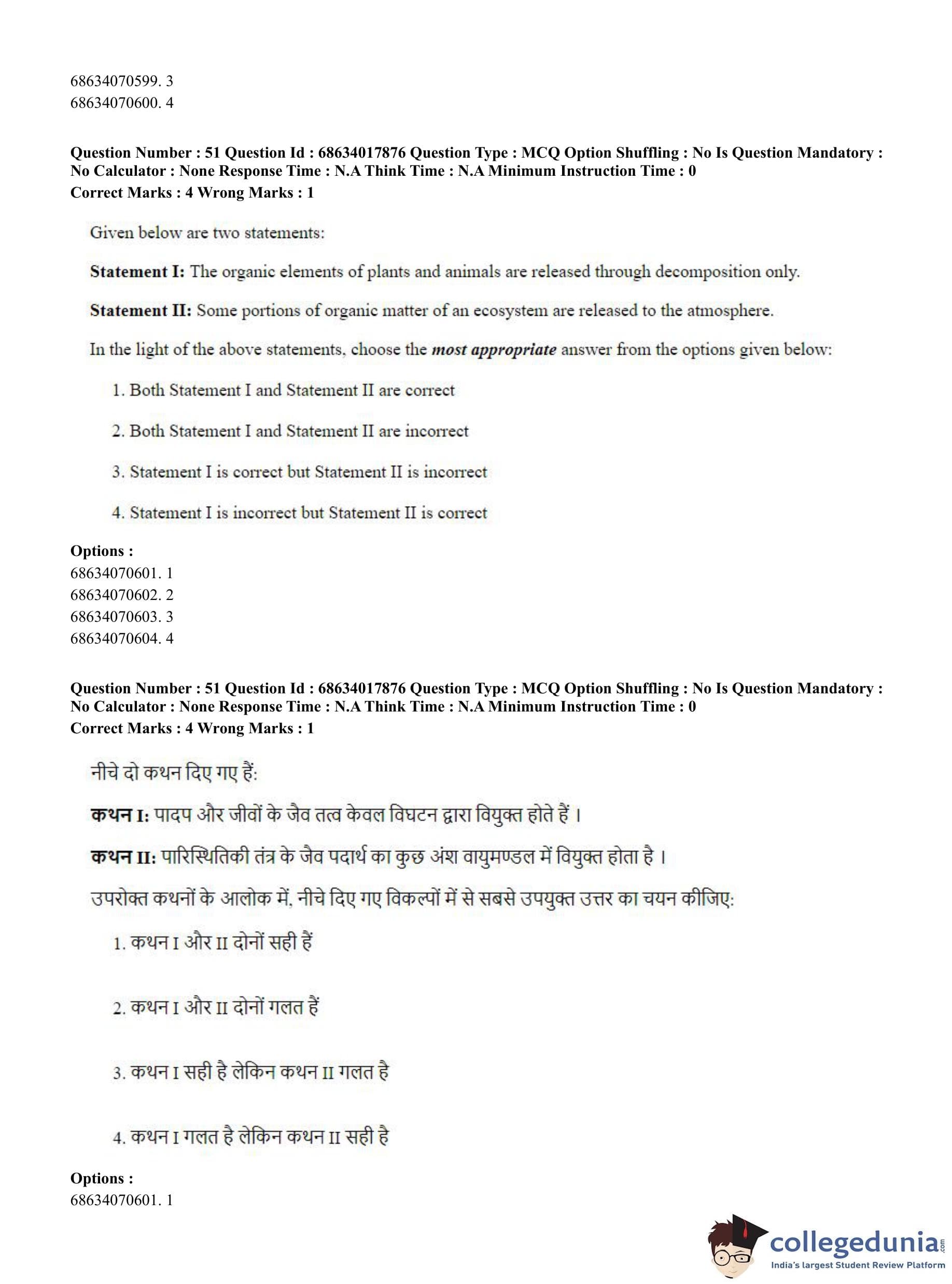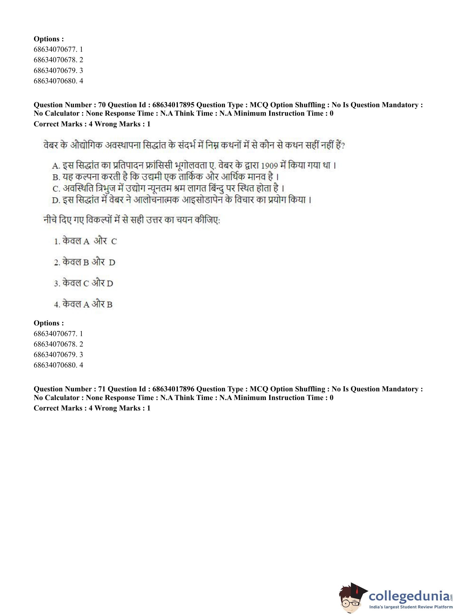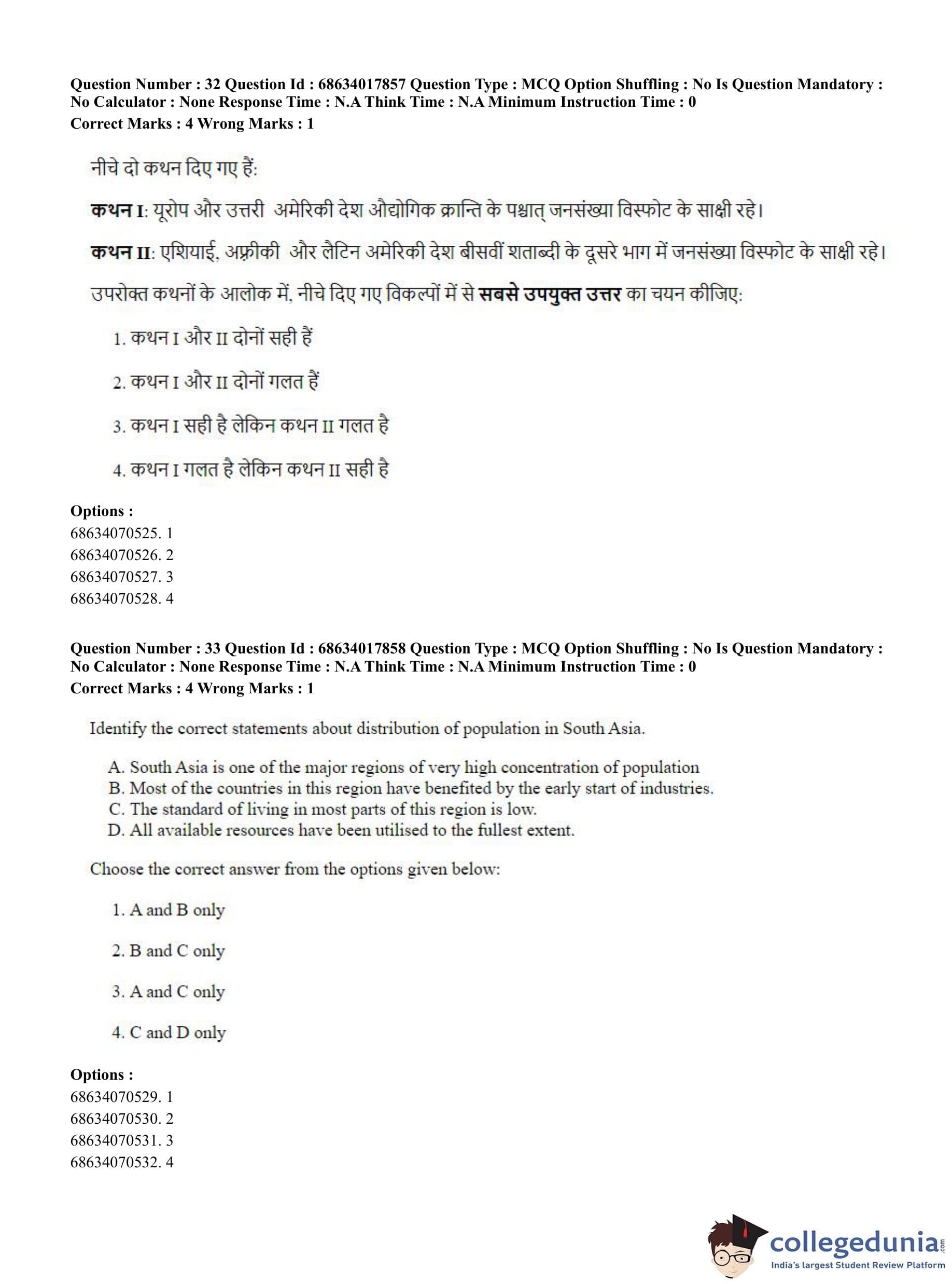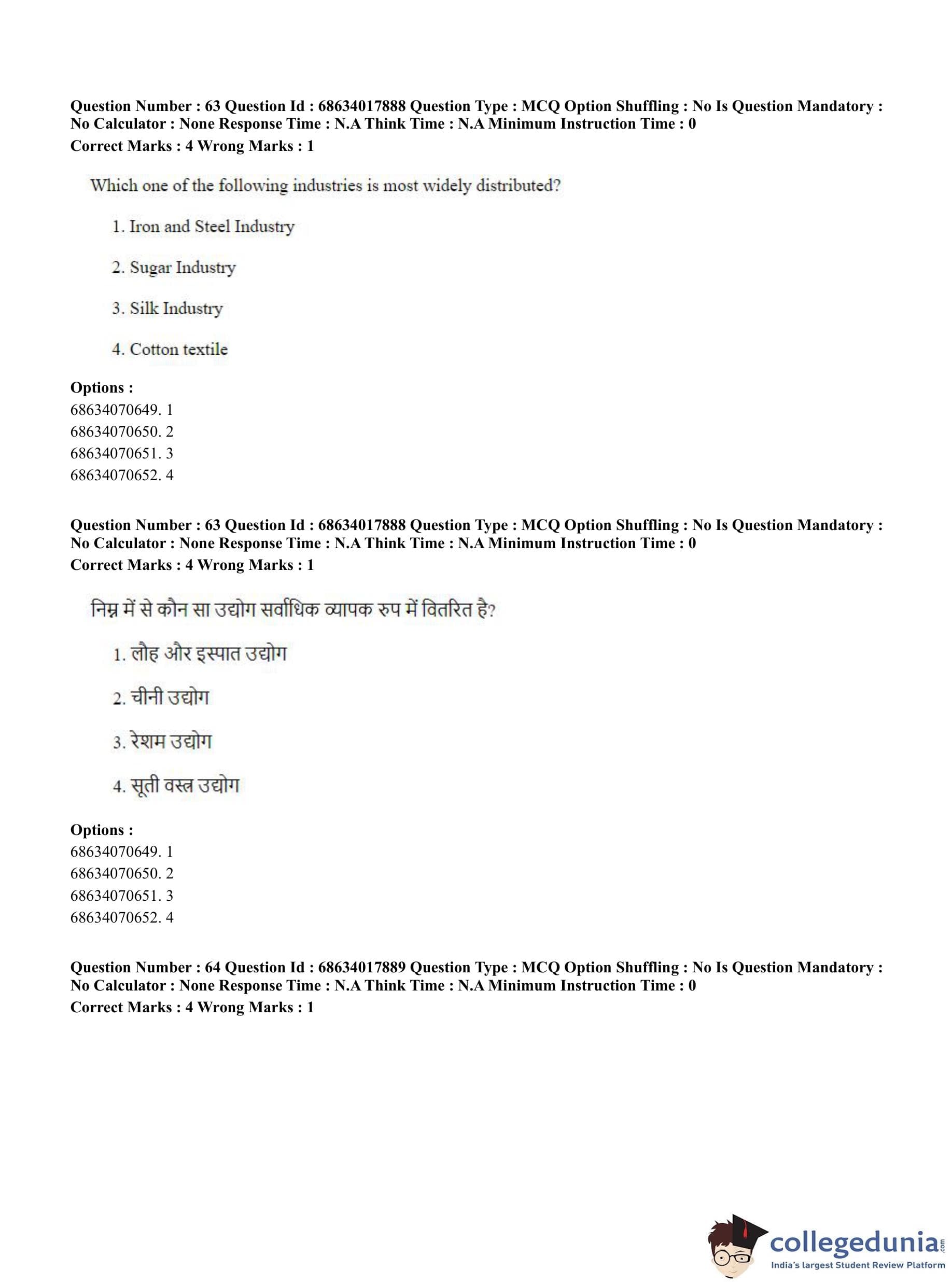 CUET PG 2023 Applied Geography and Geoinformatics Question Paper in Hindi (June 13 - Shift 3)