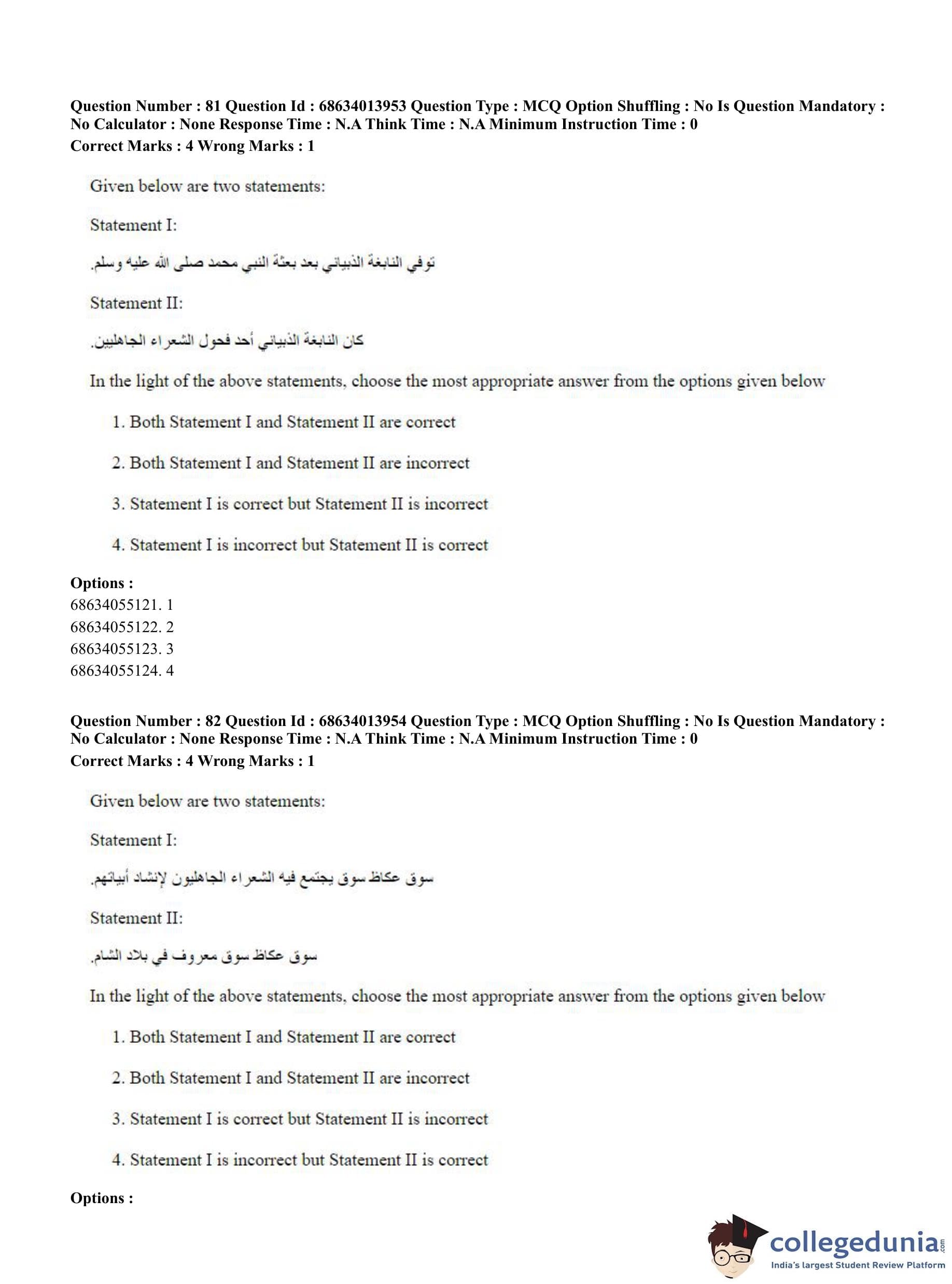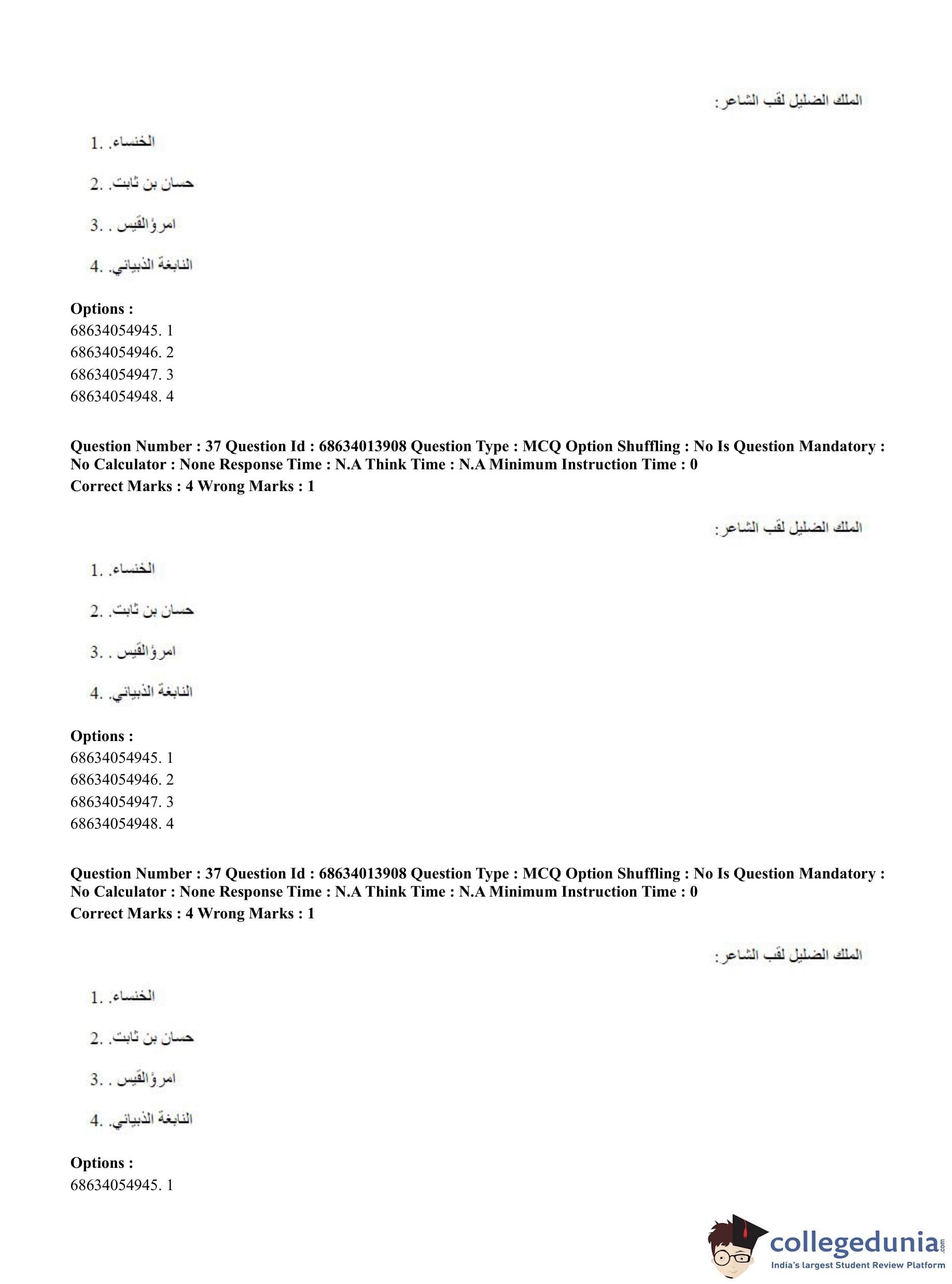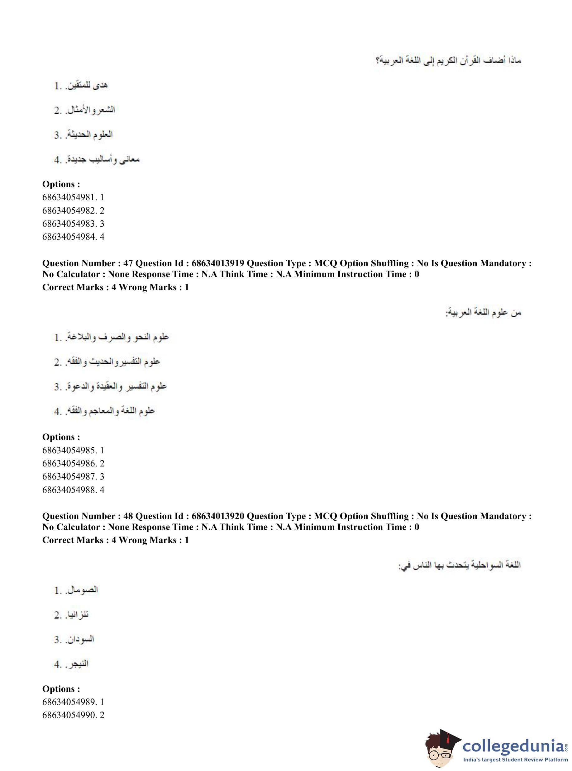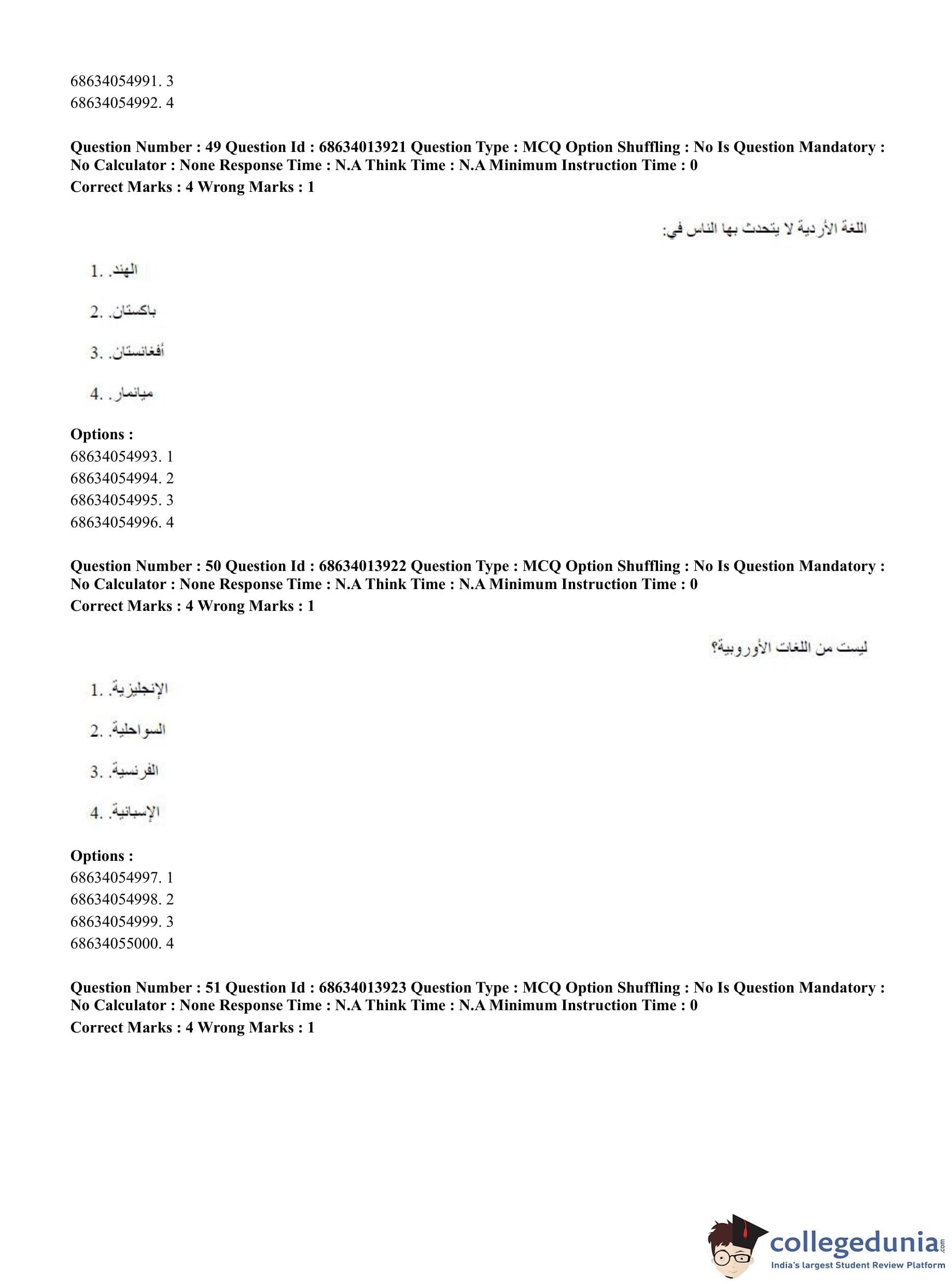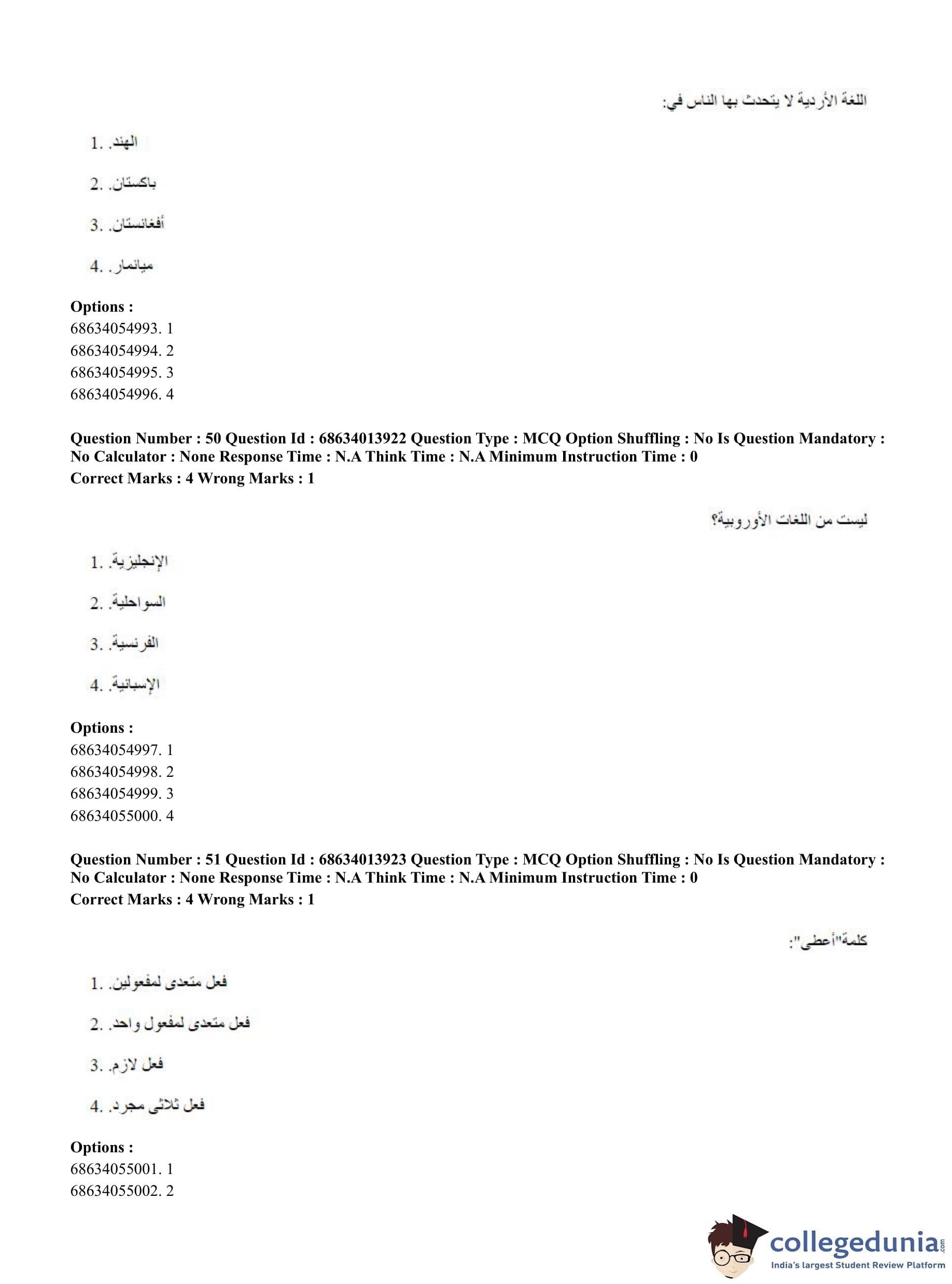 CUET PG 2023 Arabic Question Paper in English (June 11 - Shift 3)