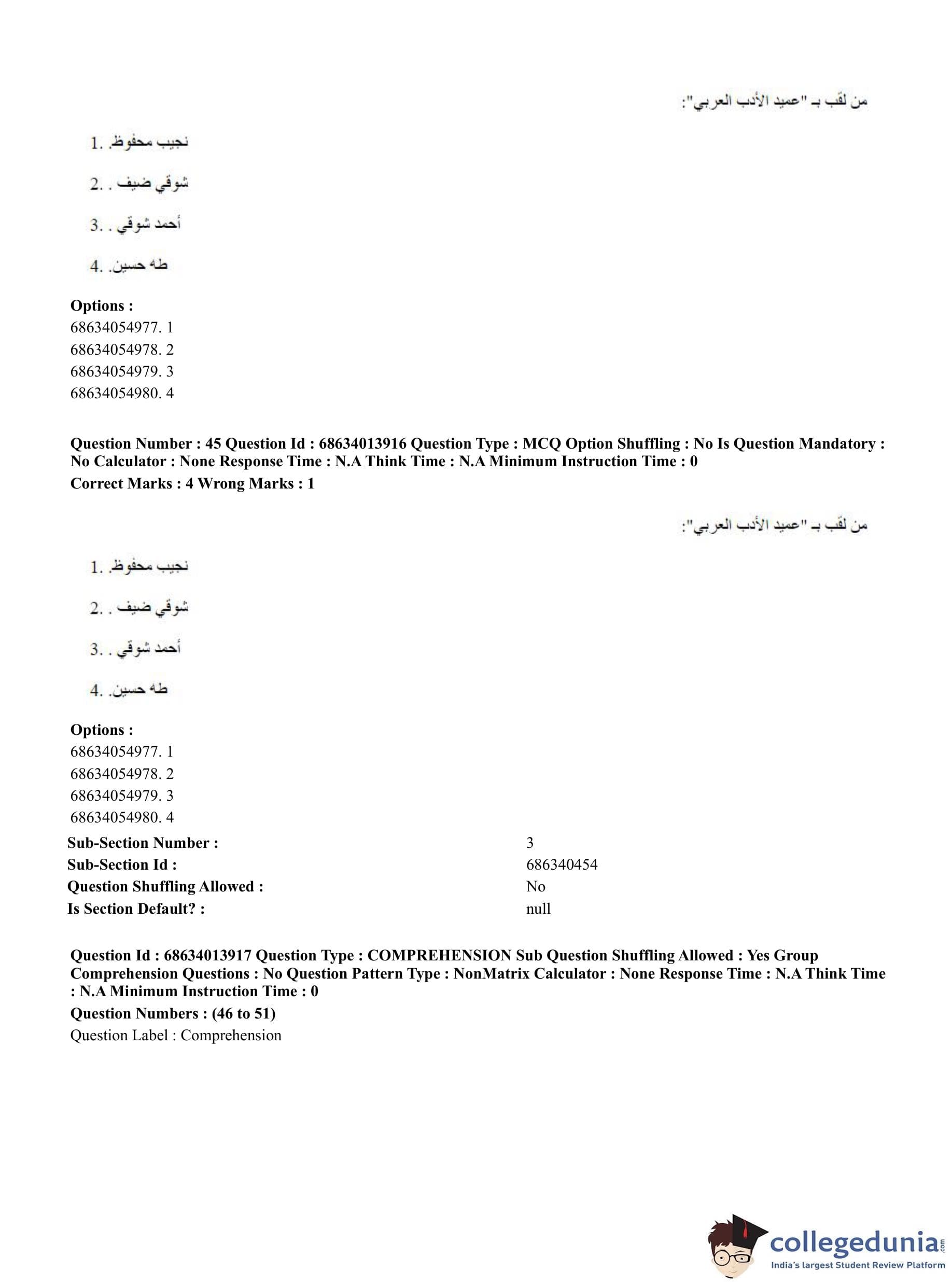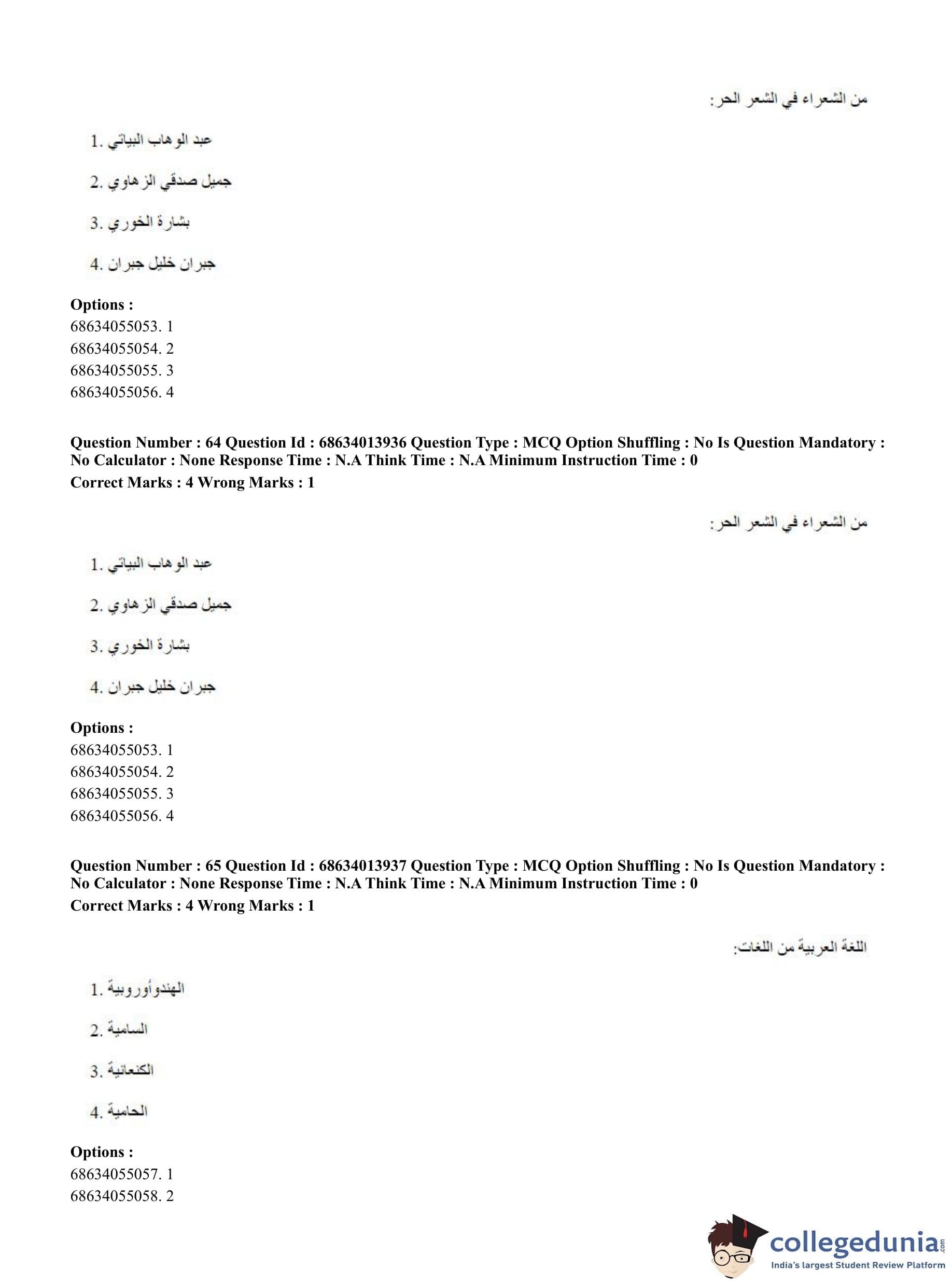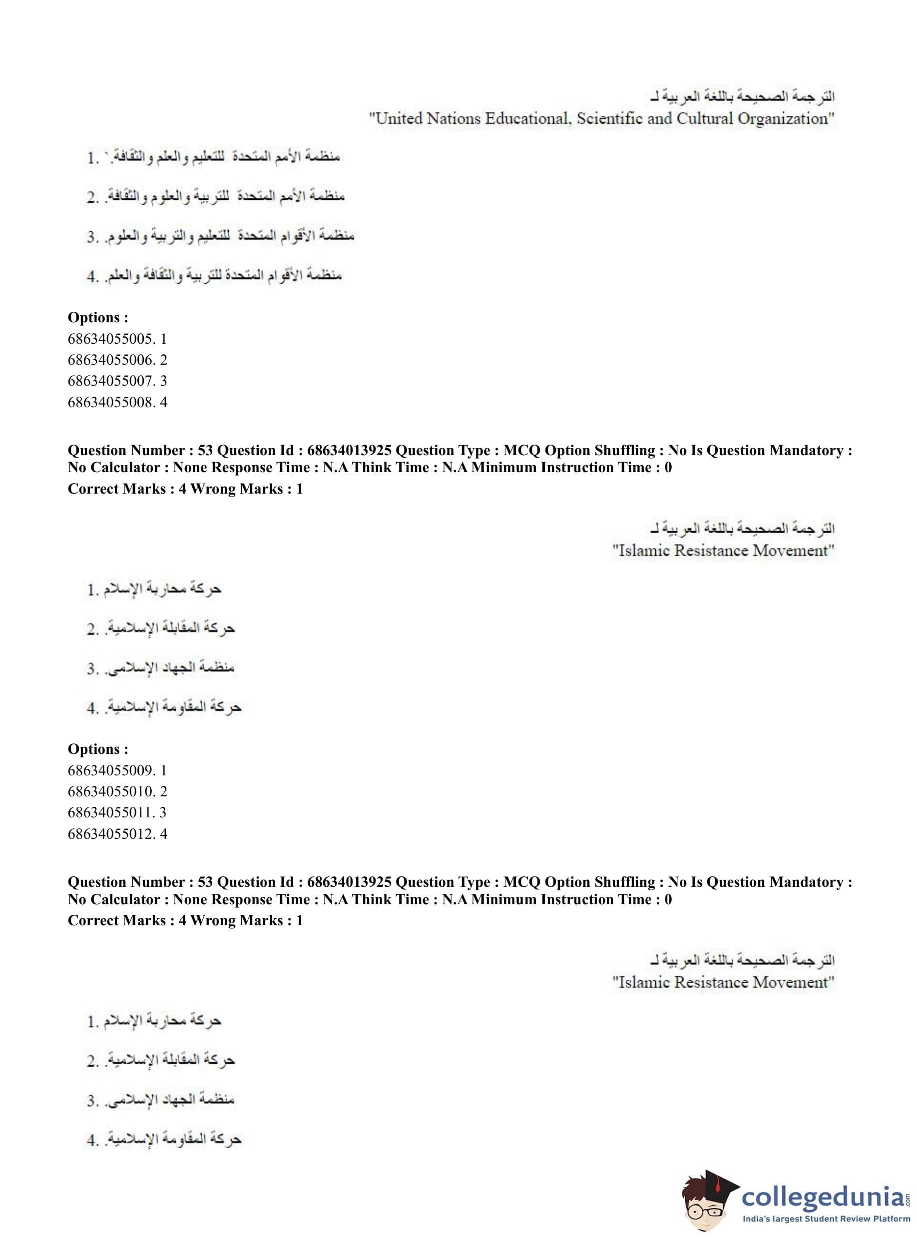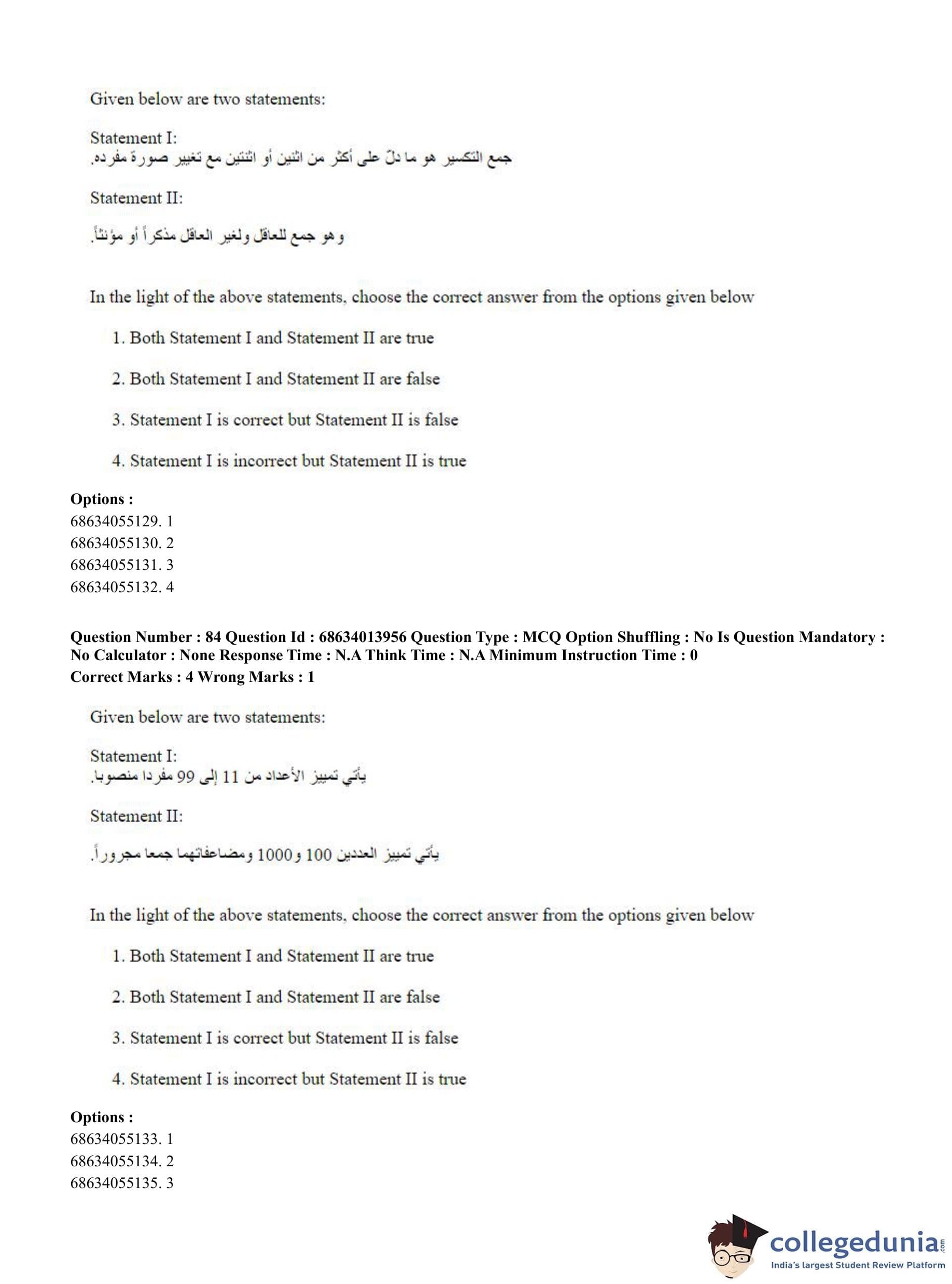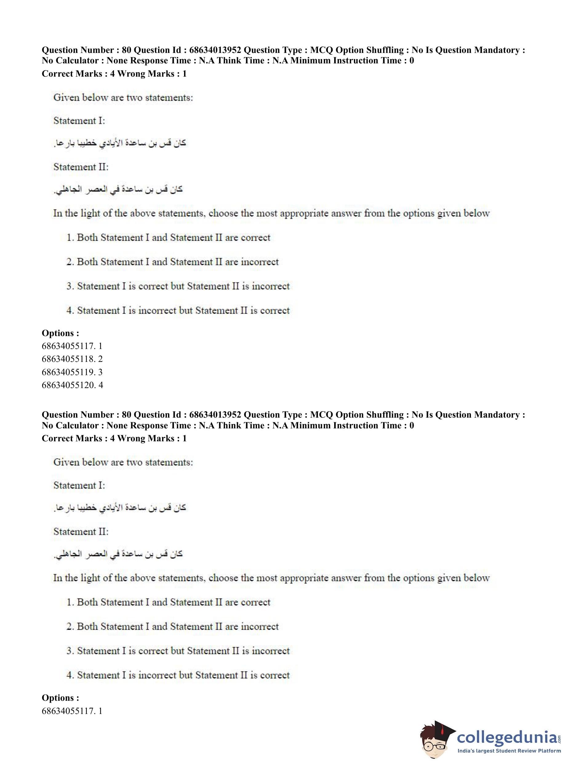 CUET PG 2023 Arabic Question Paper in English (June 11 - Shift 3)