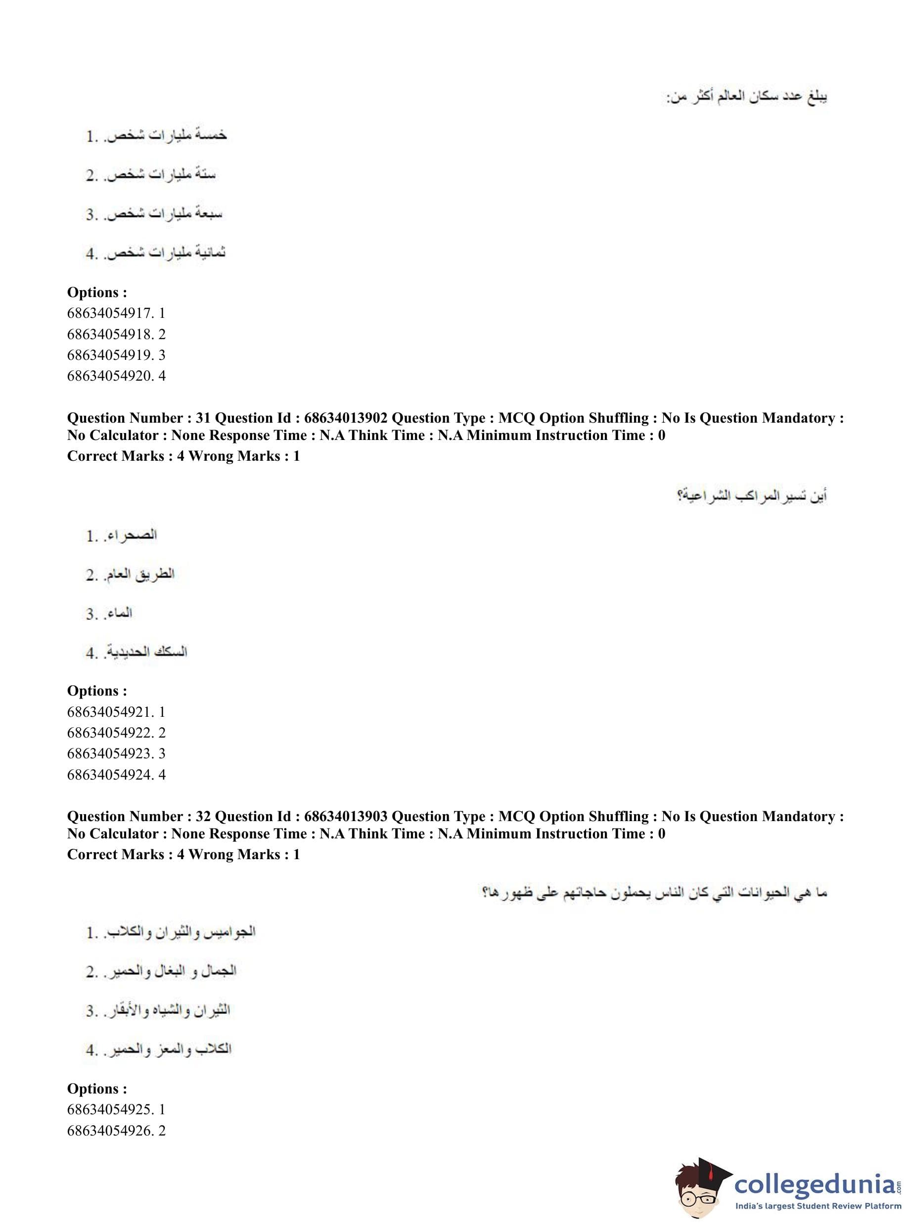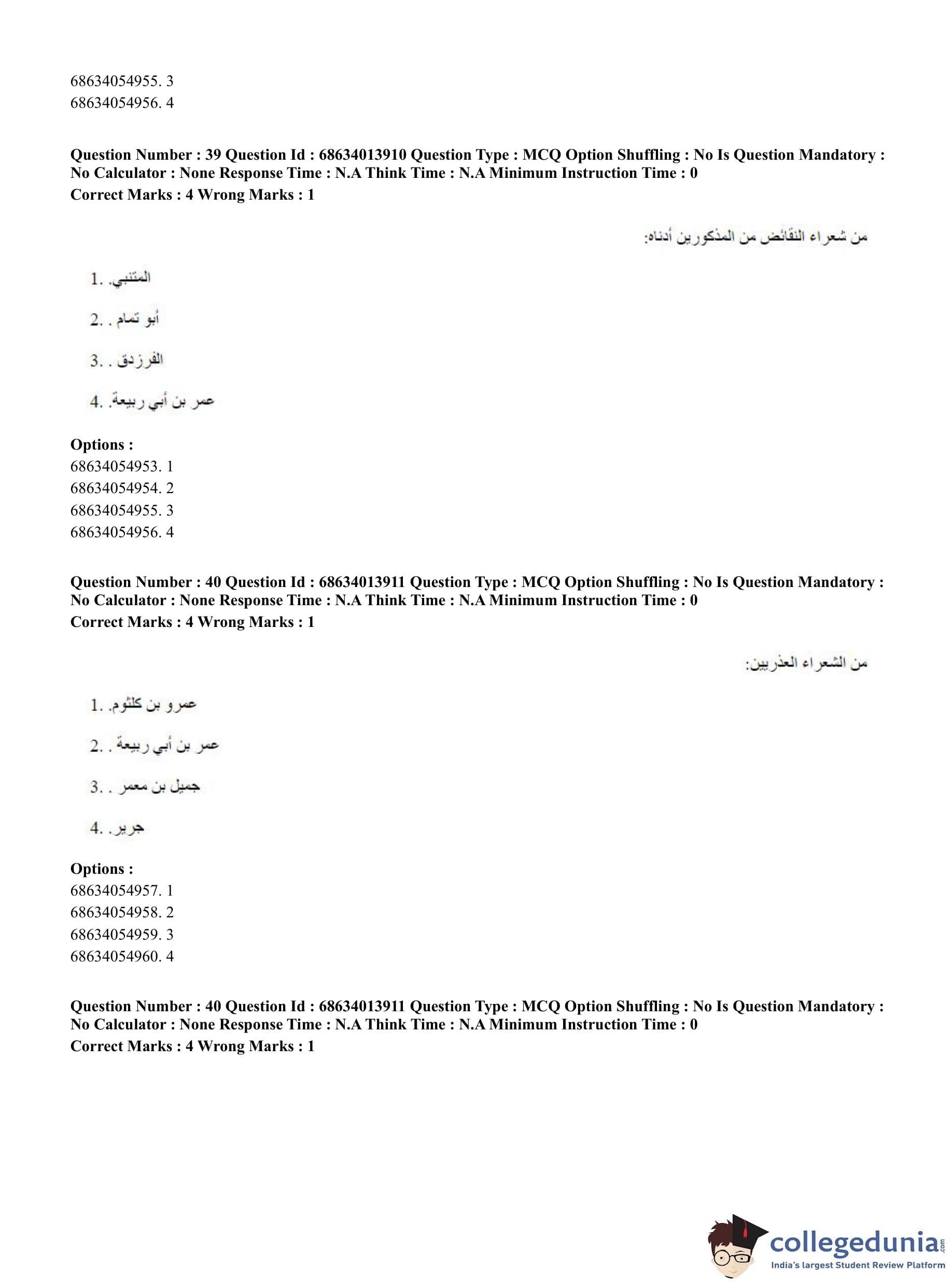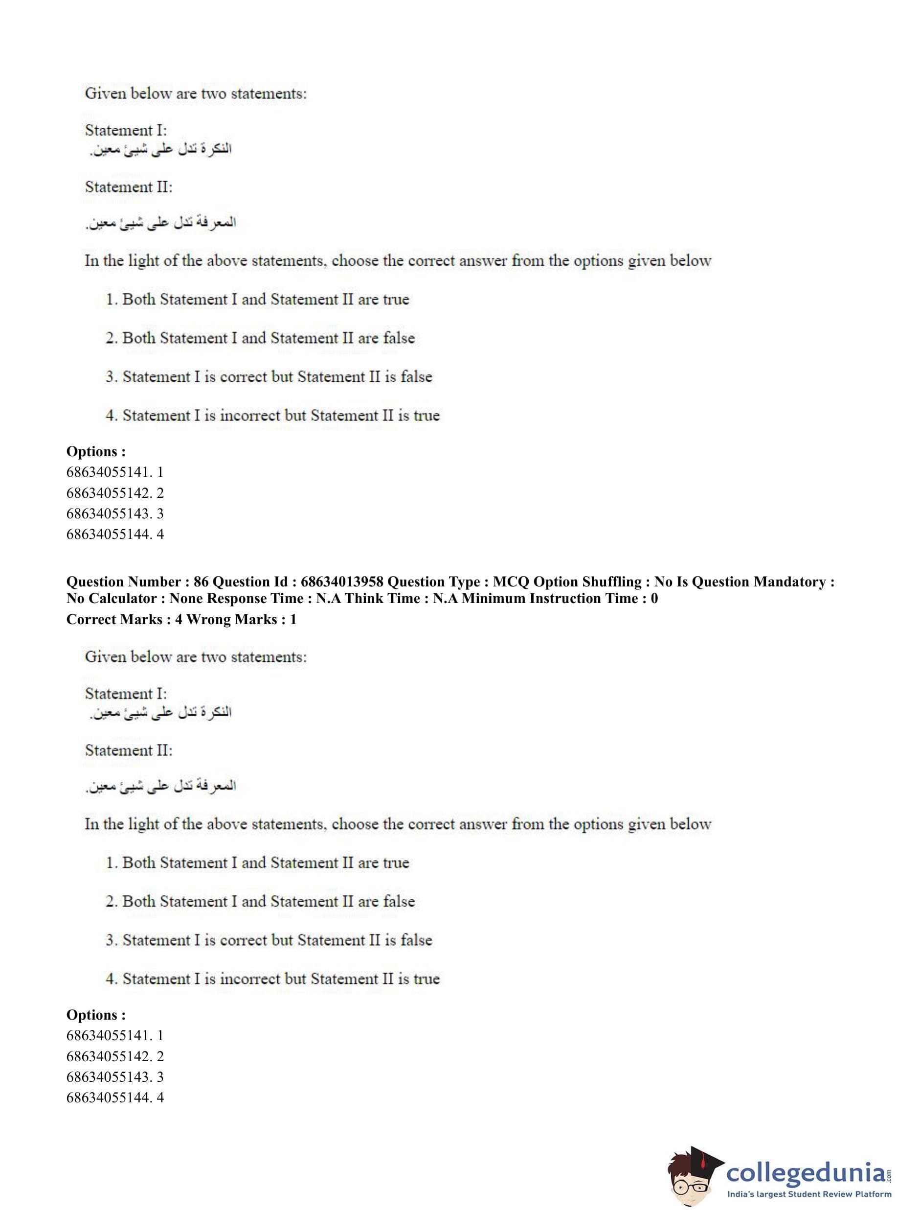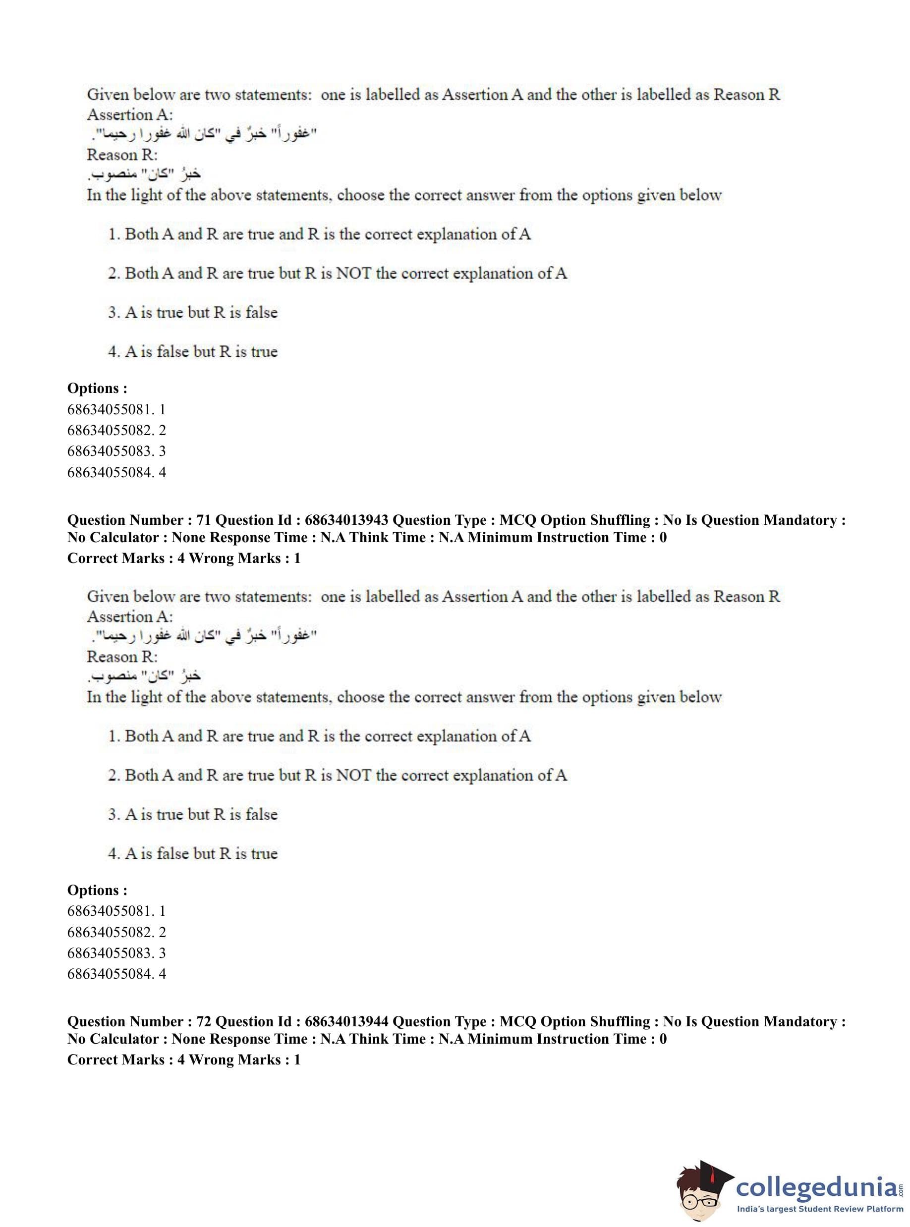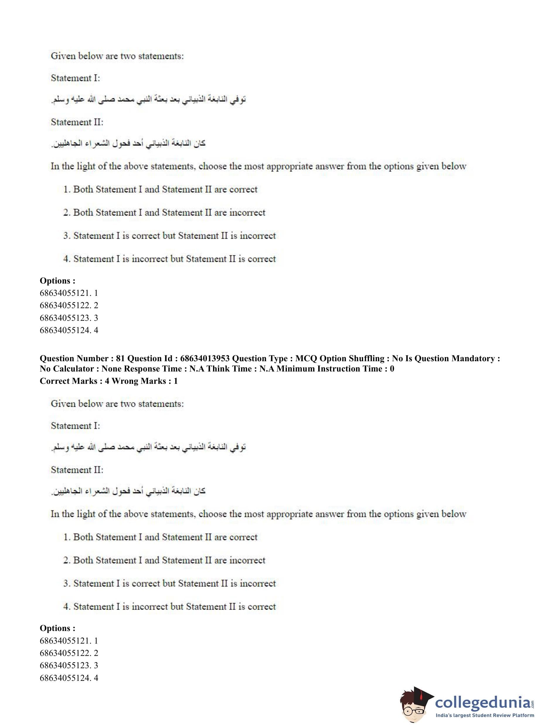 CUET PG 2023 Arabic Question Paper in English (June 11 - Shift 3)