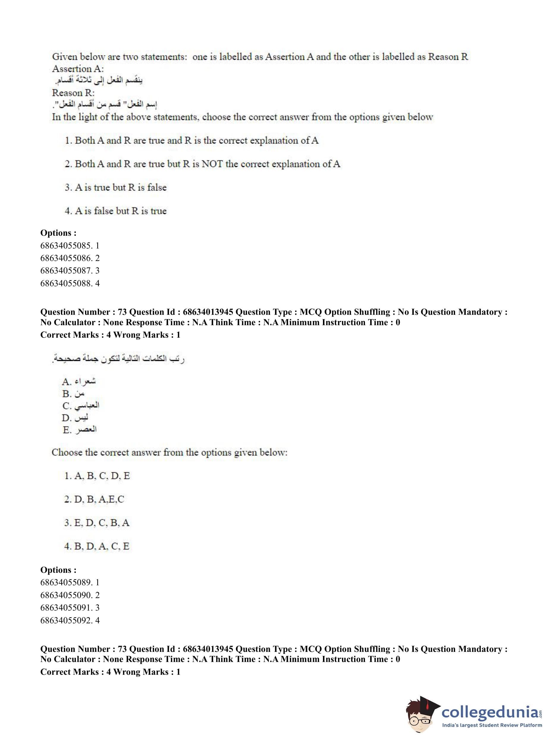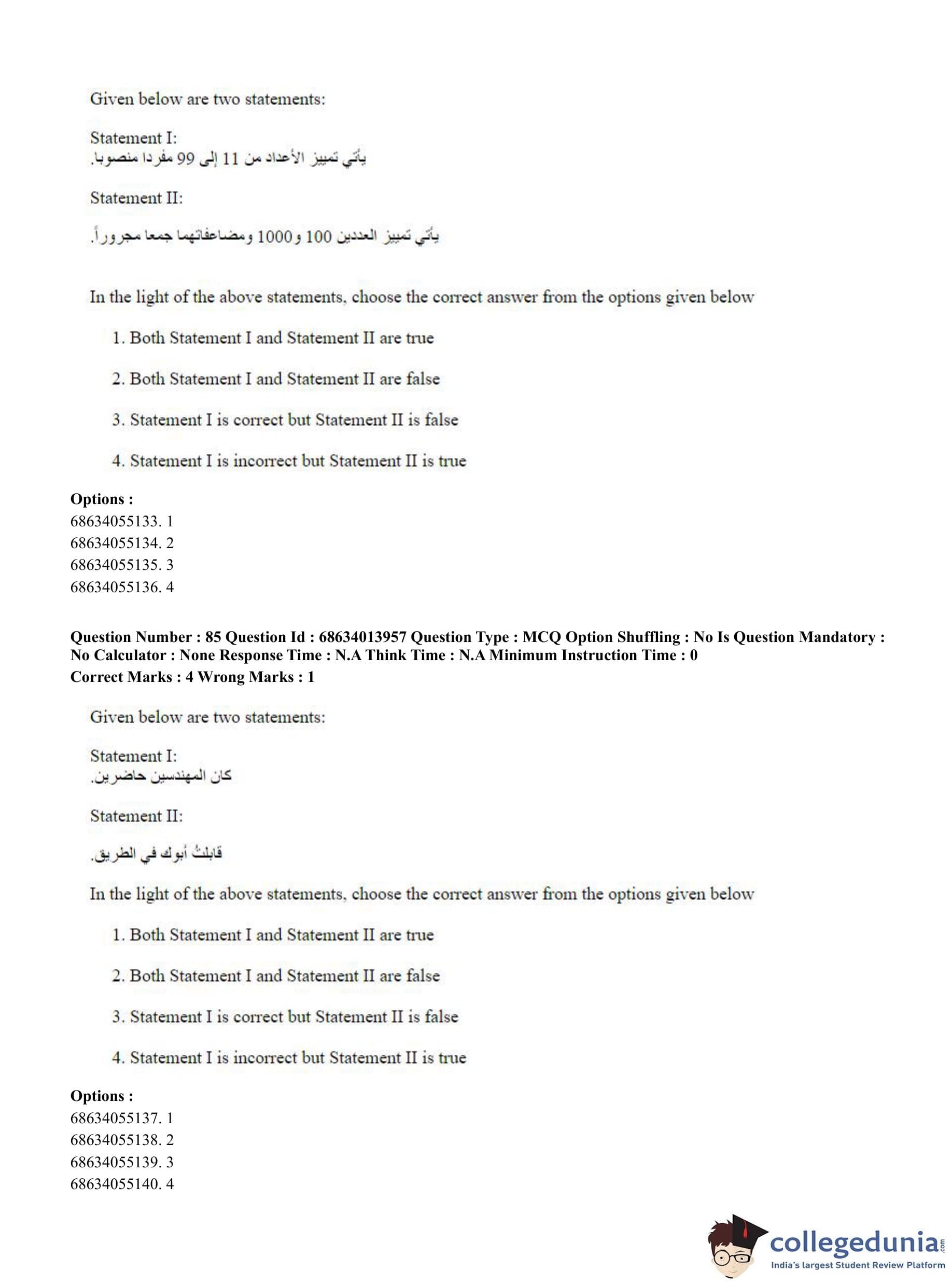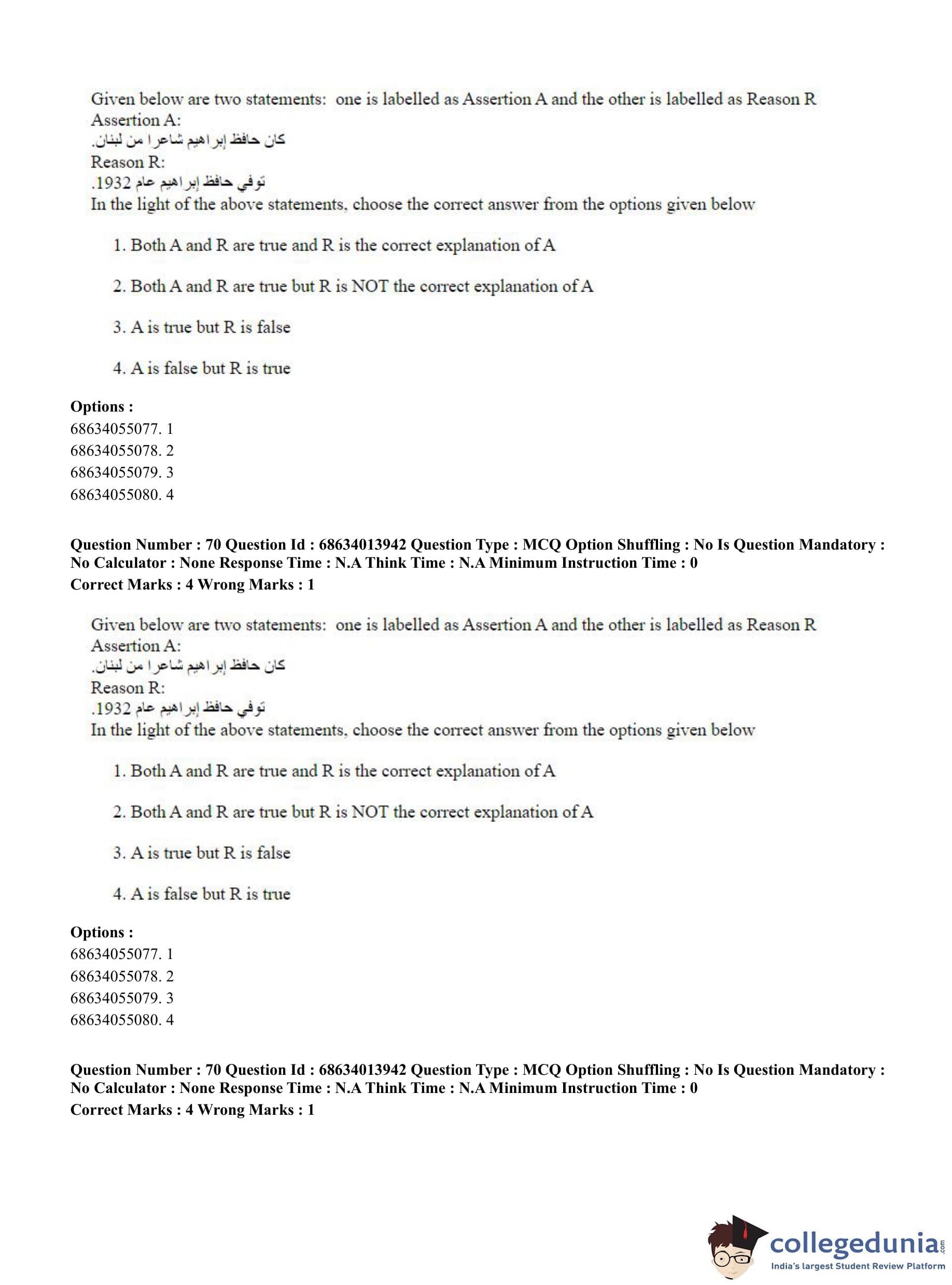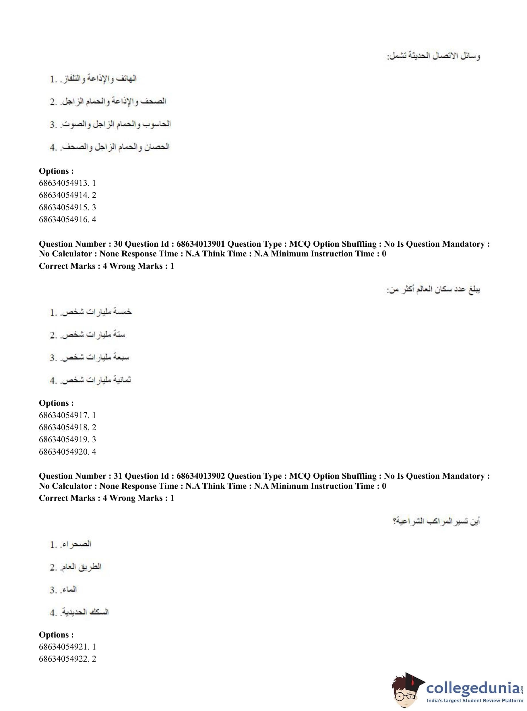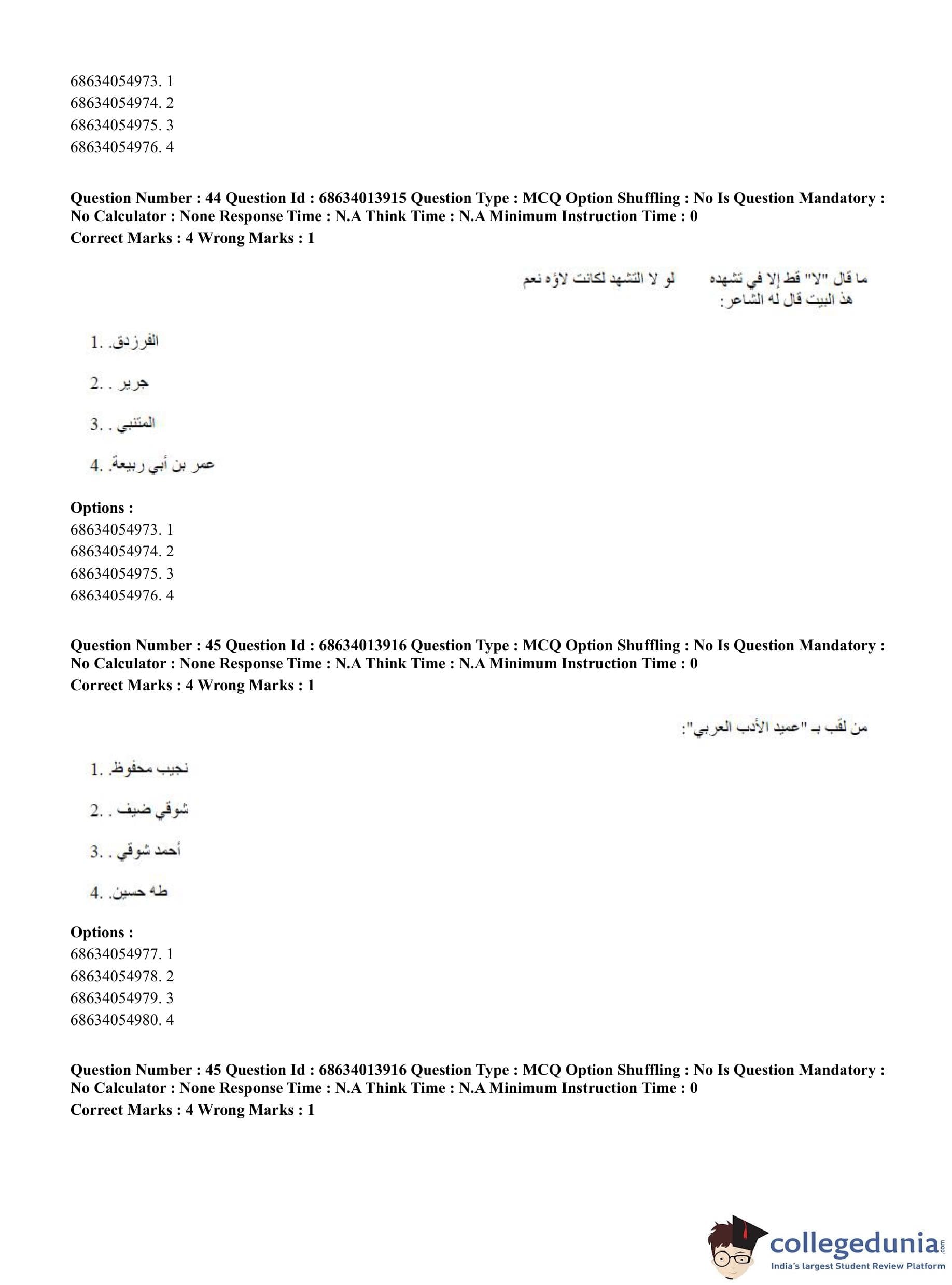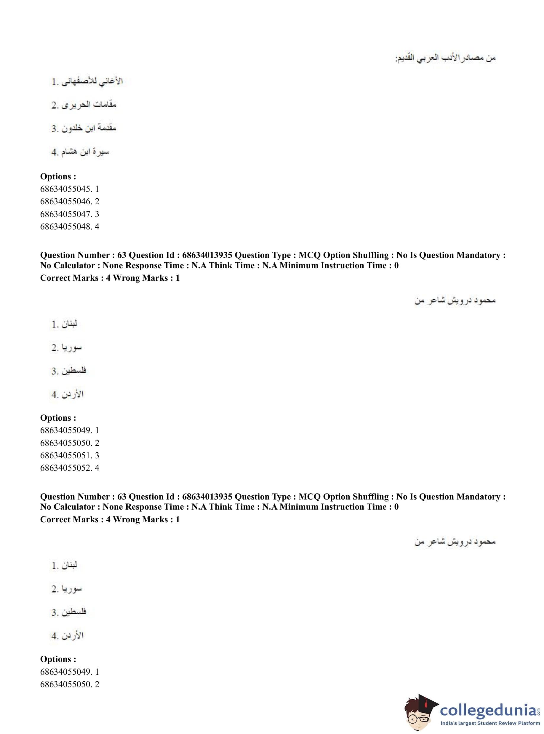 CUET PG 2023 Arabic Question Paper in English (June 11 - Shift 3)