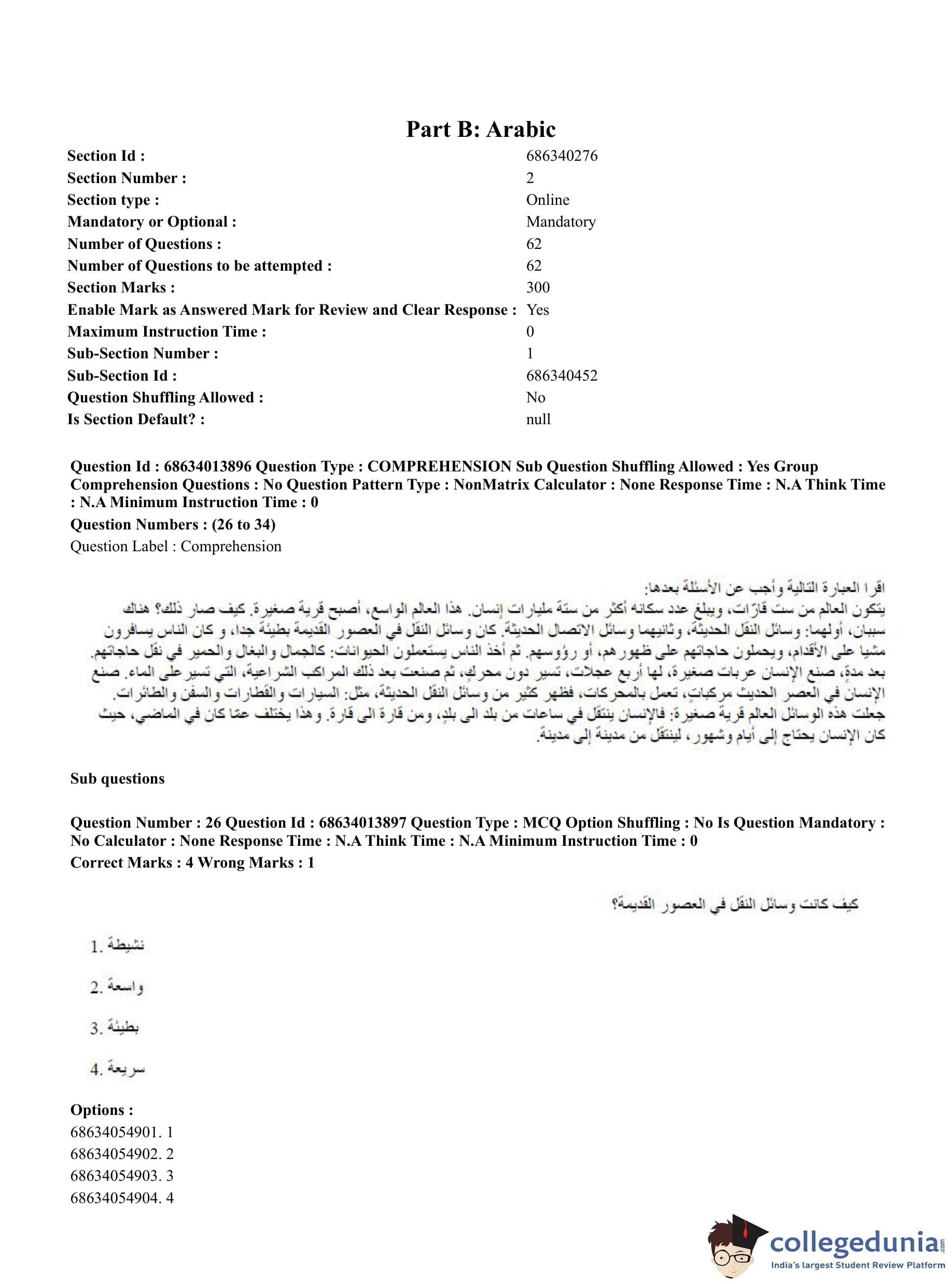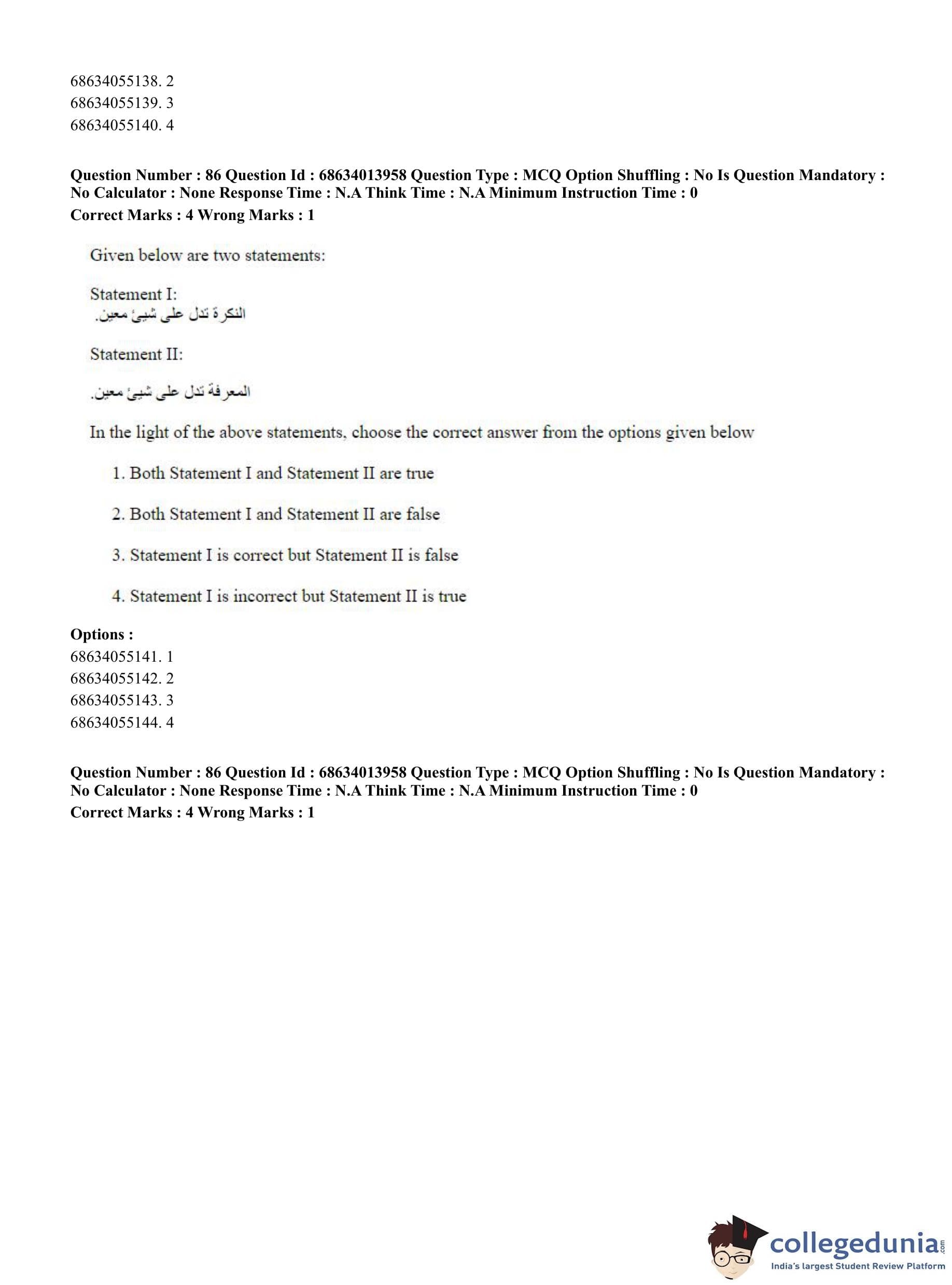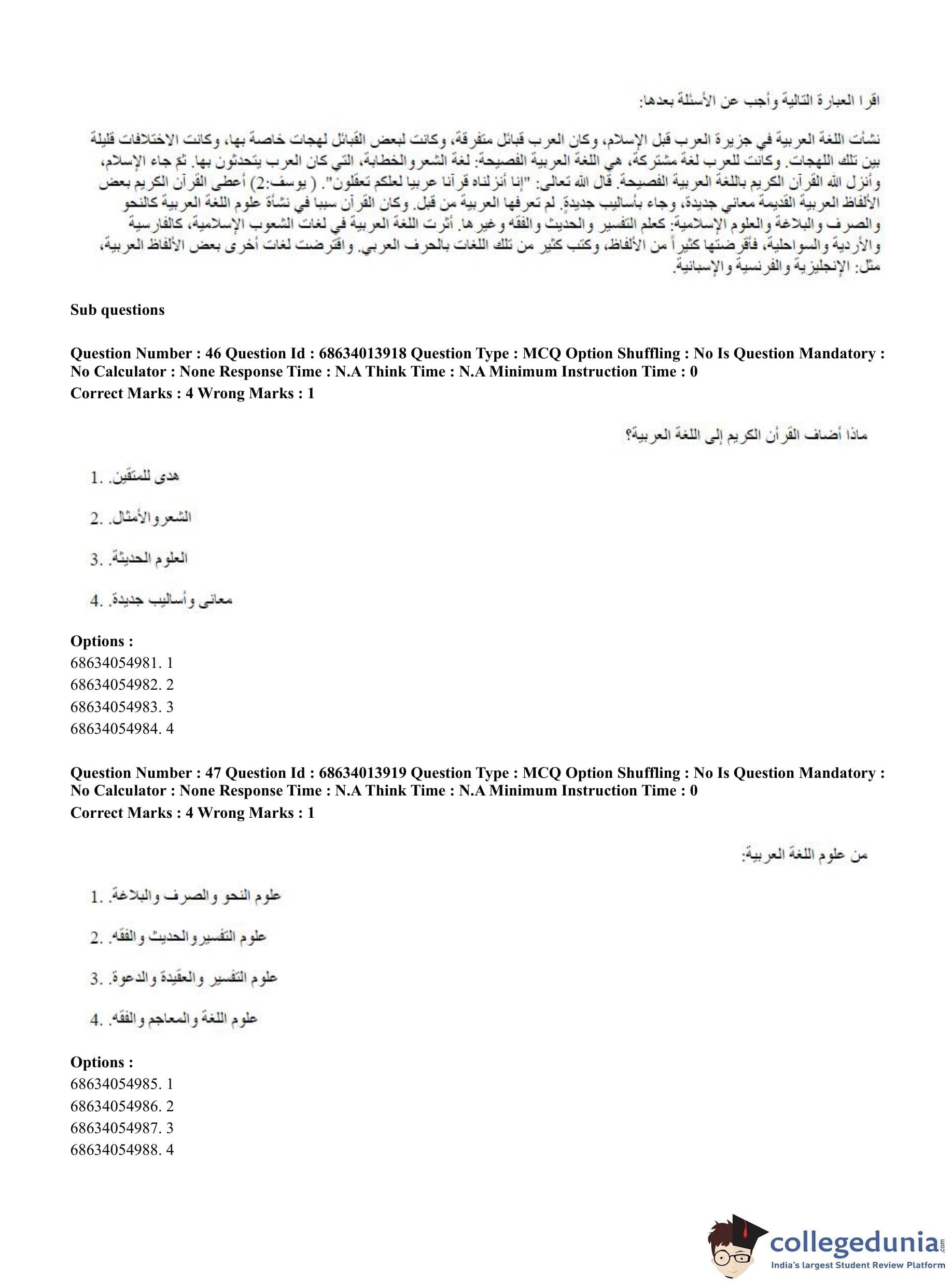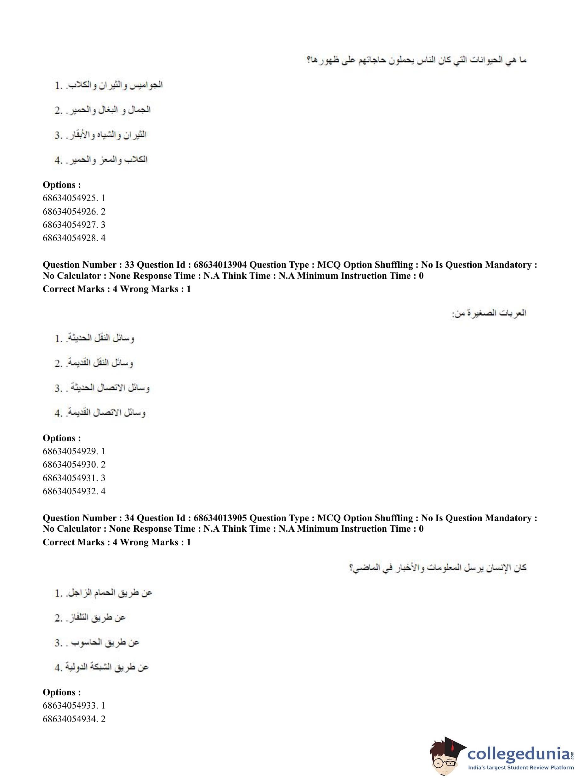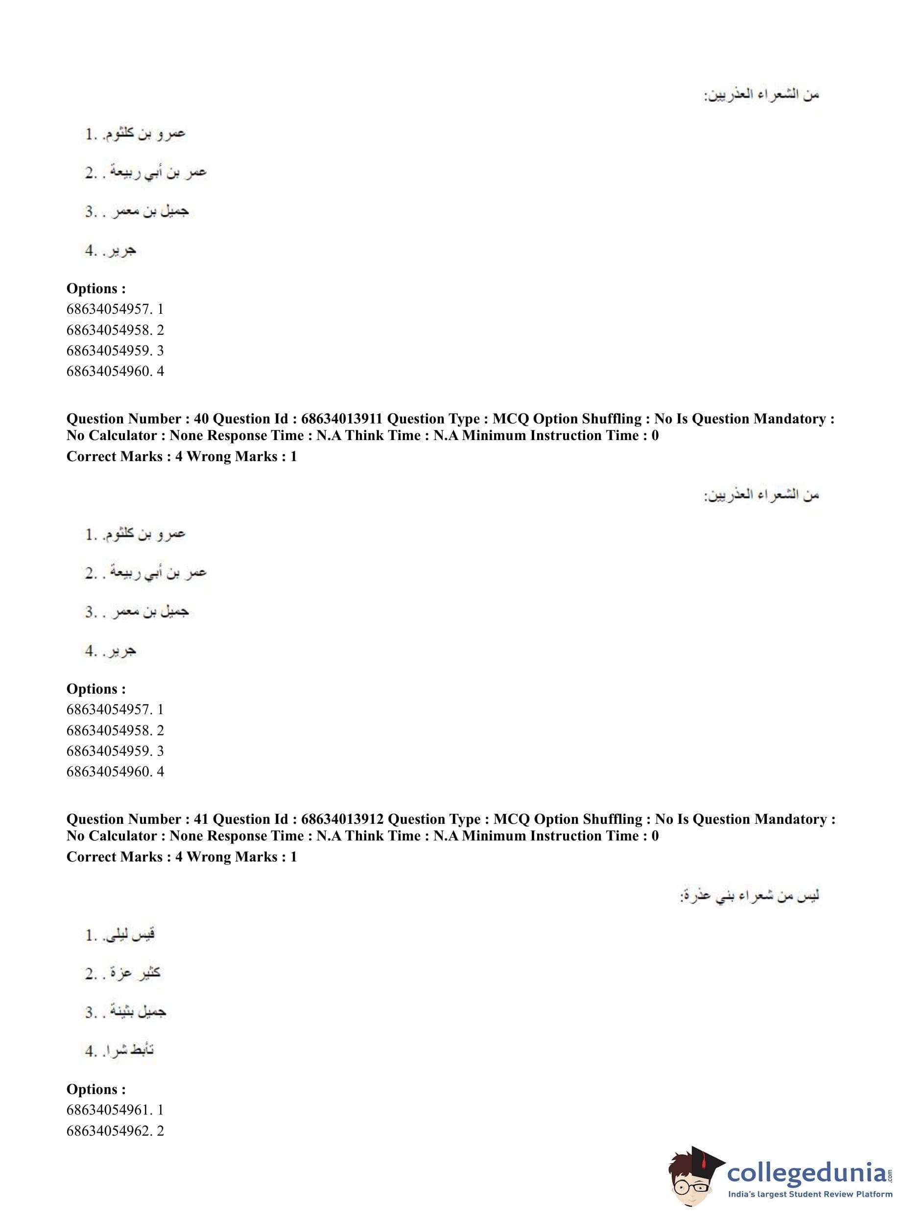 CUET PG 2023 Arabic Question Paper in English (June 11 - Shift 3)