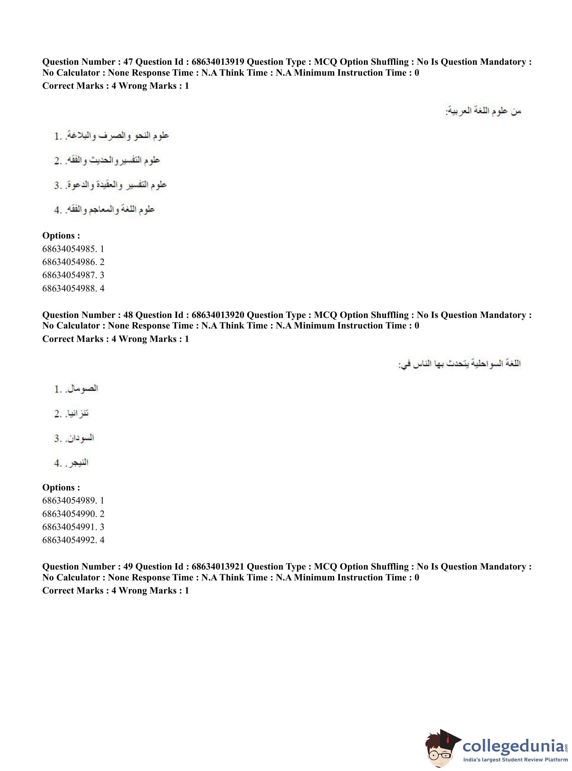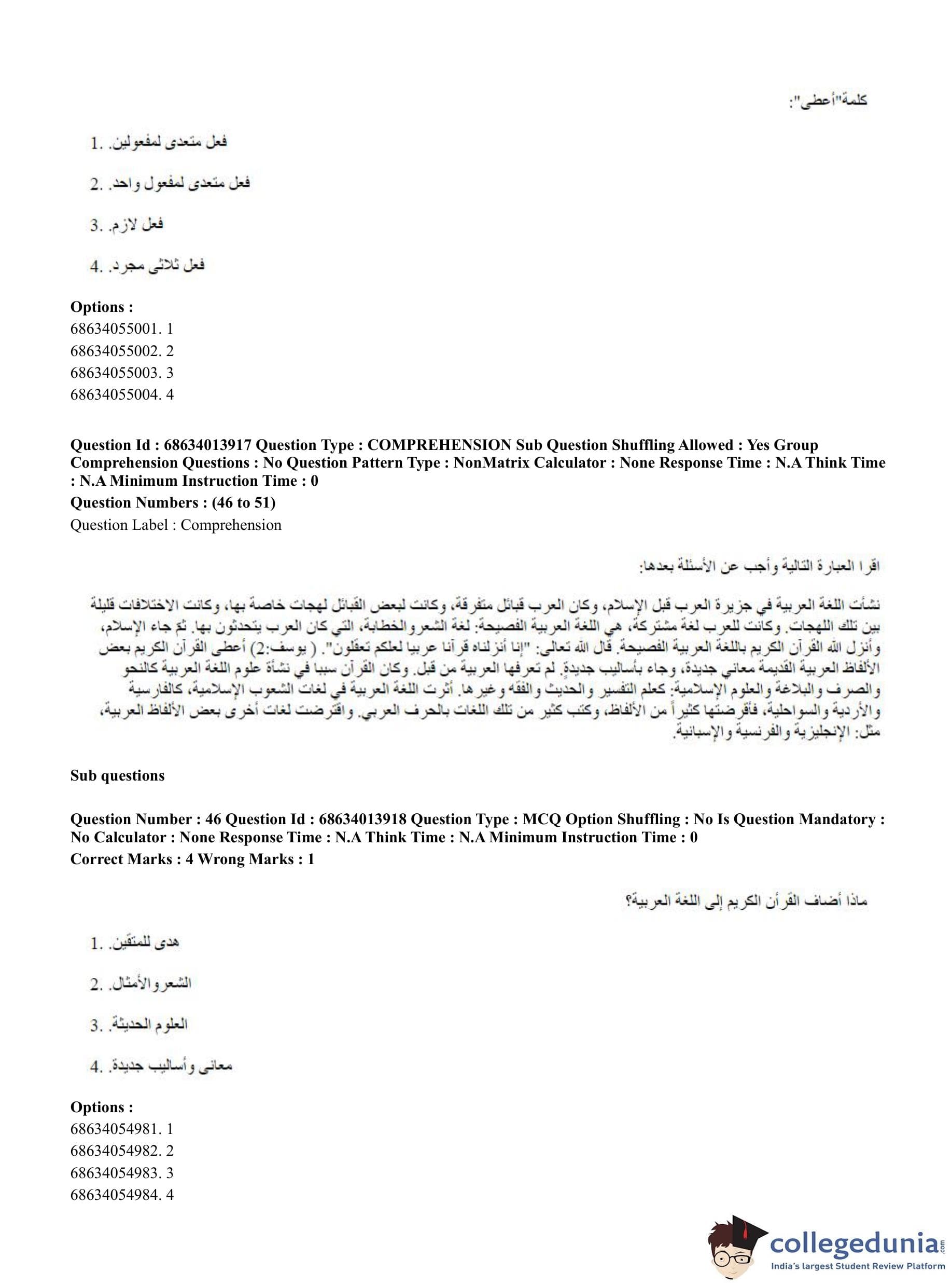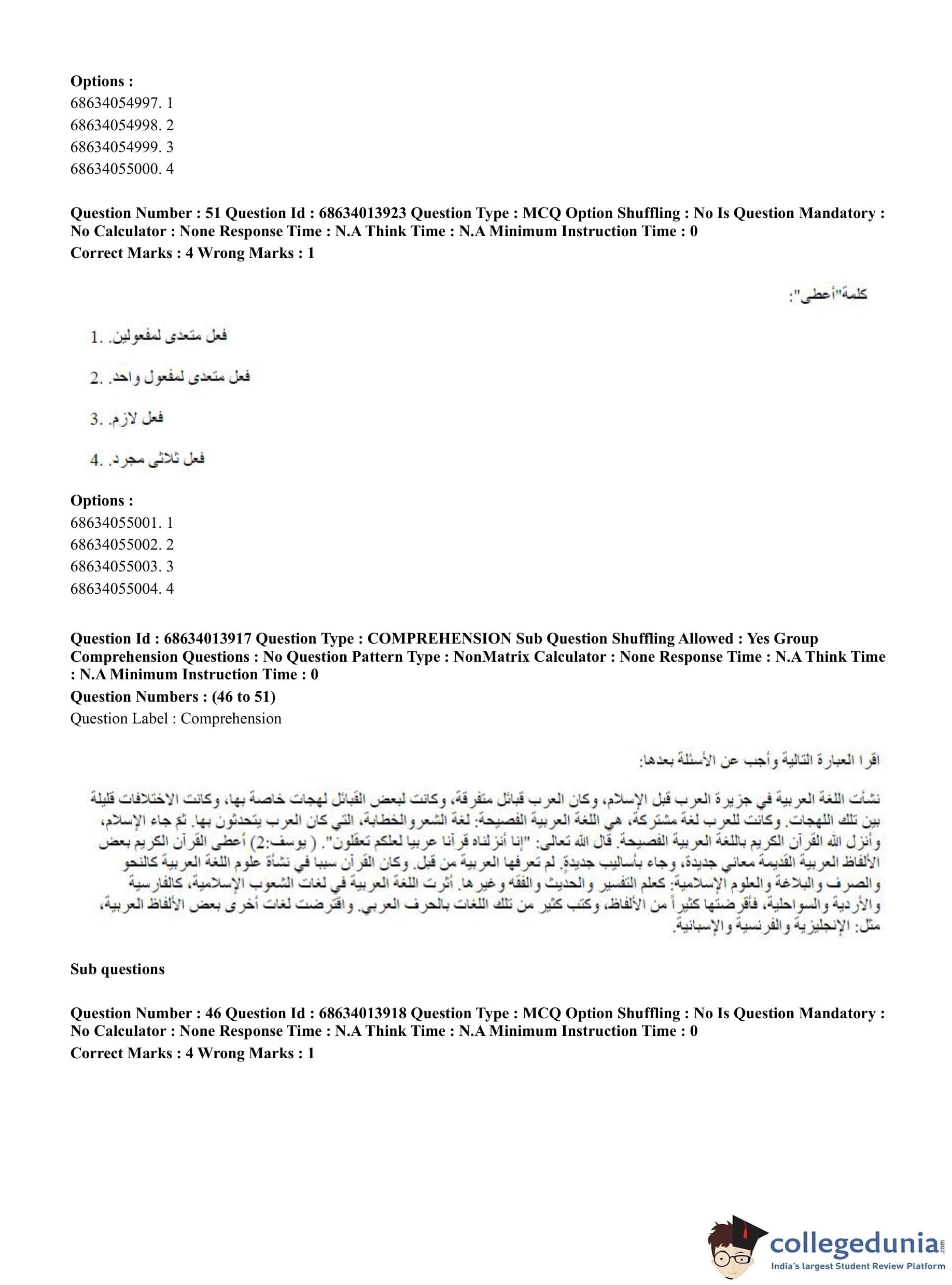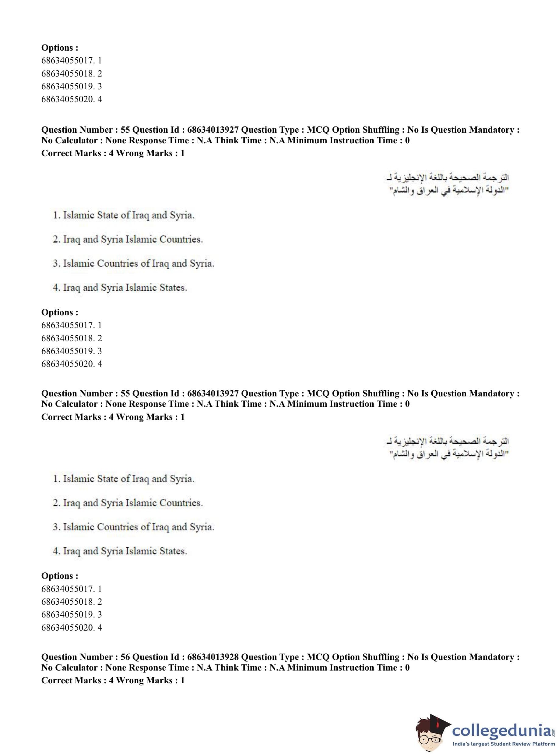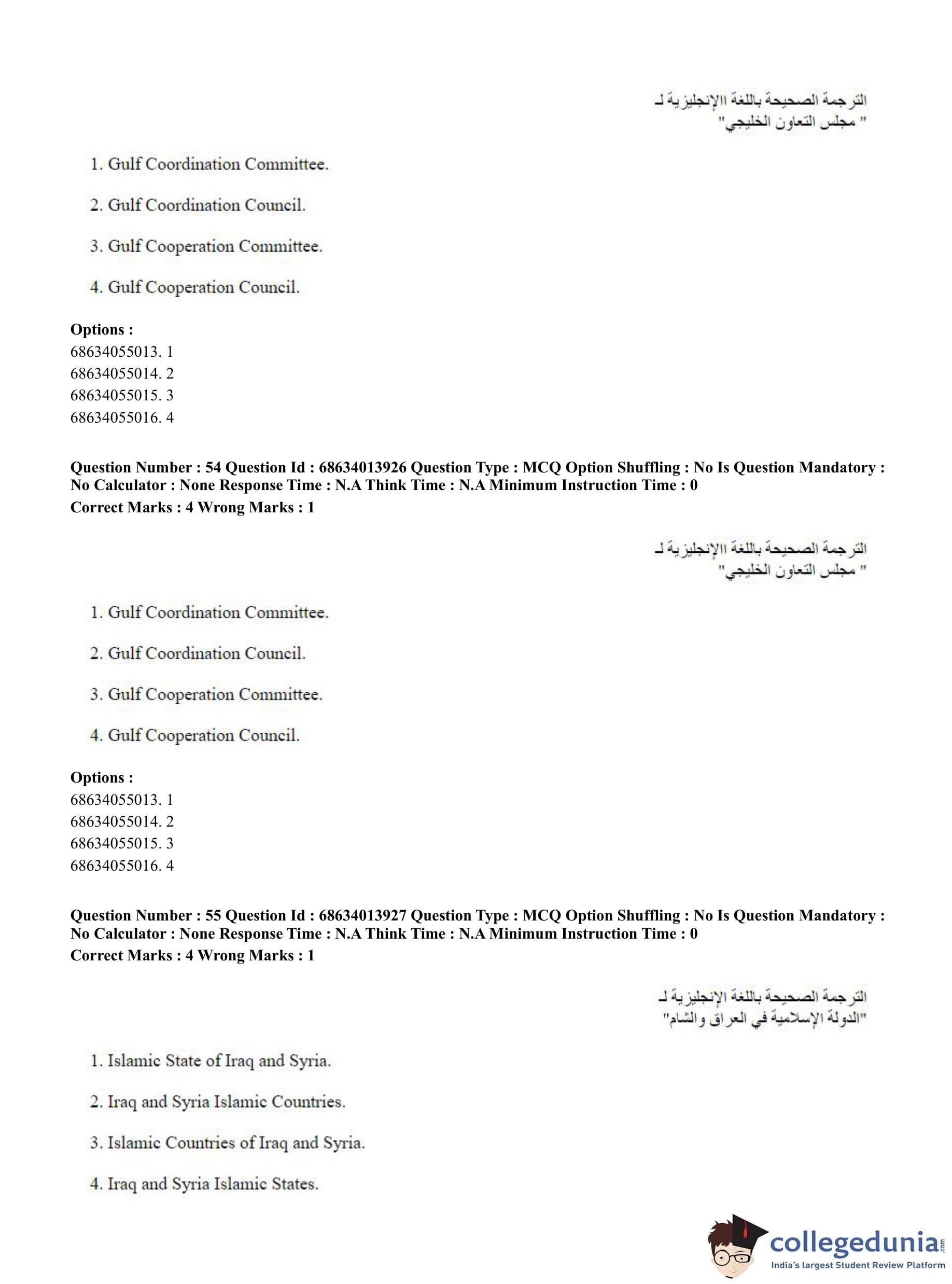 CUET PG 2023 Arabic Question Paper in English (June 11 - Shift 3)