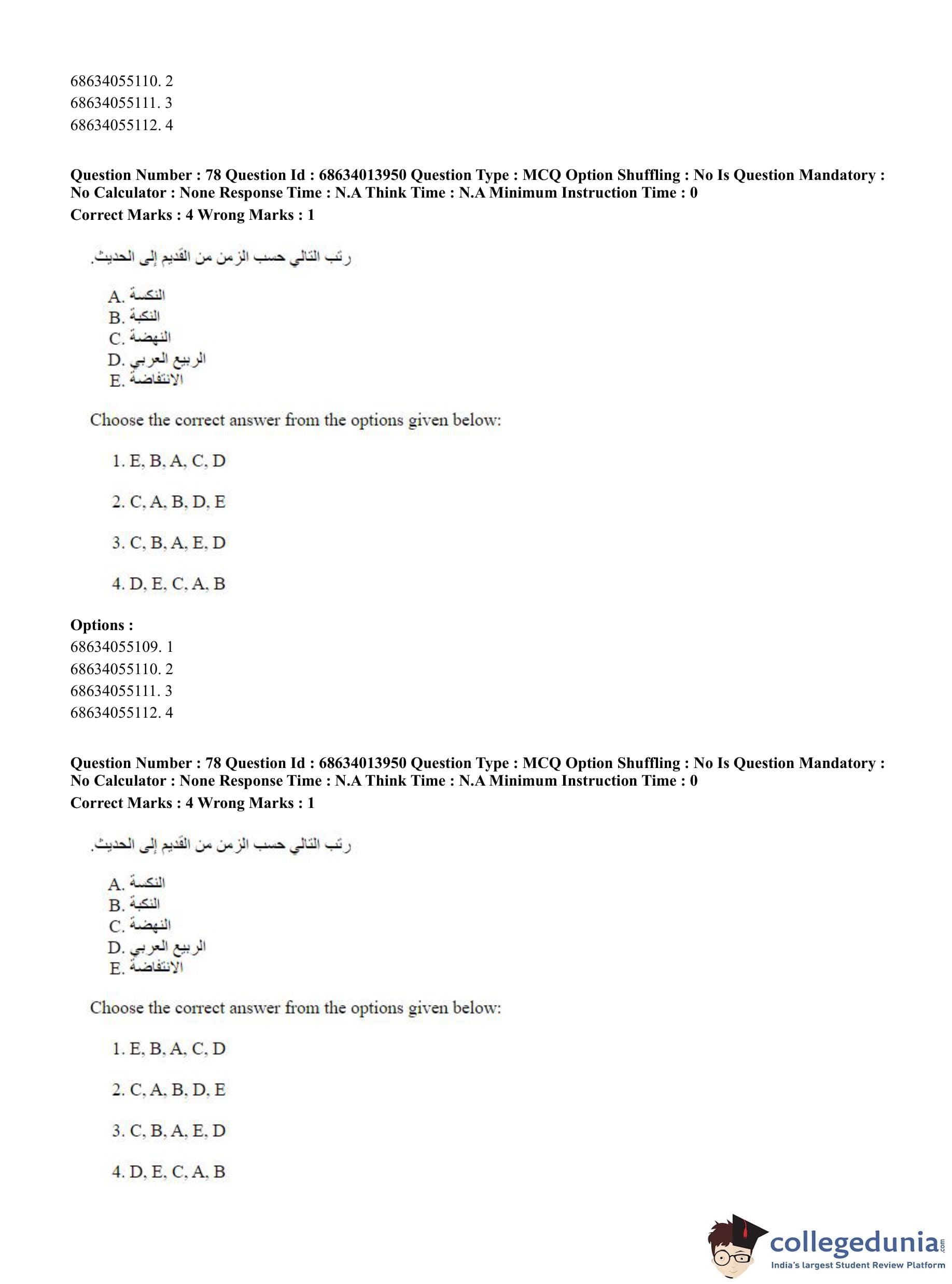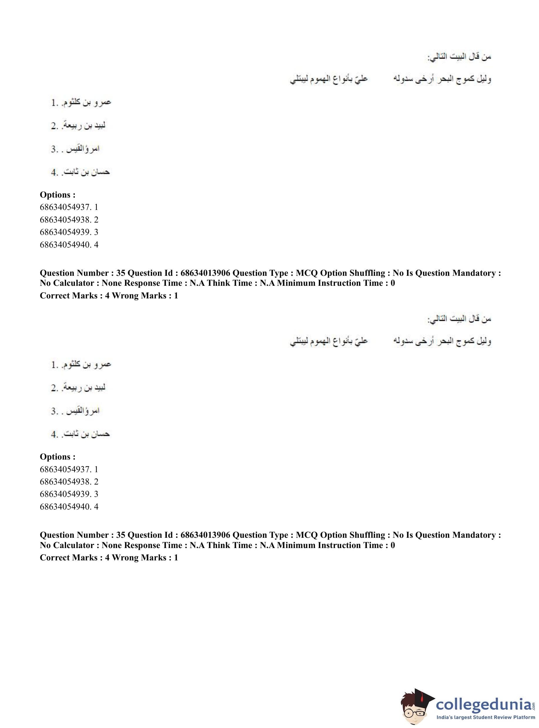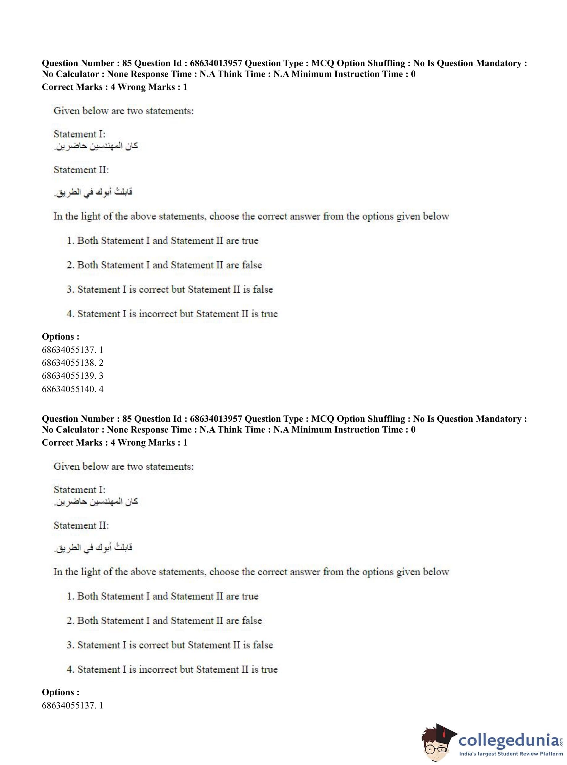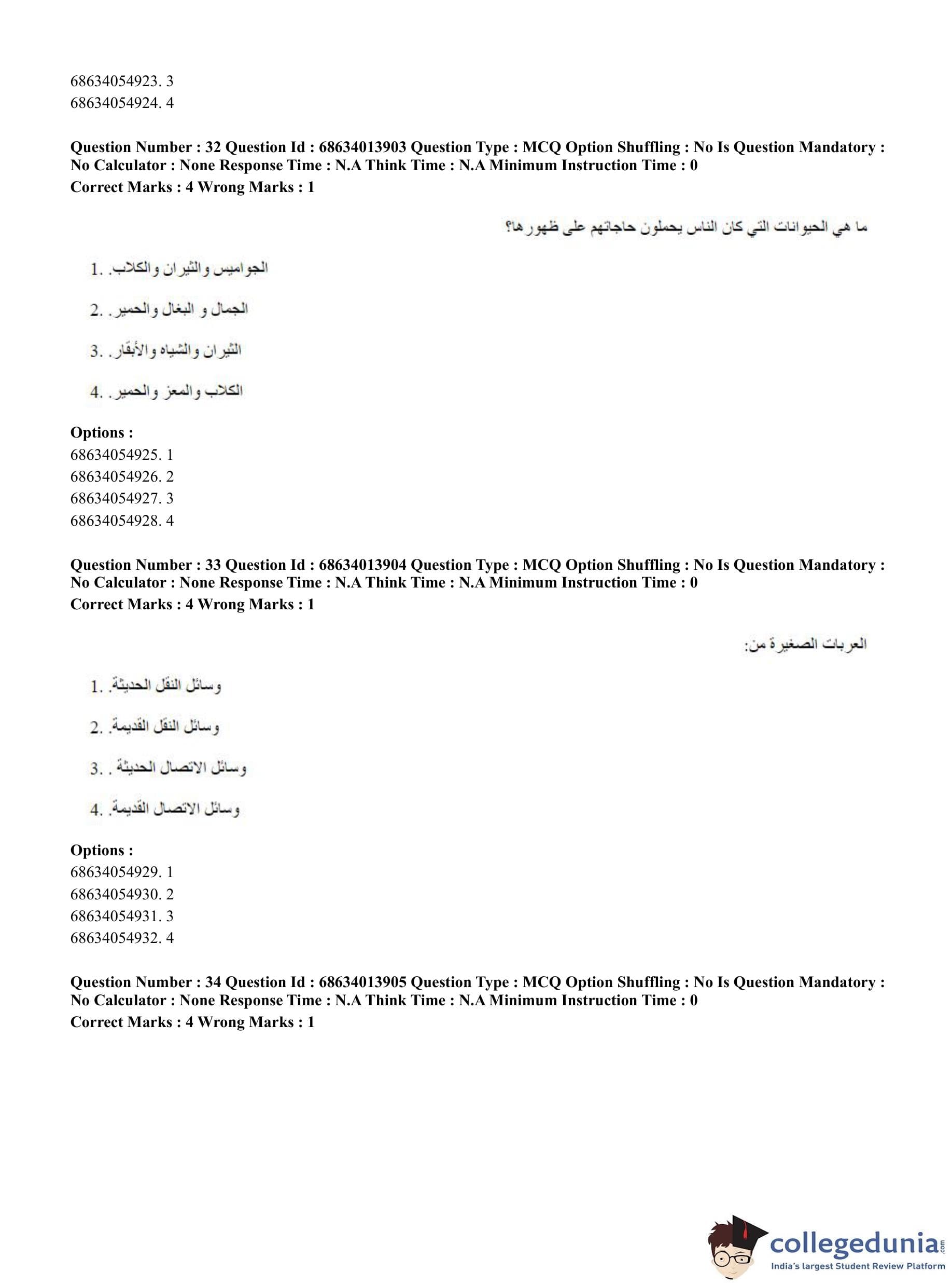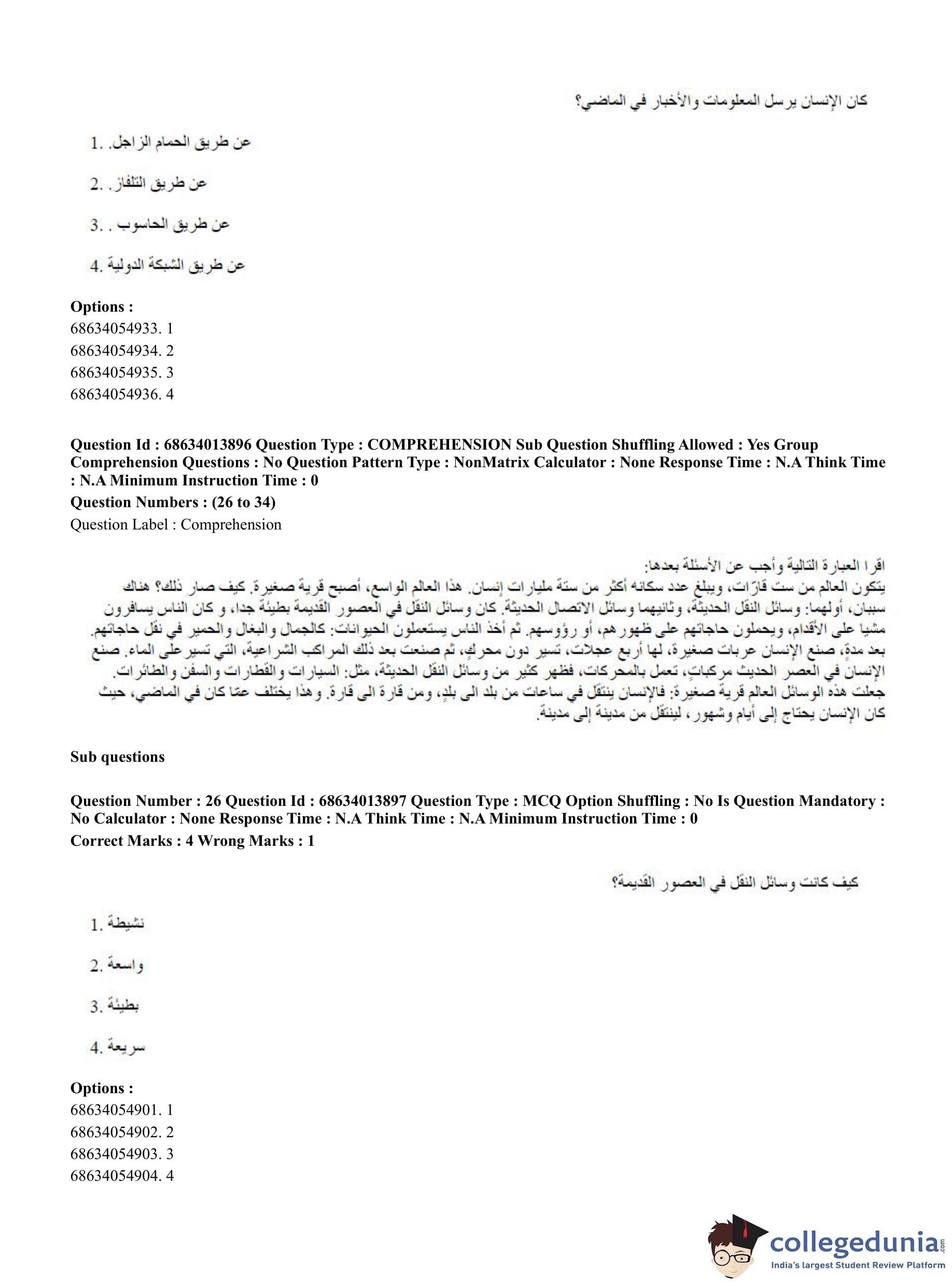 CUET PG 2023 Arabic Question Paper in English (June 11 - Shift 3)