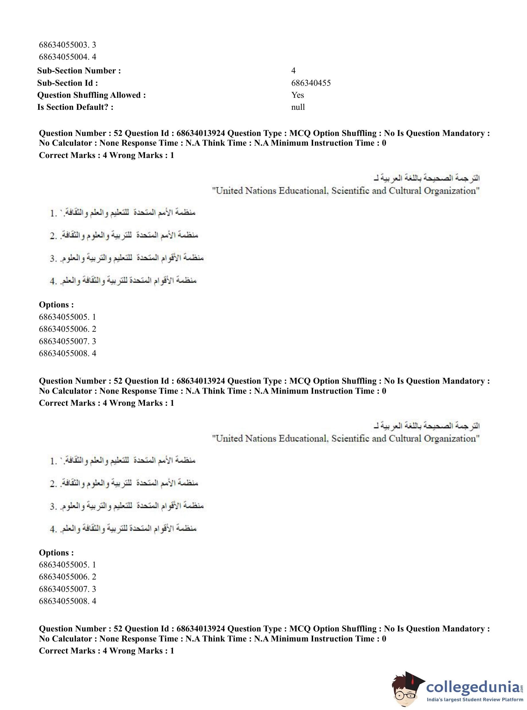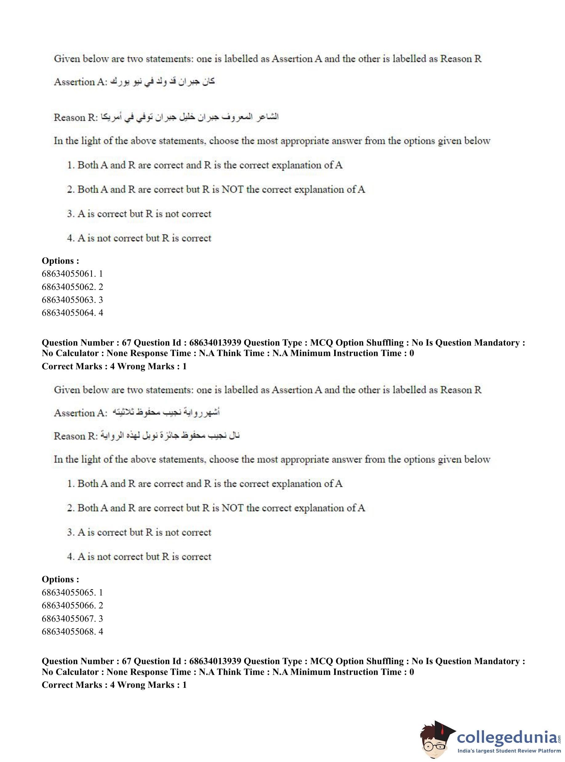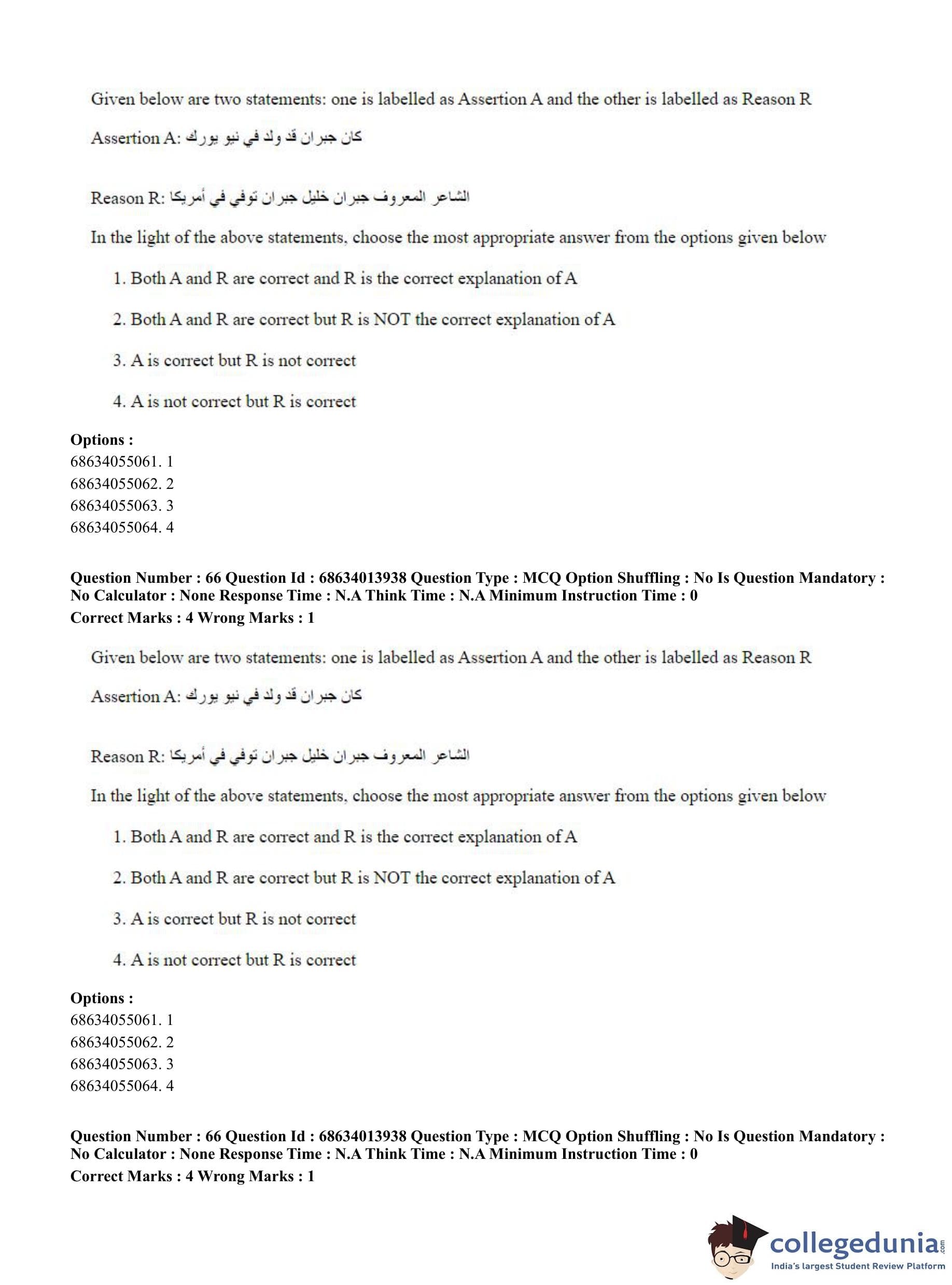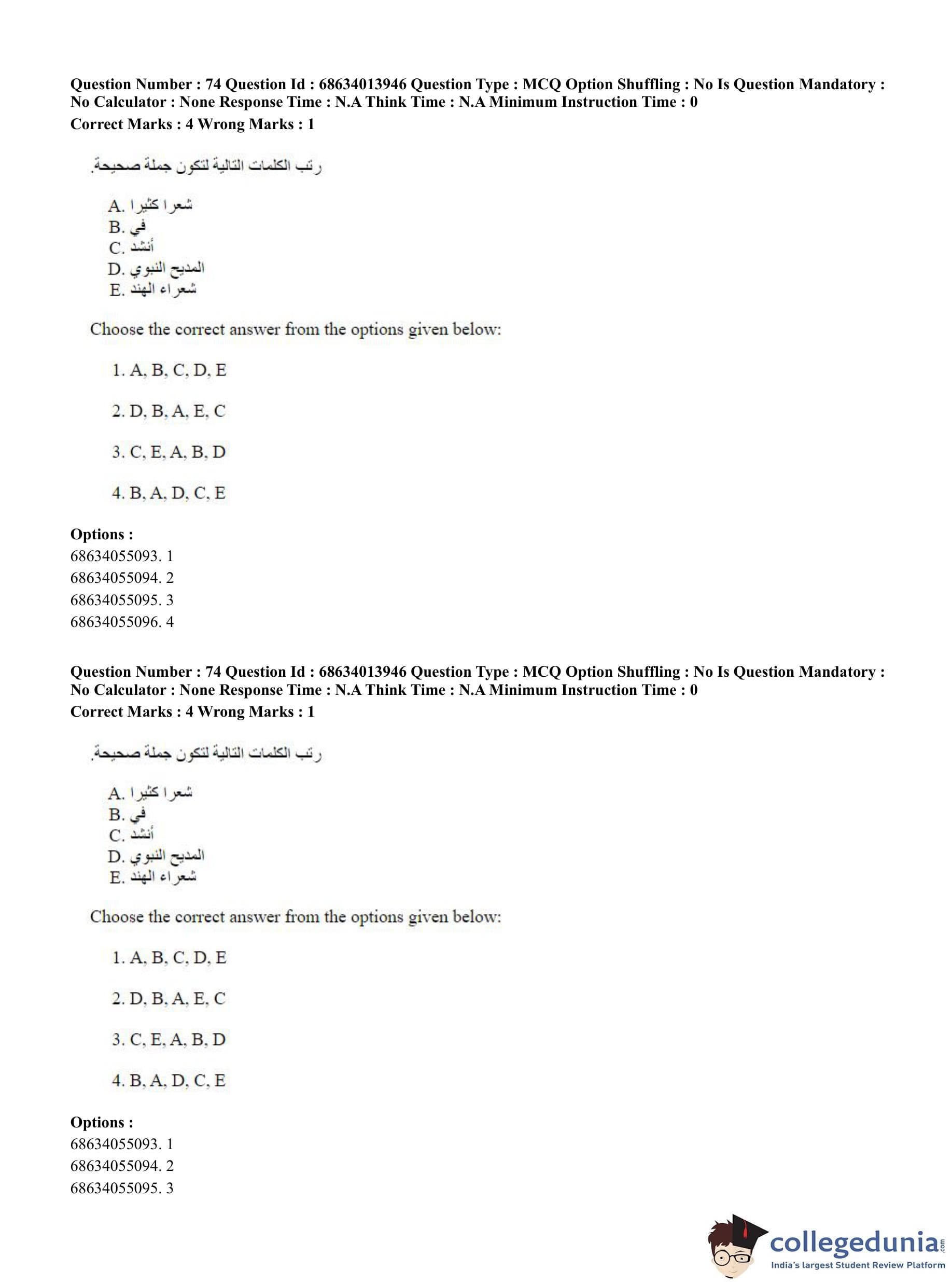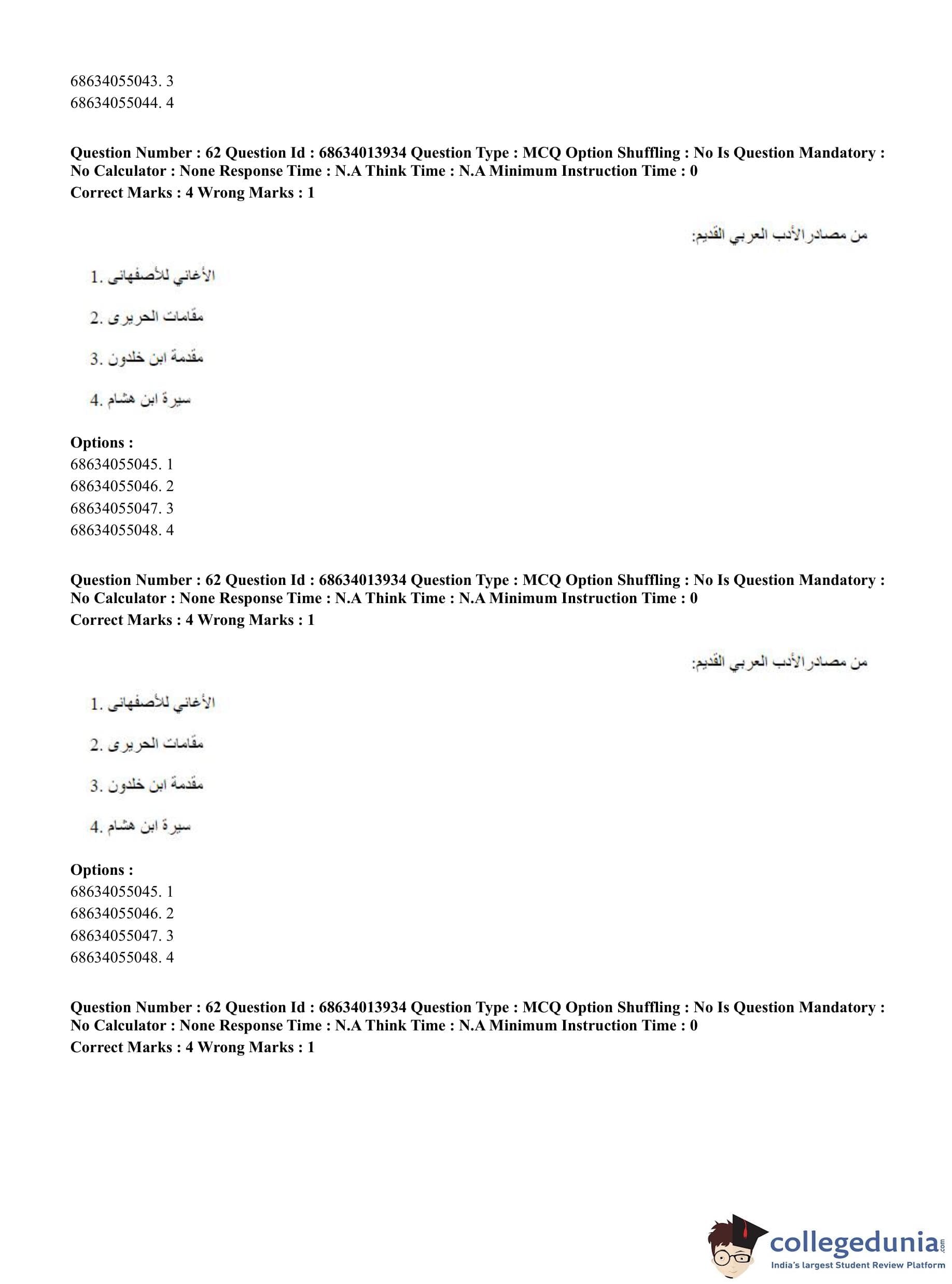 CUET PG 2023 Arabic Question Paper in English (June 11 - Shift 3)