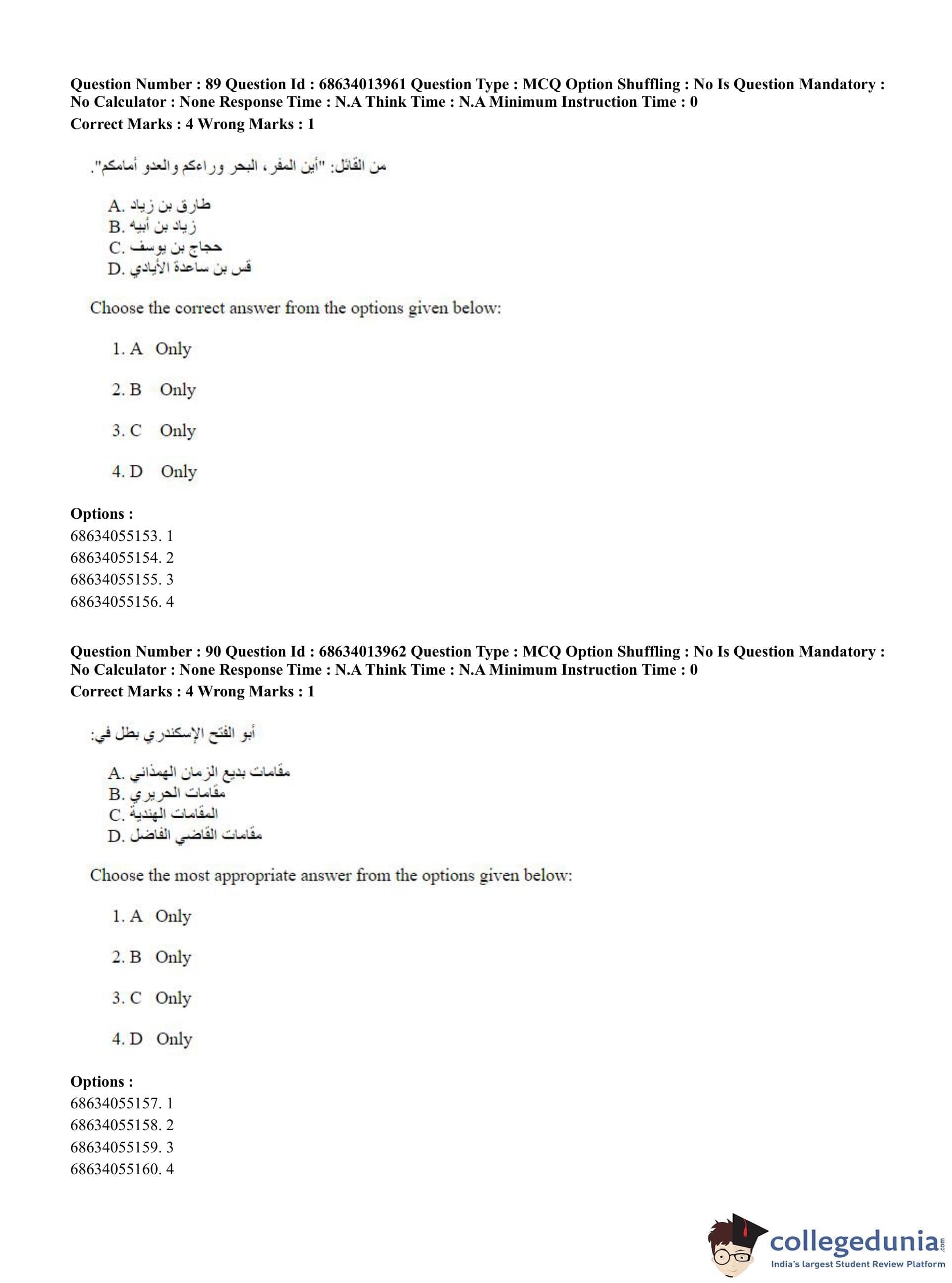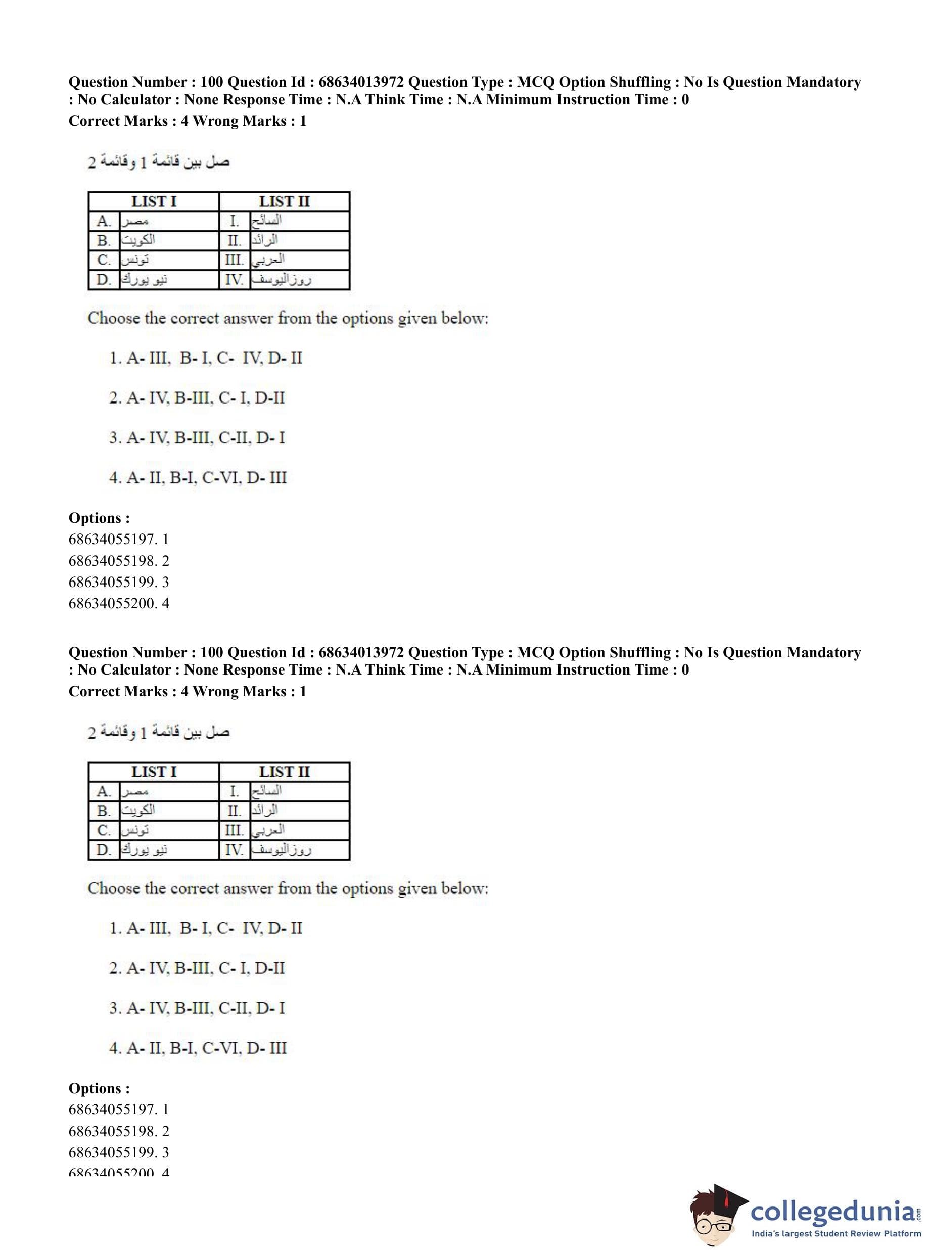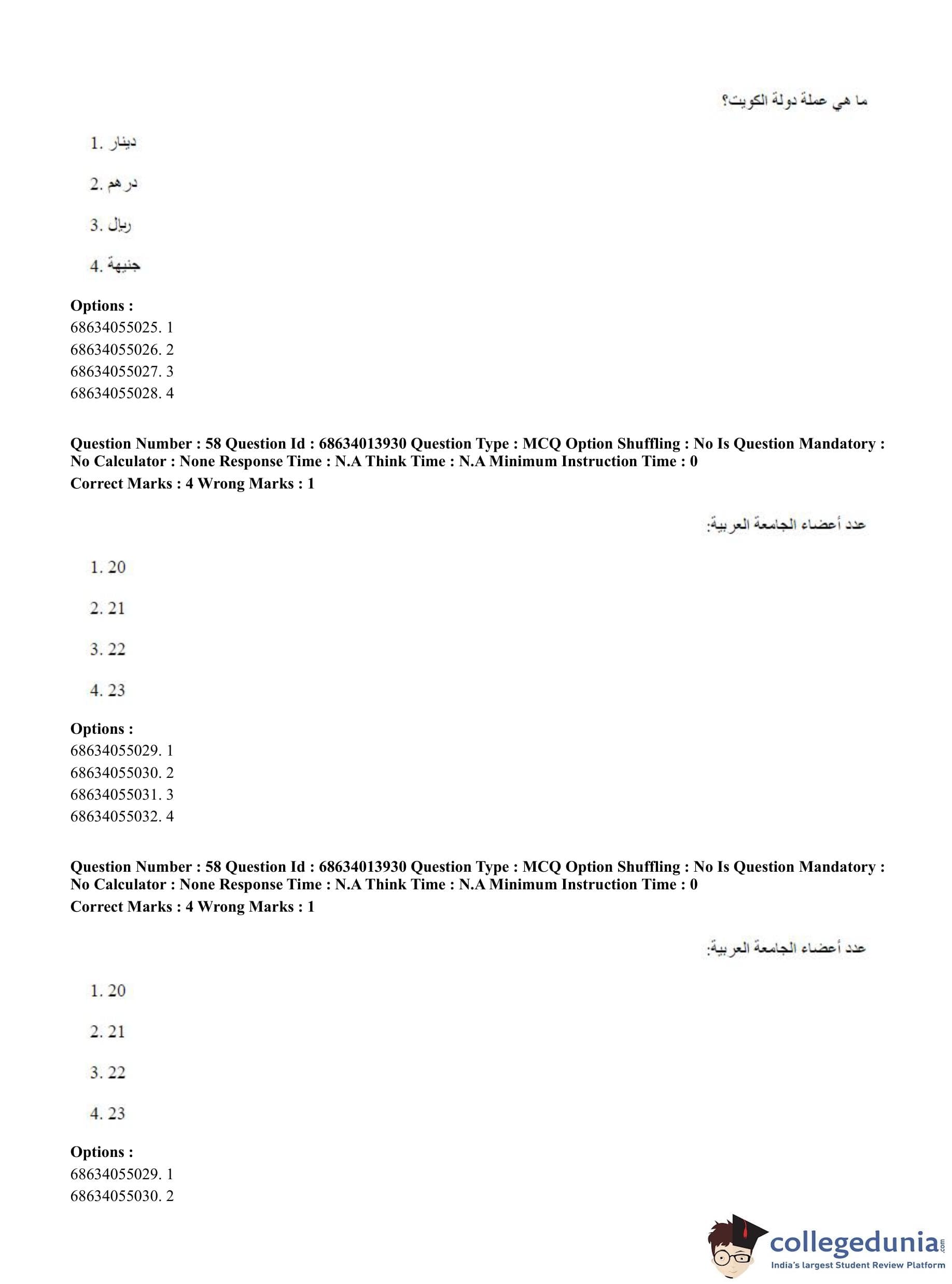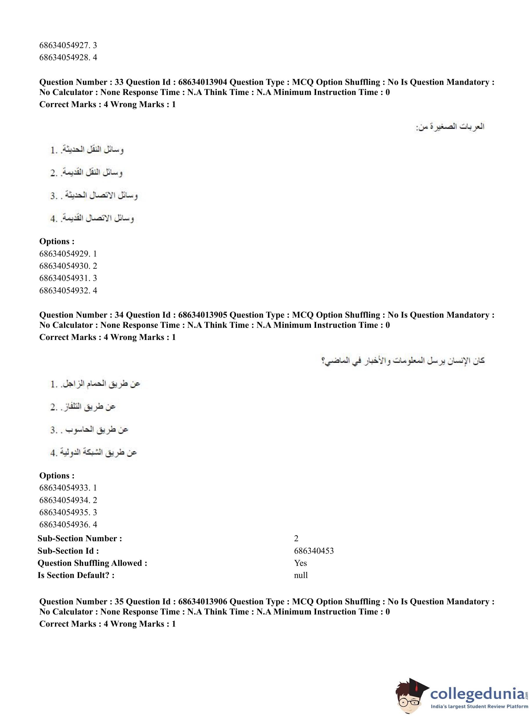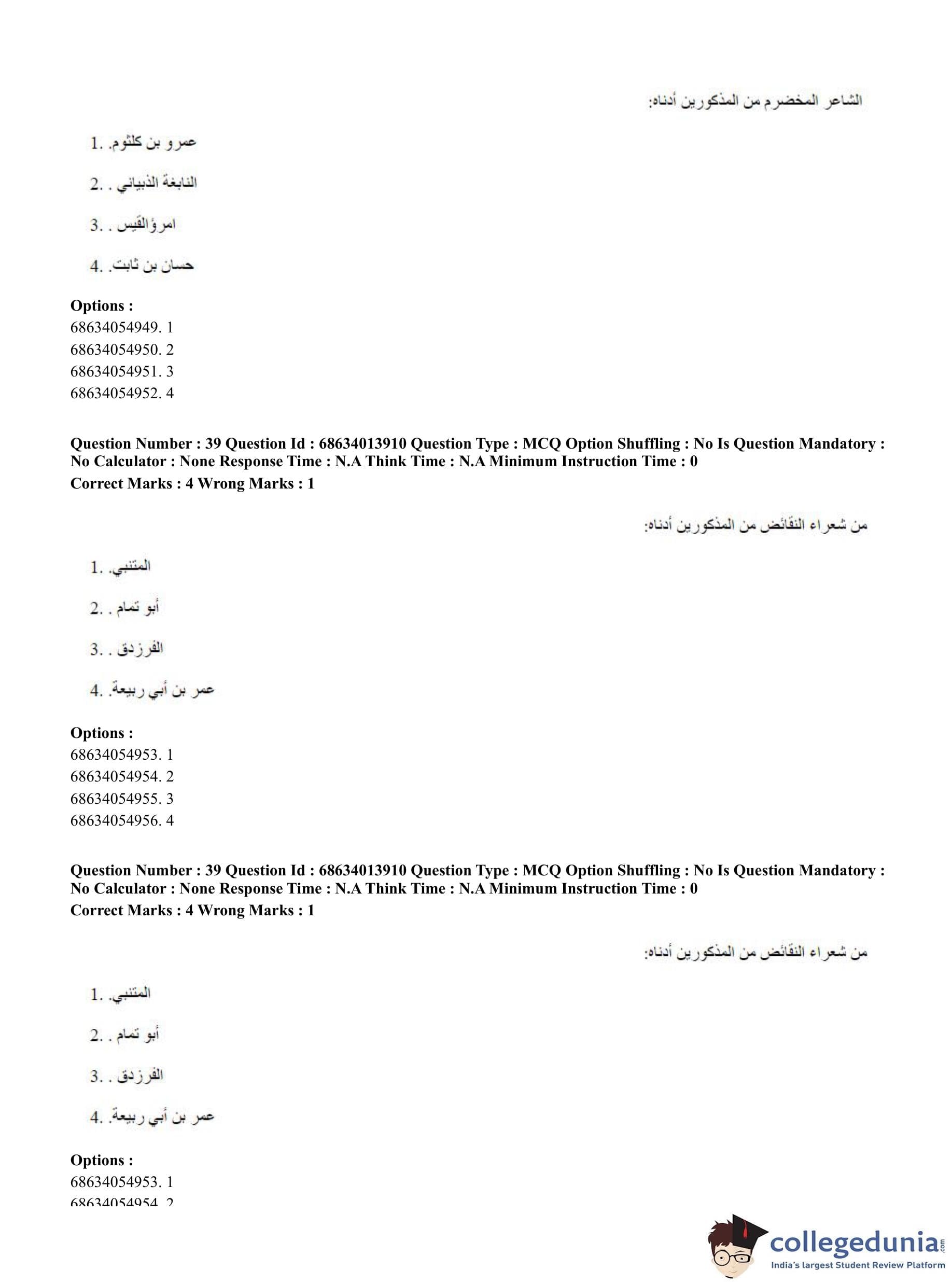 CUET PG 2023 Arabic Question Paper in English (June 11 - Shift 3)