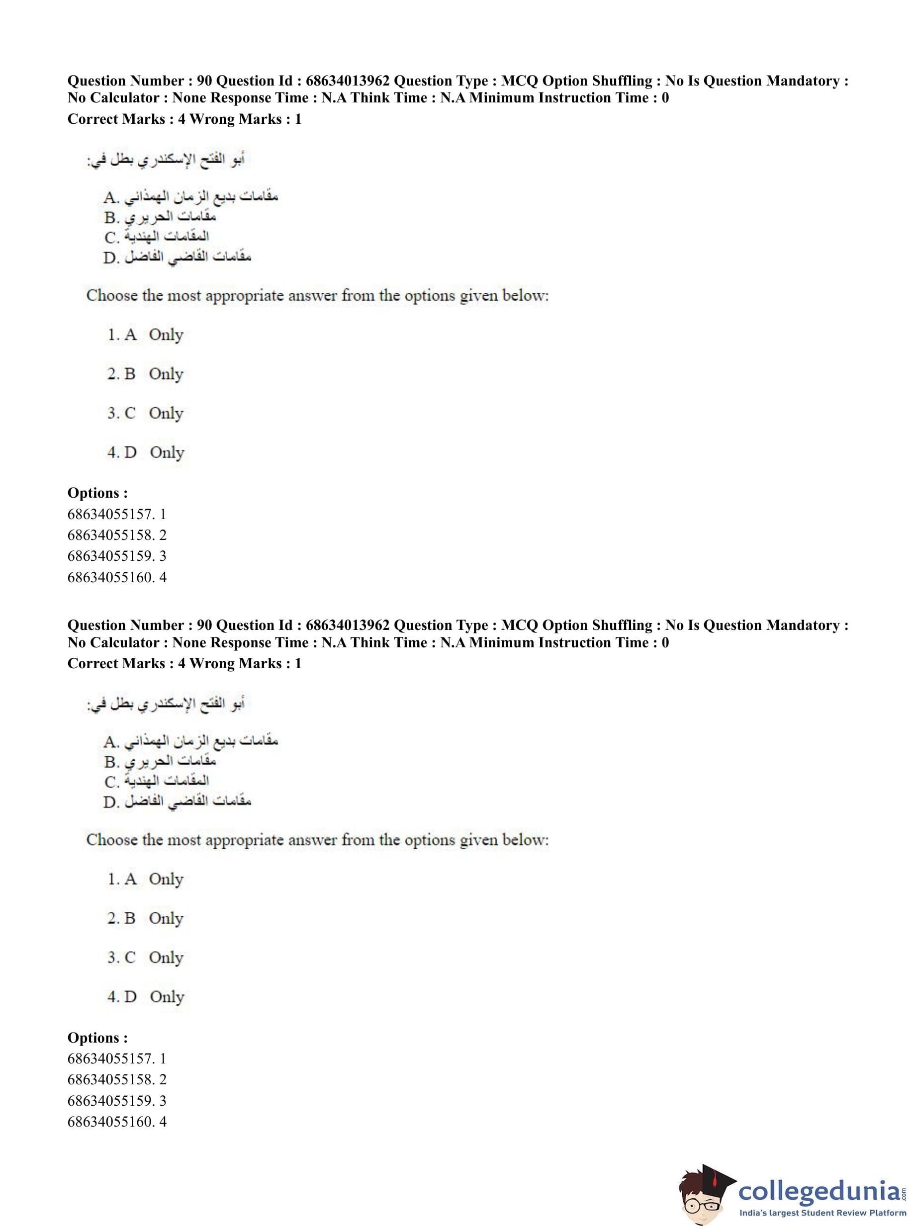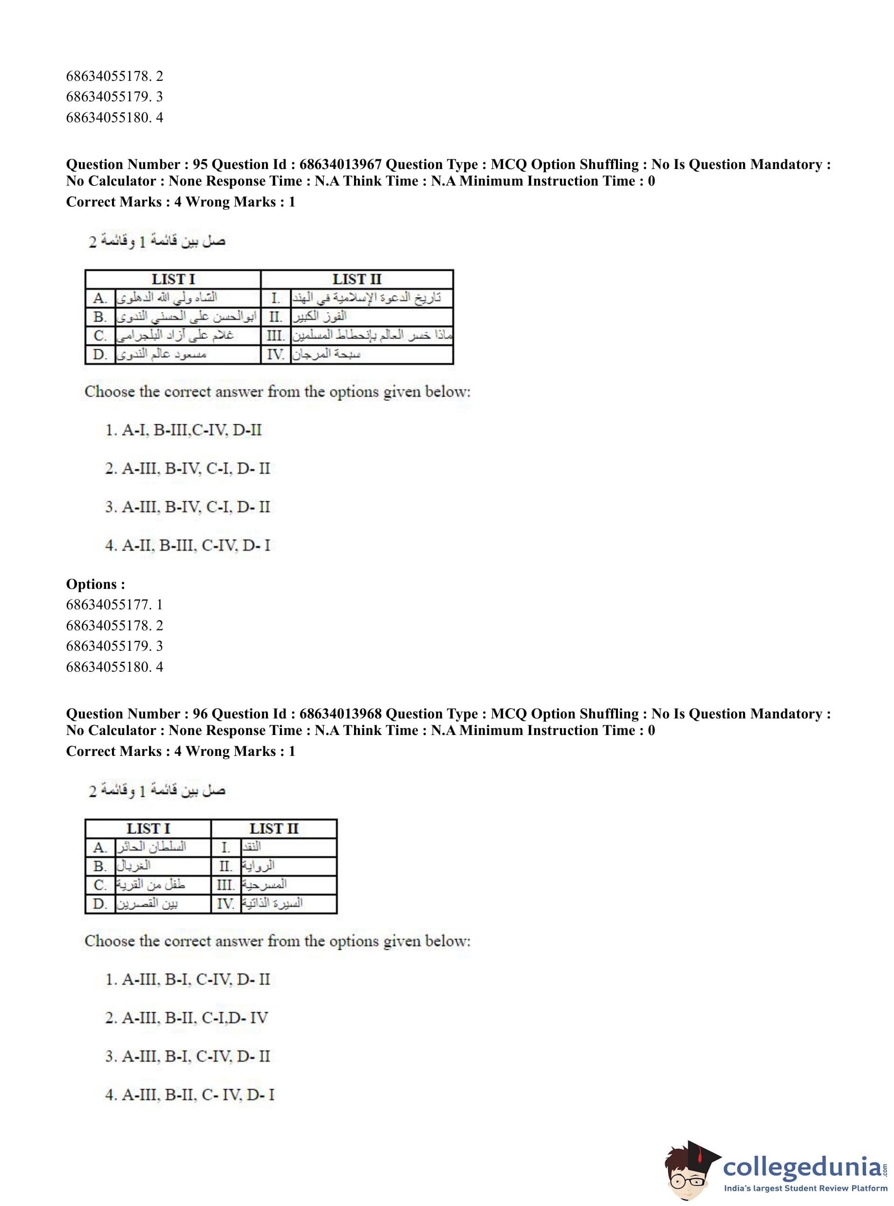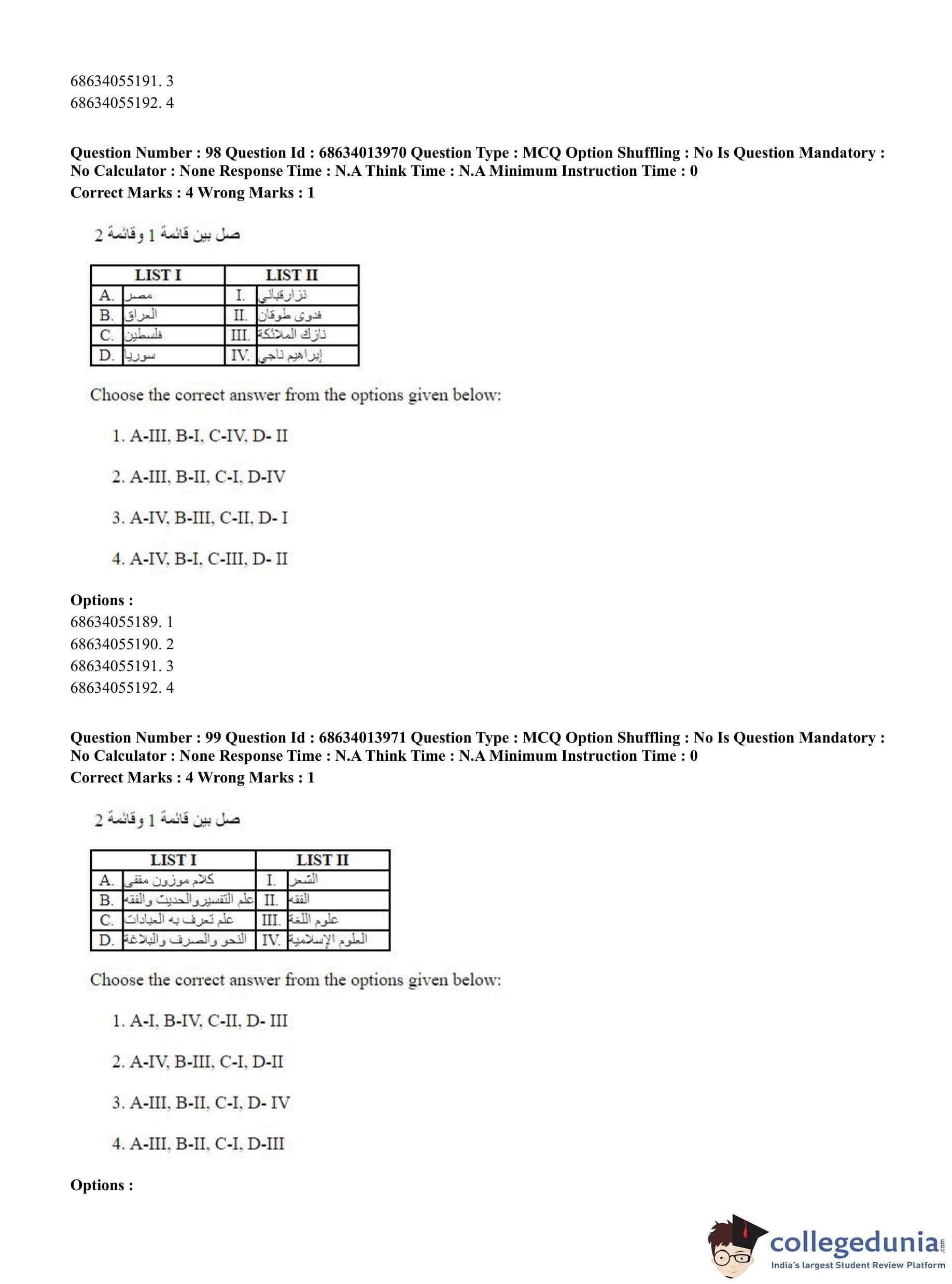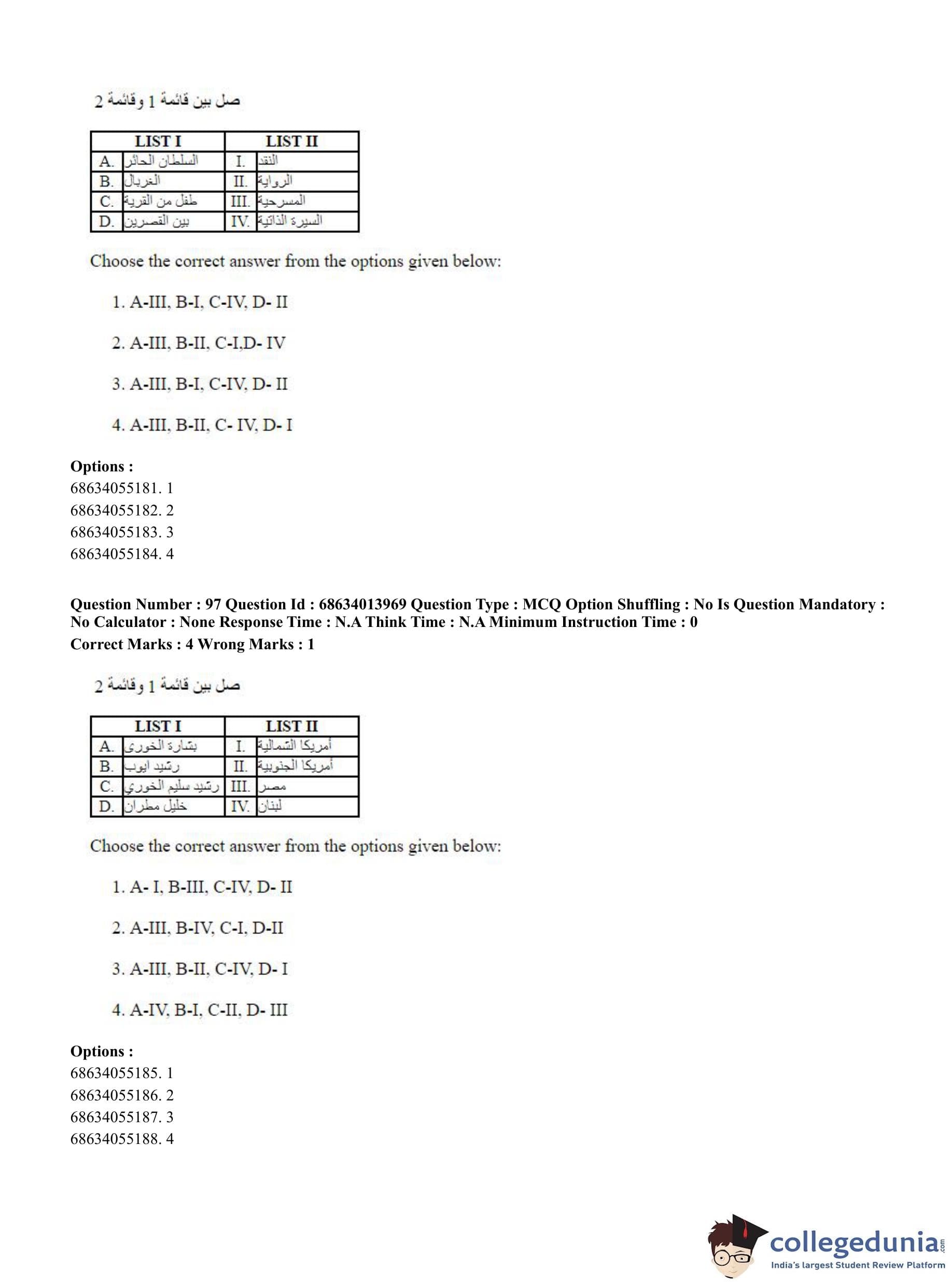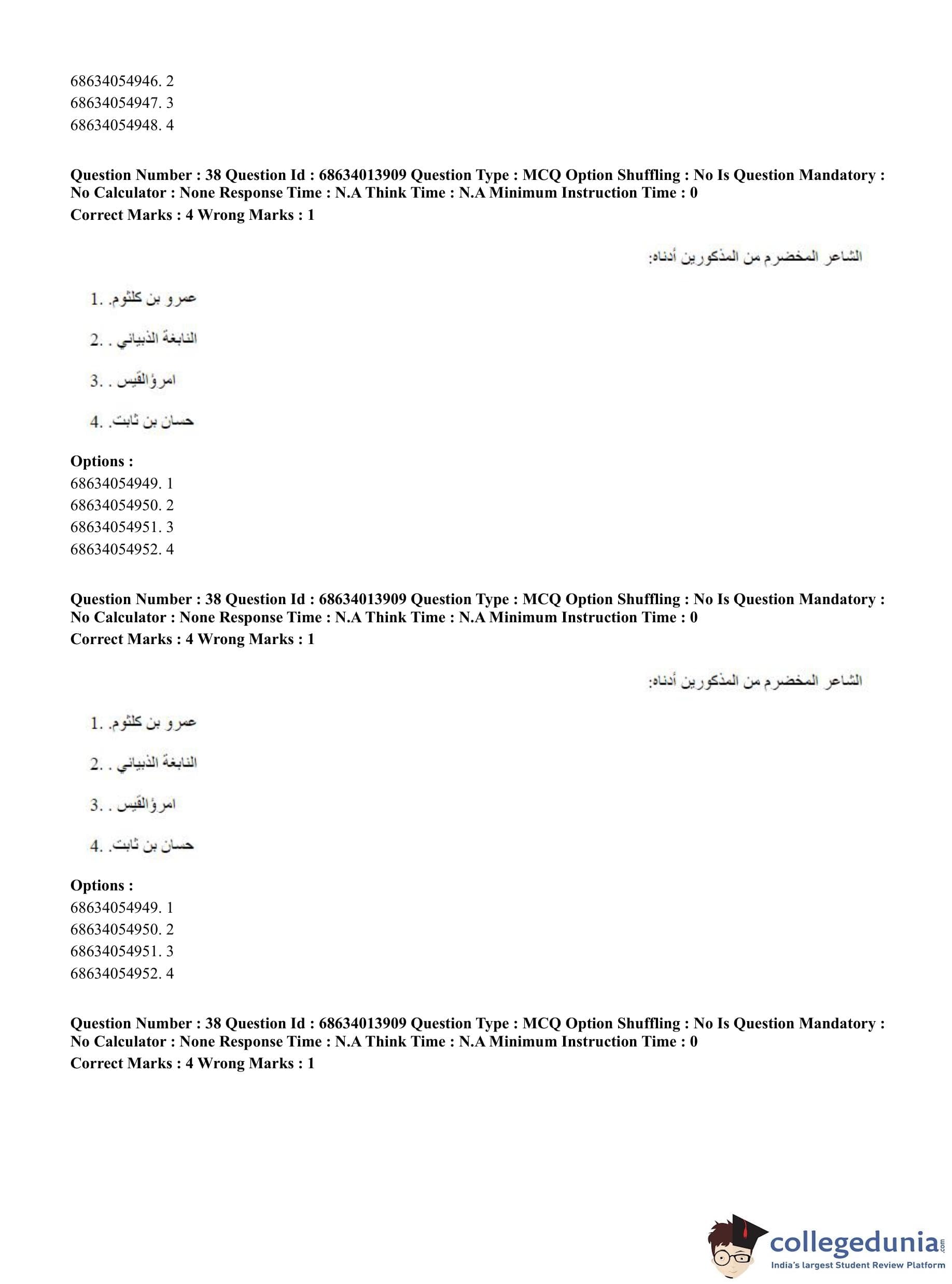 CUET PG 2023 Arabic Question Paper in English (June 11 - Shift 3)