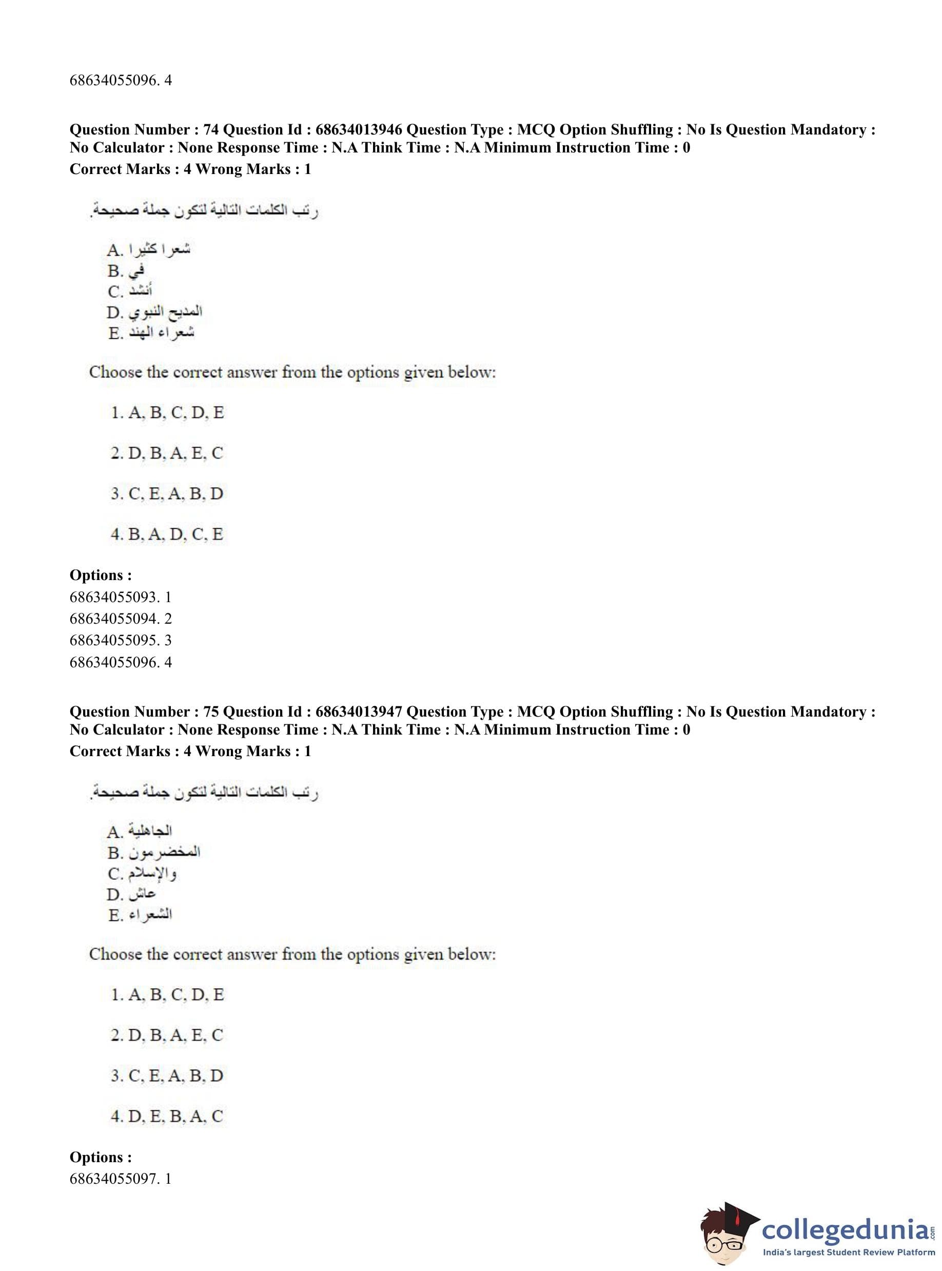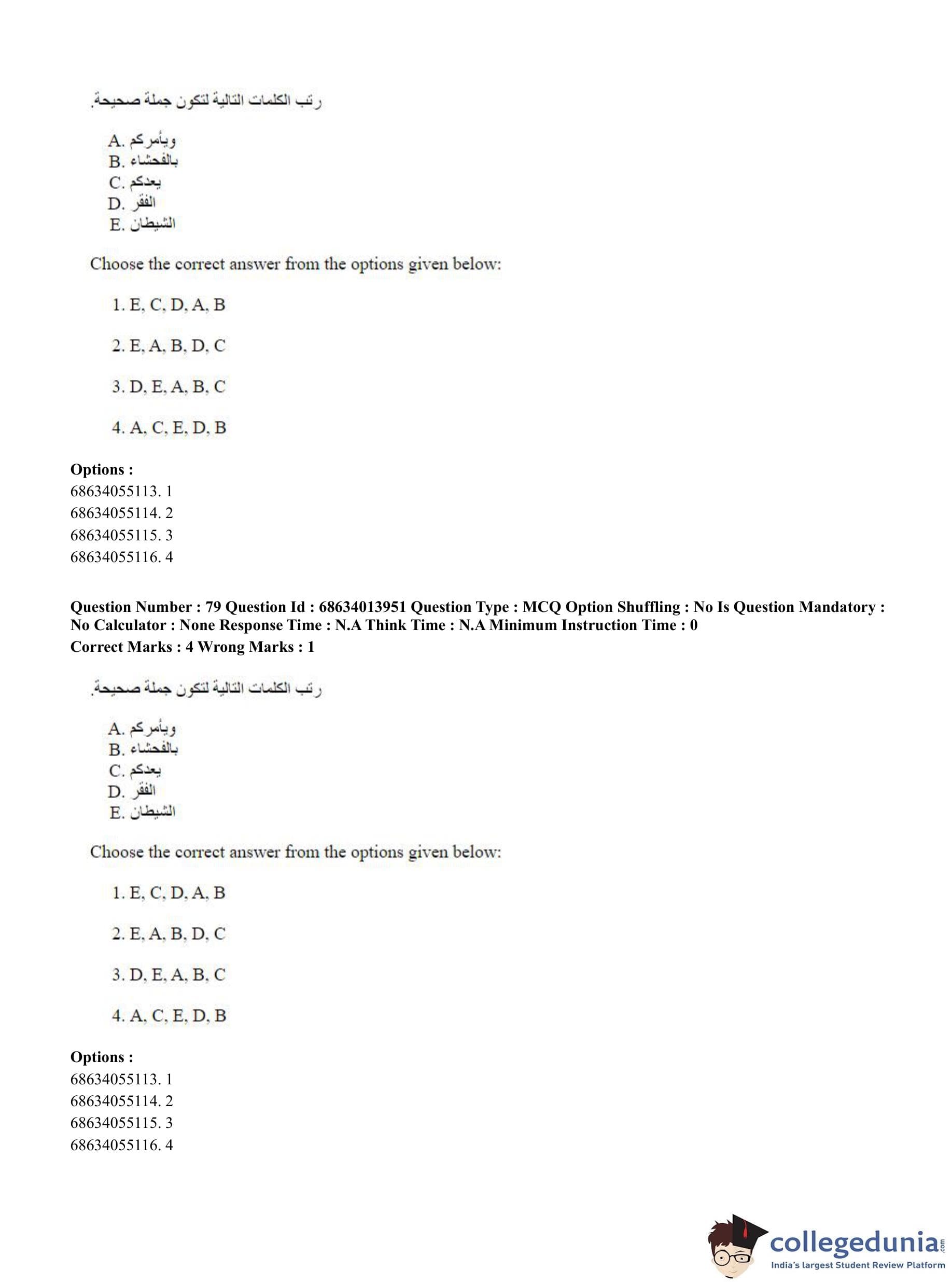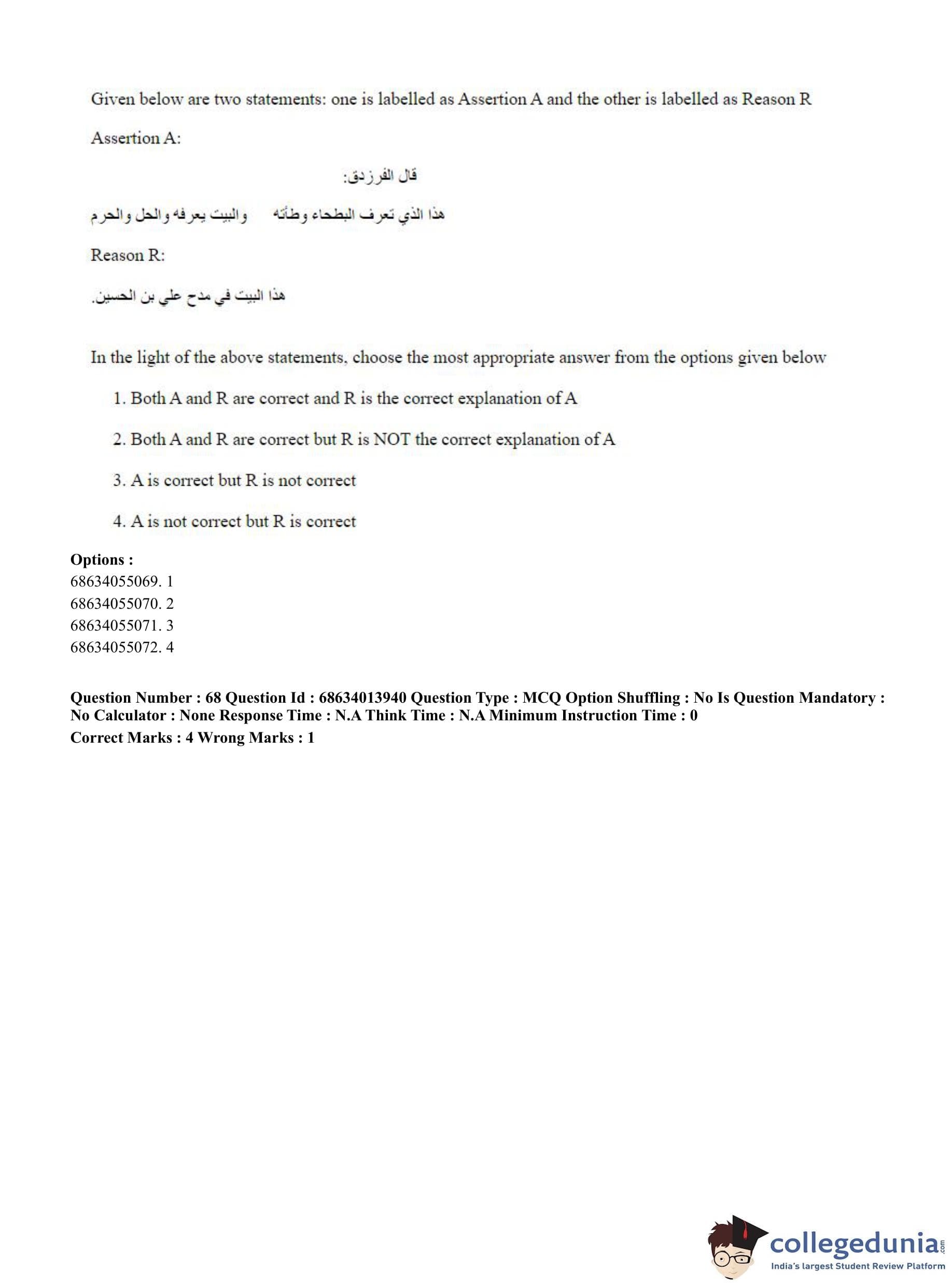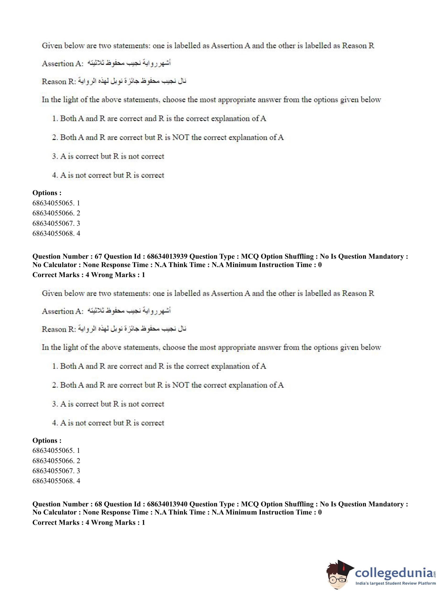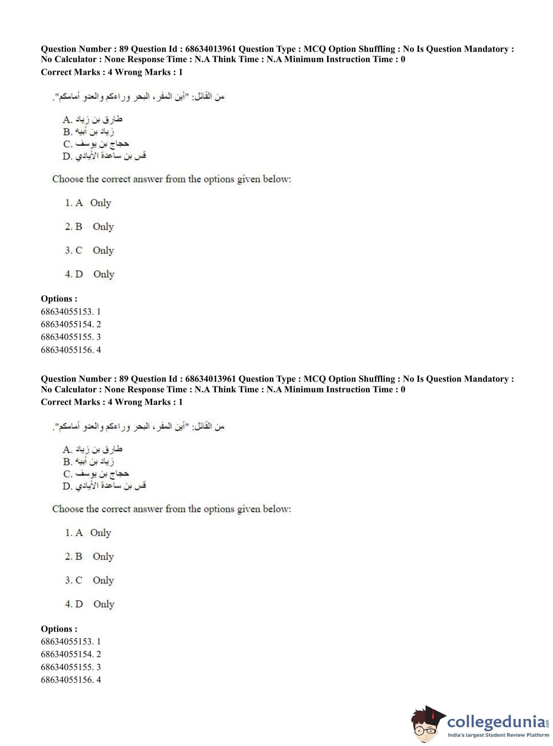 CUET PG 2023 Arabic Question Paper in English (June 11 - Shift 3)