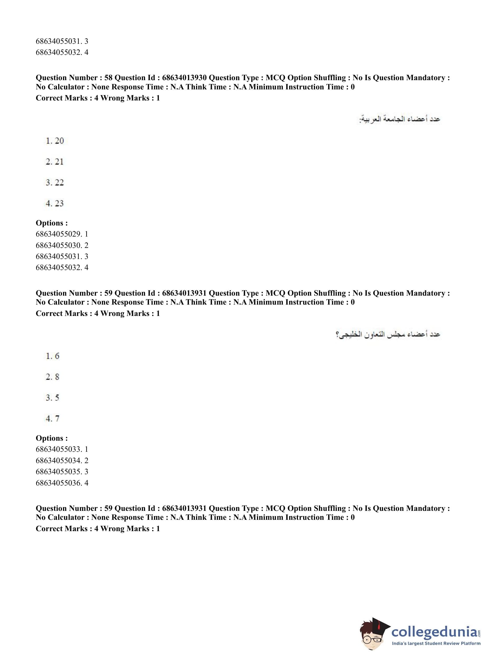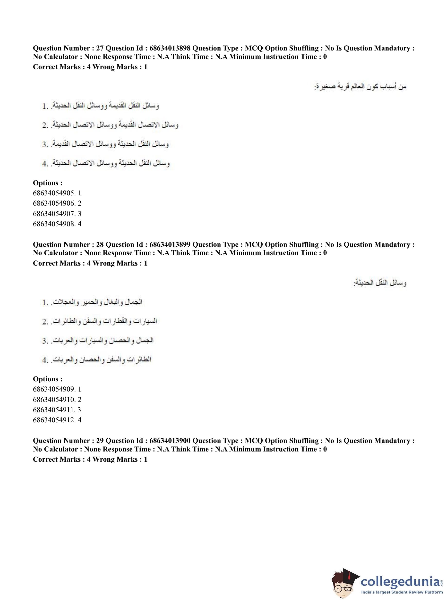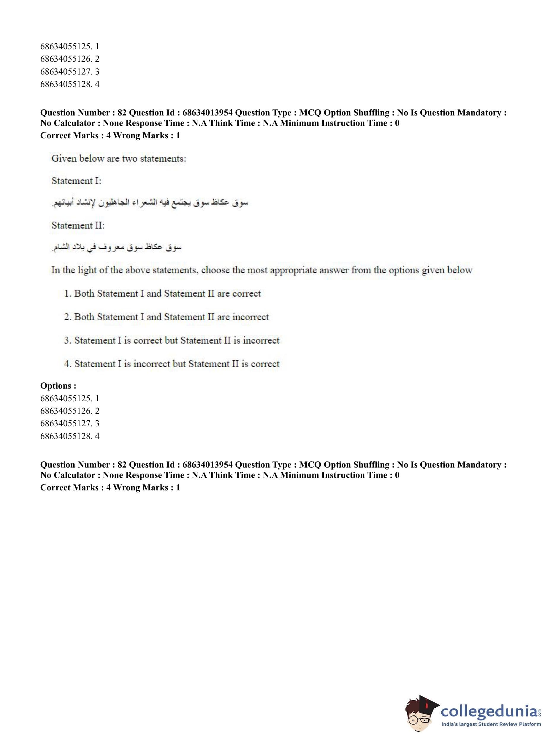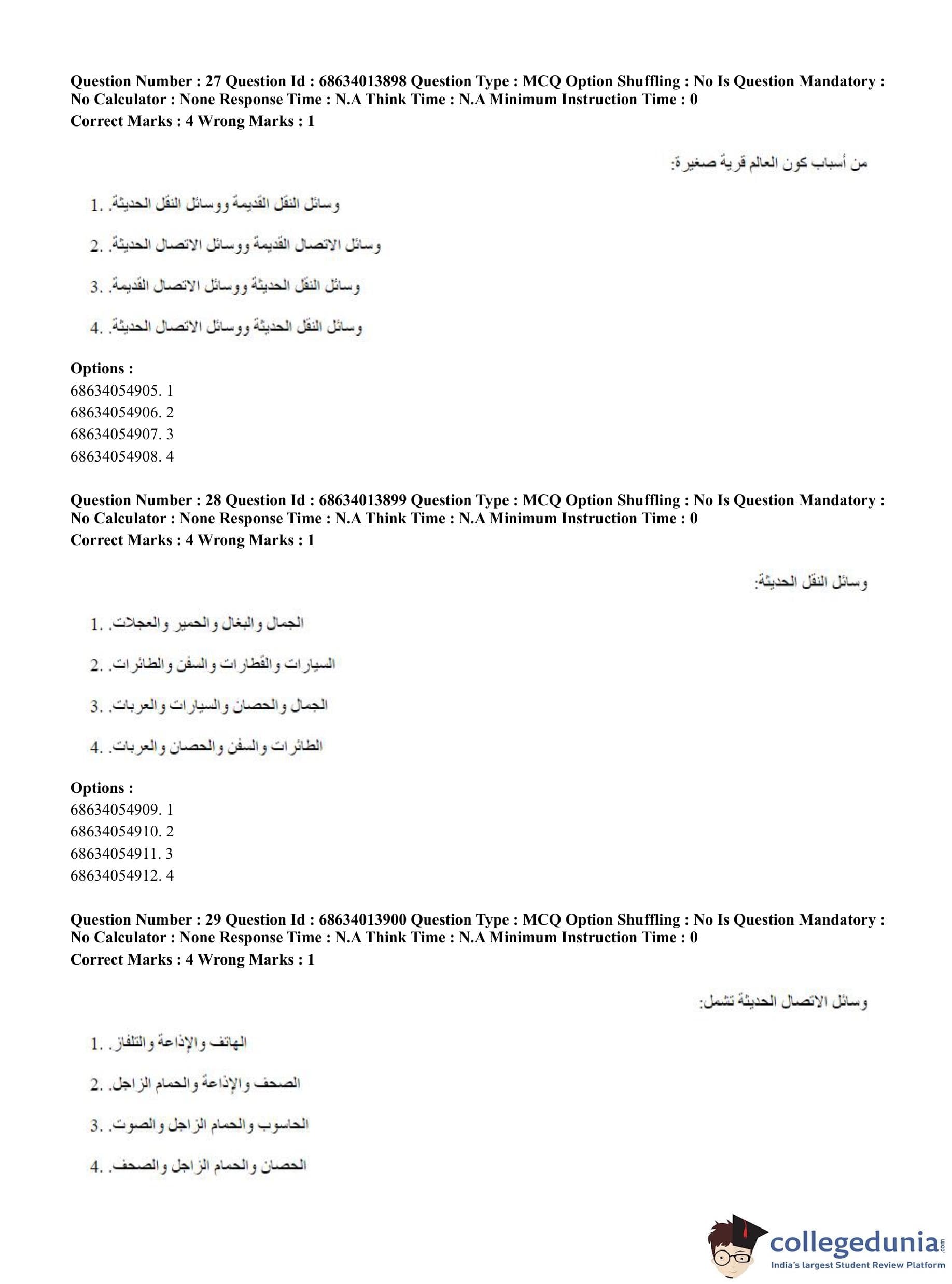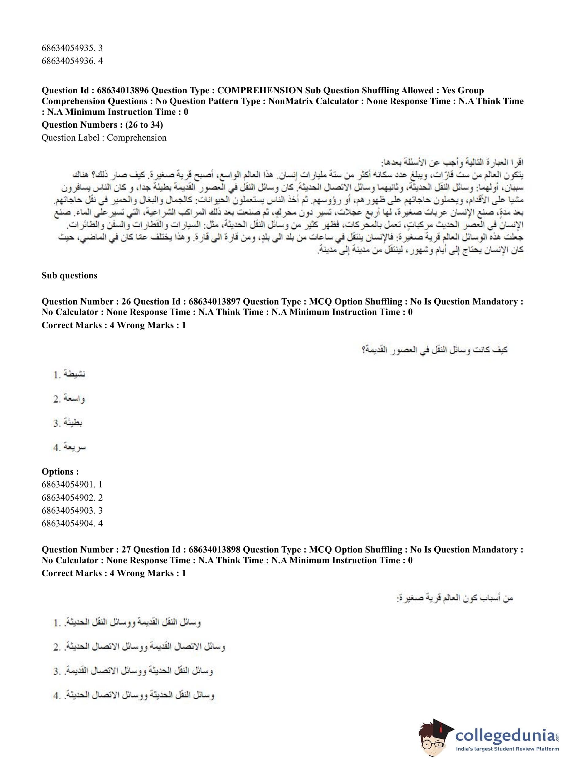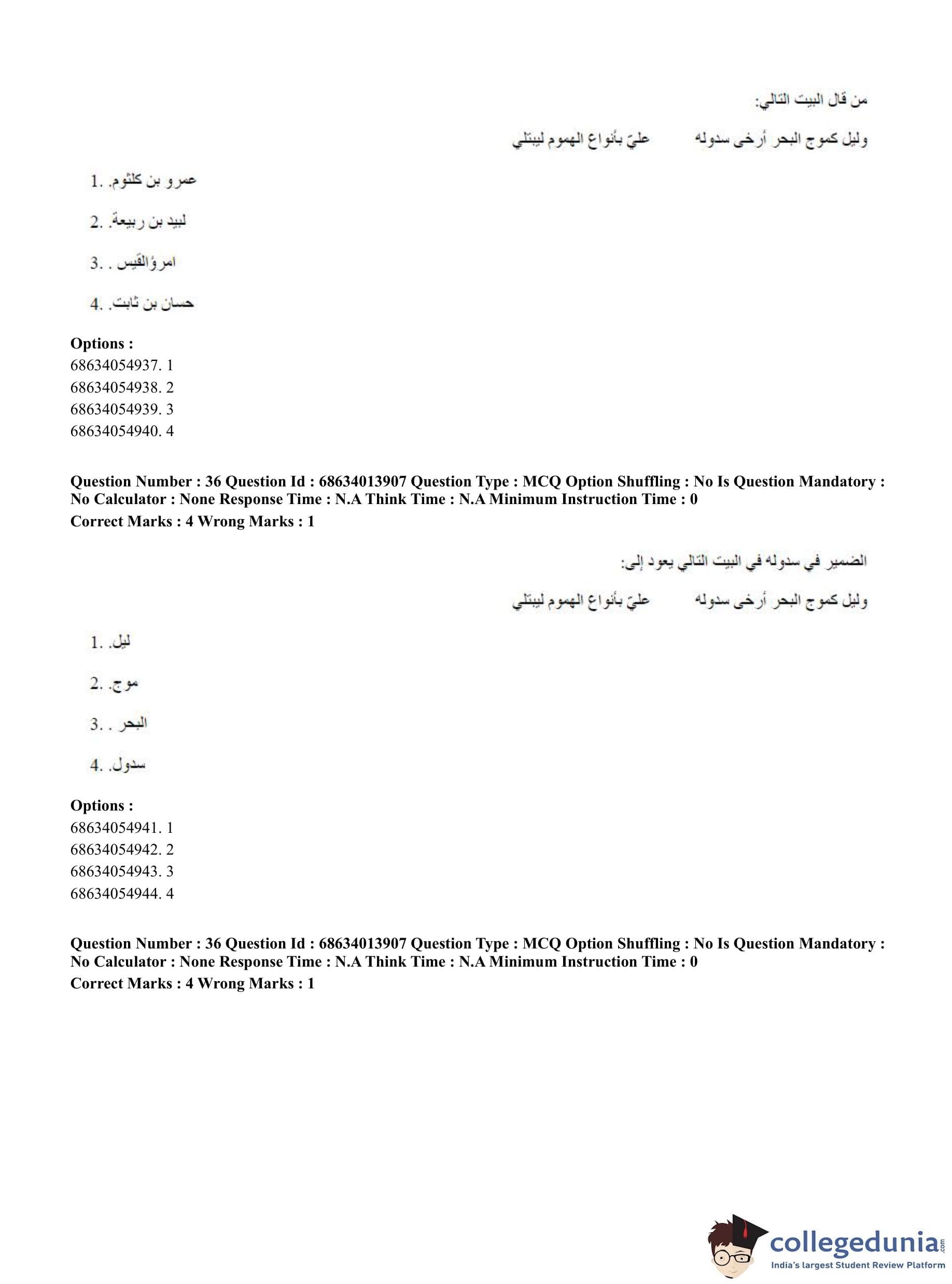 CUET PG 2023 Arabic Question Paper in English (June 11 - Shift 3)