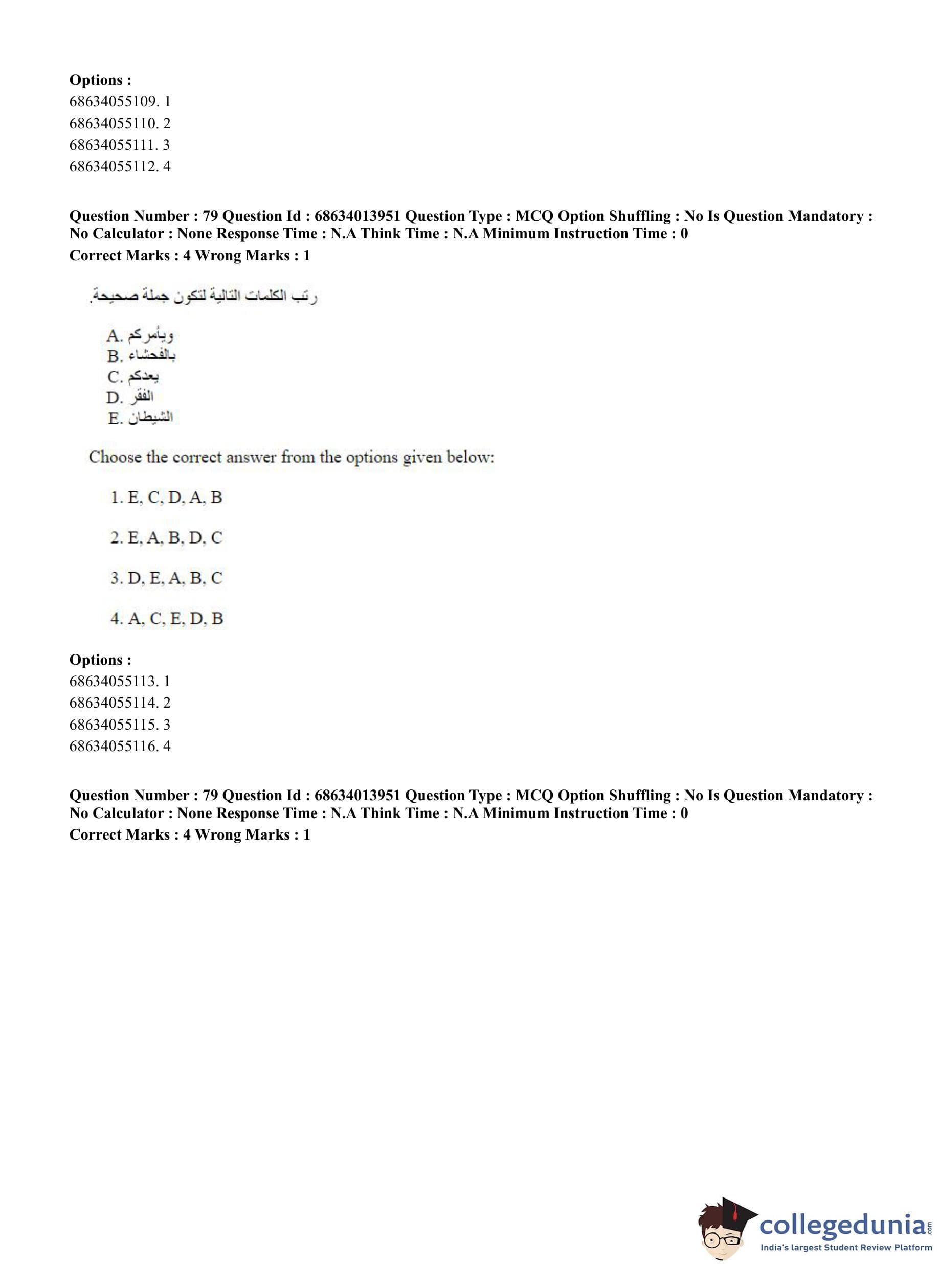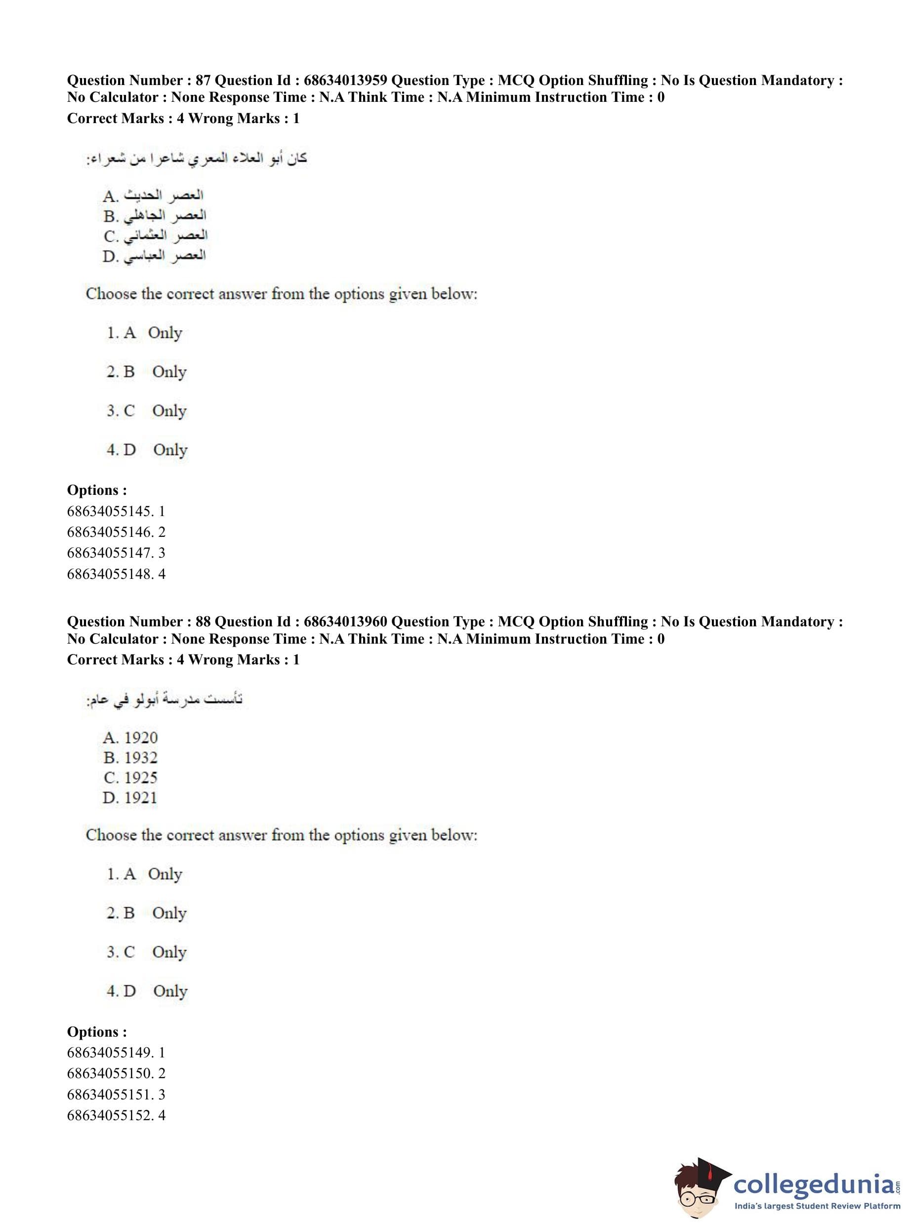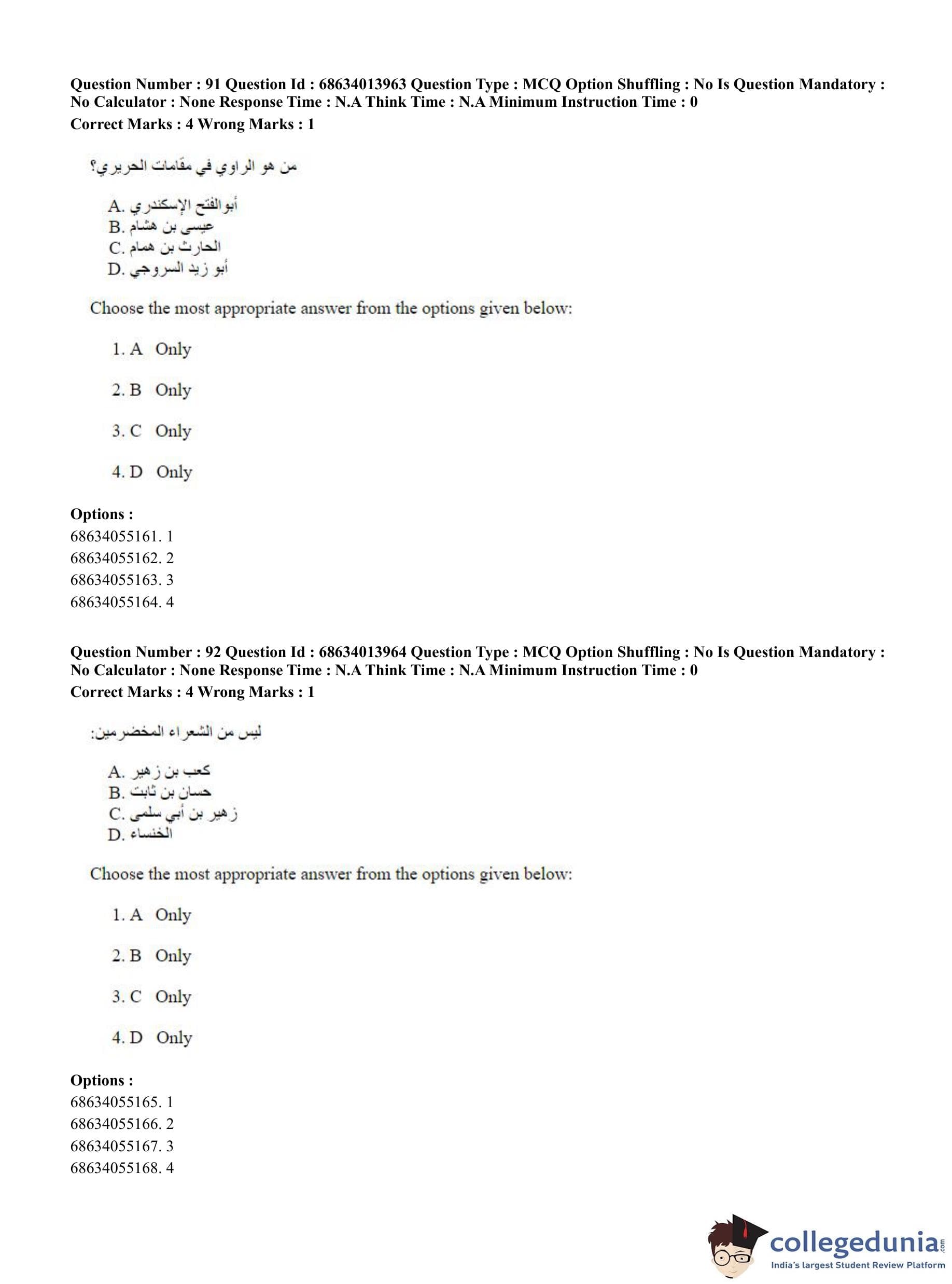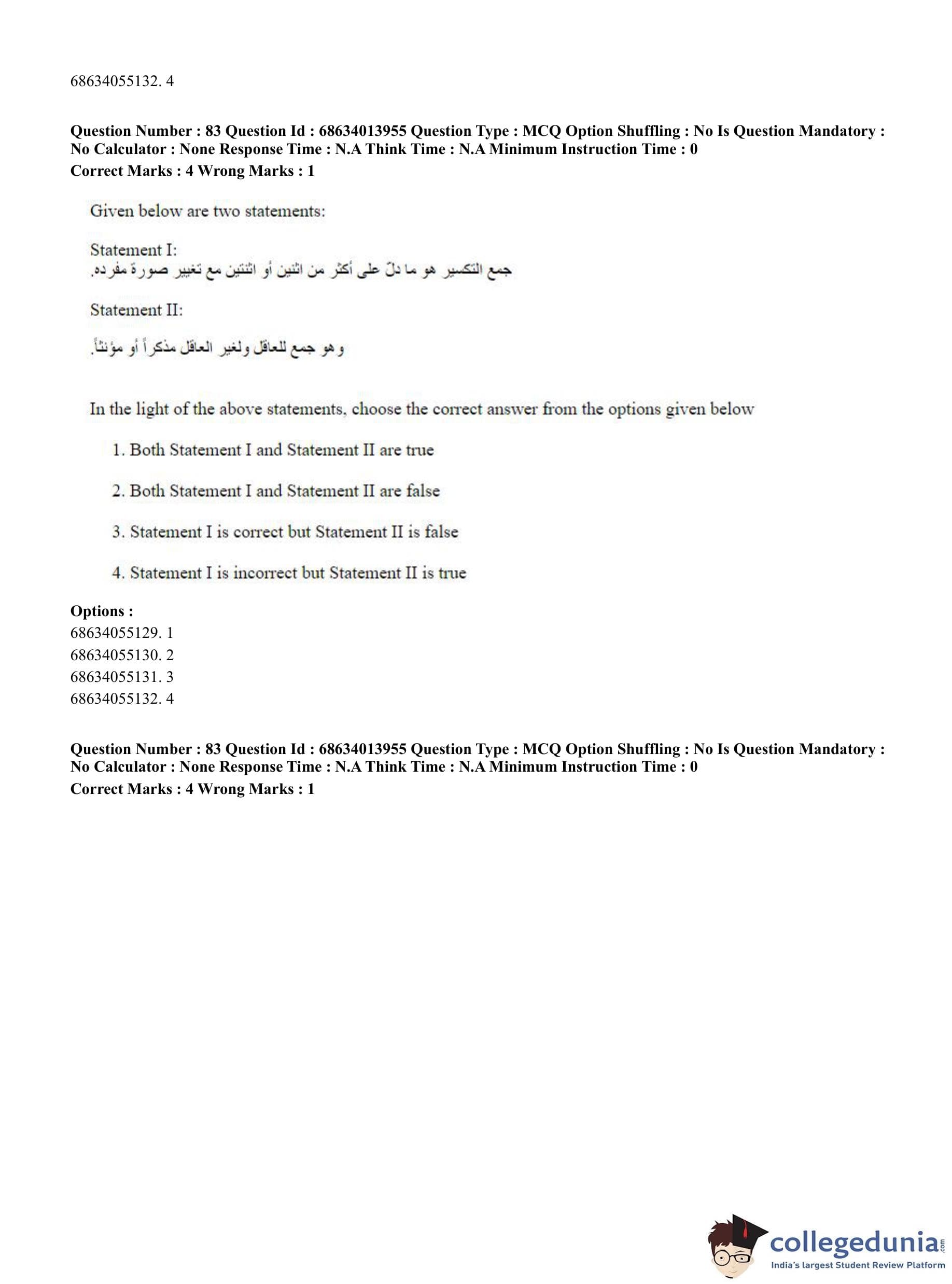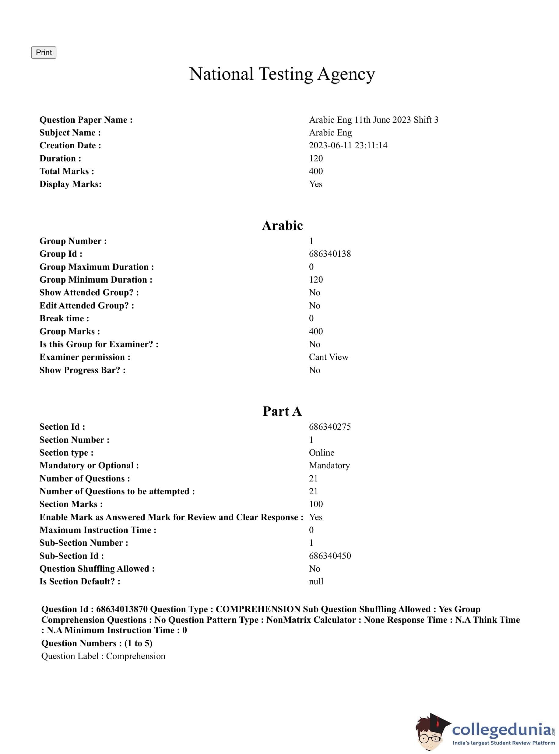 CUET PG 2023 Arabic Question Paper in English (June 11 - Shift 3)