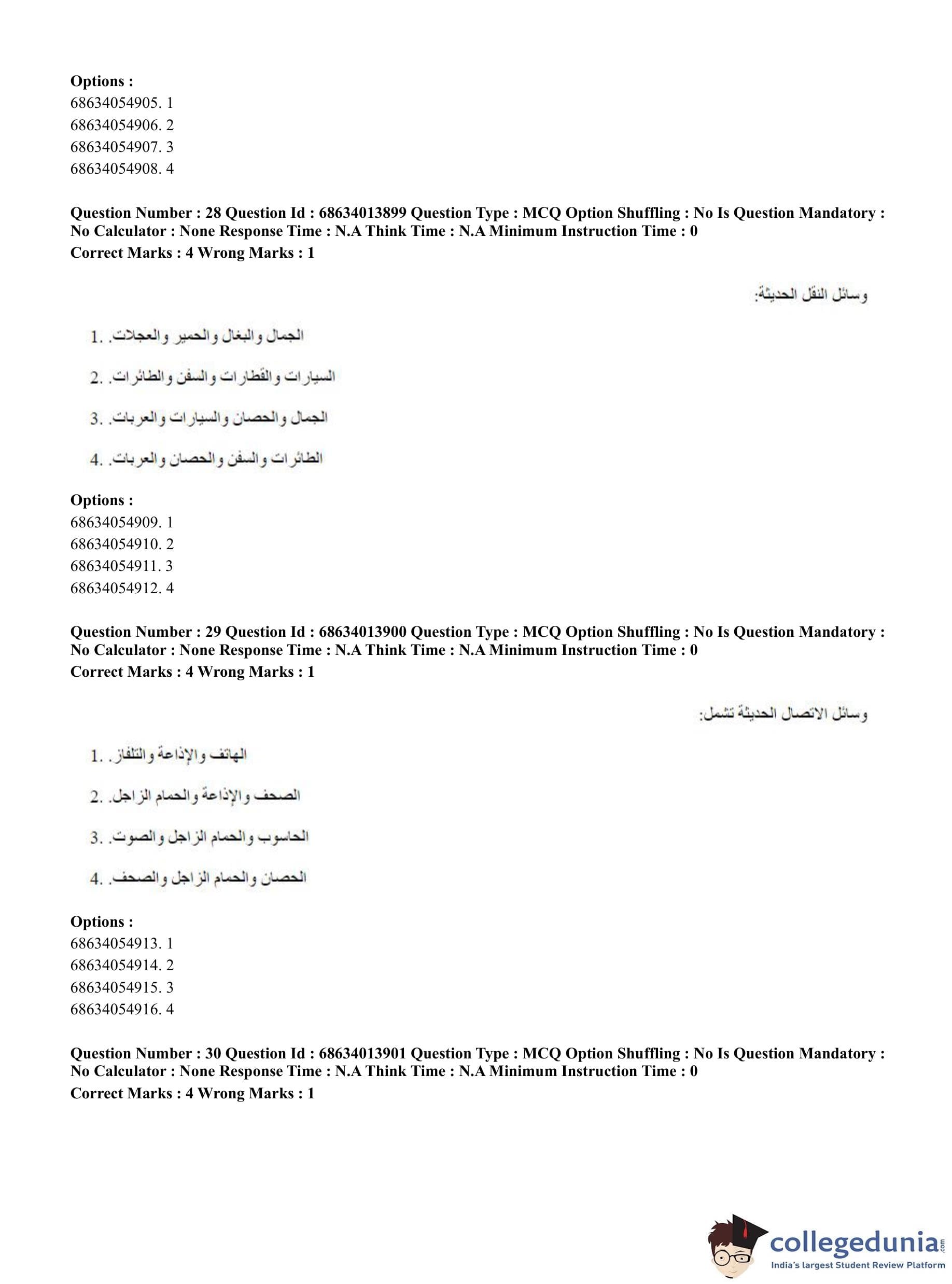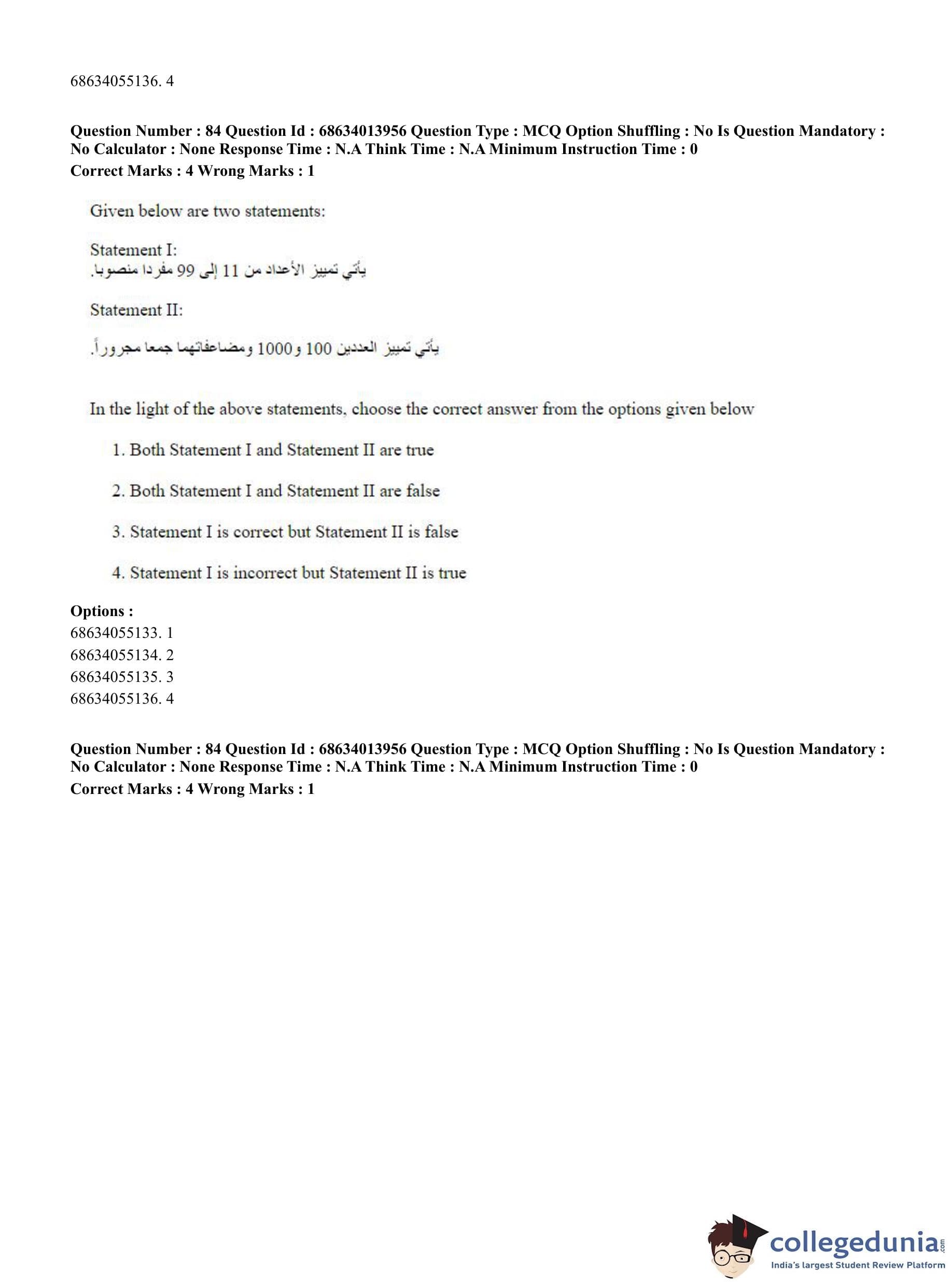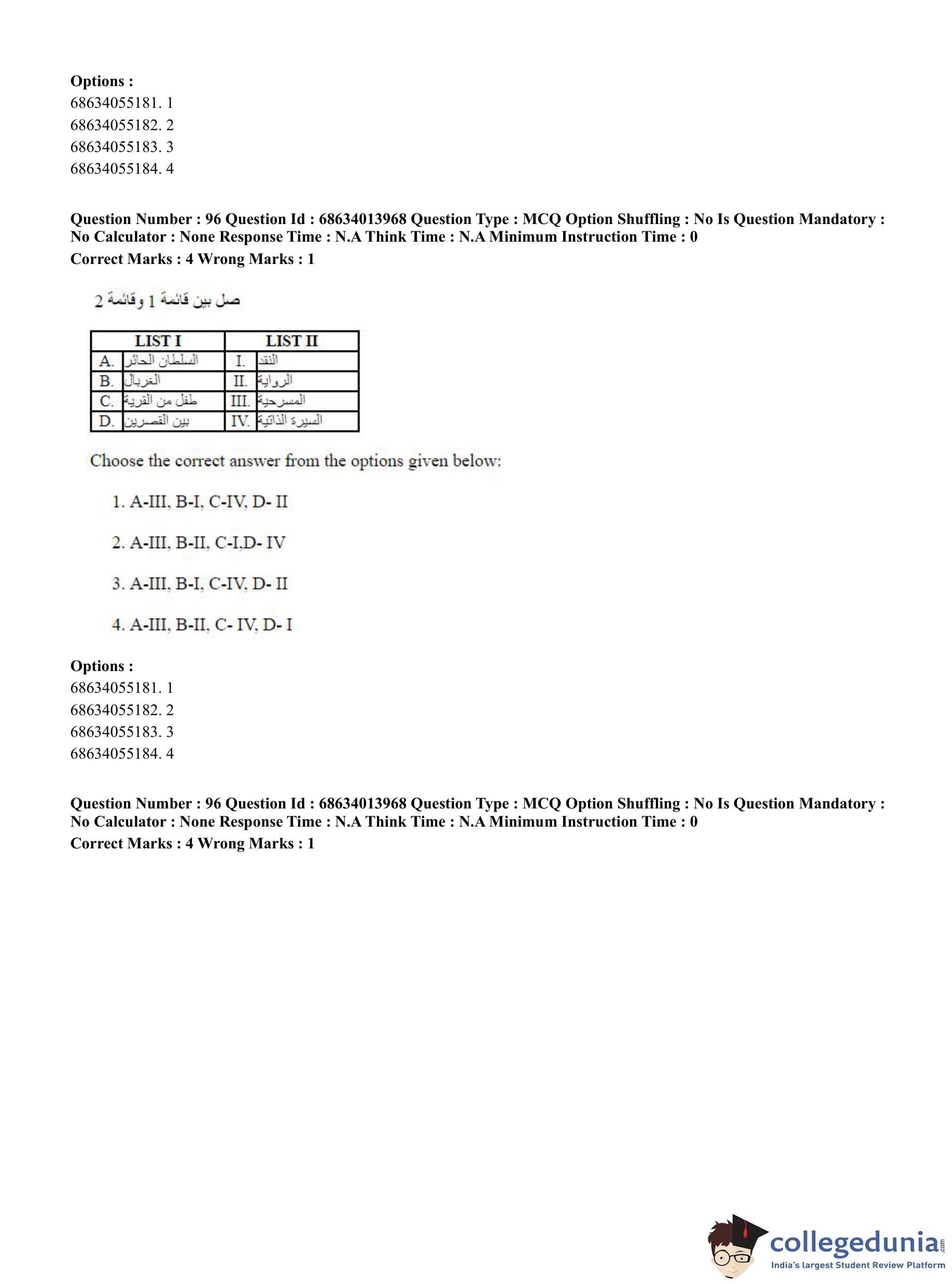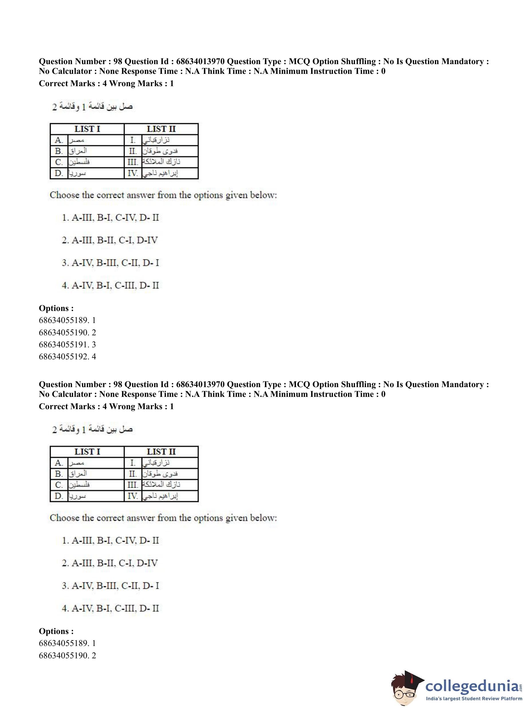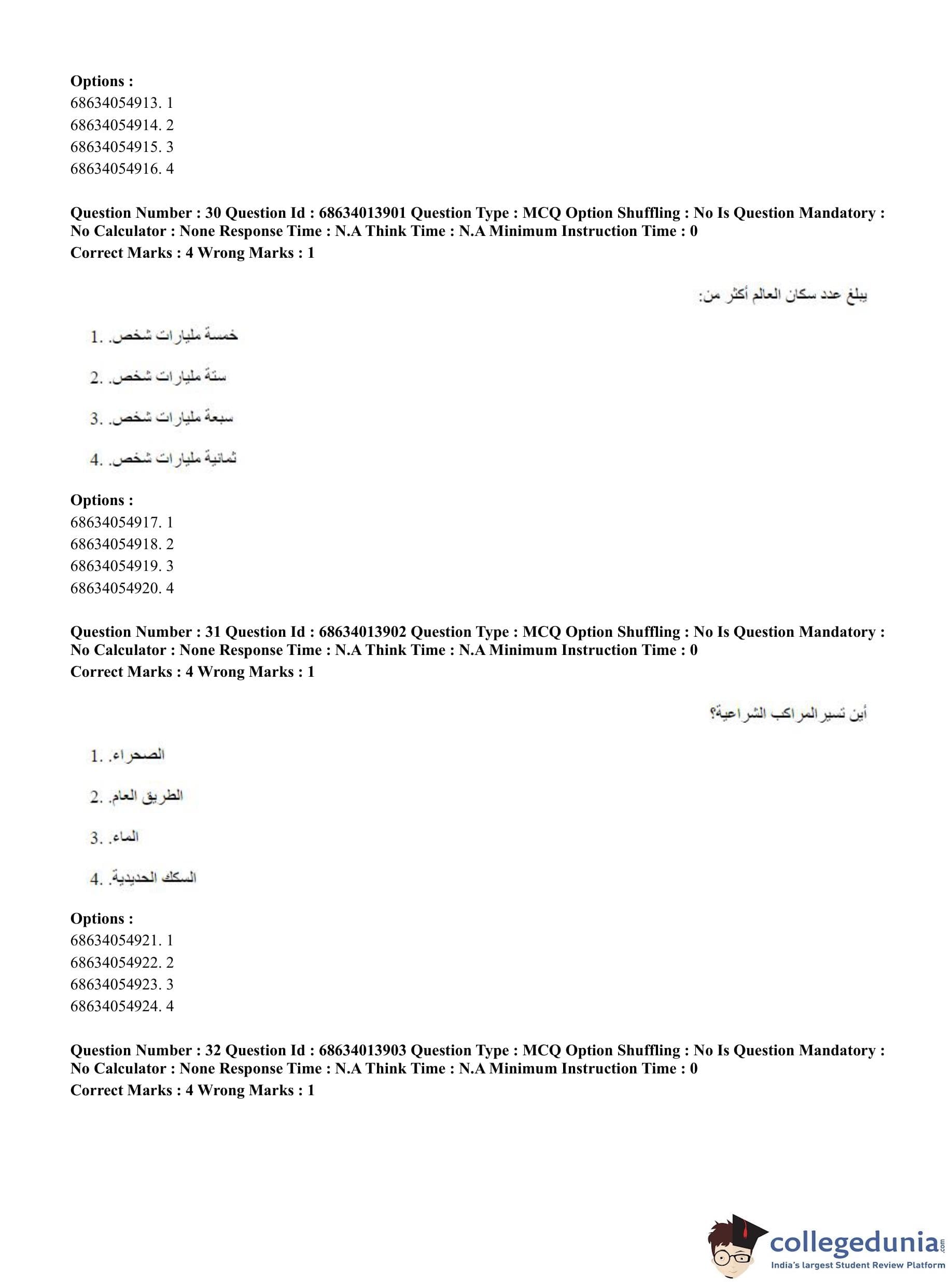 CUET PG 2023 Arabic Question Paper in English (June 11 - Shift 3)