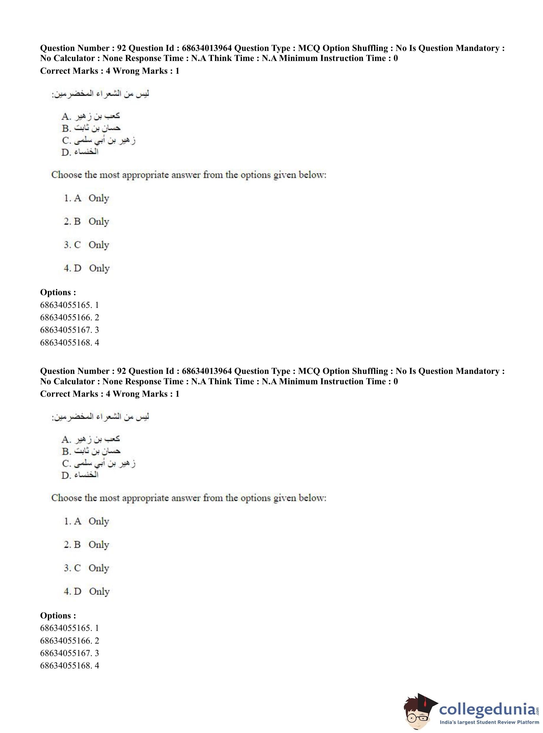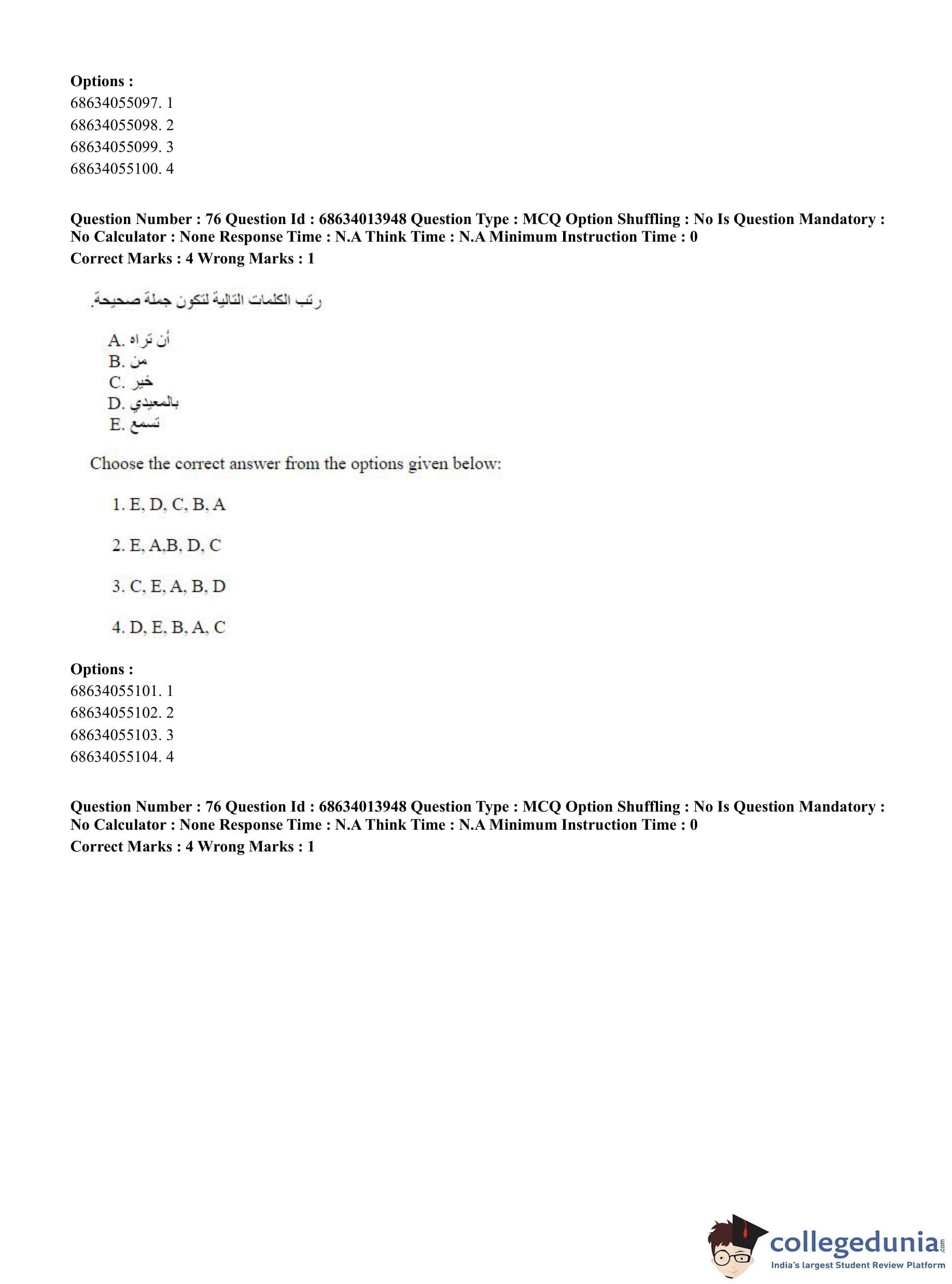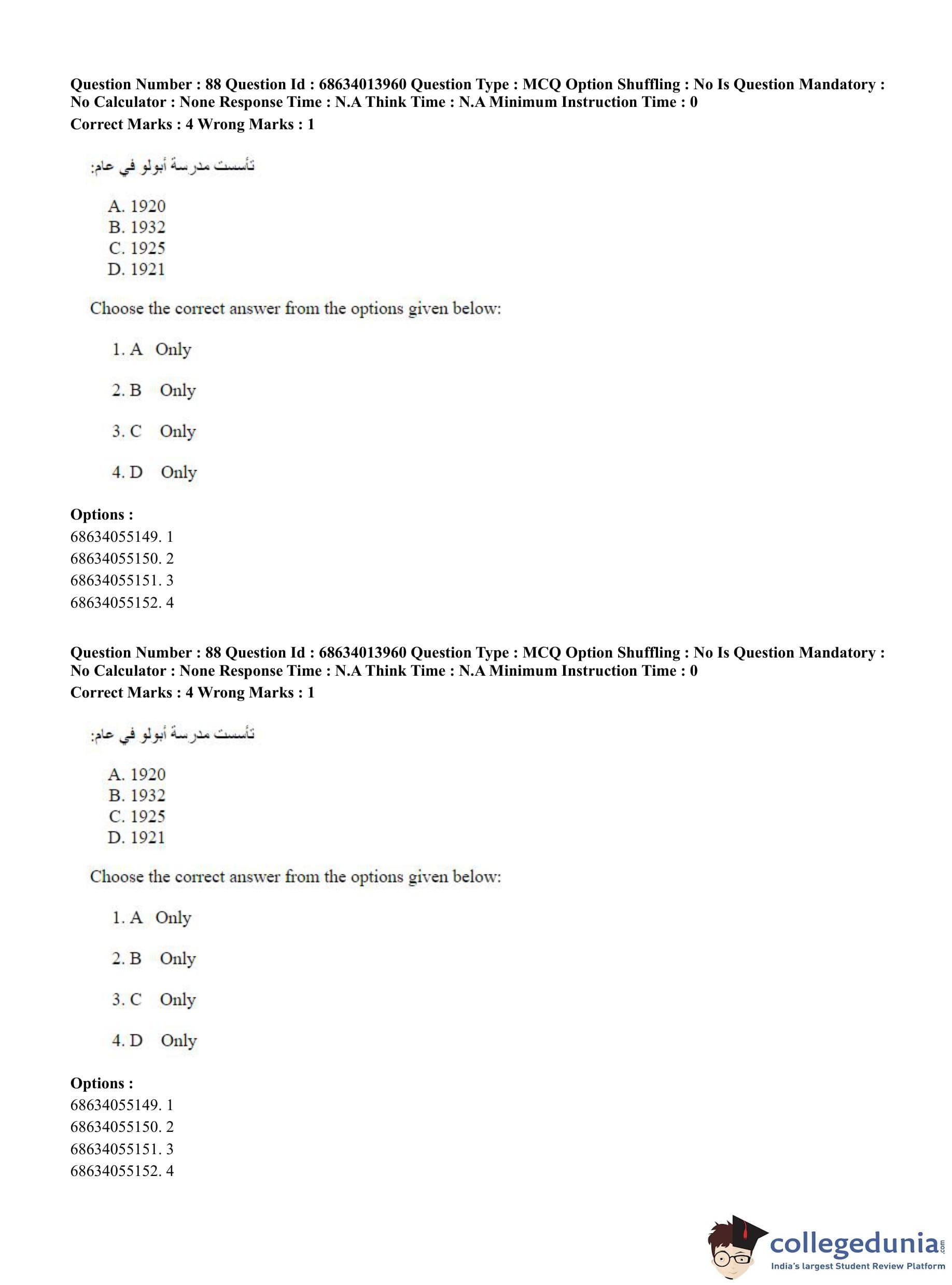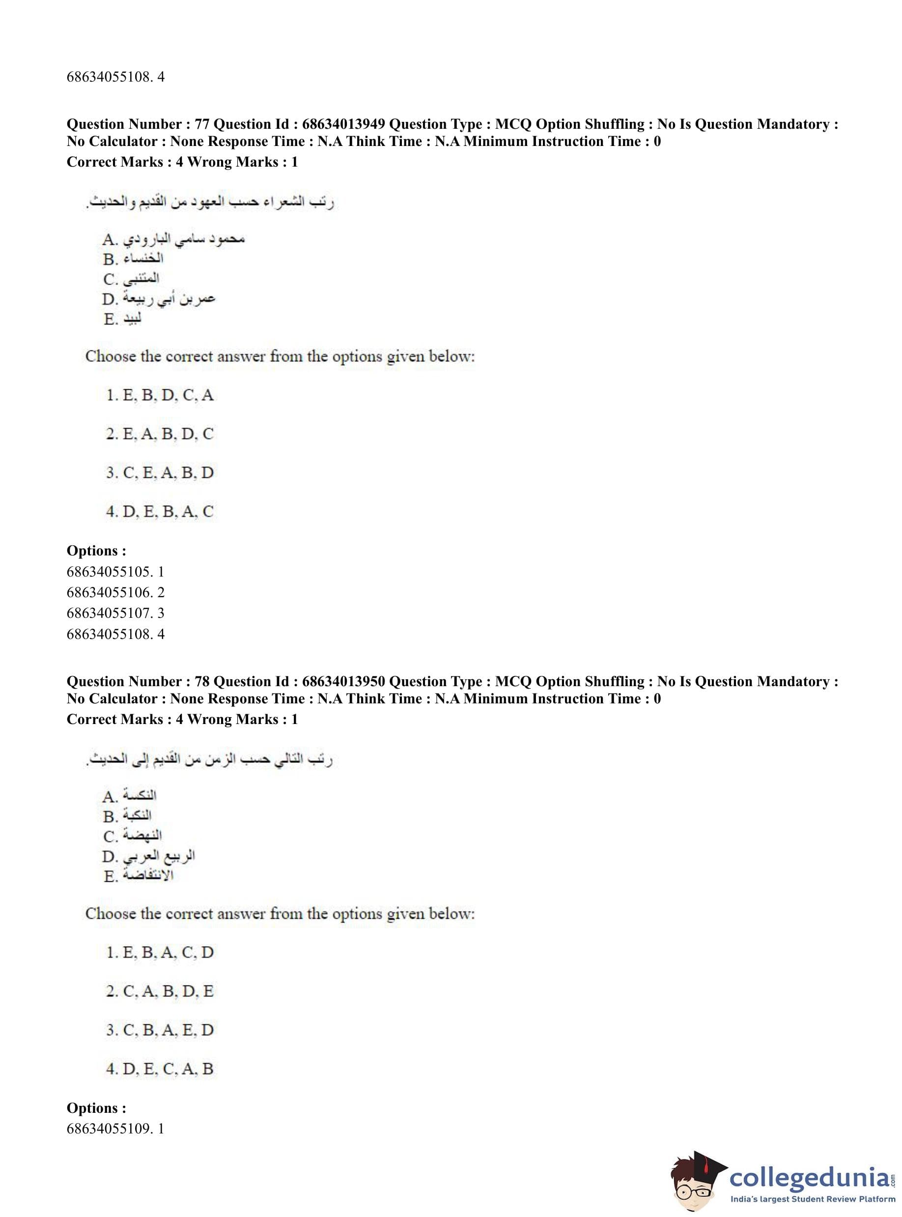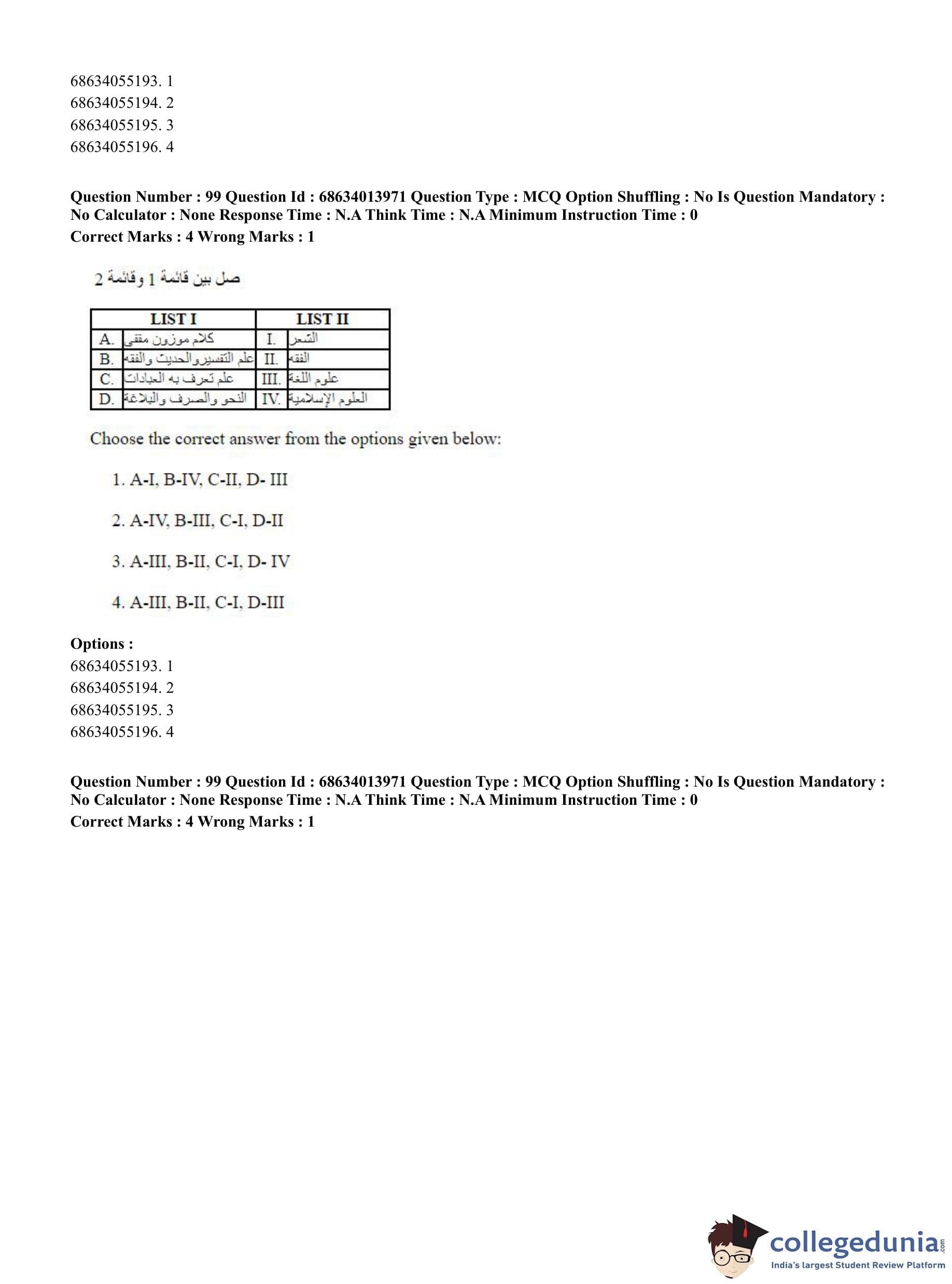 CUET PG 2023 Arabic Question Paper in English (June 11 - Shift 3)
