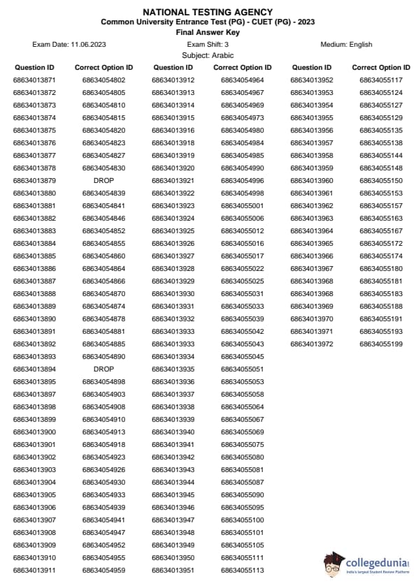 | CUET PG Arabic Question Paper 2023 PDF | CUET PG Arabic Answer Key 2023 PDF |
