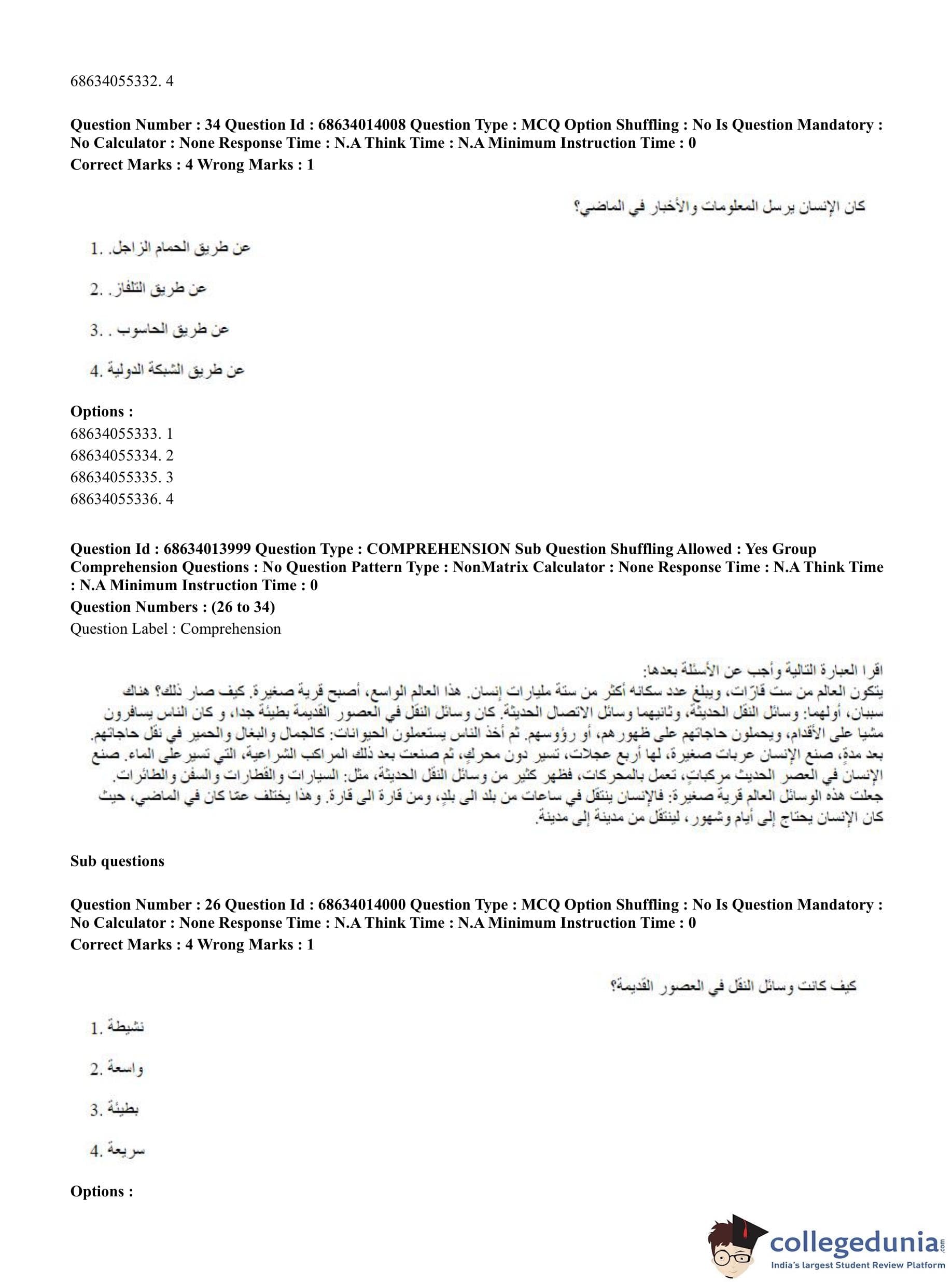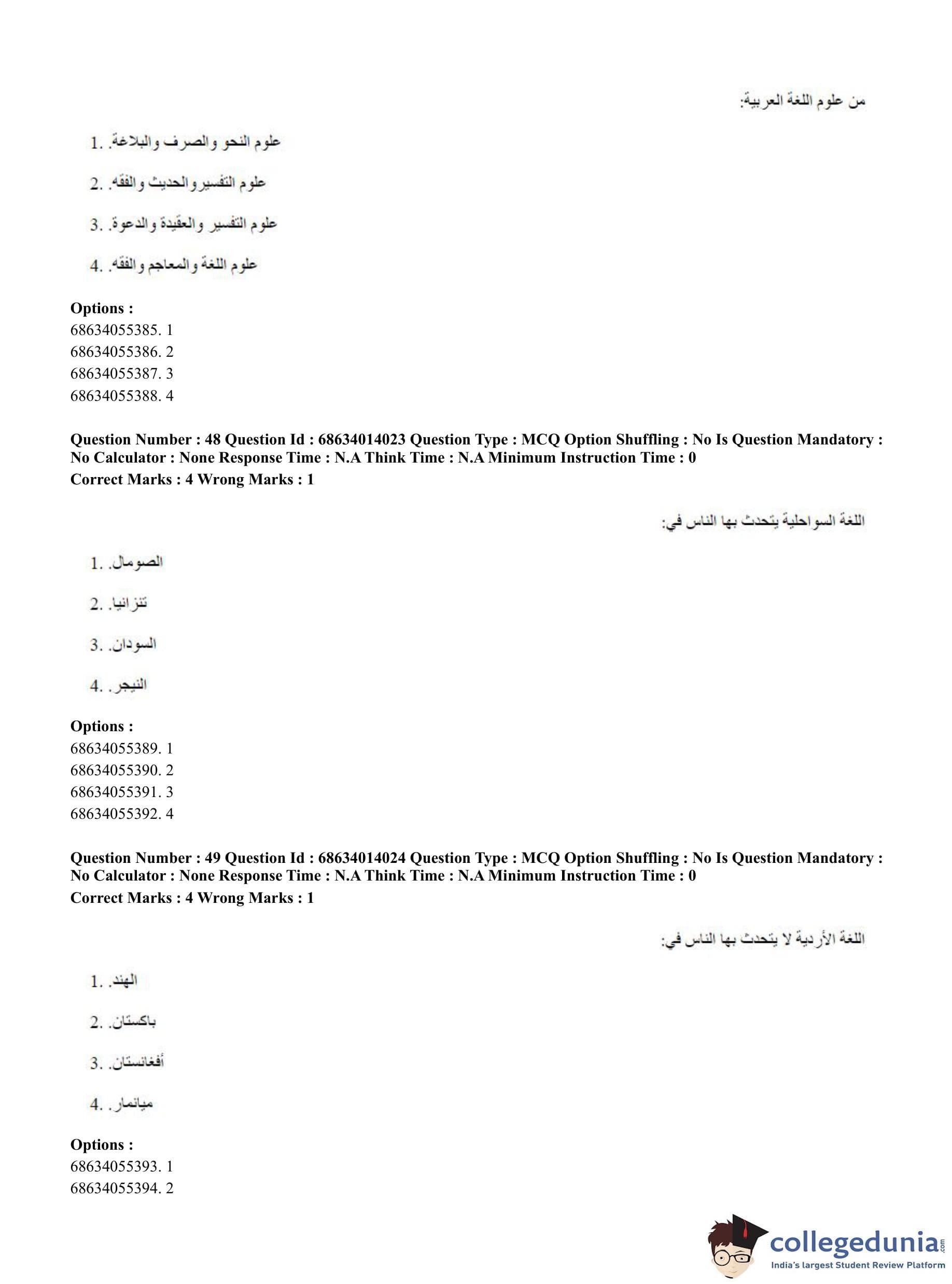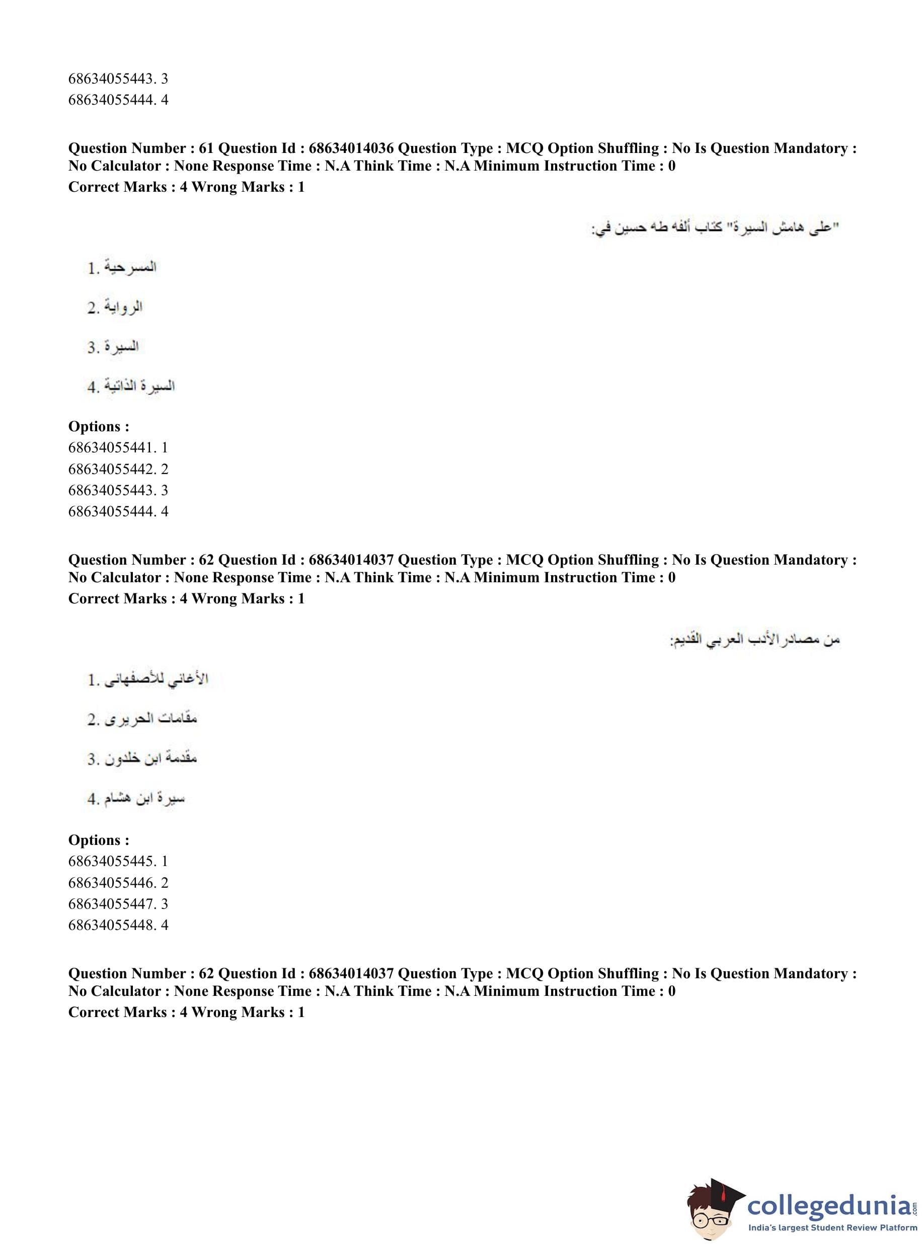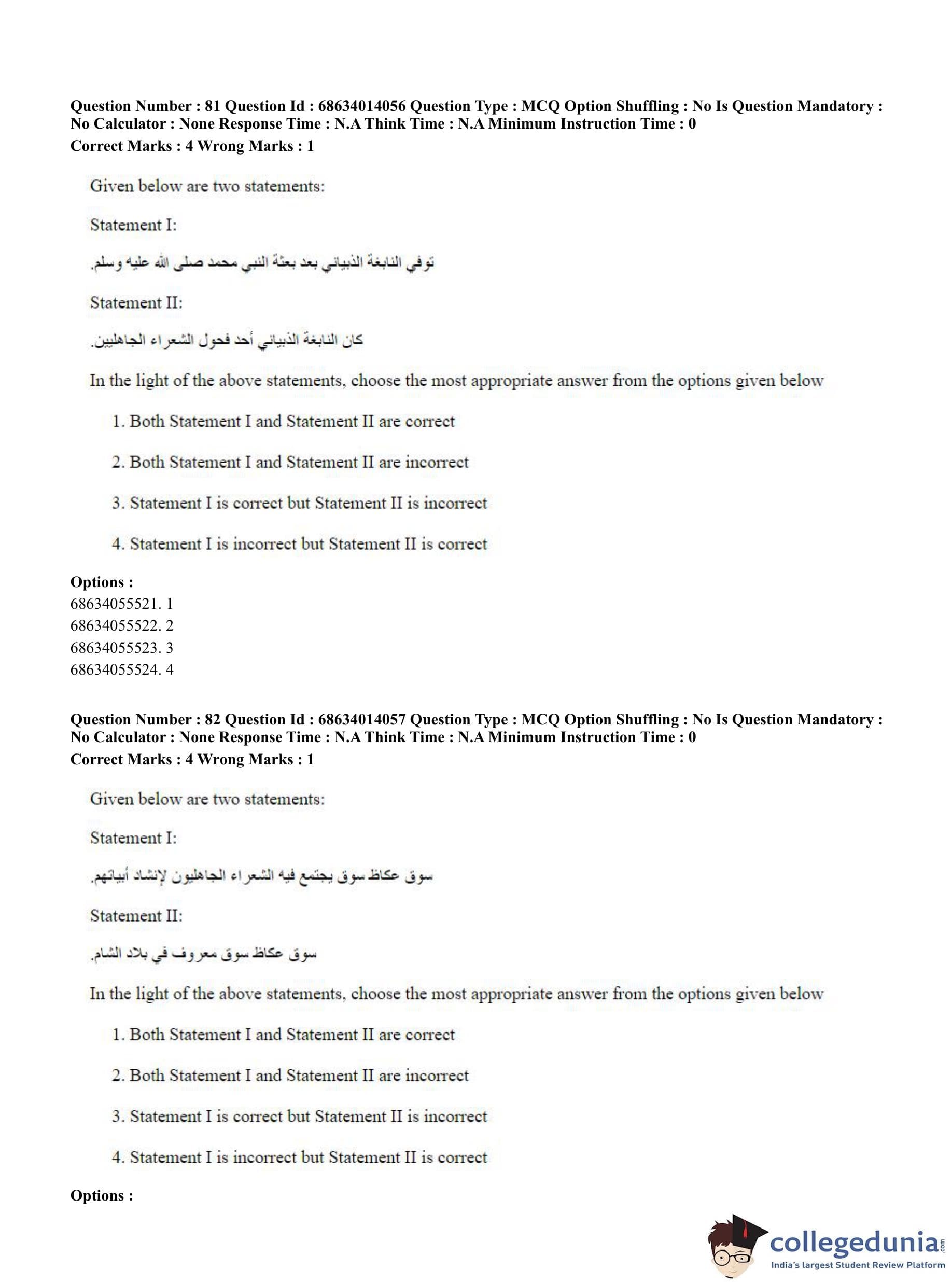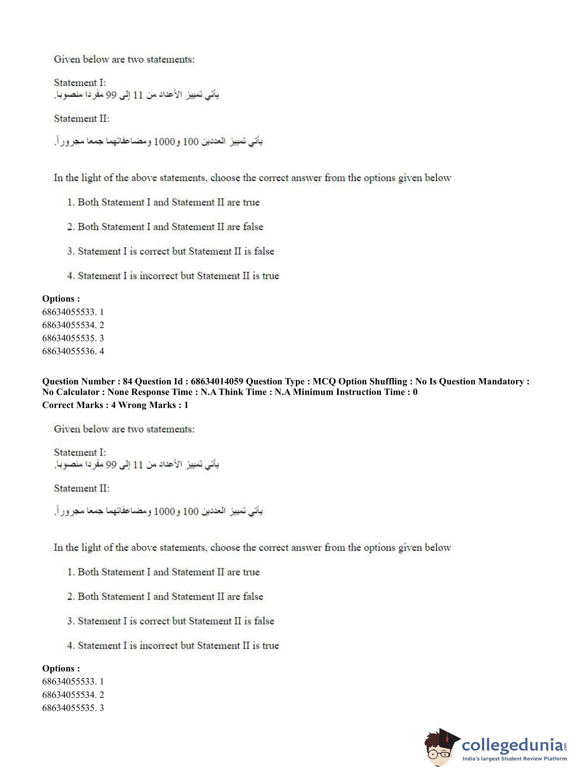 CUET PG 2023 Arabic Question Paper in Hindi (June 11 - Shift 3)