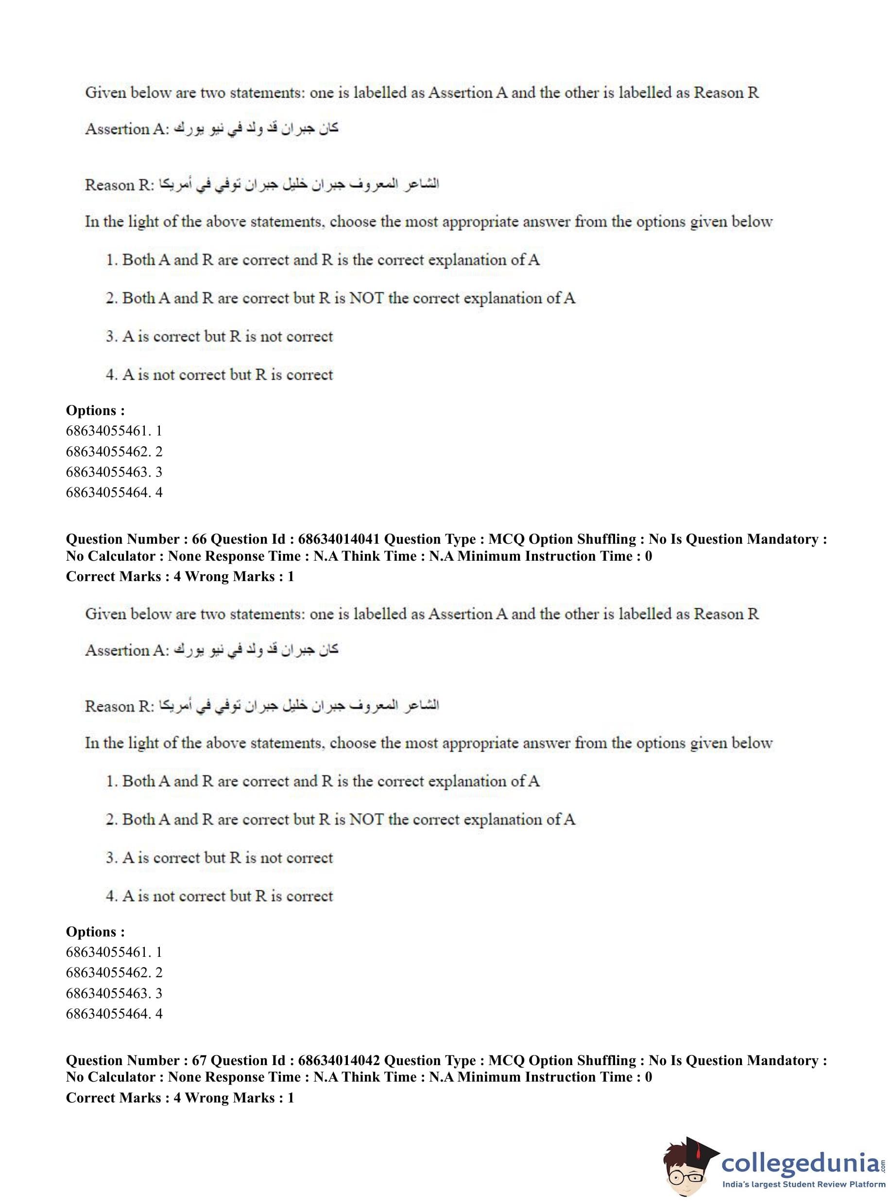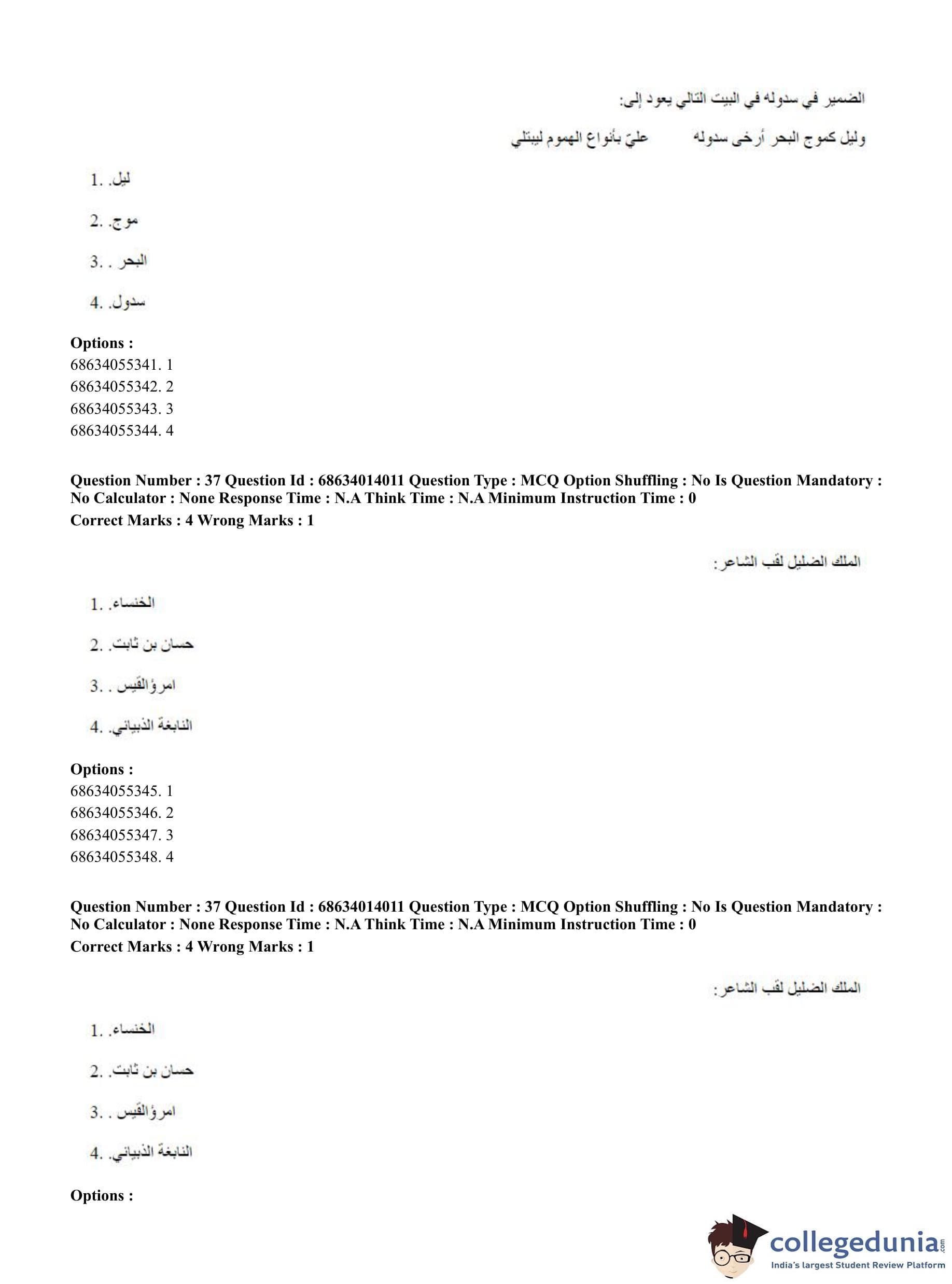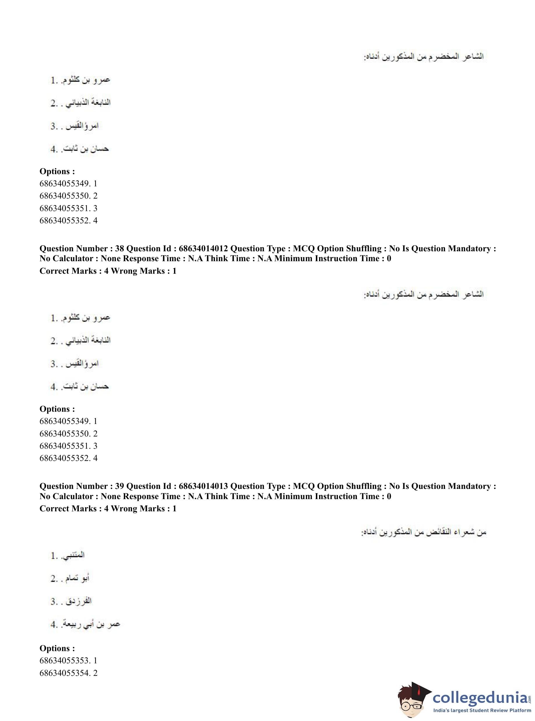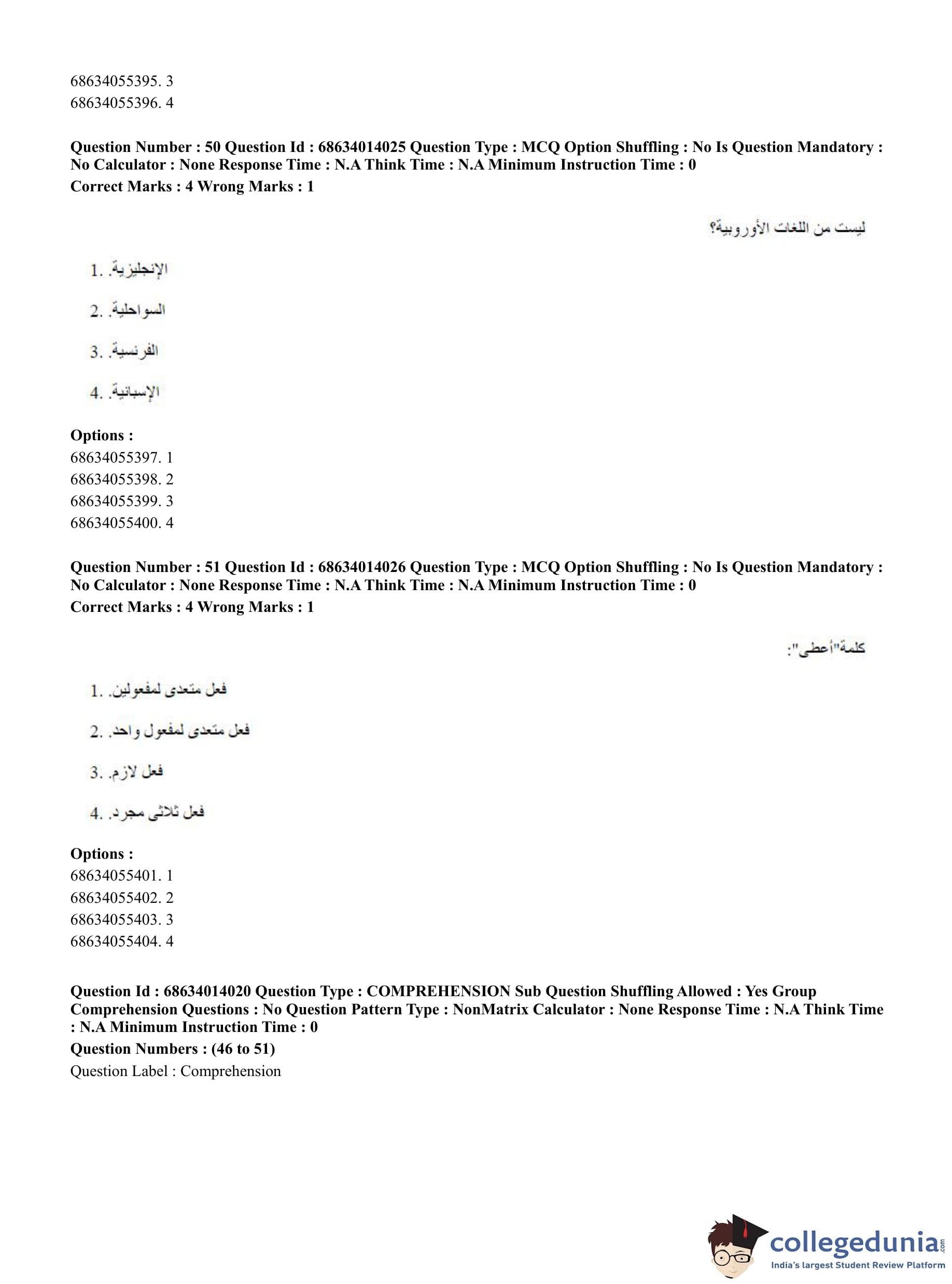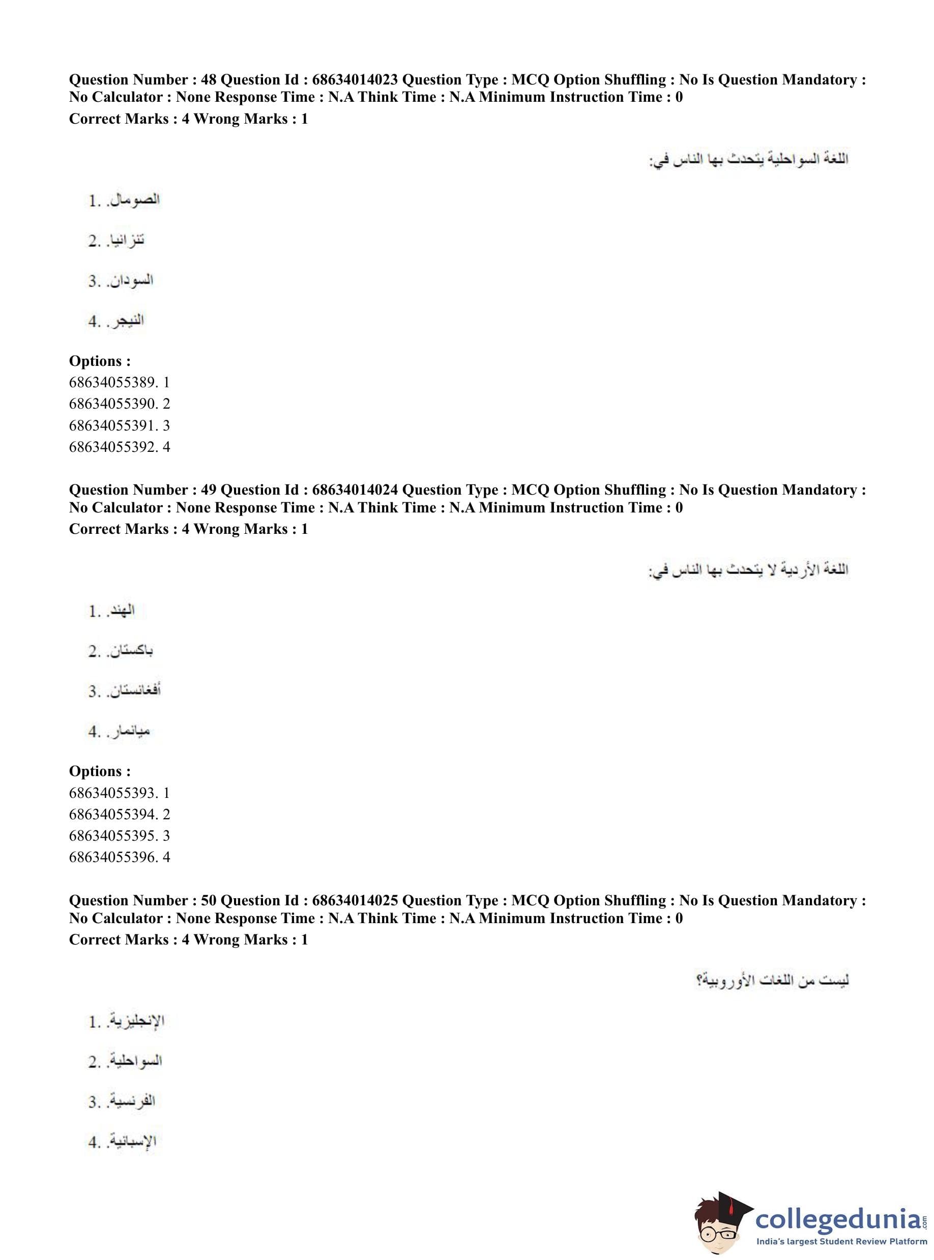 CUET PG 2023 Arabic Question Paper in Hindi (June 11 - Shift 3)