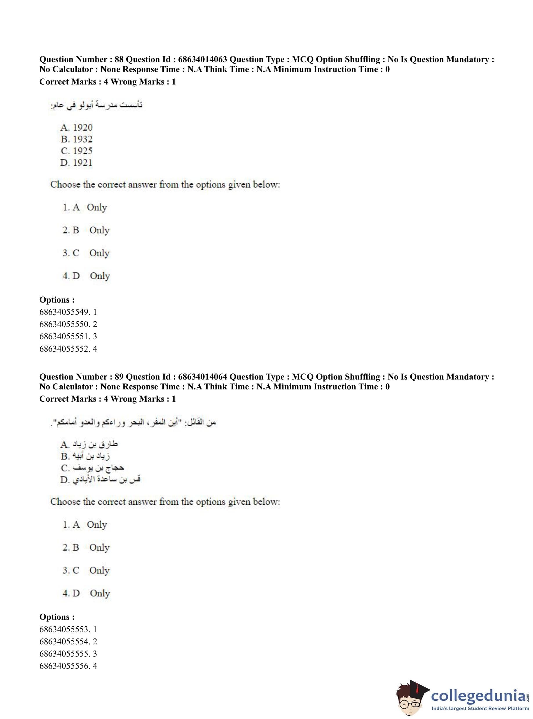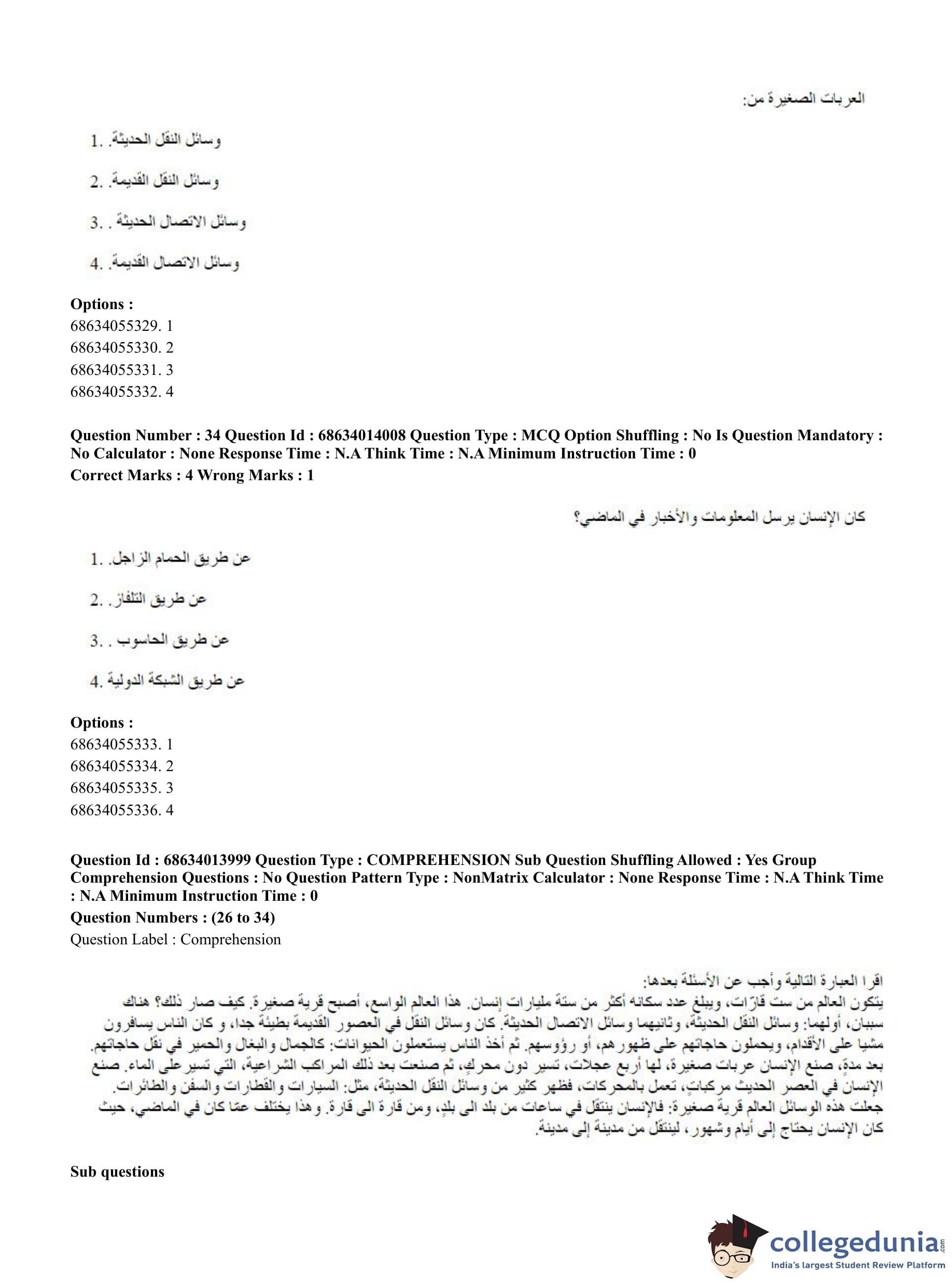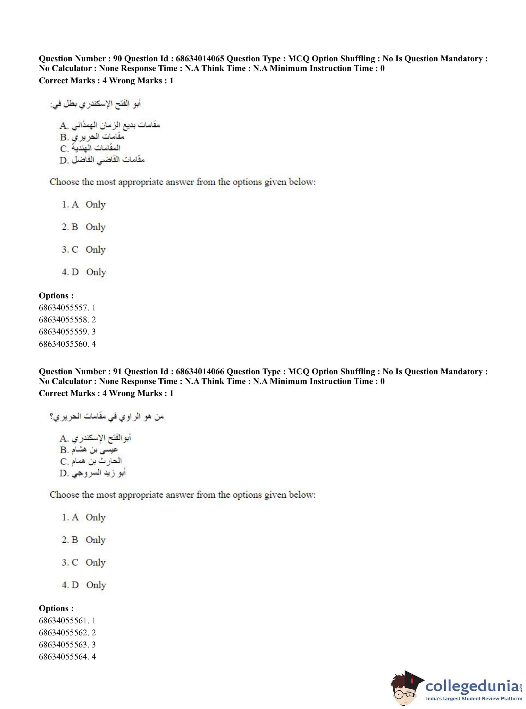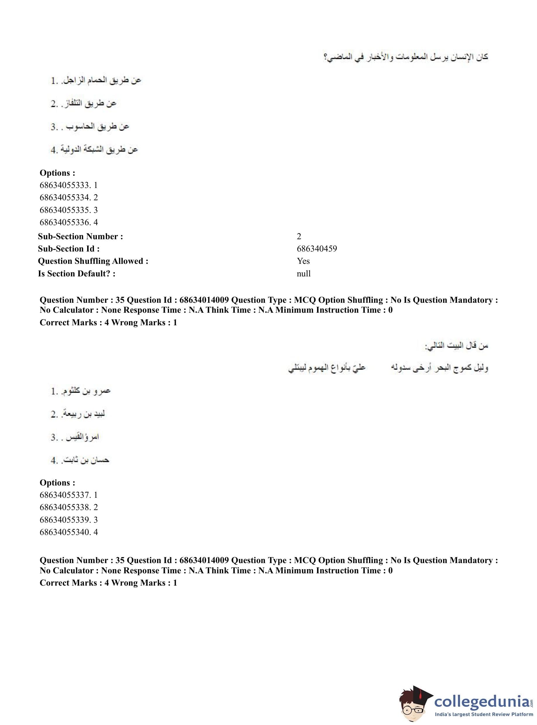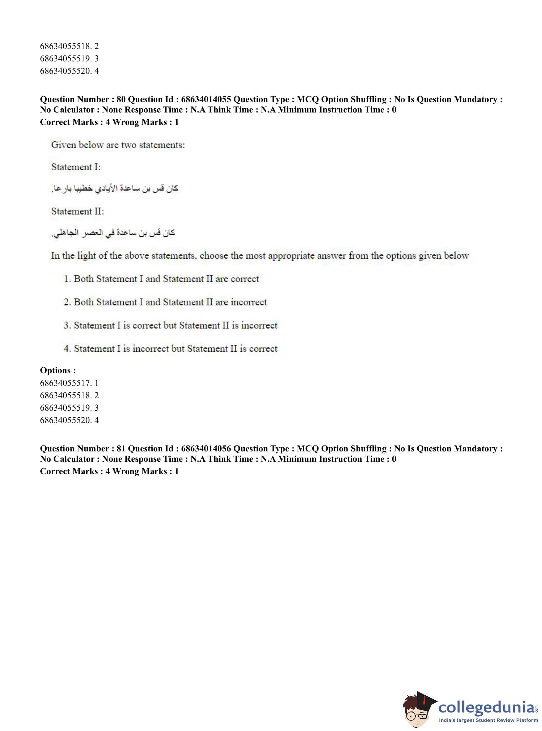 CUET PG 2023 Arabic Question Paper in Hindi (June 11 - Shift 3)