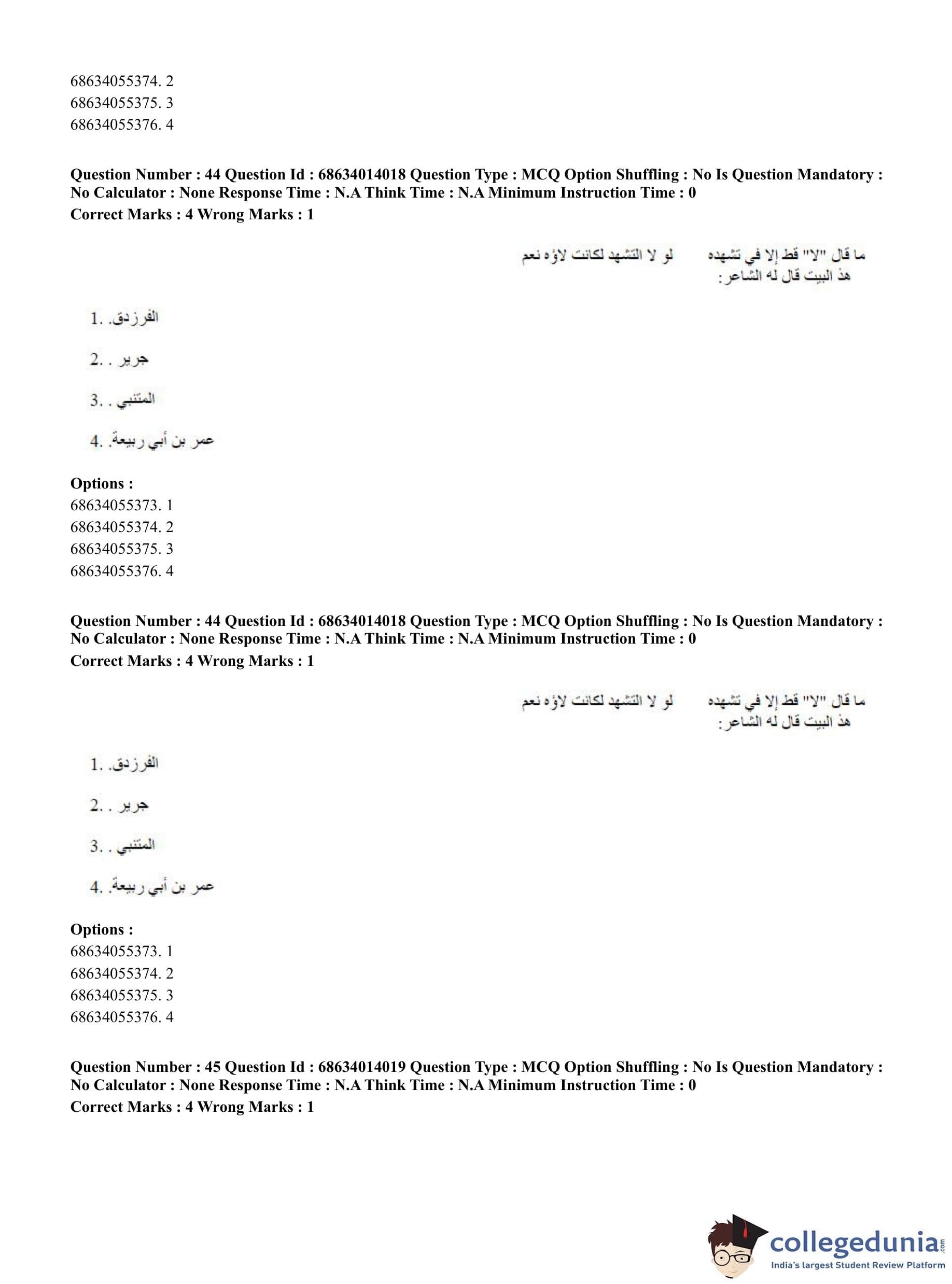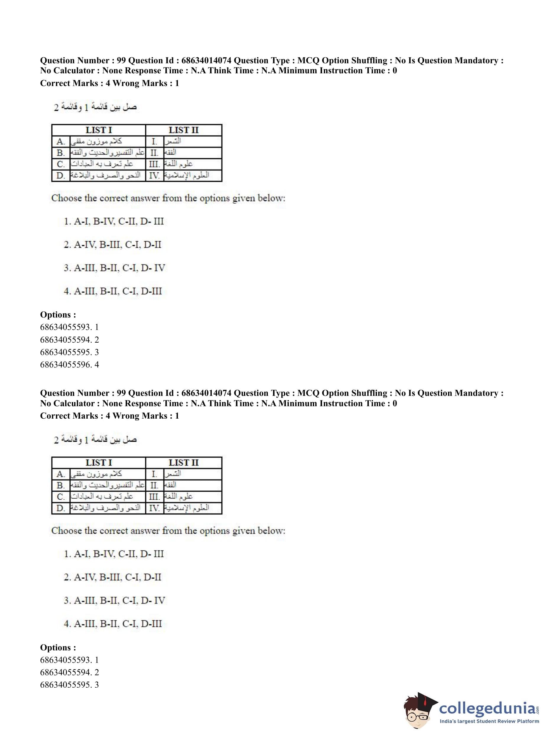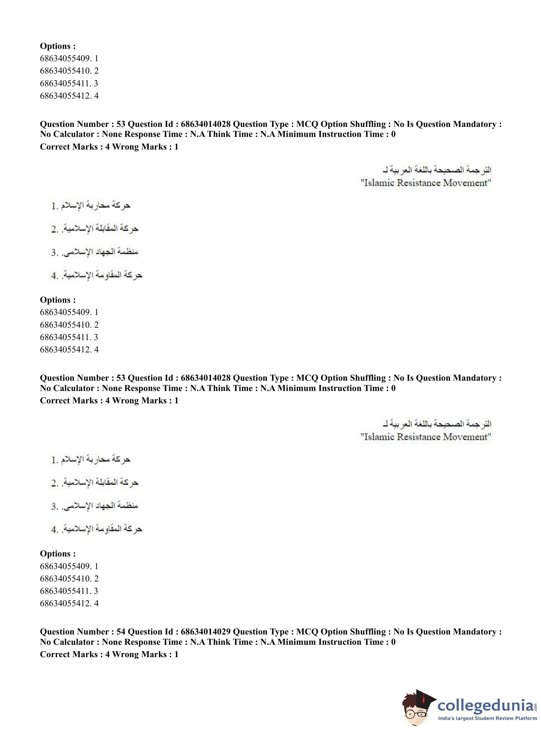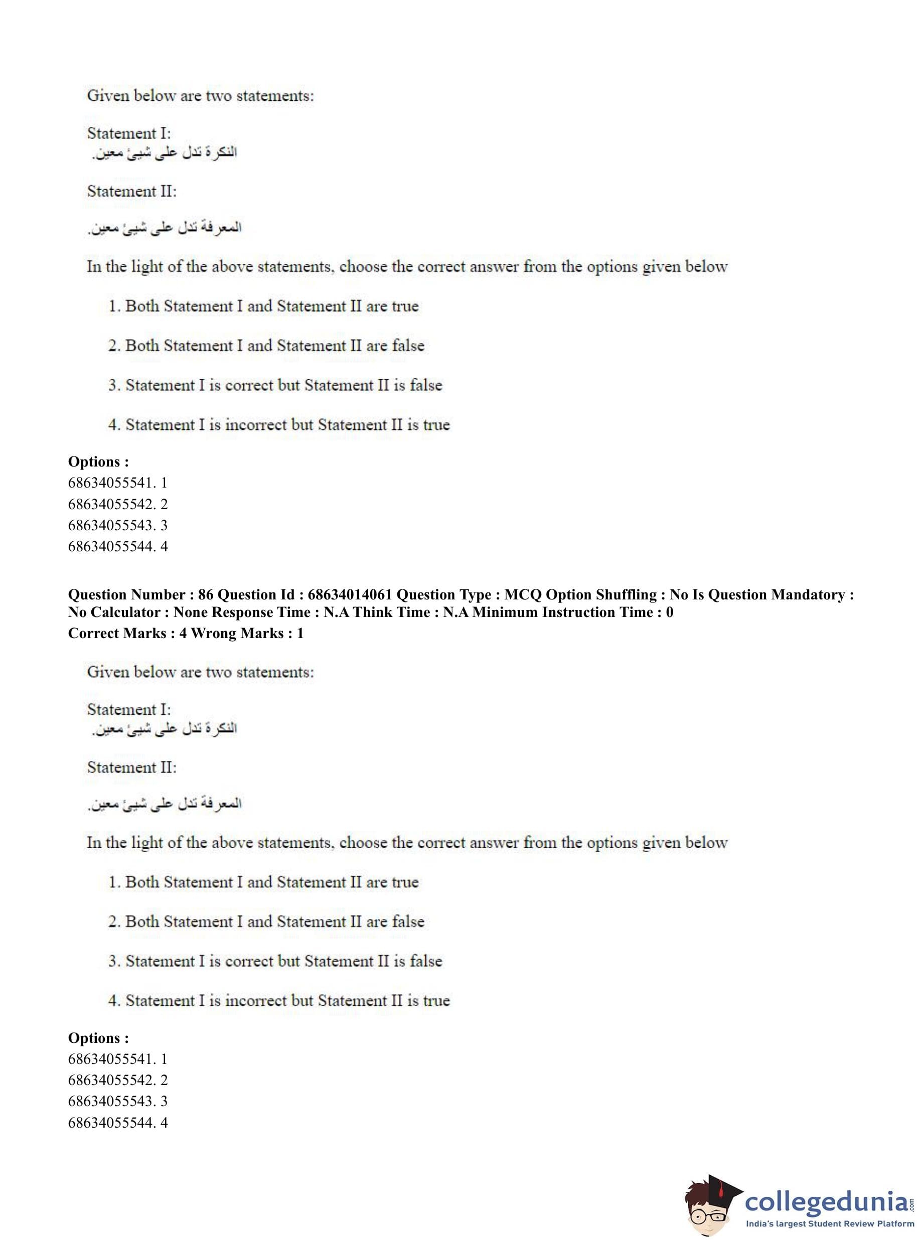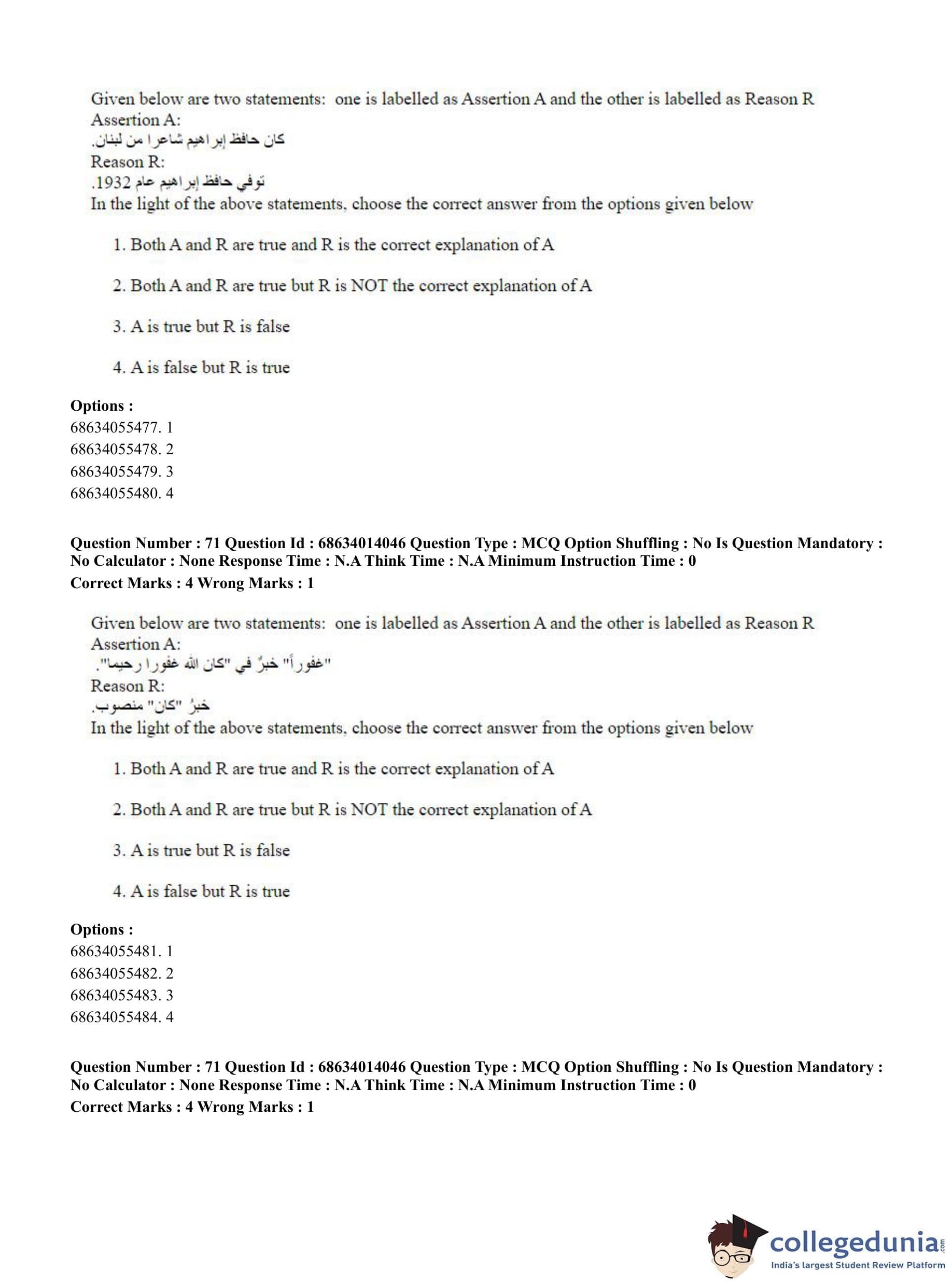 CUET PG 2023 Arabic Question Paper in Hindi (June 11 - Shift 3)