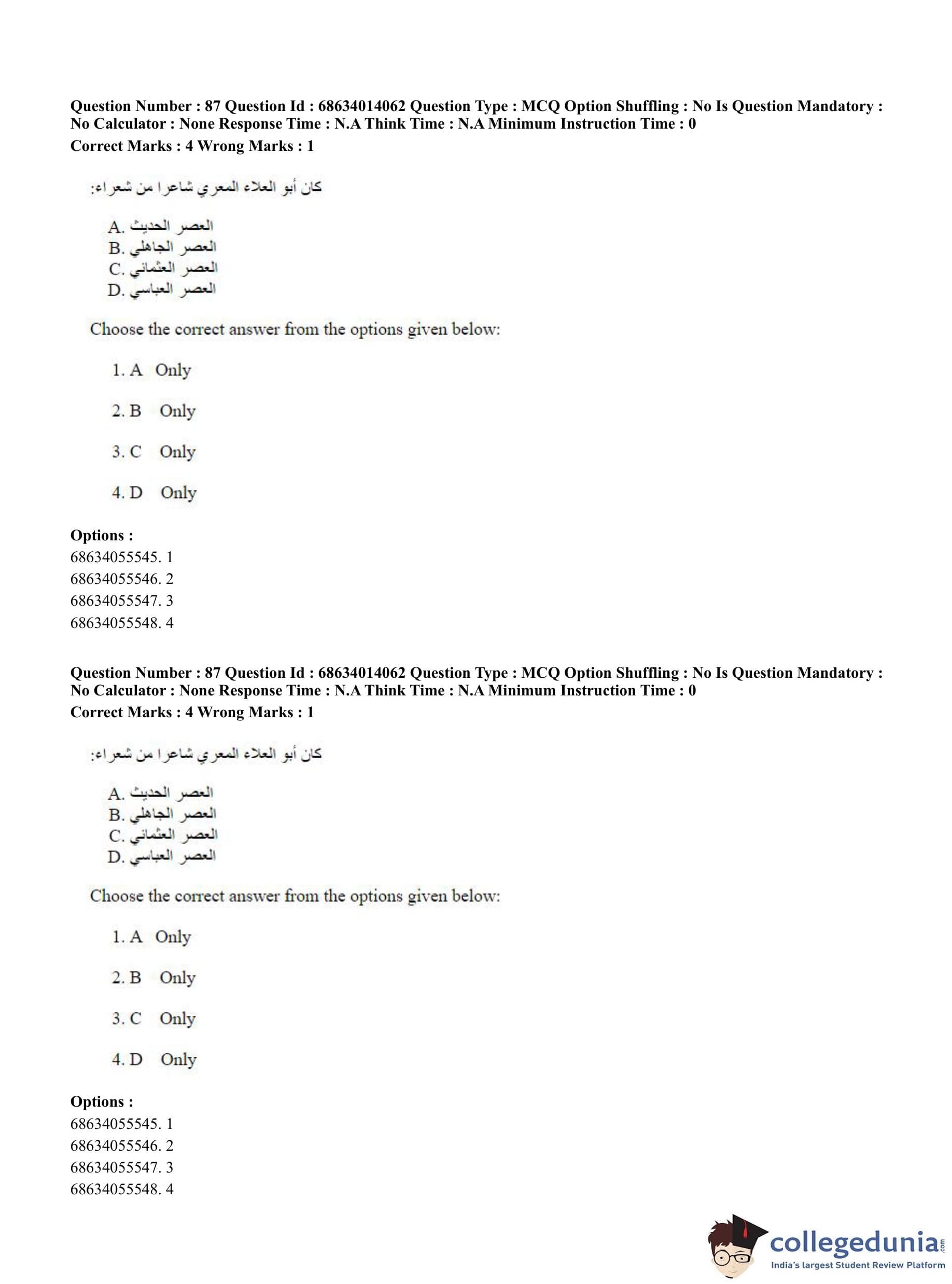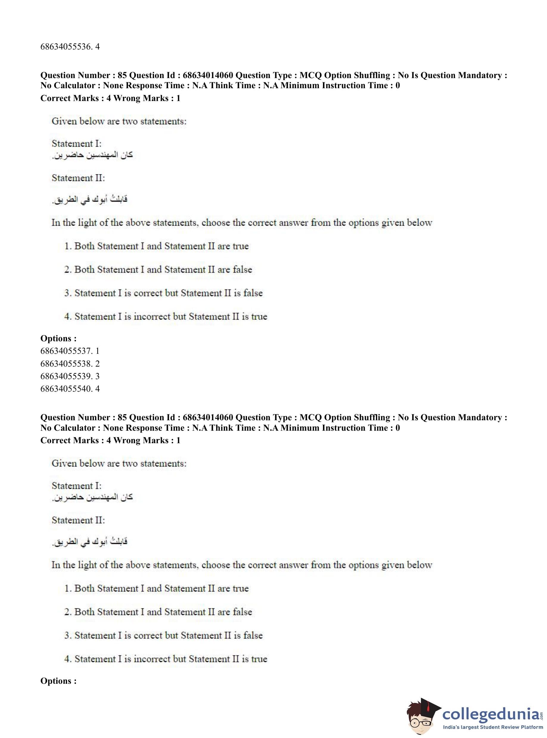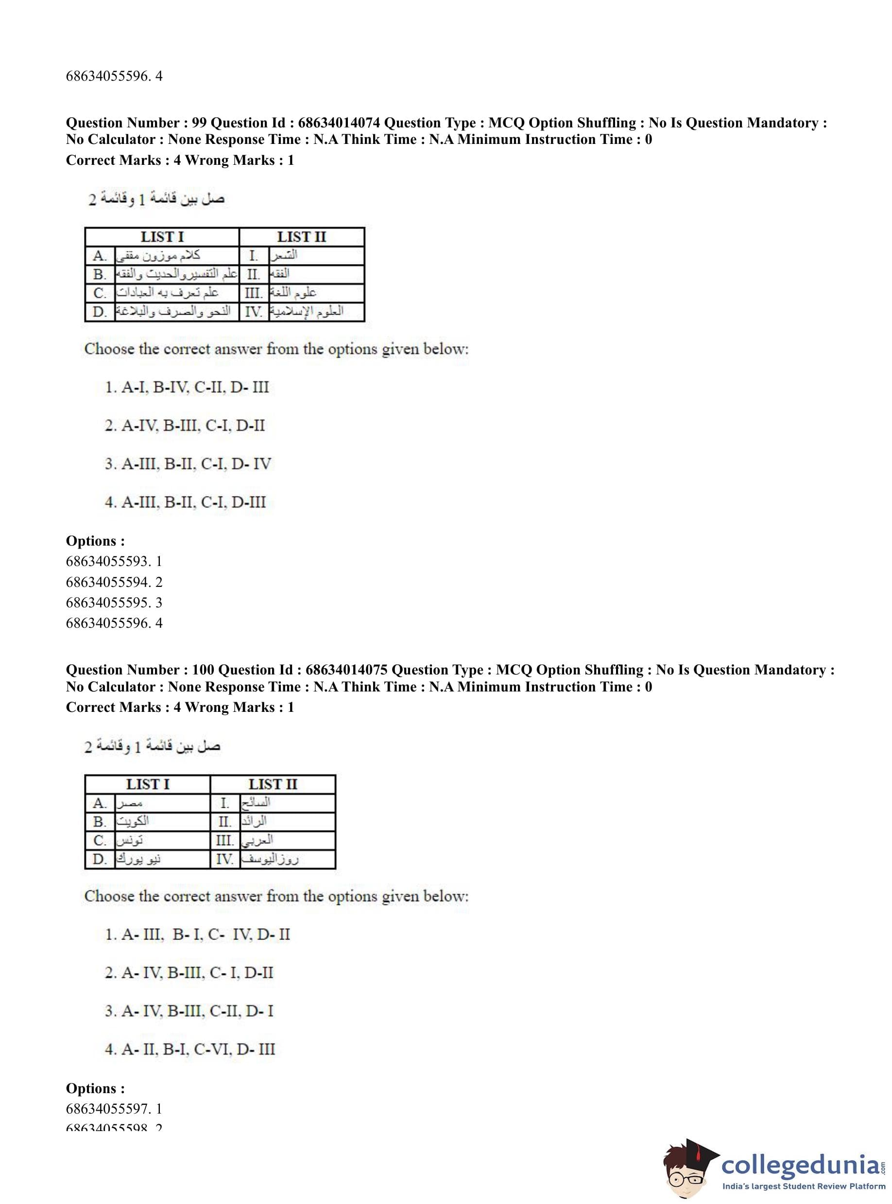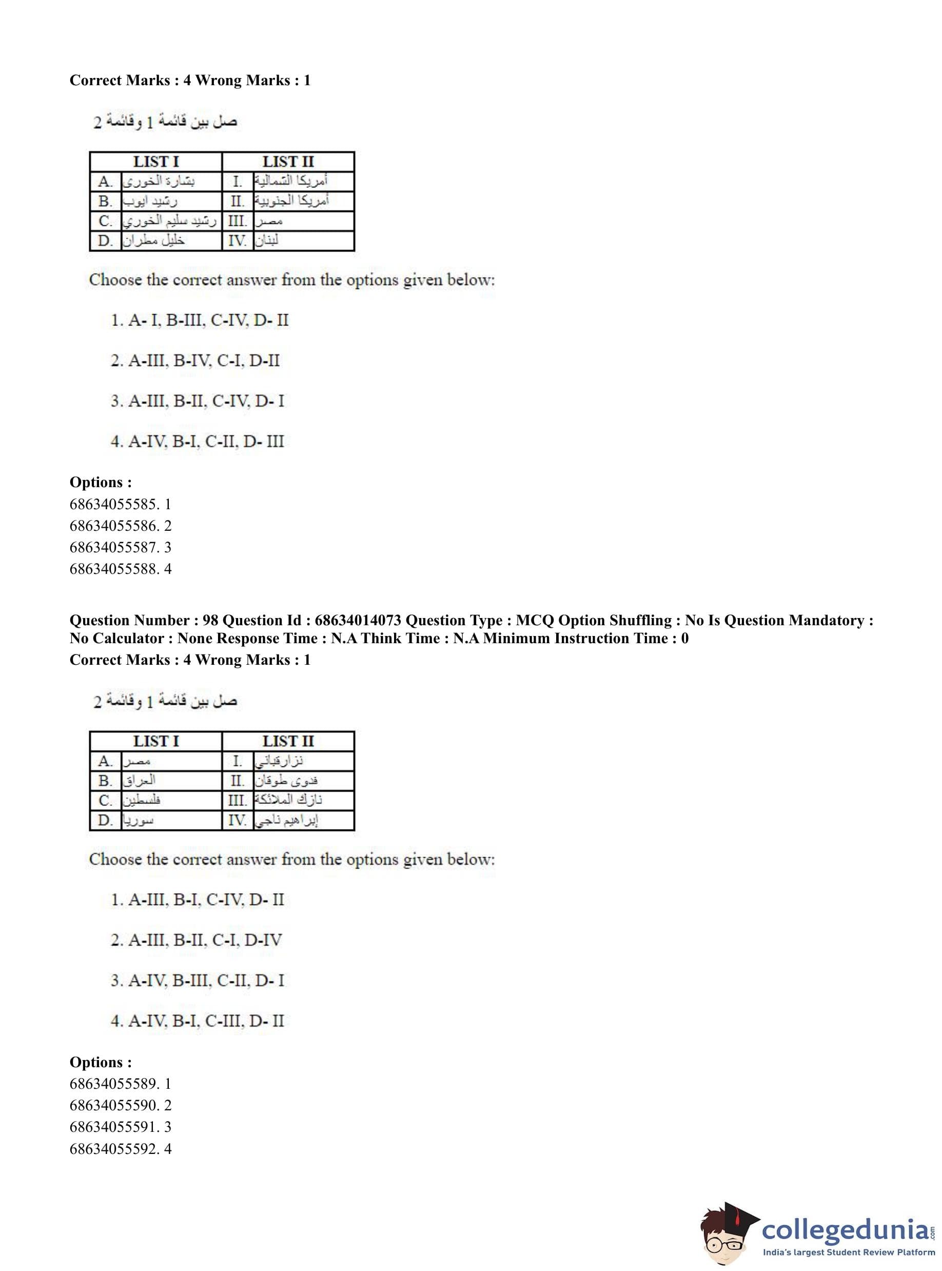 CUET PG 2023 Arabic Question Paper in Hindi (June 11 - Shift 3)