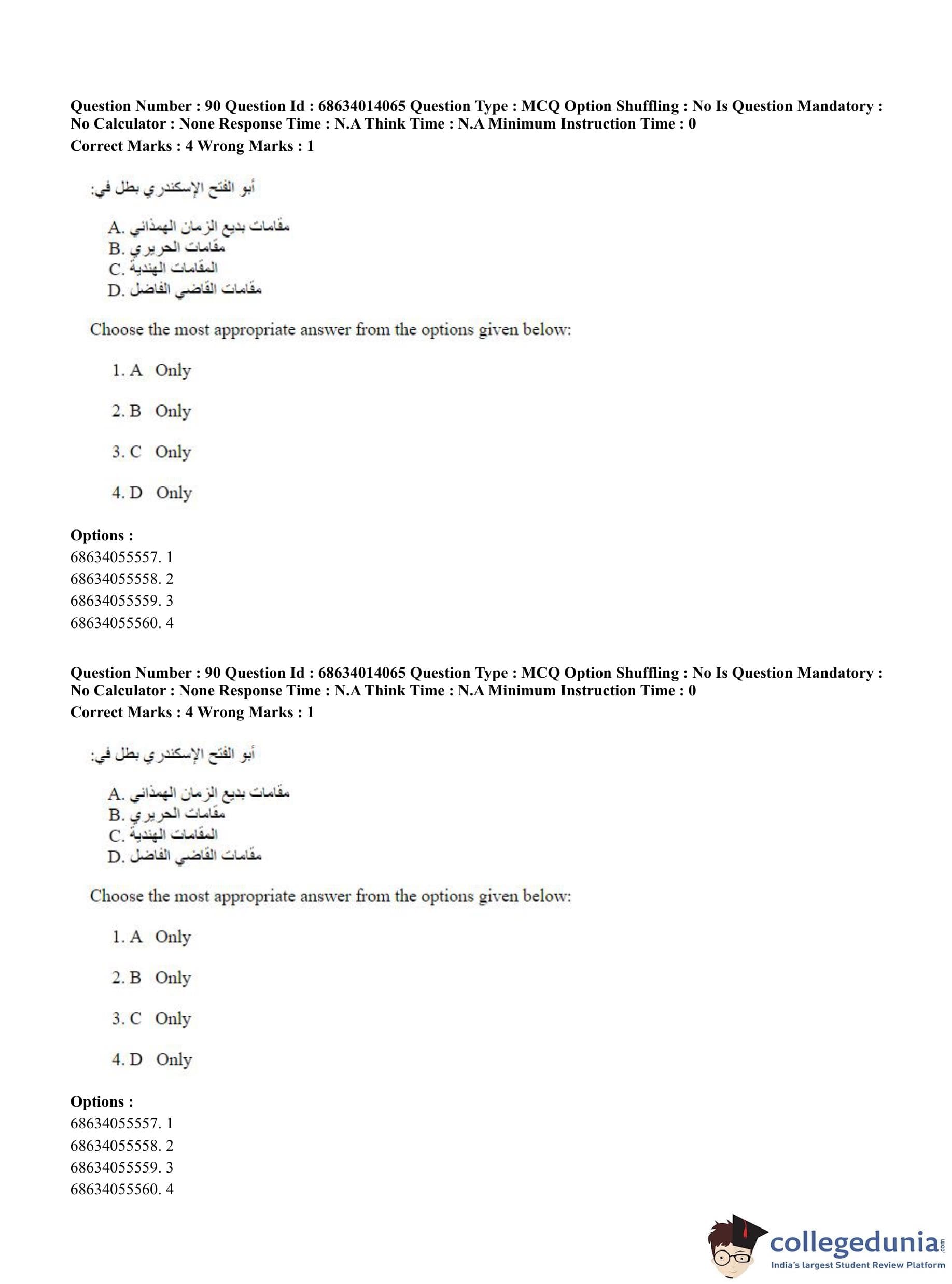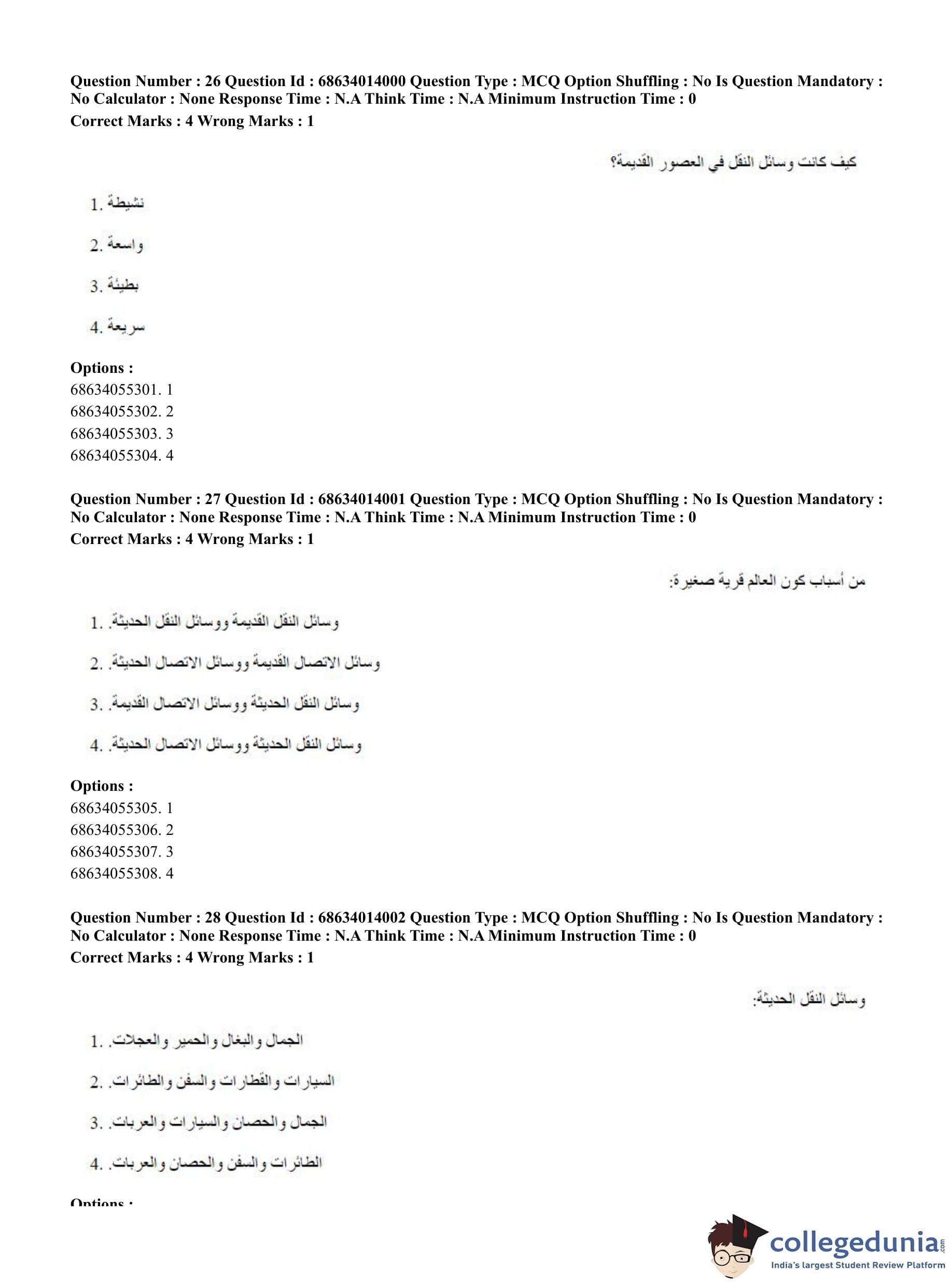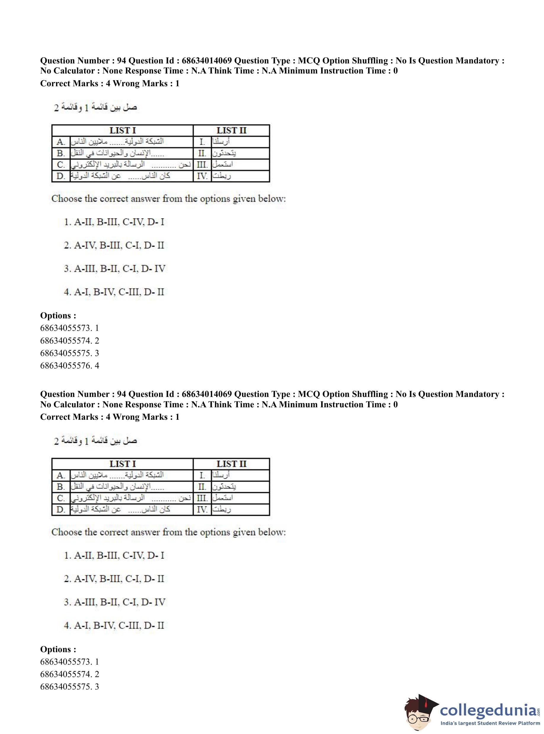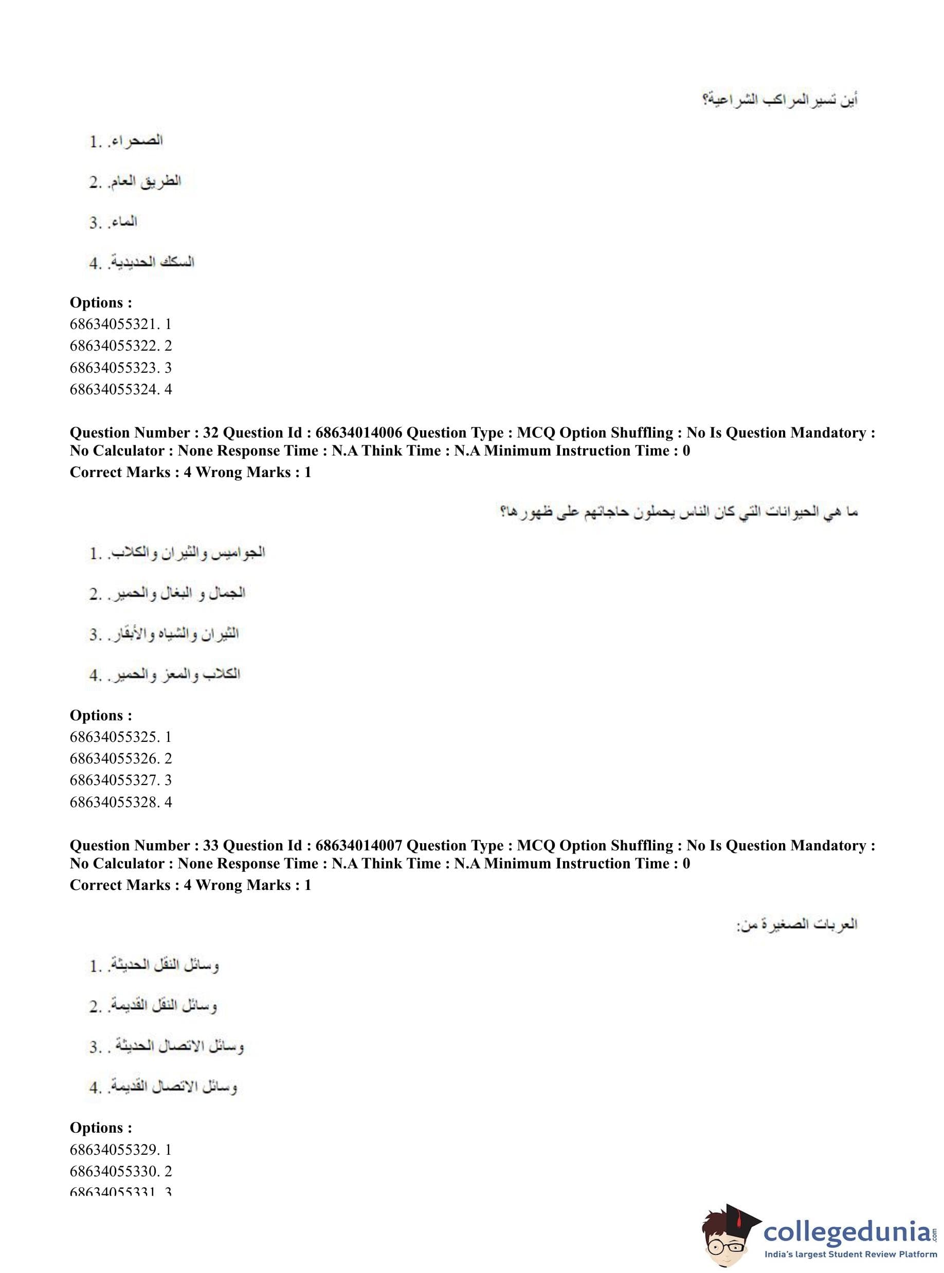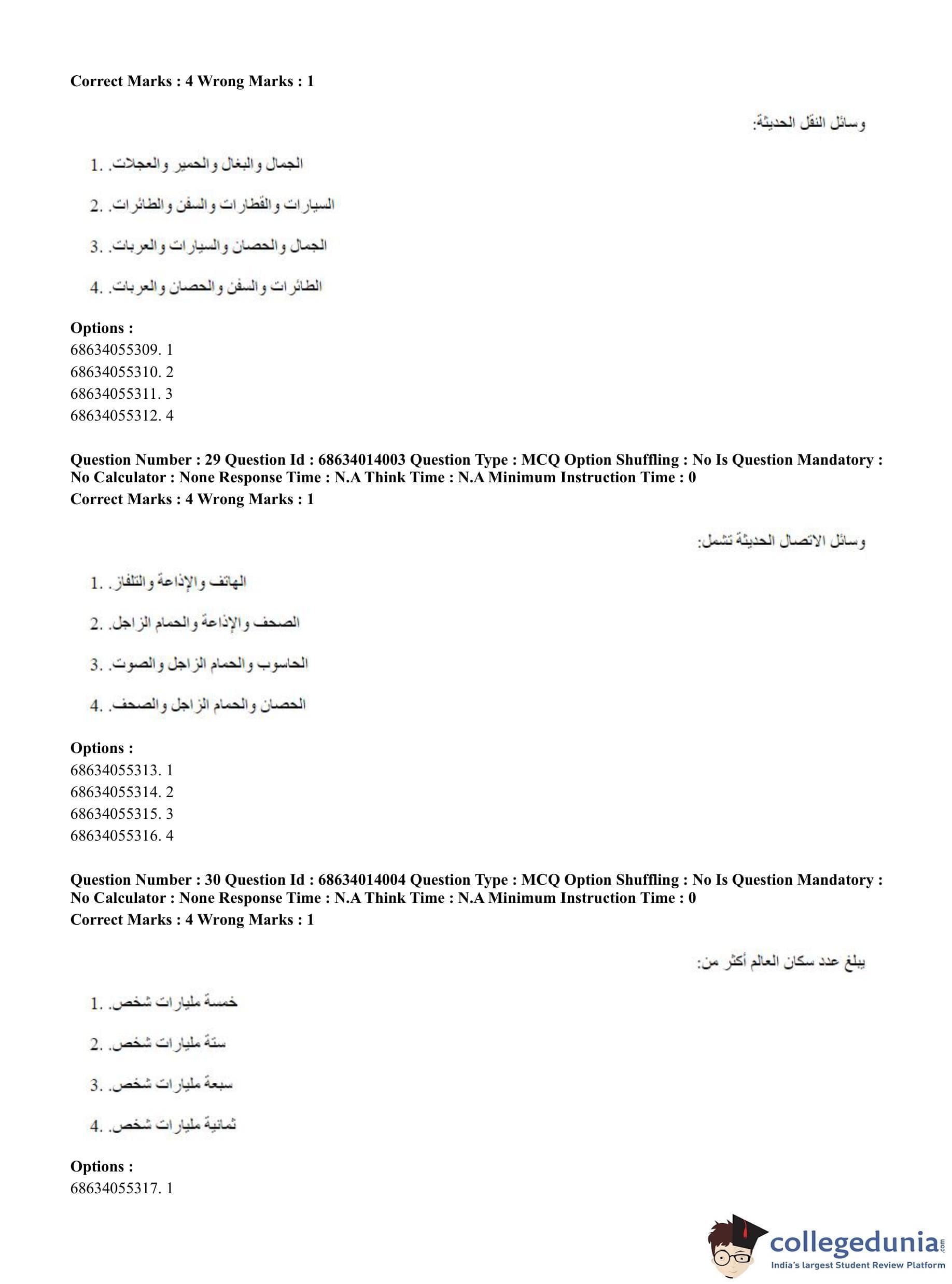 CUET PG 2023 Arabic Question Paper in Hindi (June 11 - Shift 3)