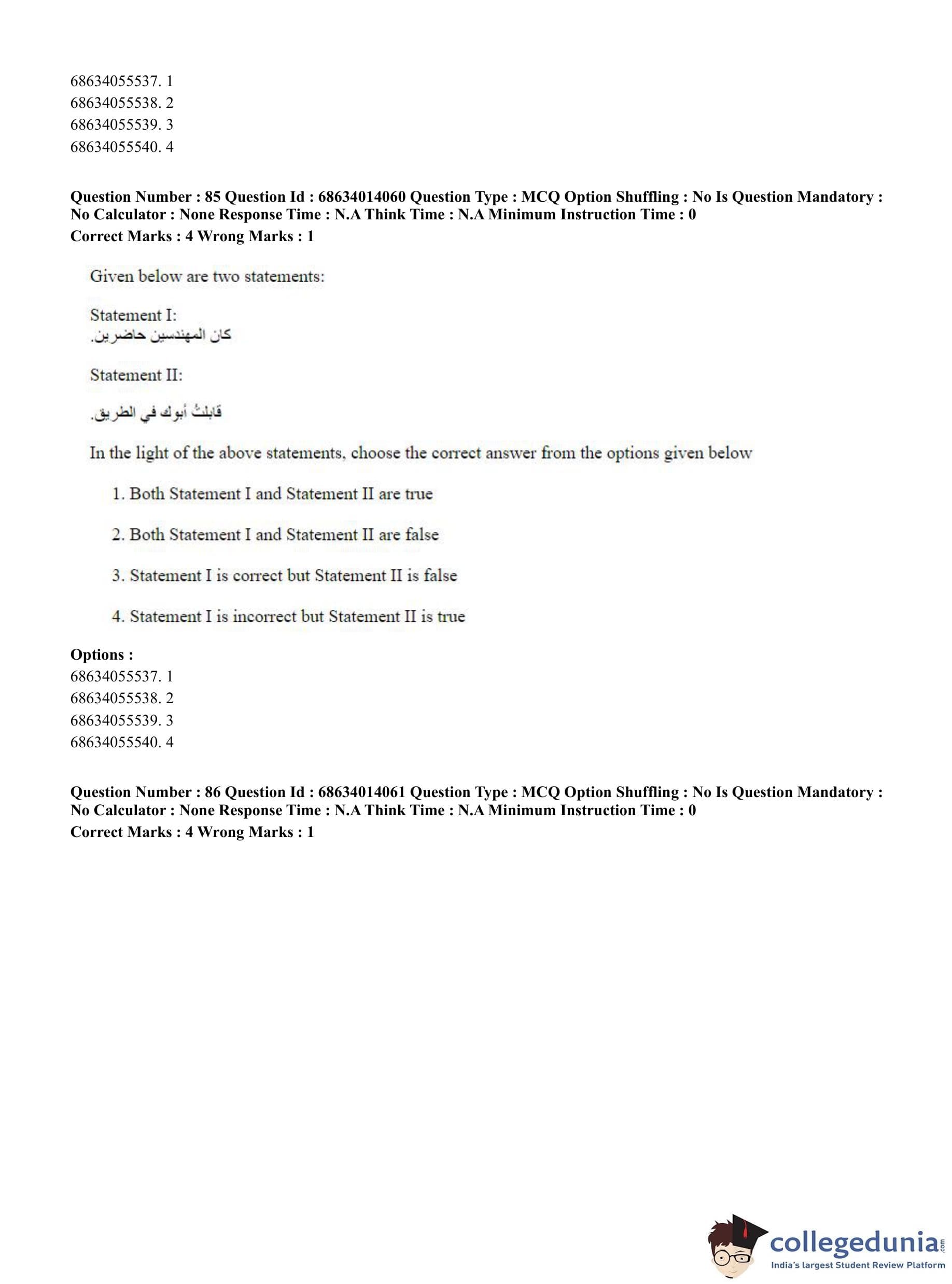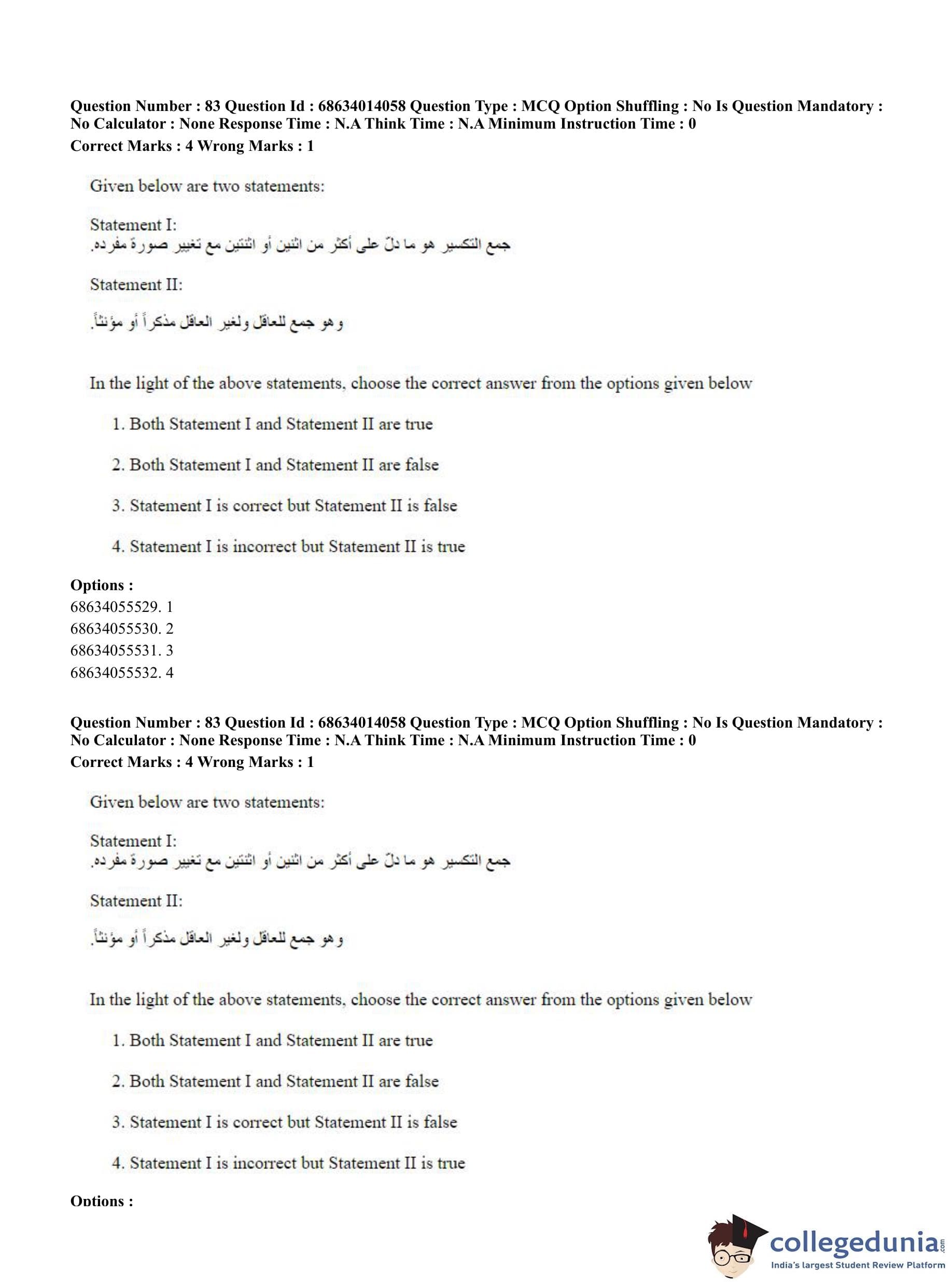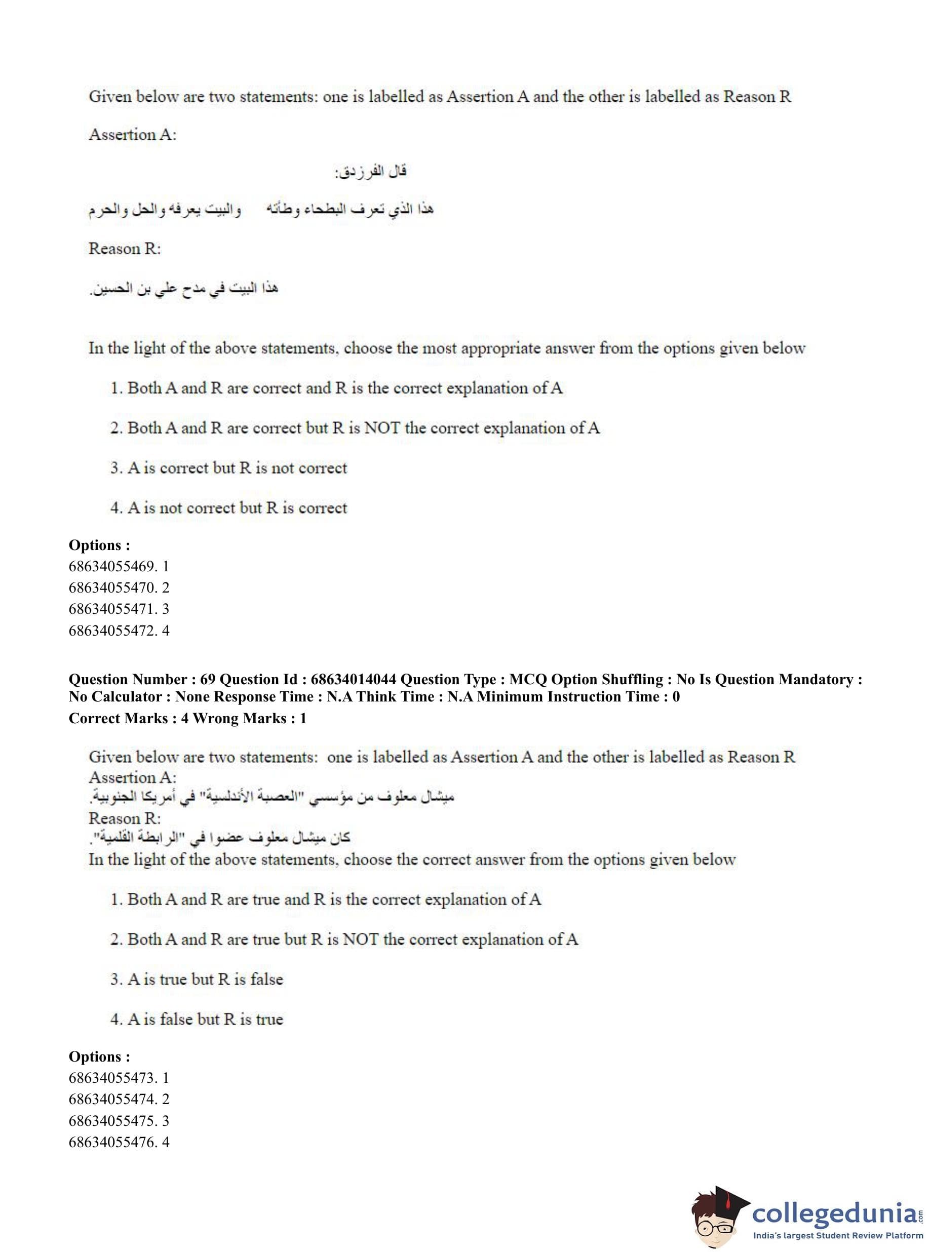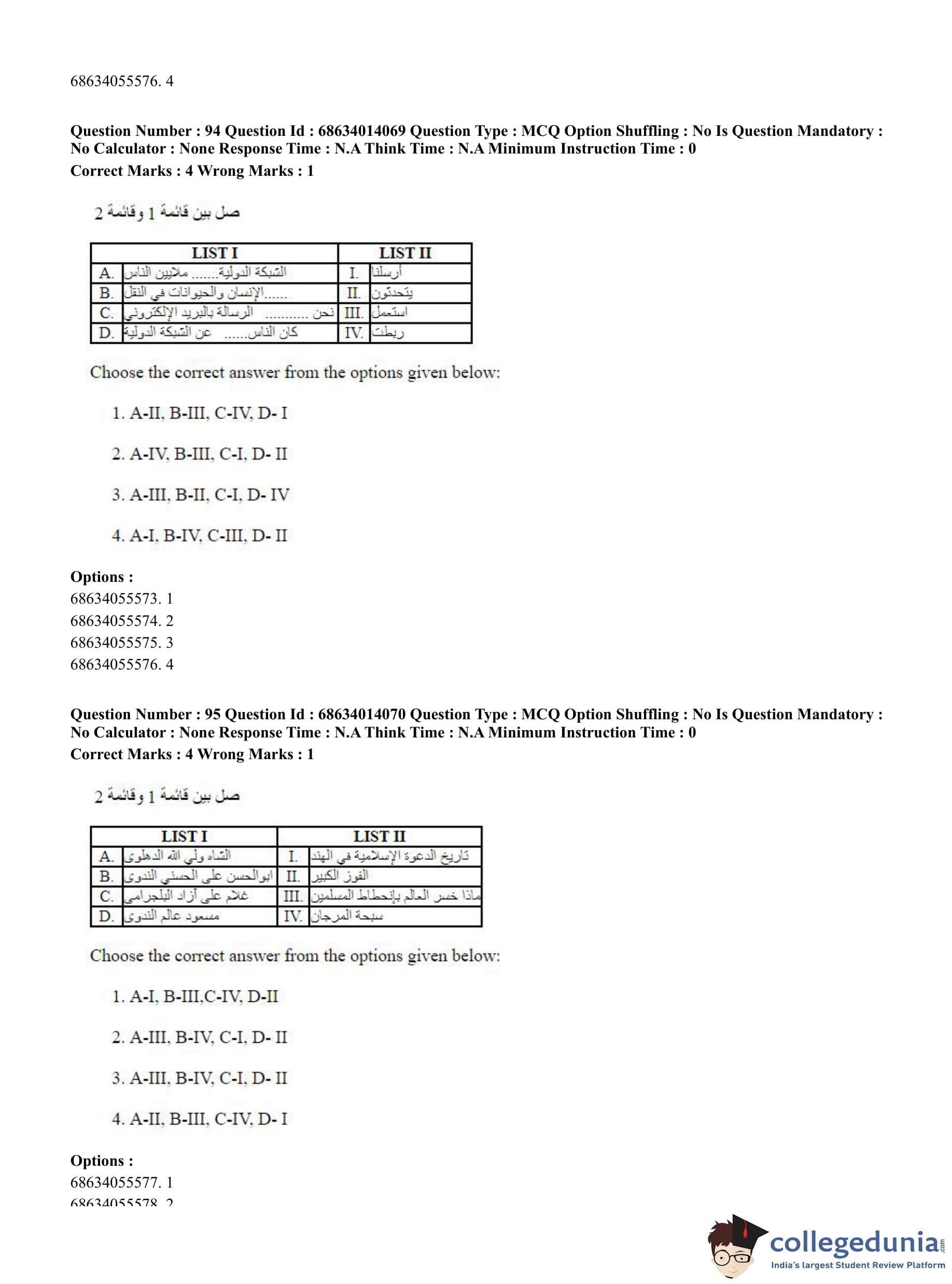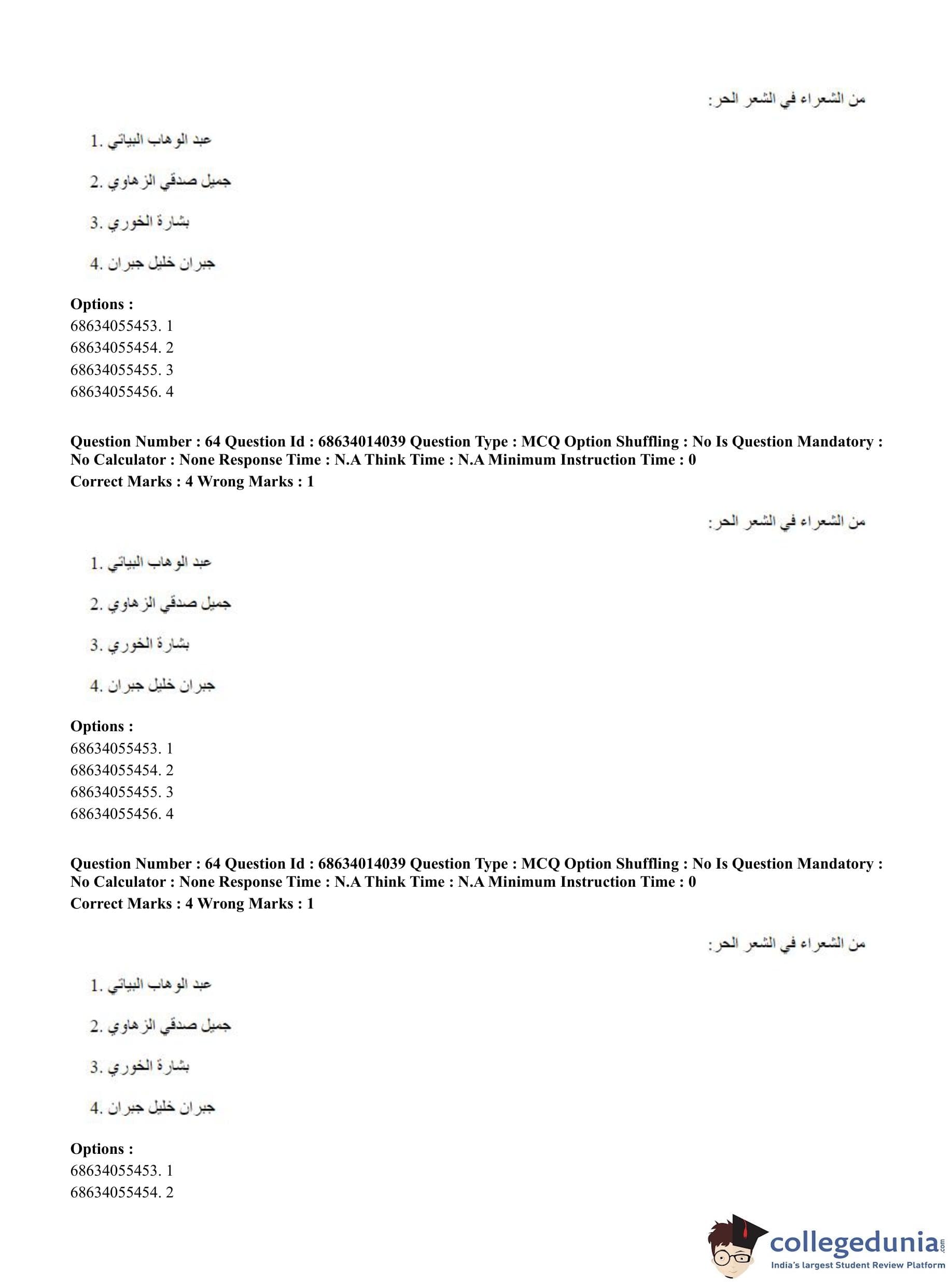 CUET PG 2023 Arabic Question Paper in Hindi (June 11 - Shift 3)