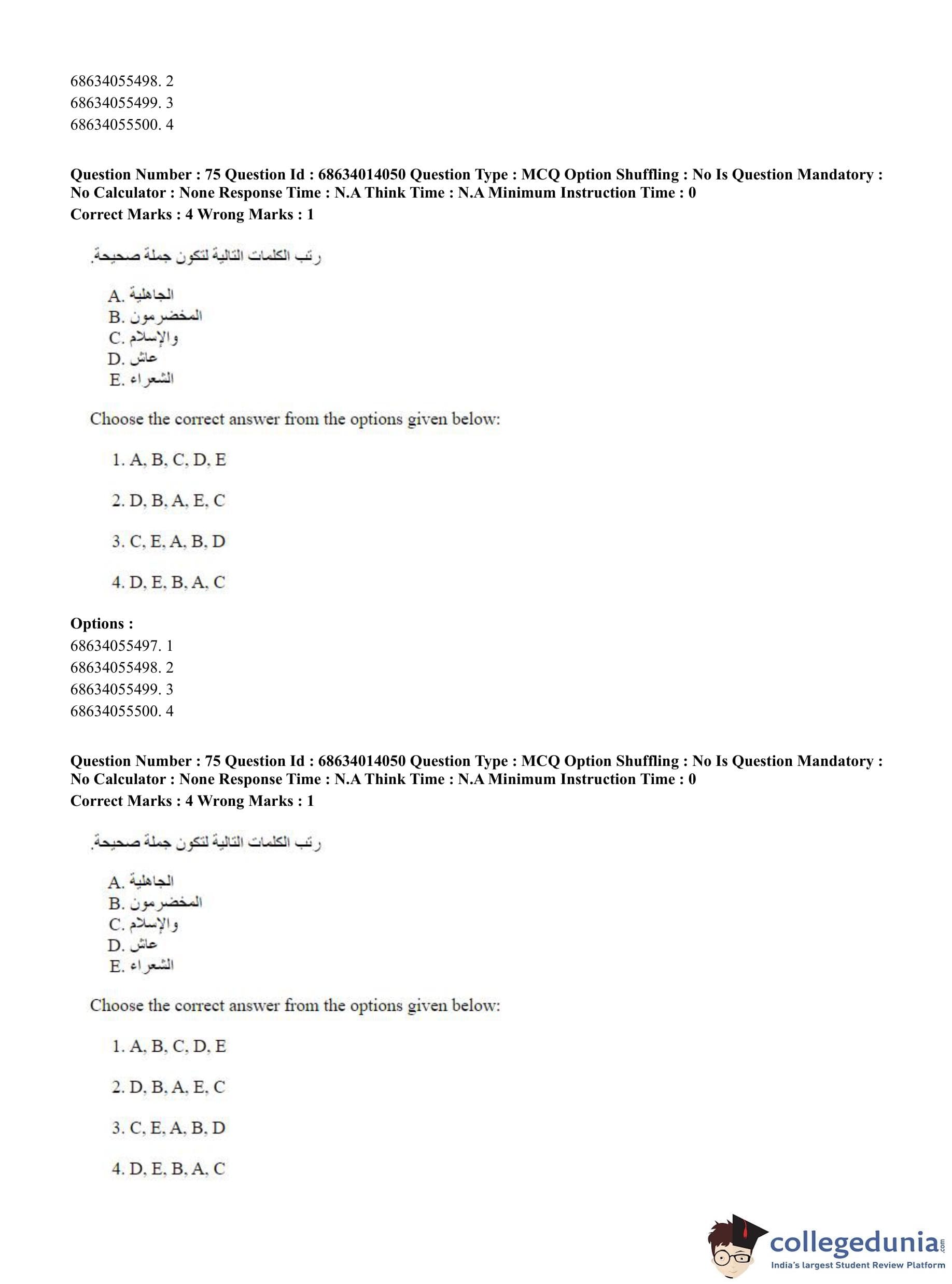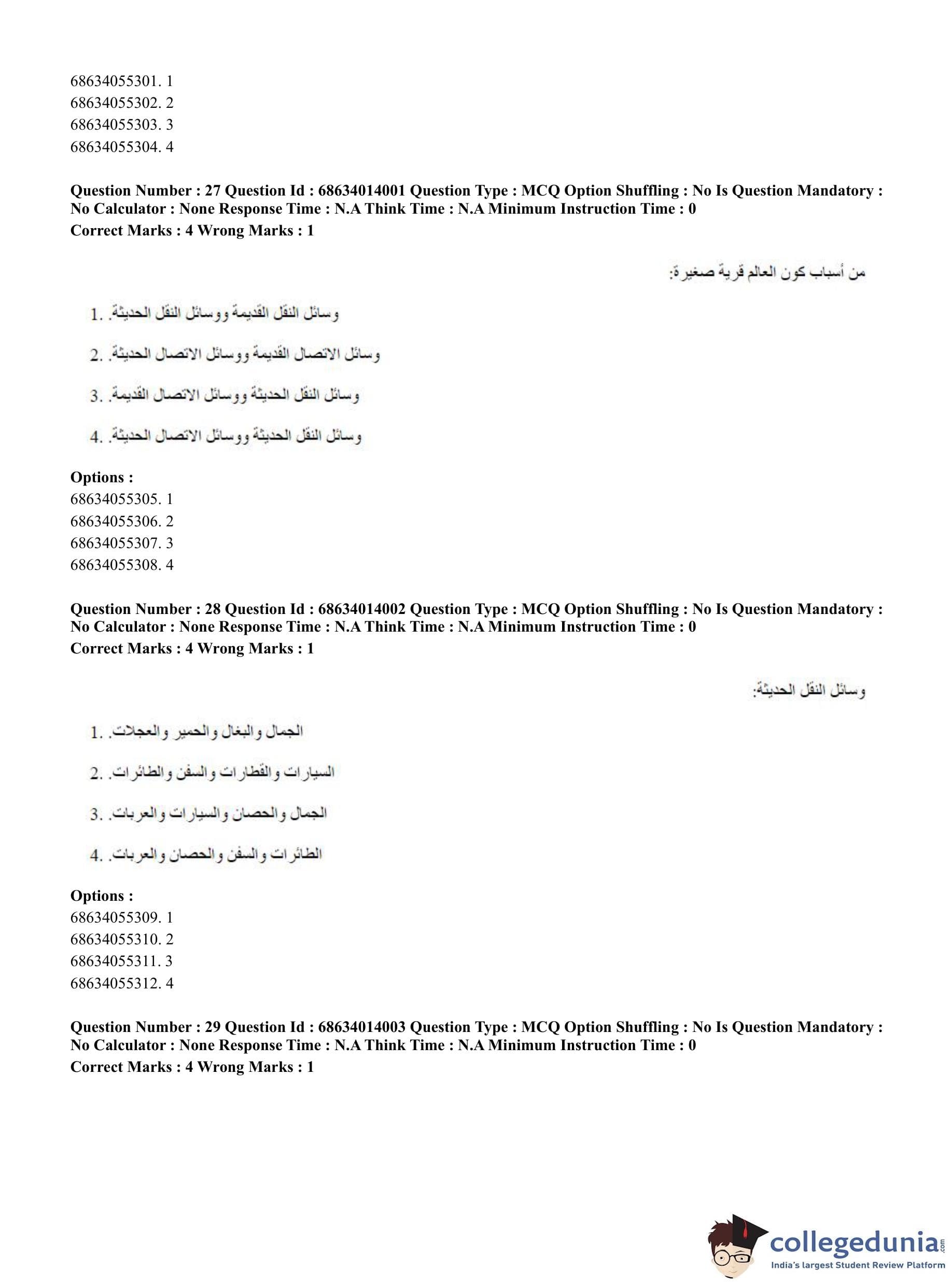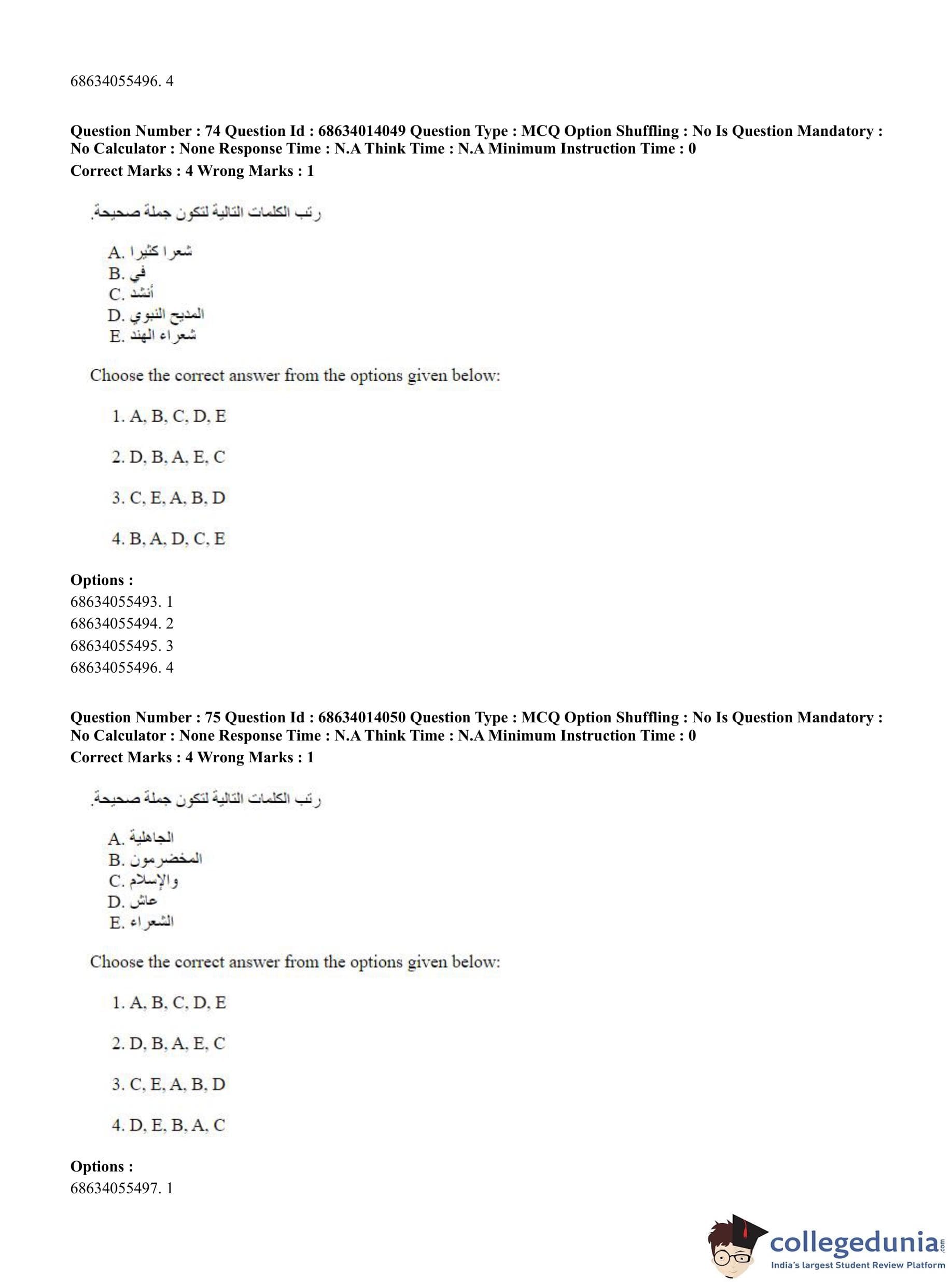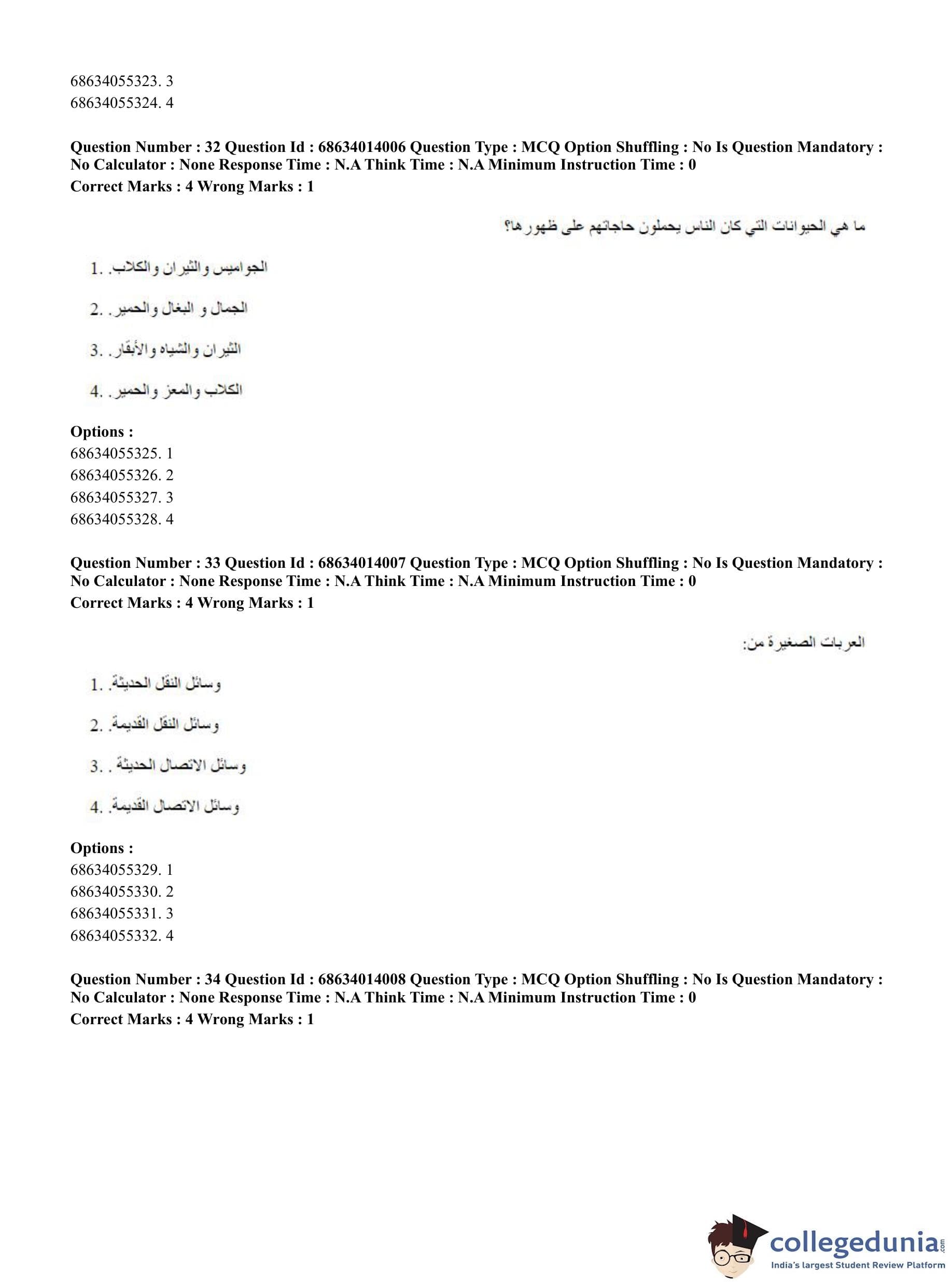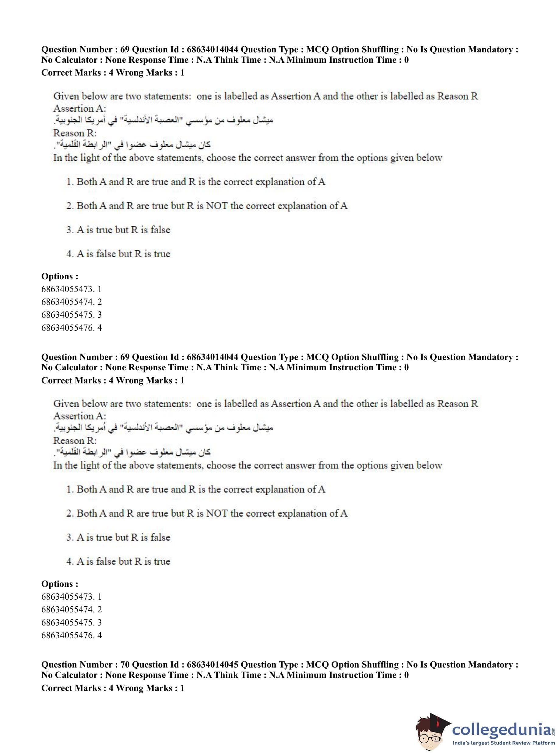CUET PG 2023 Arabic Question Paper in Hindi (June 11 - Shift 3)