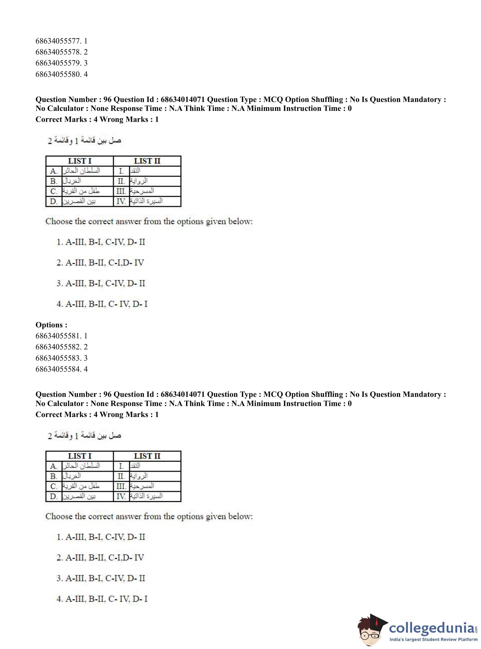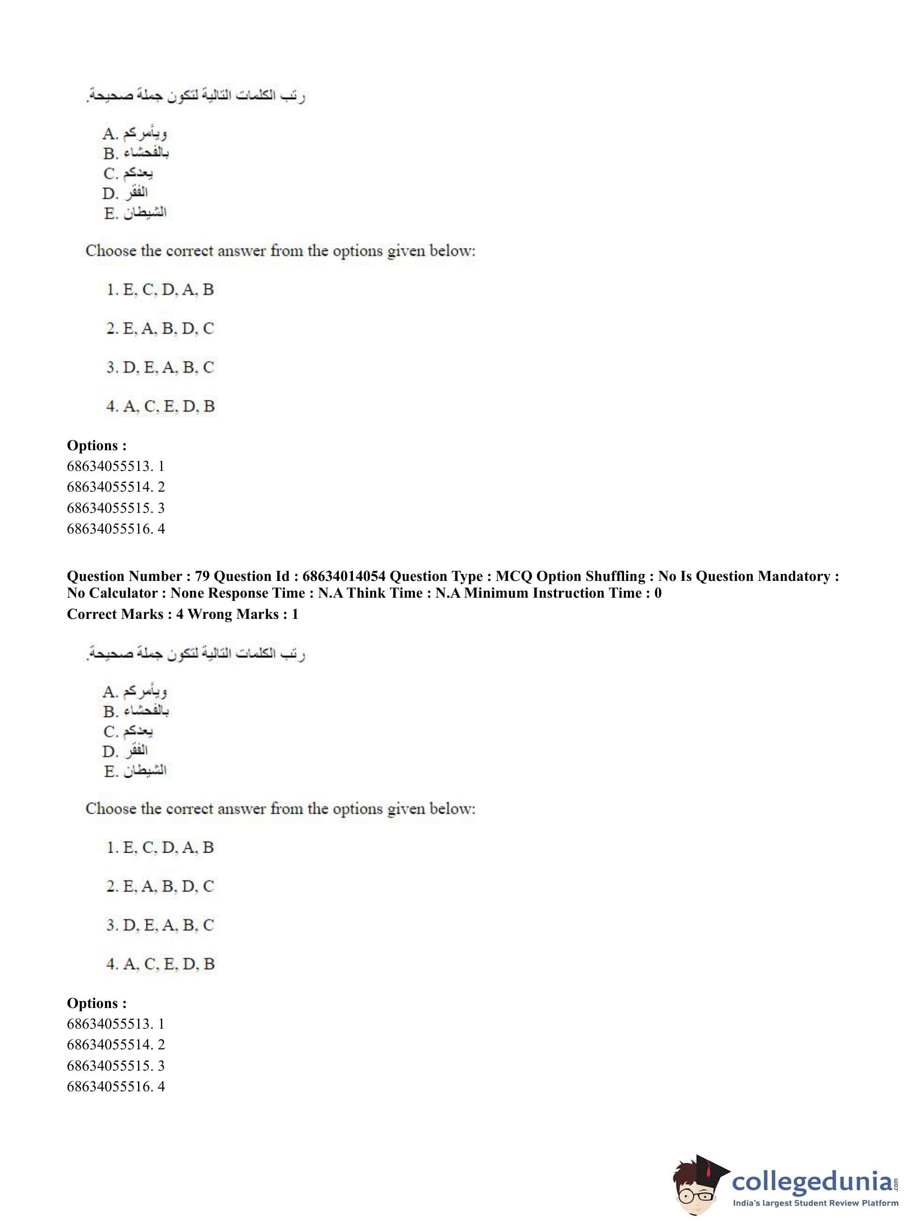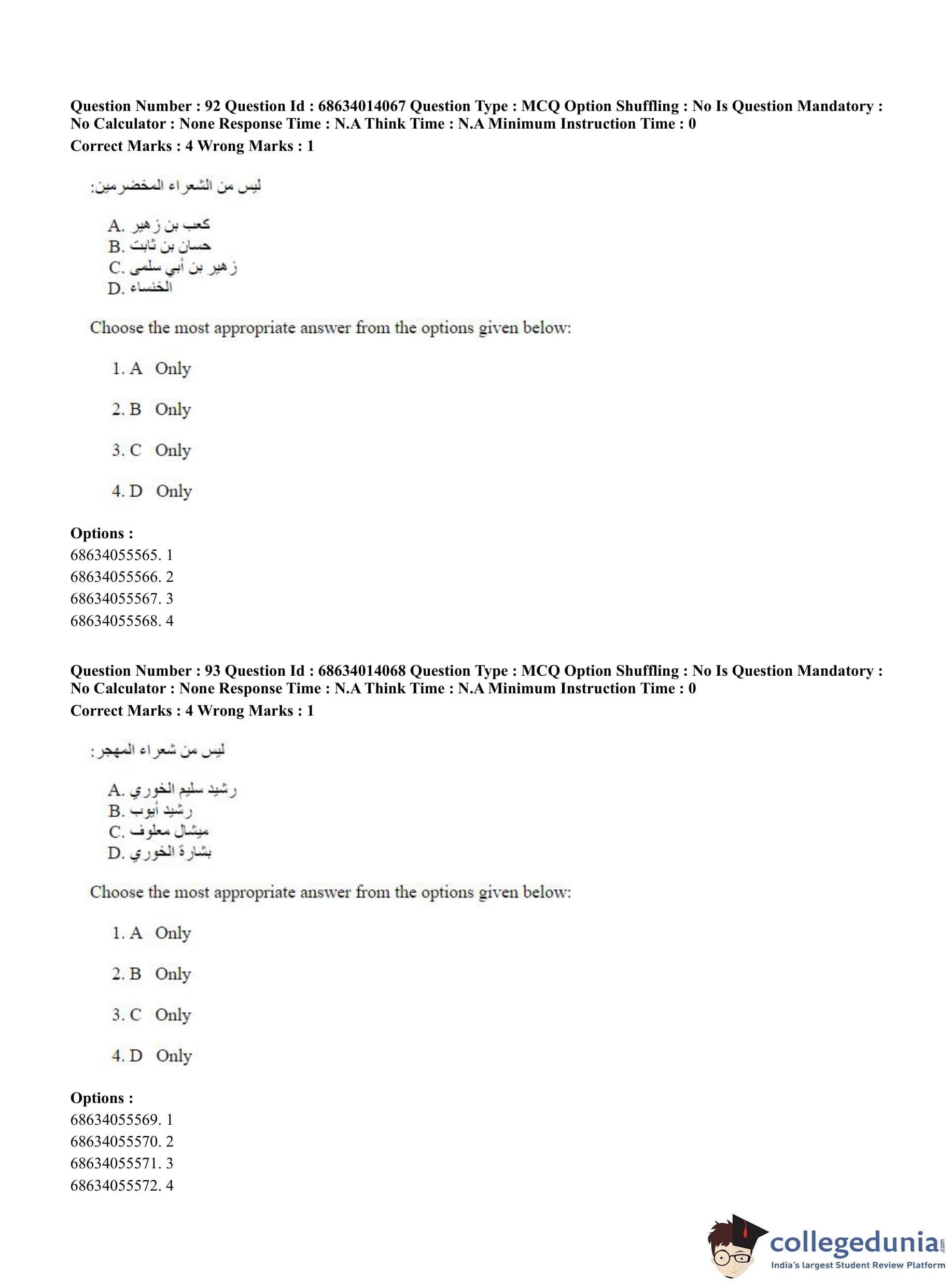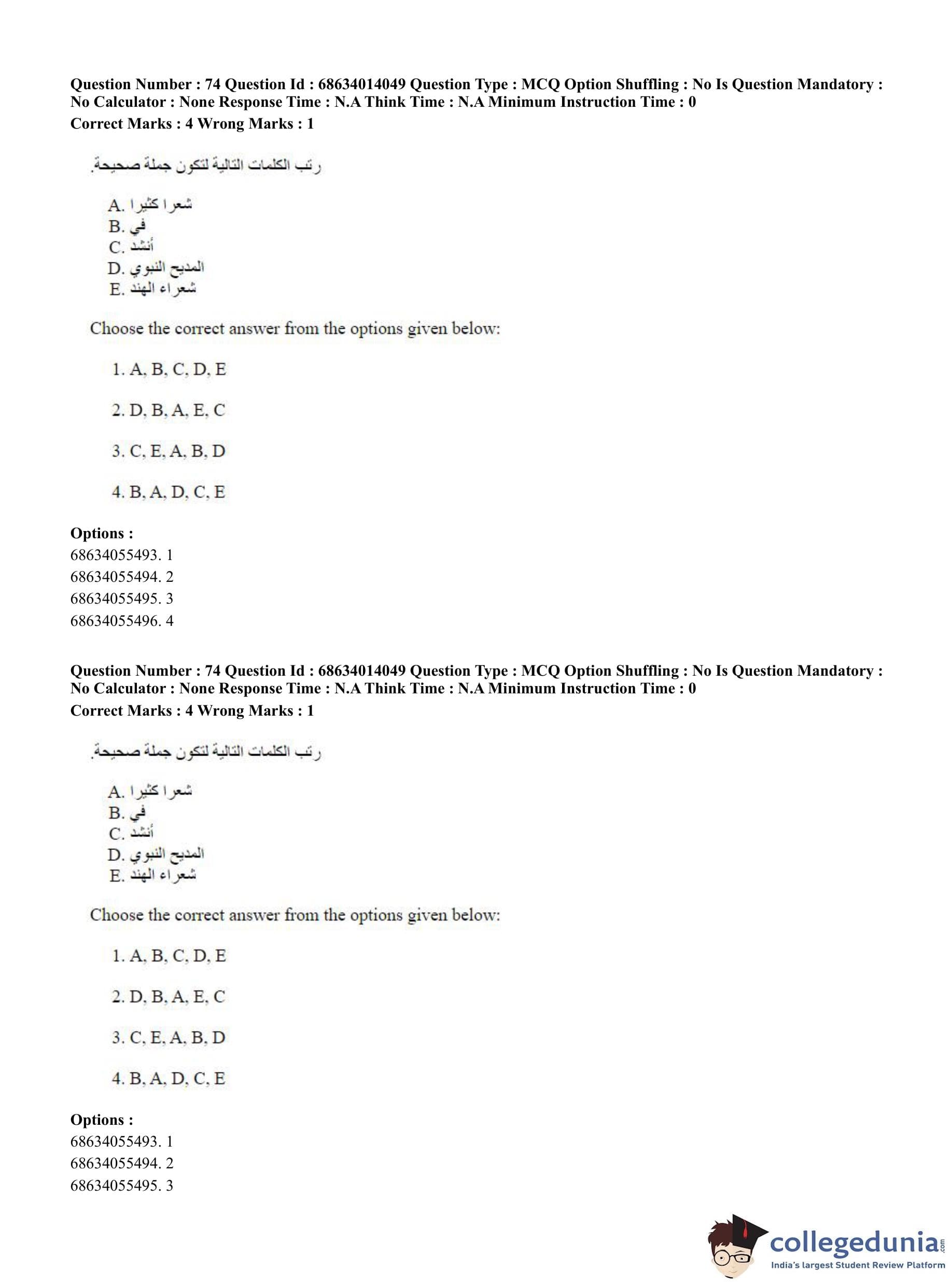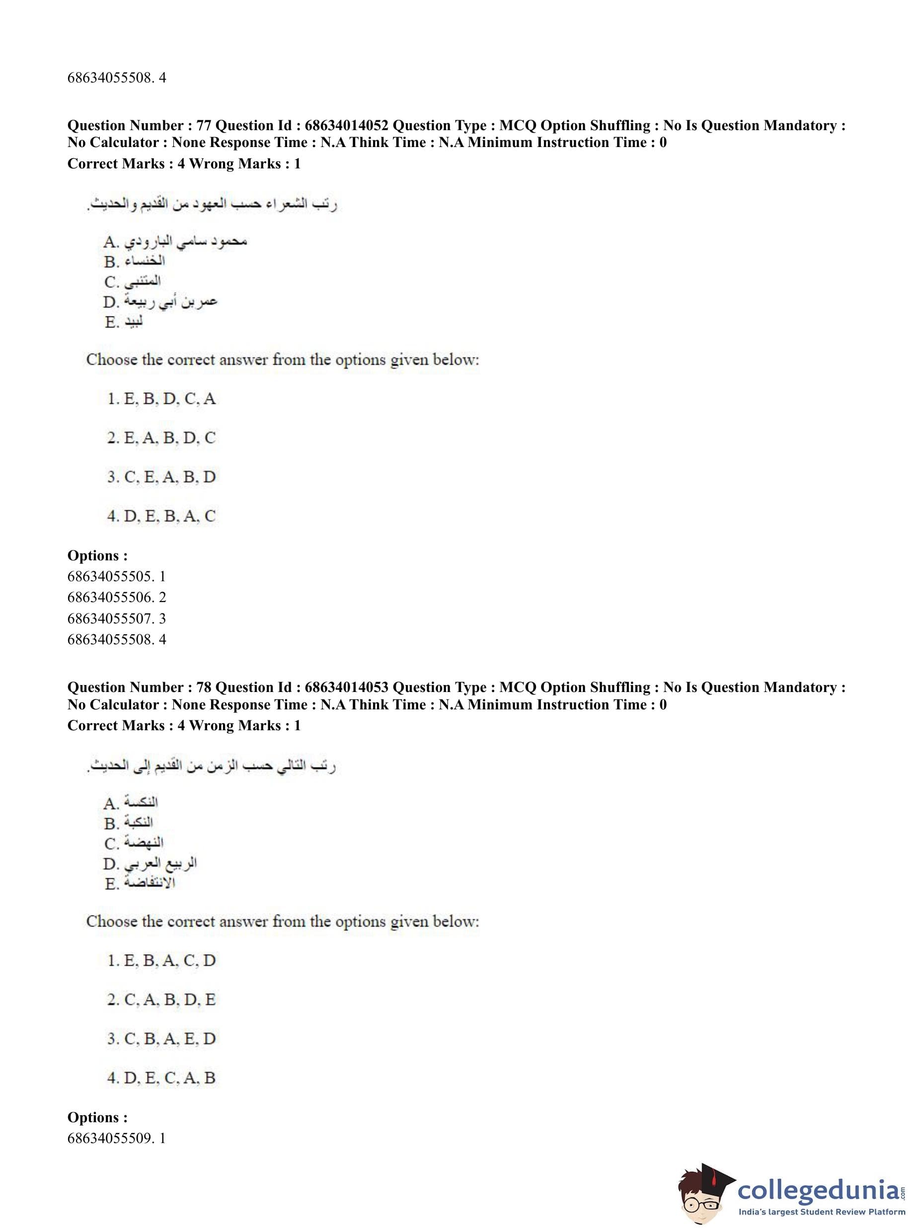 CUET PG 2023 Arabic Question Paper in Hindi (June 11 - Shift 3)