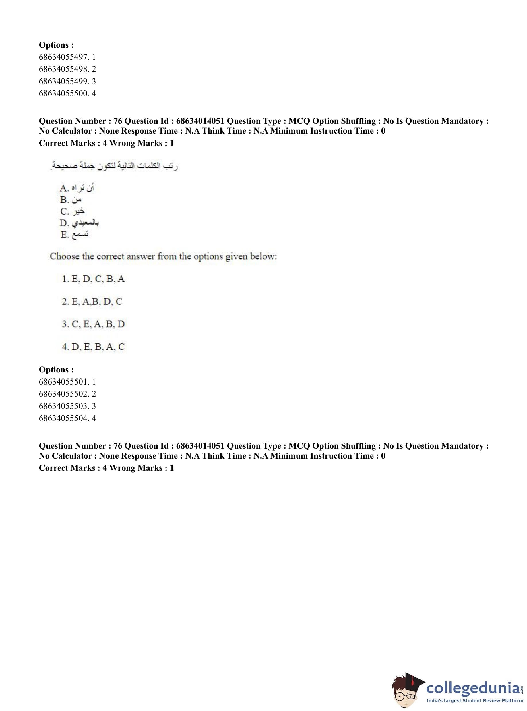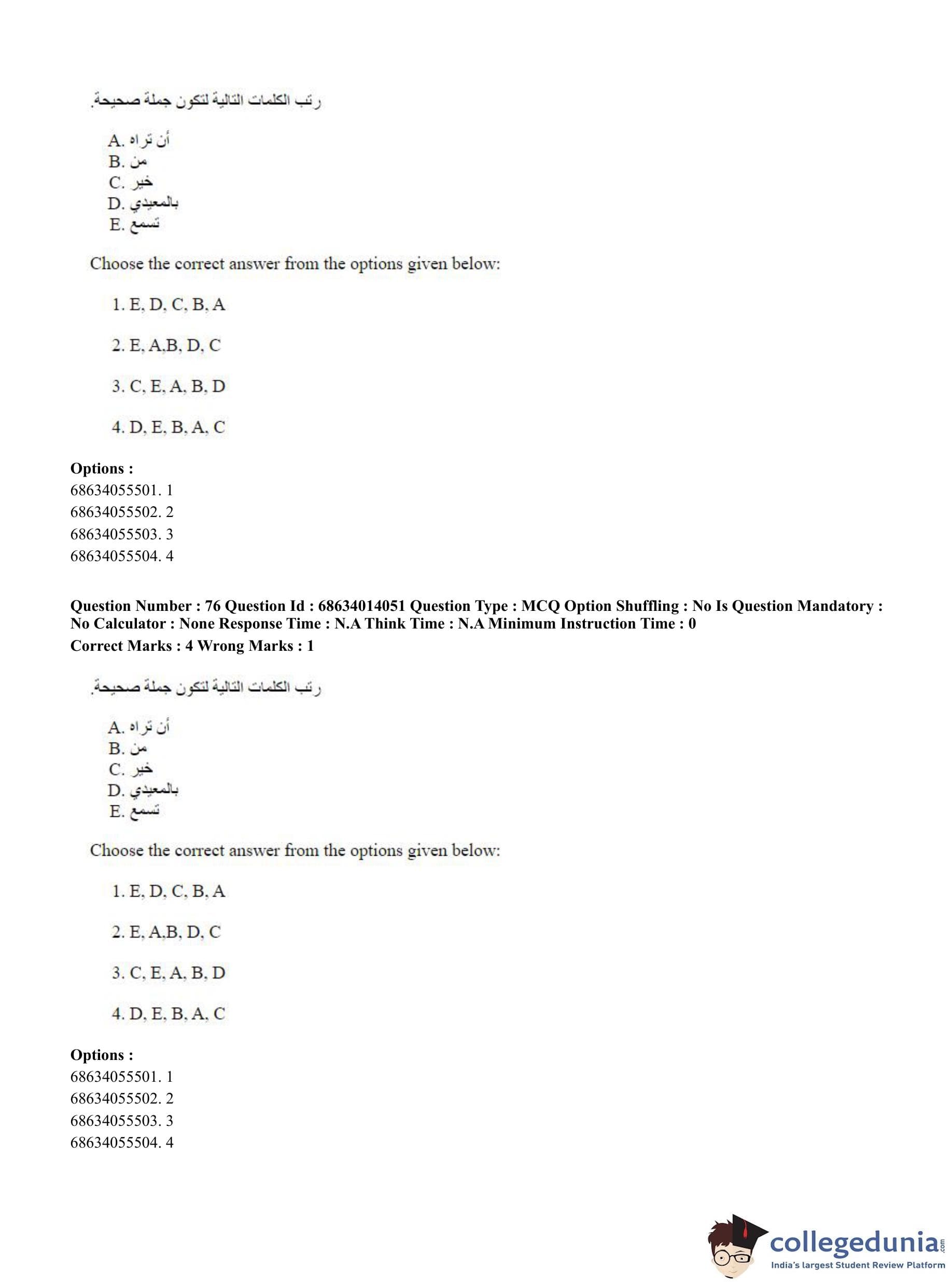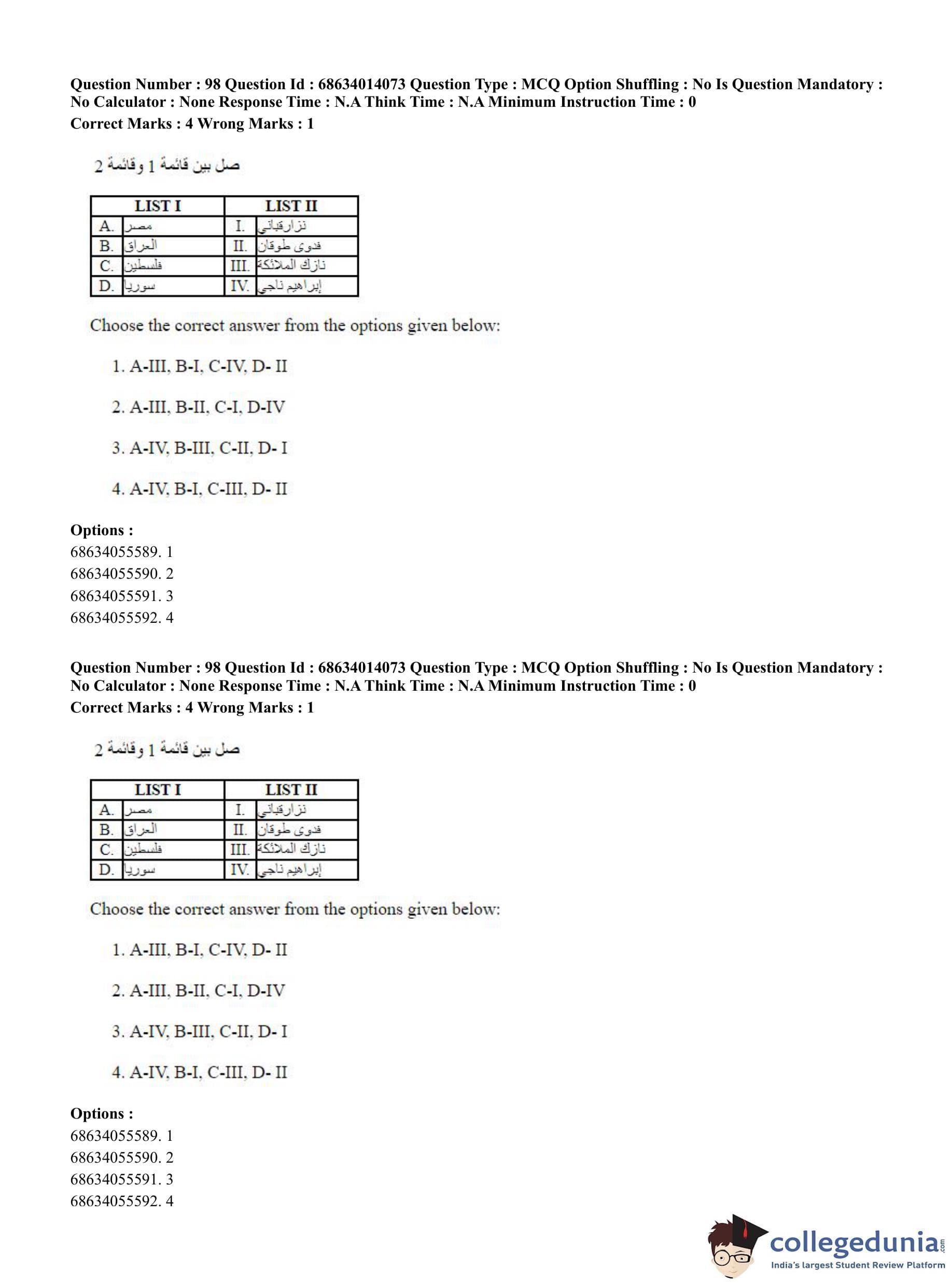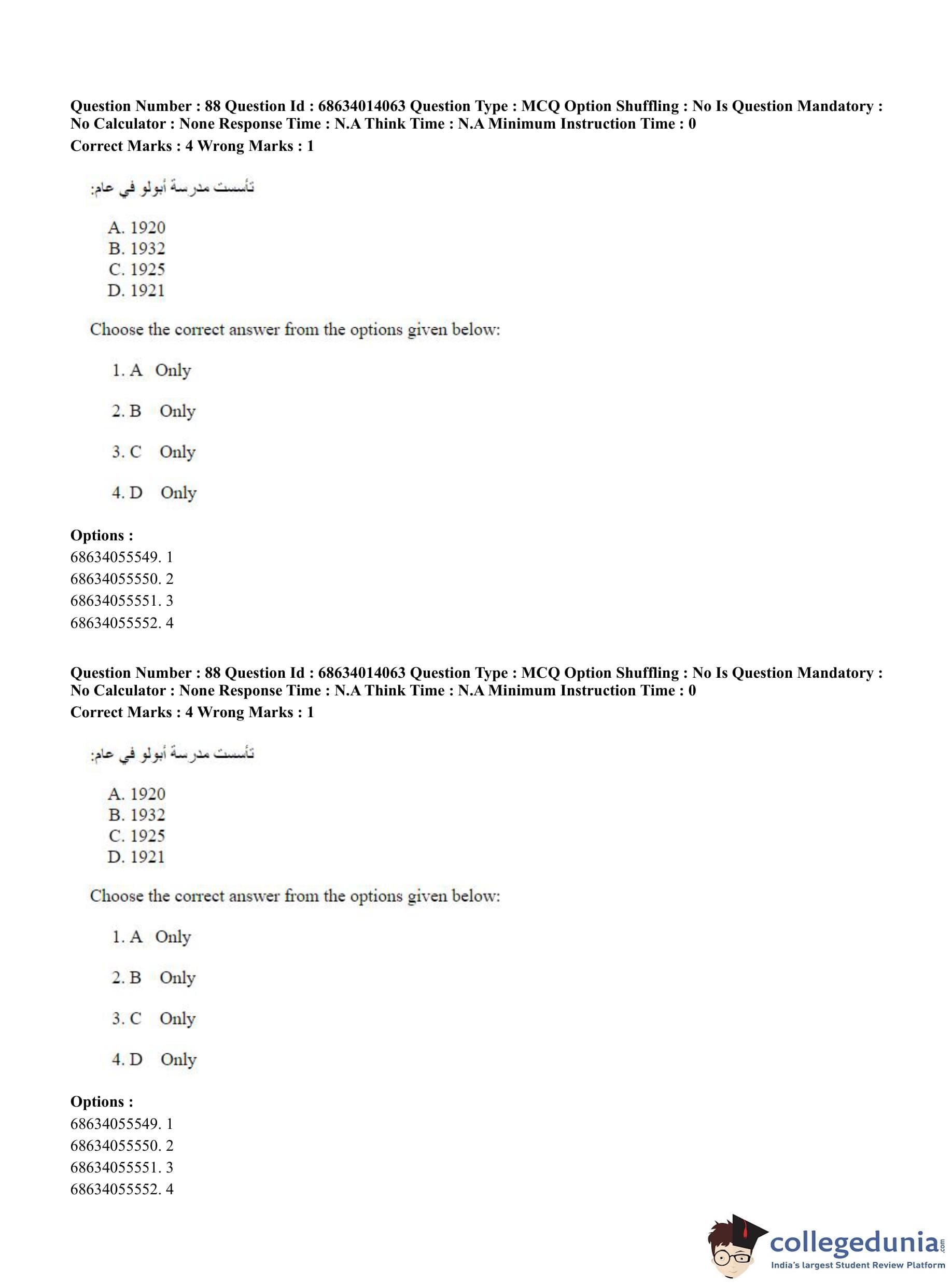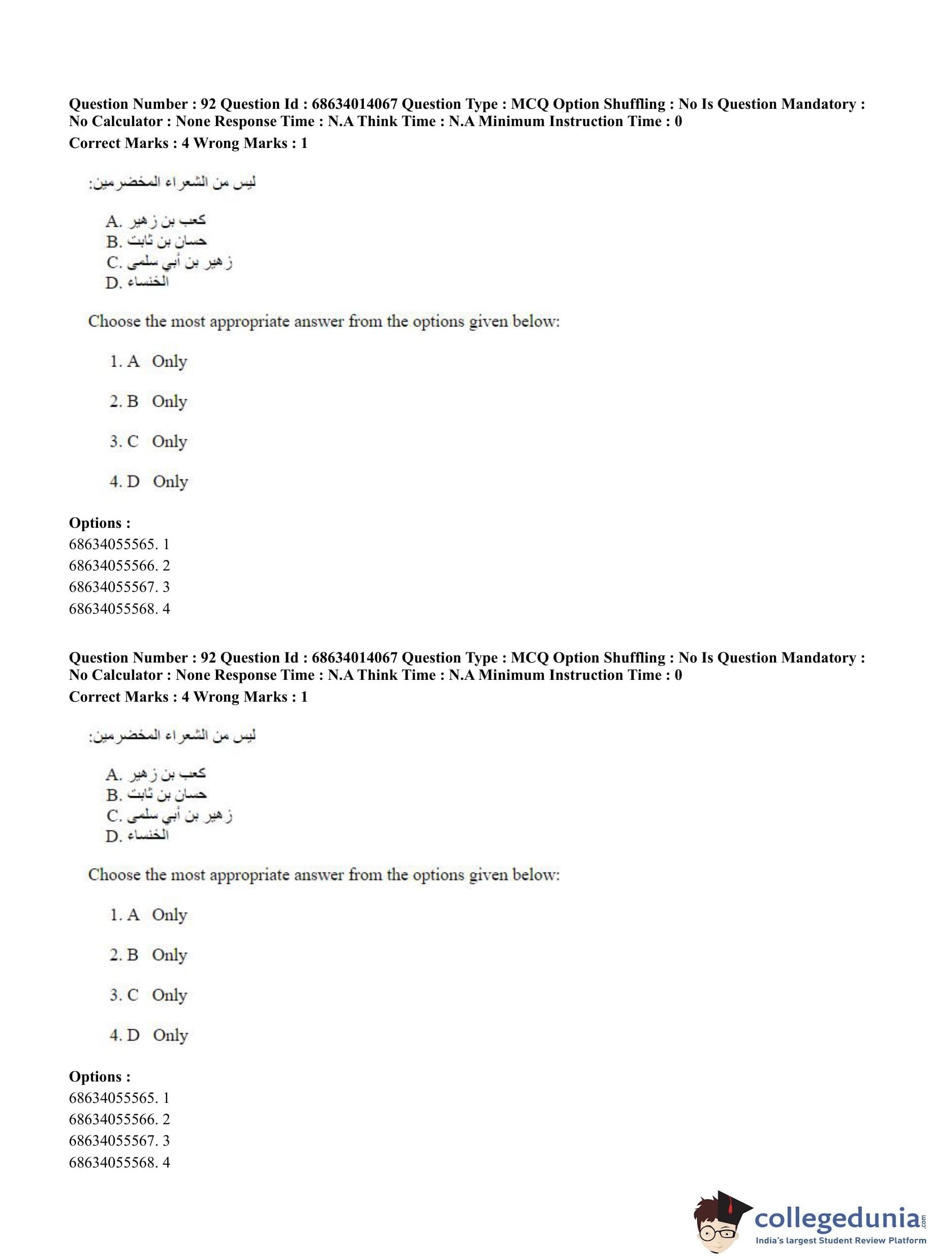 CUET PG 2023 Arabic Question Paper in Hindi (June 11 - Shift 3)